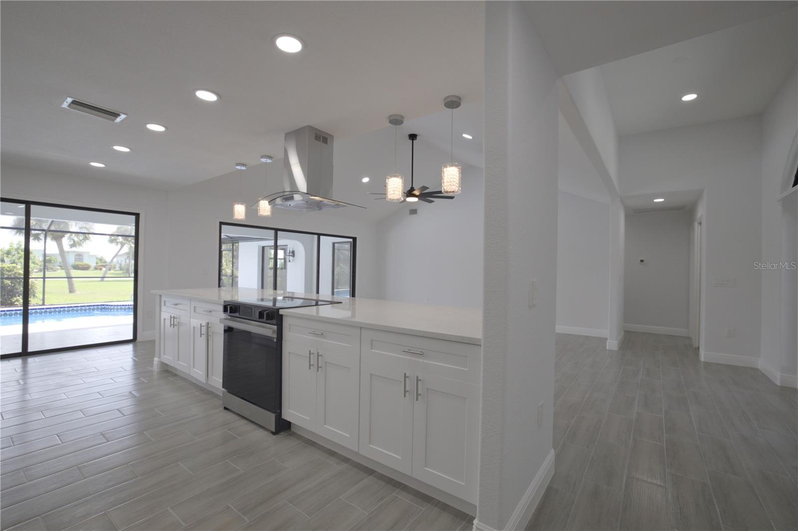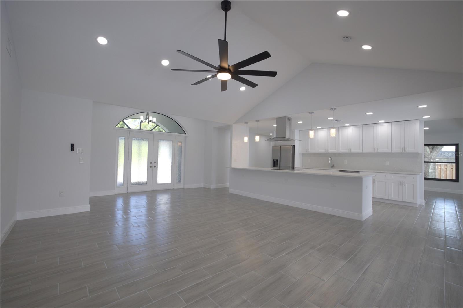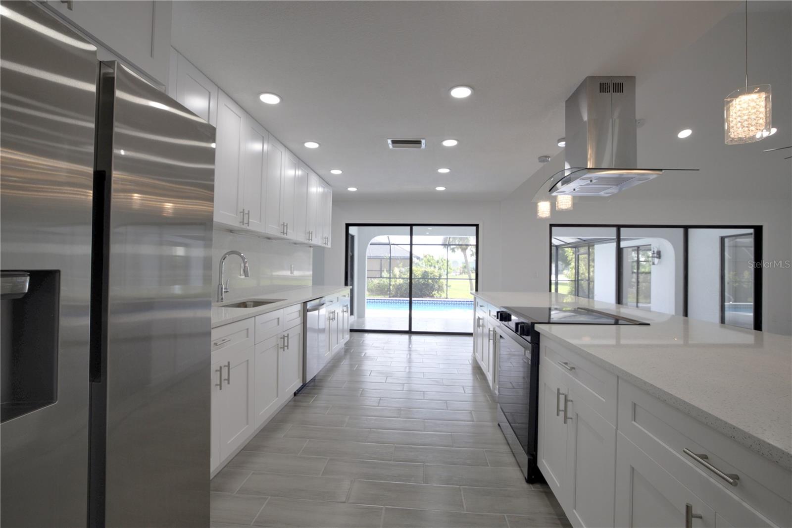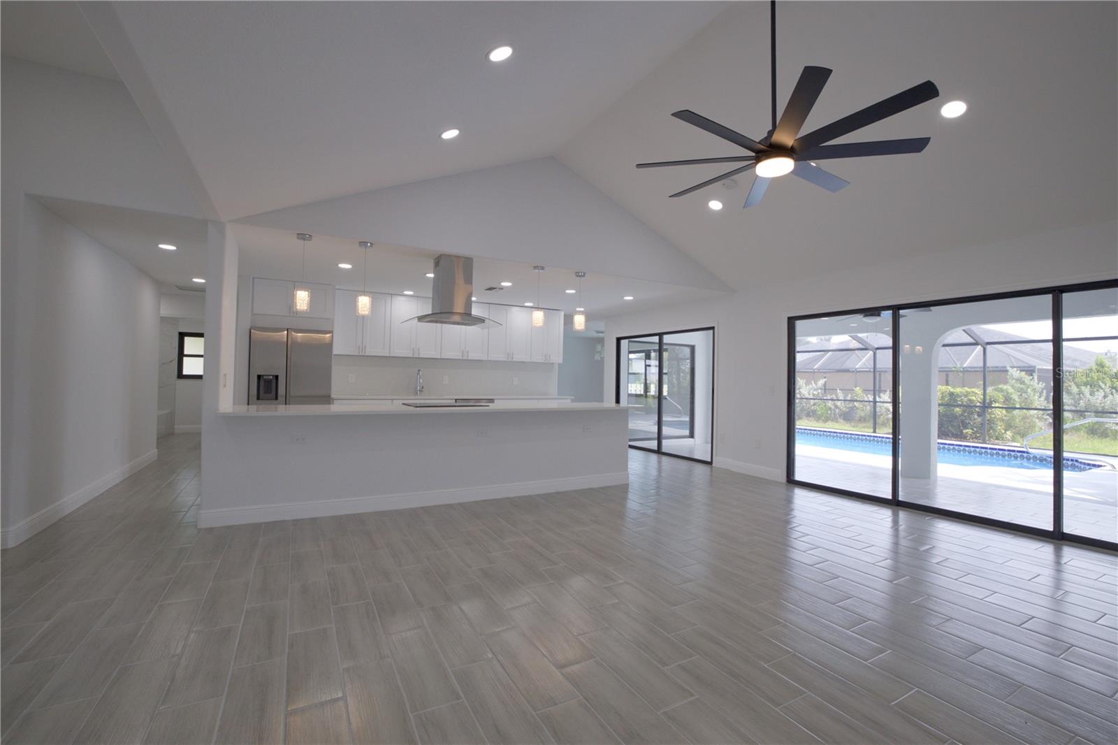 BEAUTIFULLY UPDATED 4 Bedroom, 3 Bathroom, 2 Car Garage, Pool home with a Family room located in Gulf Cove. CLICK ON THE VIRTUAL TOUR LINK 1 FOR THE VIDEO AND VIRTUAL LINK 2 FOR THE 3D TOUR. Featuring a bright & open floor plan, high & vaulted ceilings, tile flooring throughout, recessed & pendant lighting, and MUCH MORE! Entertain your friends and family in your kitchen/living room combo that has a large glass slider to the pool. The kitchen offers ALL stainless appliances, Quartz countertops, a breakfast bar with pendant lighting, an oversized walk-in pantry, and plenty of cabinets for storage. The family room also expands your living and entertaining space. The spacious master bedroom has HIS & HERS closets, a slider to the pool, and a private en-suite bathroom with a dual sink vanity, linen closet, walk-in shower, and water closet. A versatile room off of the master has a built-in closet, a glass slider to the lanai and a full bathroom, whether you need an additional bedroom, office or media room, the possibilities are endless. The additional guest rooms are on a split floorplan offering plenty of privacy, with built-in closets and a shared guest bathroom nearby. Sip your morning coffee or unwind with your favorite evening beverage on the covered lanai. Soak up the sun from the pool deck or dive into the crystal waters of a private pool. Gulf Cove has a voluntary HOA providing the community with year-round events and fundraisers, a family-friendly private waterfront park and playground complete with a pavilion and picnic tables for members, and a private property owner-maintained boat ramp. Schedule your showing TODAY!