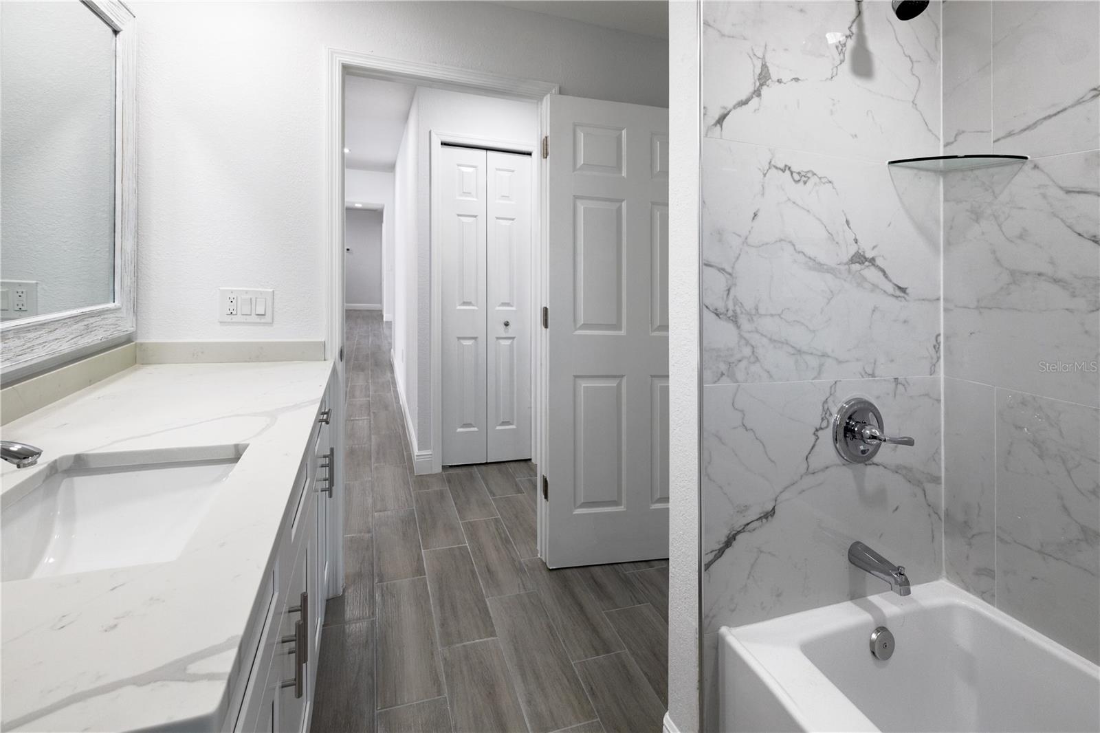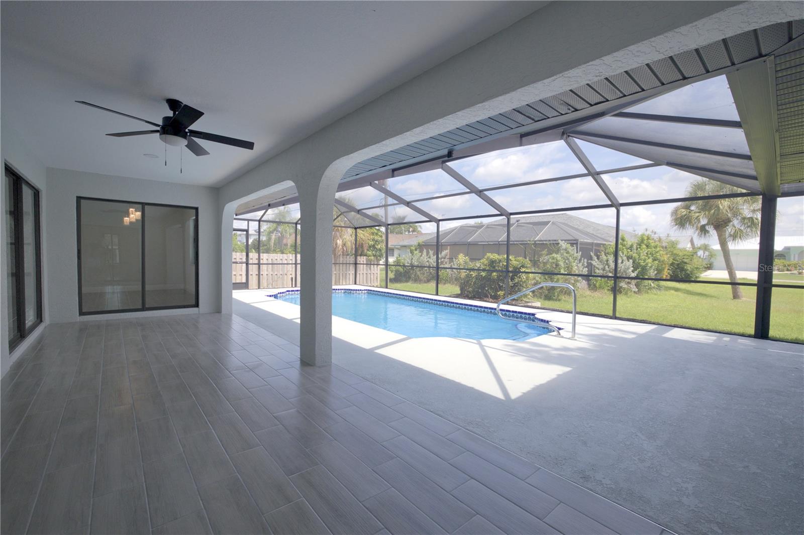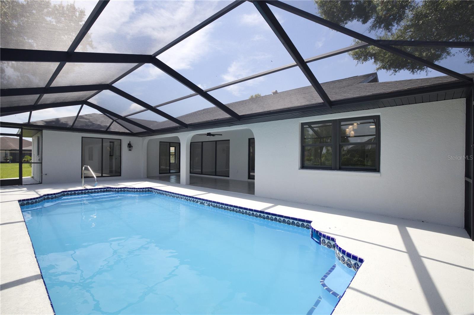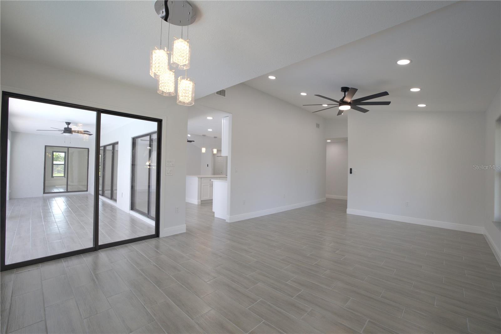 BEAUTIFULLY UPDATED 4 Bedroom, 3 Bathroom, 2 Car Garage, Pool home with a Family room located in Gulf Cove. CLICK ON THE VIRTUAL TOUR LINK 1 FOR THE VIDEO AND VIRTUAL LINK 2 FOR THE 3D TOUR. Featuring a bright & open floor plan, high & vaulted ceilings, tile flooring throughout, recessed & pendant lighting, and MUCH MORE! Entertain your friends and family in your kitchen/living room combo that has a large glass slider to the pool. The kitchen offers ALL stainless appliances, Quartz countertops, a breakfast bar with pendant lighting, an oversized walk-in pantry, and plenty of cabinets for storage. The family room also expands your living and entertaining space. The spacious master bedroom has HIS & HERS closets, a slider to the pool, and a private en-suite bathroom with a dual sink vanity, linen closet, walk-in shower, and water closet. A versatile room off of the master has a built-in closet, a glass slider to the lanai and a full bathroom, whether you need an additional bedroom, office or media room, the possibilities are endless. The additional guest rooms are on a split floorplan offering plenty of privacy, with built-in closets and a shared guest bathroom nearby. Sip your morning coffee or unwind with your favorite evening beverage on the covered lanai. Soak up the sun from the pool deck or dive into the crystal waters of a private pool. Gulf Cove has a voluntary HOA providing the community with year-round events and fundraisers, a family-friendly private waterfront park and playground complete with a pavilion and picnic tables for members, and a private property owner-maintained boat ramp. Schedule your showing TODAY!