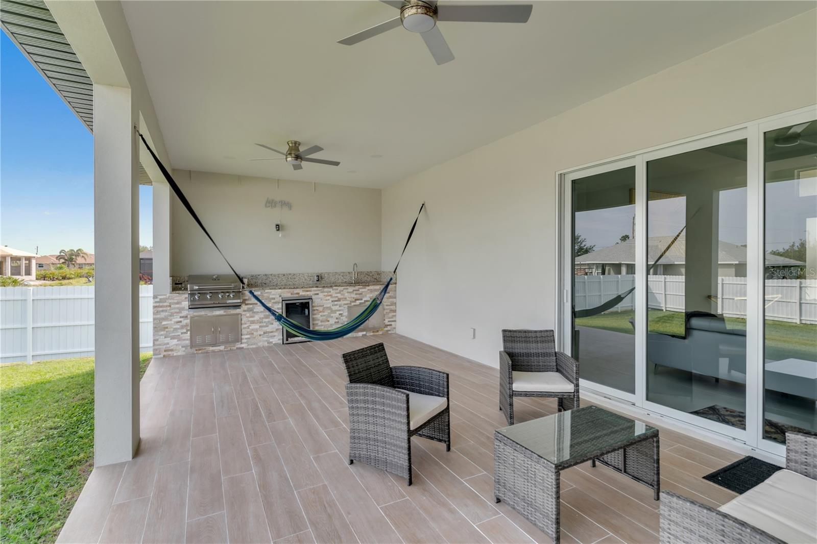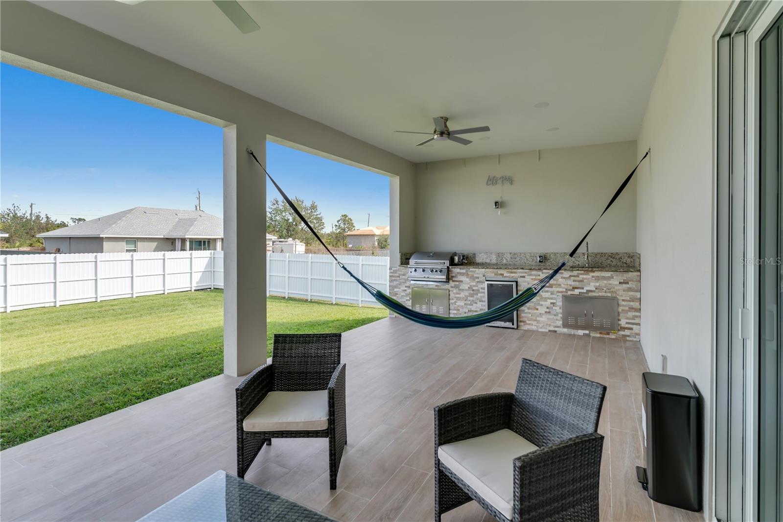Welcome to this stunning new construction home, where contemporary design meets comfort and functionality. Boasting 4 spacious bedrooms and 3 luxurious bathrooms, this residence is perfect for modern living. The heart of the home is its expansive, open-concept kitchen and living area, designed for both everyday living and entertaining. The kitchen features top-of-the-line finishes and appliances, while the adjoining open space seamlessly integrates with the outdoor kitchen, making it an entertainer’s paradise. Step inside to find elegant 48x48 tiles that lend a sophisticated touch throughout the home. Custom-designed closets offer both style and practicality, ensuring ample storage for your needs. The charming stone facade at the front of the house adds curb appeal and a classic touch. Outside, enjoy the privacy and security of a fully fenced yard, along with a built-in sprinkler system that keeps your landscaping lush and well-maintained with minimal effort. Every detail of this home has been carefully considered to provide a seamless blend of luxury and convenience. Don’t miss this opportunity to own a beautifully designed, move-in-ready home that combines modern elegance with everyday functionality. Schedule your tour today!