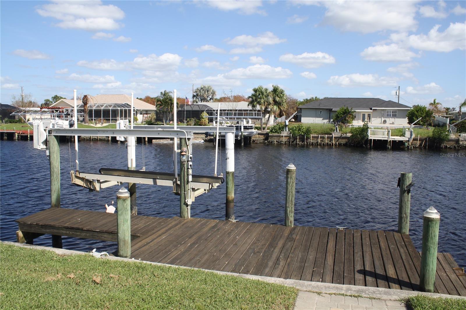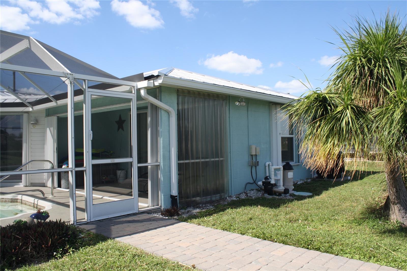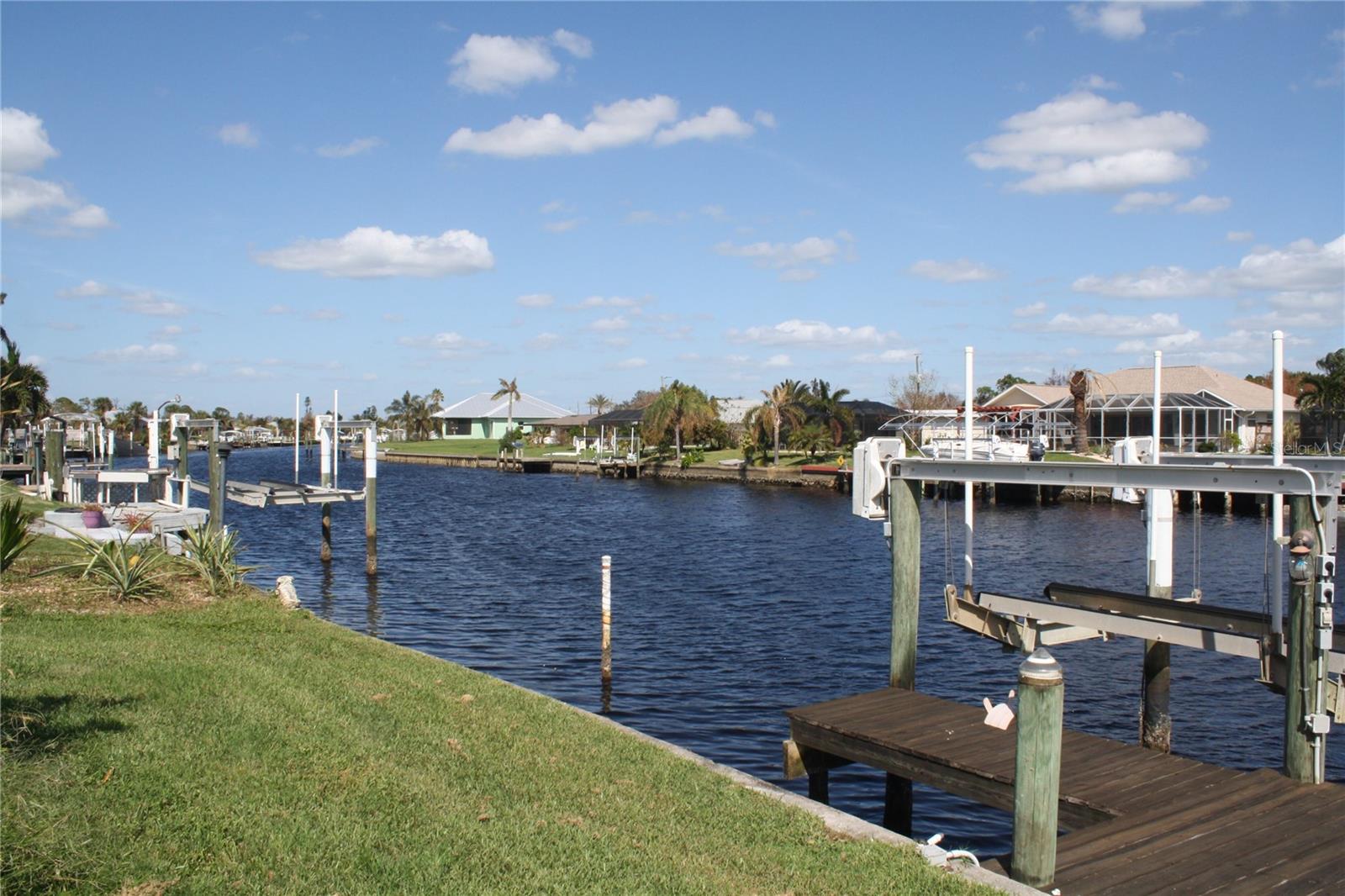 Welcome to Paradise, where you can boat from your backyard! This nicely remodeled turn key home with 115 feet of concrete seawall on a wide saltwater canal has only one bridge to the Peace River. The river joins Charlotte Harbor and meets up with the Gulf of Mexico. A resurfaced dock and 10k boat lift are already in place for your convenience. The house has complete hurricane protection, a new steel roof in 2022, along with new steel garage service doors, a new circular concrete driveway and a steel ceiling in the garage. New since 2018: a 5-ton A.C. unit and new ductwork, water heater and lines, refrigerator, washer/dryer, and induction cooktop. The electric line from the pole to the home has been buried underground. A new pool heater was added in 2019, a shed in 2021 and the pool was resurfaced in 2022. Also new since 2019: Gutters, attic insulation, baseboards, a 50-amp RV plug in, kitchen backsplash and epoxy floors. Also, pavers were added down to the dock area and the ceilings were scraped and retextured in 2020. No hurricane damage...move in ready!