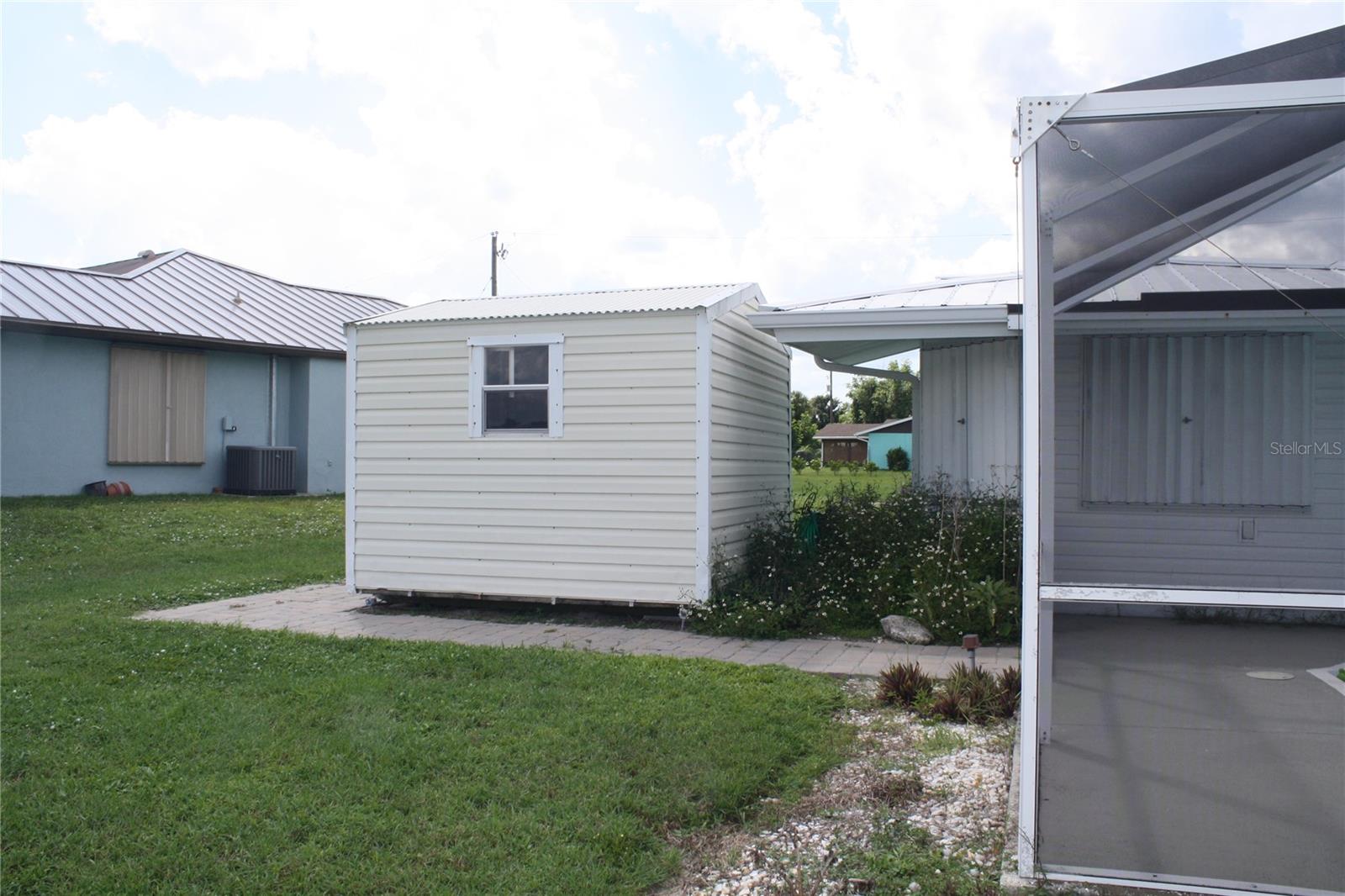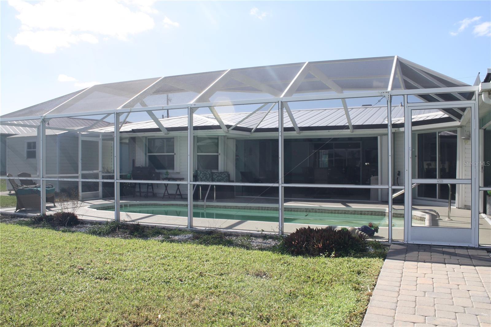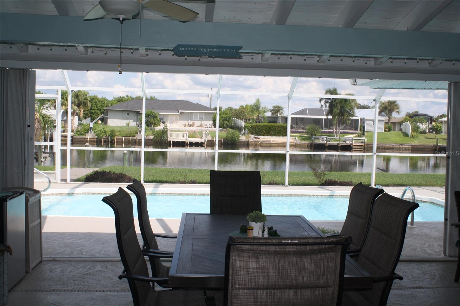 Welcome to Paradise, where you can boat from your backyard! This nicely remodeled turn key home with 115 feet of concrete seawall on a wide saltwater canal has only one bridge to the Peace River. The river joins Charlotte Harbor and meets up with the Gulf of Mexico. A resurfaced dock and 10k boat lift are already in place for your convenience. The house has complete hurricane protection, a new steel roof in 2022, along with new steel garage service doors, a new circular concrete driveway and a steel ceiling in the garage. New since 2018: a 5-ton A.C. unit and new ductwork, water heater and lines, refrigerator, washer/dryer, and induction cooktop. The electric line from the pole to the home has been buried underground. A new pool heater was added in 2019, a shed in 2021 and the pool was resurfaced in 2022. Also new since 2019: Gutters, attic insulation, baseboards, a 50-amp RV plug in, kitchen backsplash and epoxy floors. Also, pavers were added down to the dock area and the ceilings were scraped and retextured in 2020. No hurricane damage...move in ready!