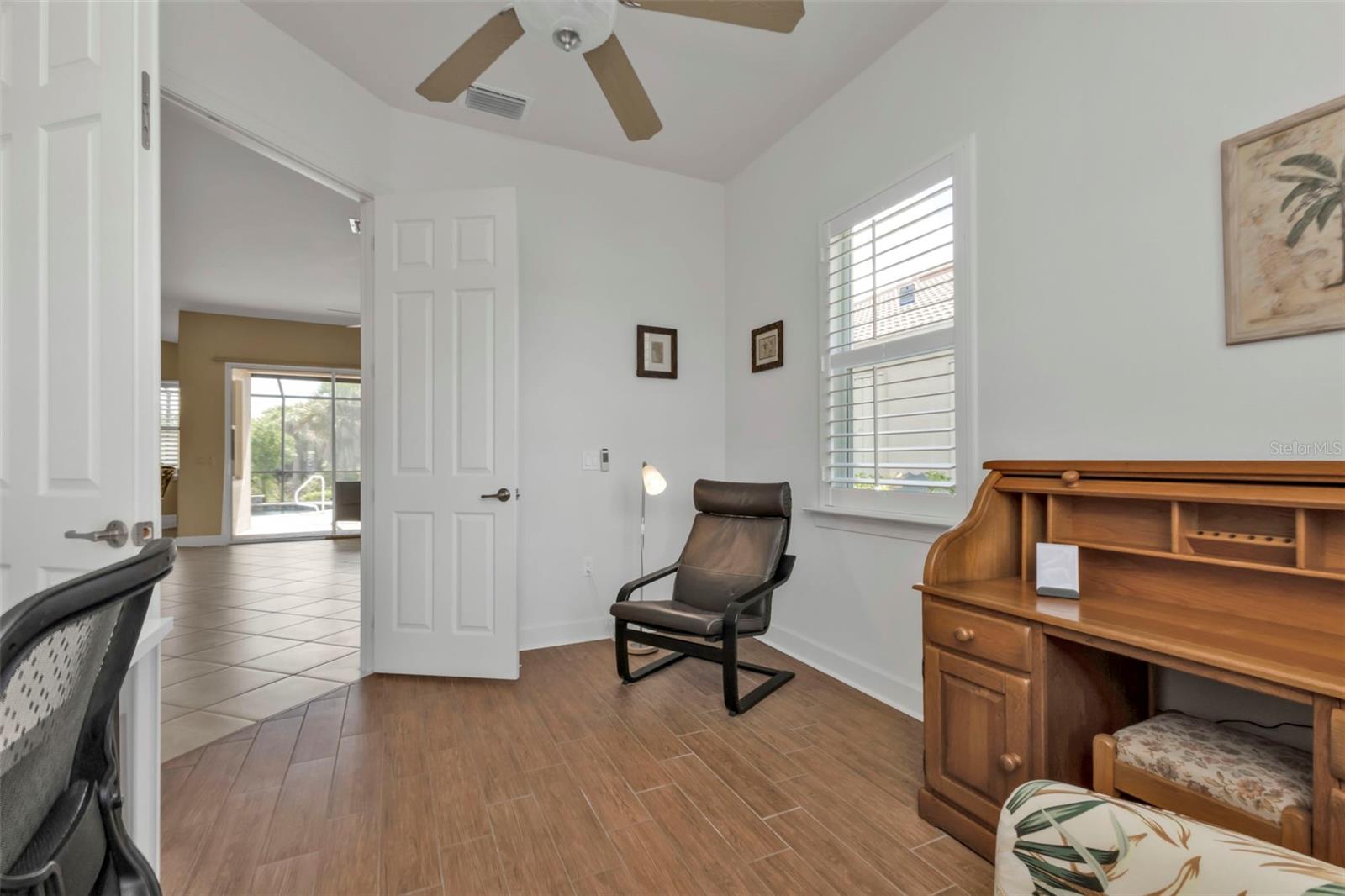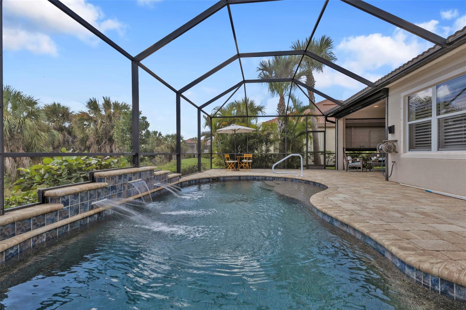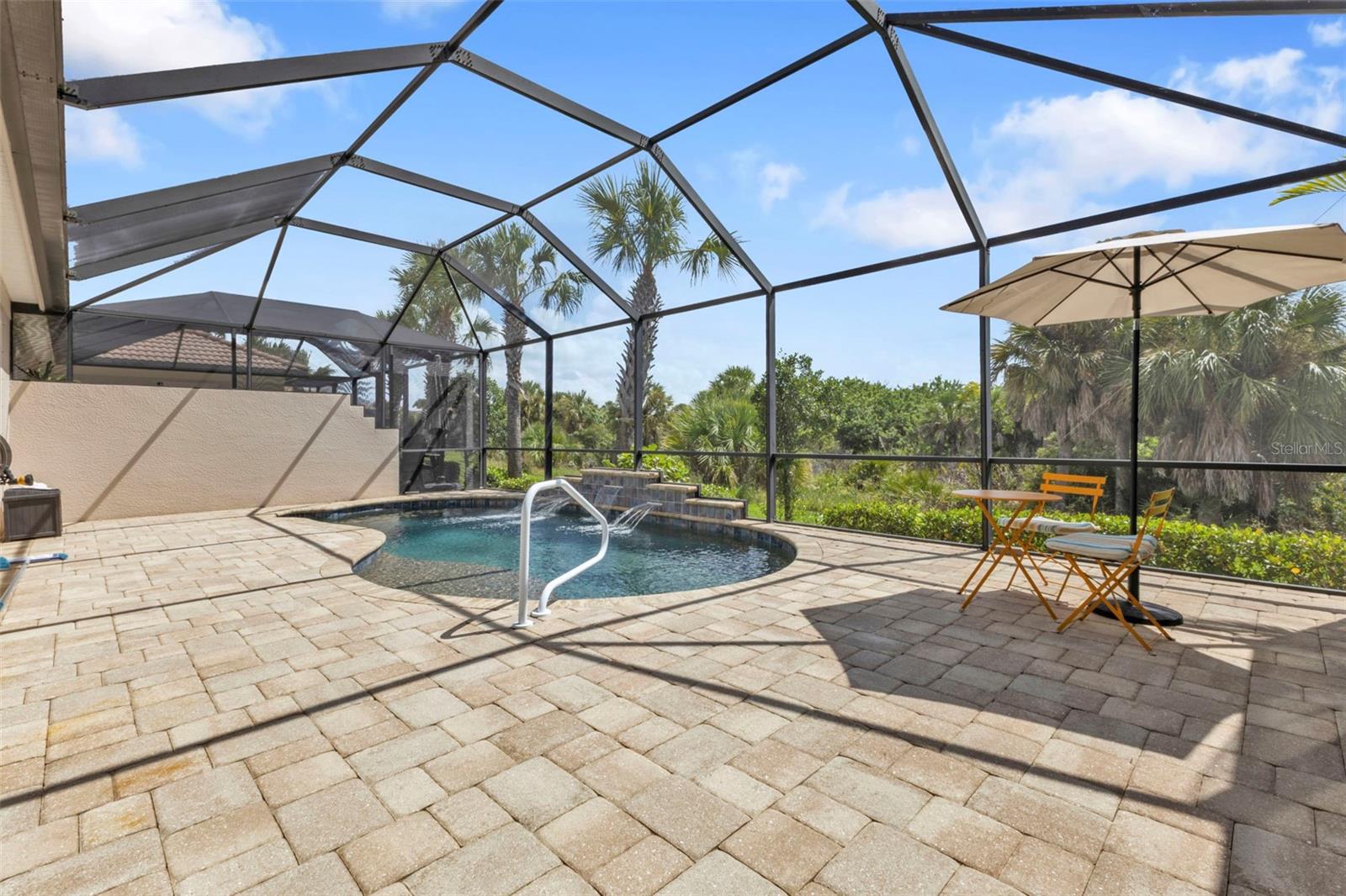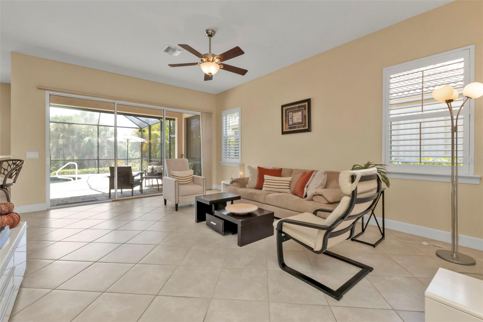 Enjoy RESORT STYLE LIVING with this 2 Bedroom, 2 Bathroom, 2 Car Garage, Pool Villa with a Den located in the GATED Riverwood Community. CLICK ON THE VIRTUAL TOUR LINK 1 FOR THE VIDEO AND VIRTUAL LINK 2 FOR THE 3D TOUR. Featuring a bright & airy floor plan, tile flooring in the main living areas, high ceilings, plantation shutters, recessed & pendant lighting, and MUCH MORE! Spend quality time with friends and family in the open living room while whipping up family favorites in the kitchen. The kitchen offers ALL Stainless-steel appliances, granite countertops, plenty of cabinets for storage, a breakfast counter, closet pantry, and an off kitchen dinette. The spacious master bedroom has a walk-in closet, and a private bathroom with a dual sink vanity, soaking tub, and walk-in shower. The guest room has a built-in closet and a guest bathroom with a tub/shower combo nearby. A private oasis awaits on the extended lanai where you can sip your morning coffee or unwind with your favorite evening beverage. Dip into a private HEATED saltwater pool or soak up the sun from the pool deck. 2011 ROOF - 2024 INTERIOR PAINTED - 2024 HOT WATER HEATER - PLANTATION SHUTTERS THROUGHOUT - 2023 POOL HEATER PUMP - ROLL DOWN HURRICANE SHUTTER ON LANAI. SawGrass Pointe at Riverwood is an active community offering a Clubhouse, two community pools, tennis & pickleball courts, bocce ball, a croquet field, as well as a fitness center, library, arts & crafts room, and a variety of scheduled community events and activities! Conveniently located close to US-41 with easy access to local shopping, fine & casual dining spots, LIVE entertainment, biking, boating, and Englewood's beautiful beaches are just a short drive away, providing an opportunity to soak up the sun, swim in crystal-clear waters, or indulge in beachfront dining. Schedule your showing TODAY!