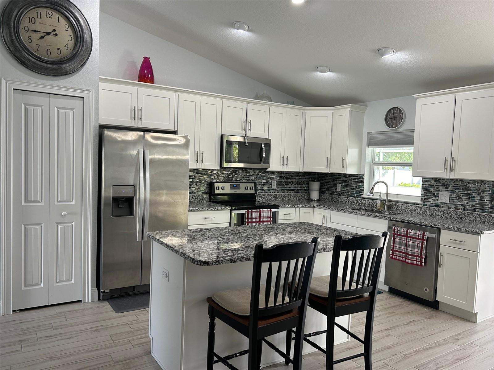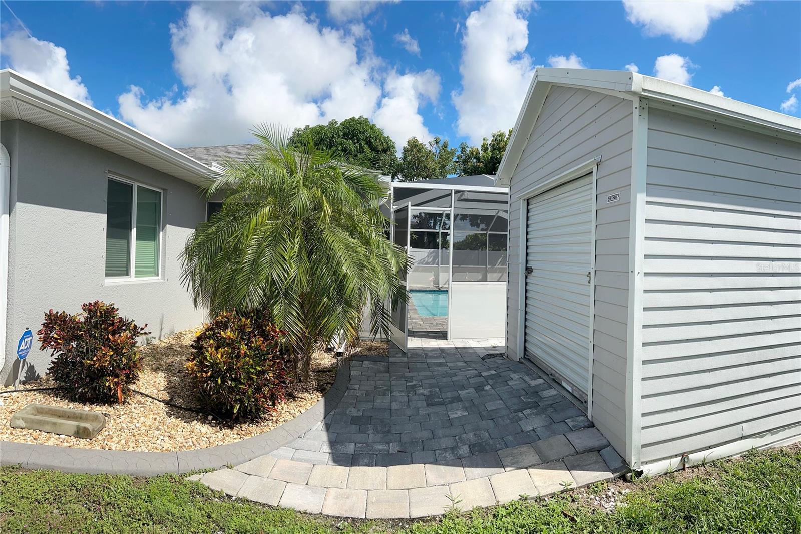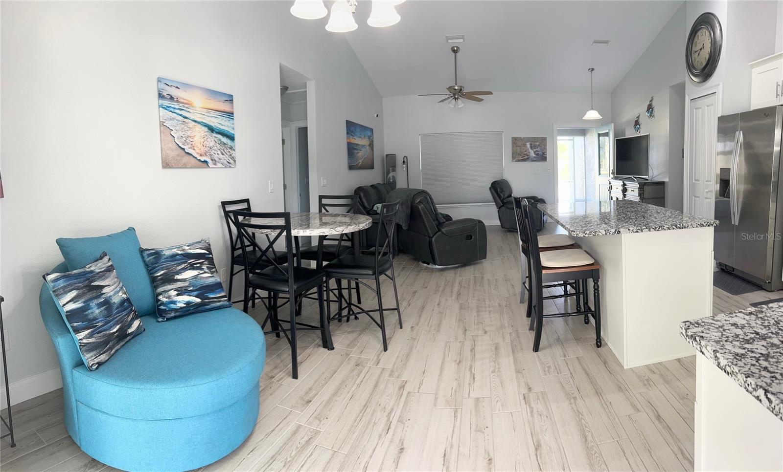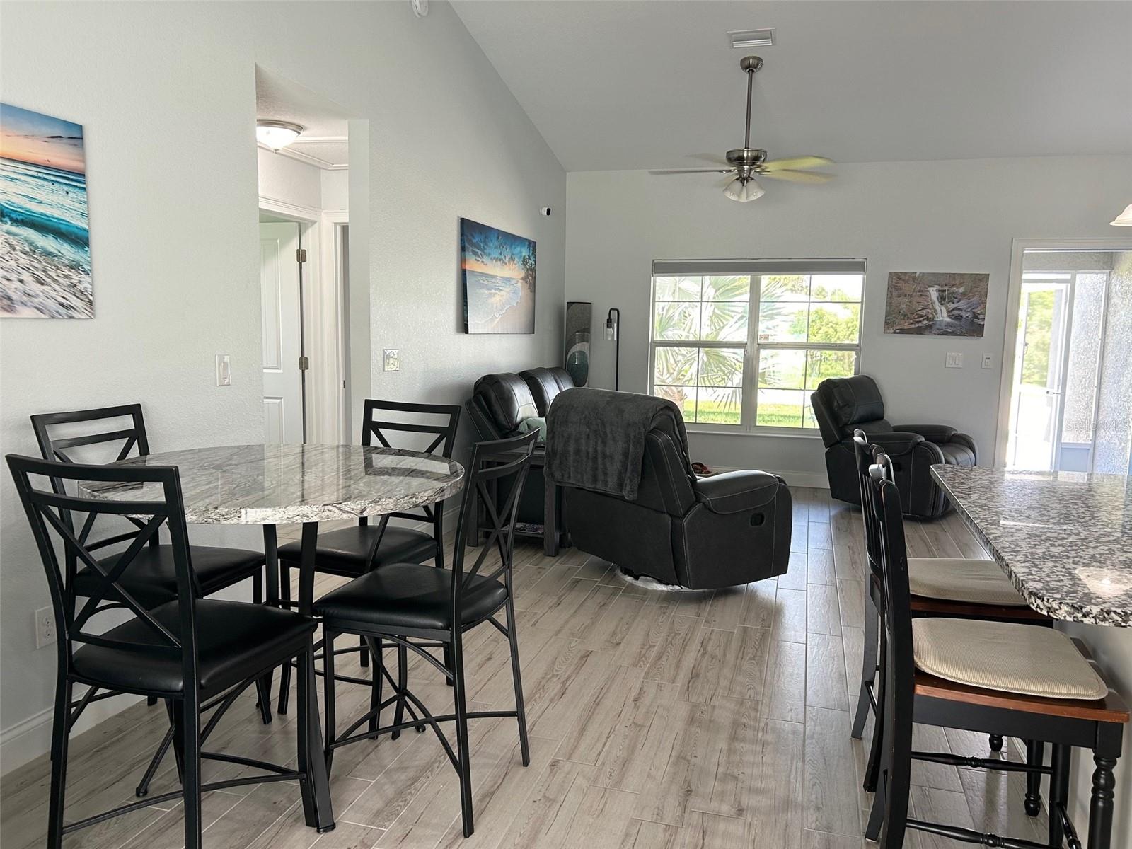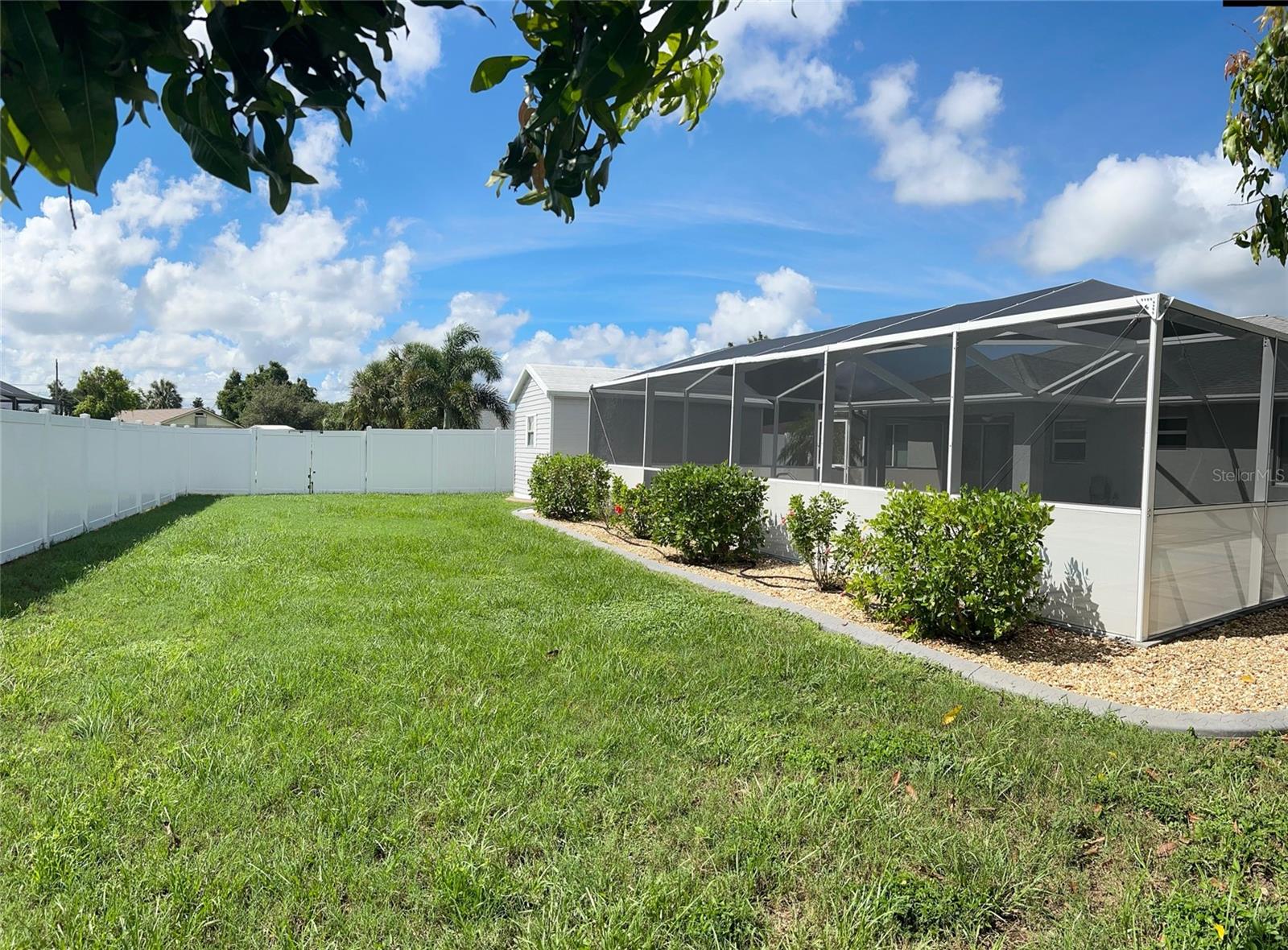 NEW Price!! WOW! Beautiful 2017 POOL HOME on a large corner lot ready for you! As you pull in your driveway, notice the large Extra parking pad, the Tropical Bismarck palm tree and landscape curbing. Come on in! Large screened, front entry porch with pebble tech flooring leads to your NEW home. Open floor plan, high ceilings, specialty lighting and fans. Plank ceramic tile thru all main areas. Living room opens to specialty kitchen with breakfast bar and dining area. Kitchen has closet pantry, wood, soft close cabinets, Granite countertops, tiled backsplash. The Dining area with sliders to the covered lanai area and Gorgeous saltwater, heated POOL! Split bedrooms, Master BR has a pool view. Lovely trey ceiling, Large walk-in closet w pocket door and Master bath. Wow, Gorgeous tiled shower with mosaic pebble floor. Comfort height vanity with granite top. Bedroom two and three on the other side with hall linen closet & full hall bath. The Large laundry room has shelving, cabinets & wash sink is located by the MBR. The 2 car garage has AC/heat mini split system, pebble-tech flooring. Side door goes out to the 20x10 parking pad. Additional 200 sq ft of paved parking. Large backyard, vinyl Fenced leads to Refreshing (25x12) SALTWATER Pool which was added in 2020. w electric heater. Pool cage, Screened-in lanai has a covered seated area. There is a Large shed & paver patio. Home has Coded front entry door. Security system in place. Nothing to do but ENJOY!!