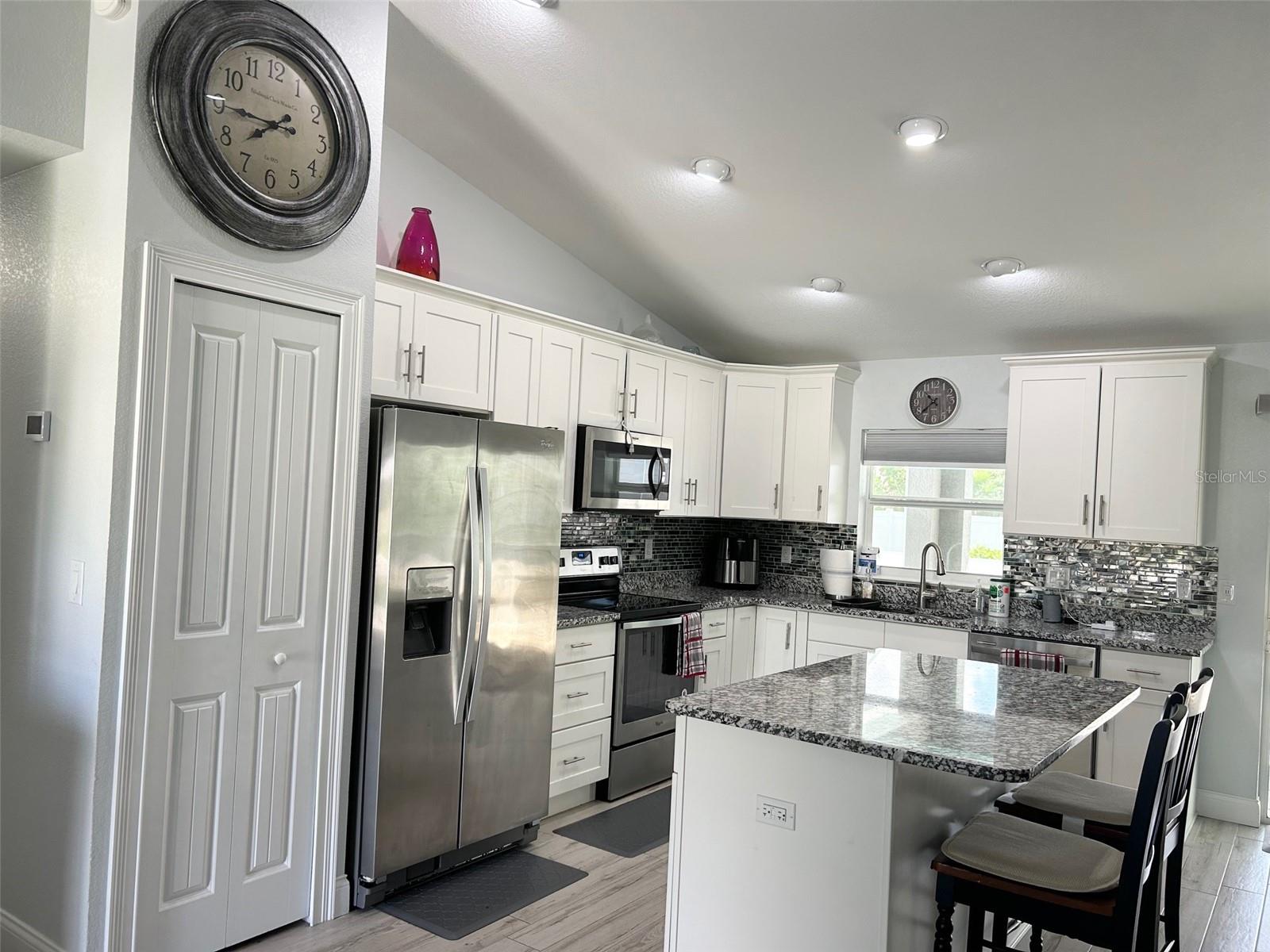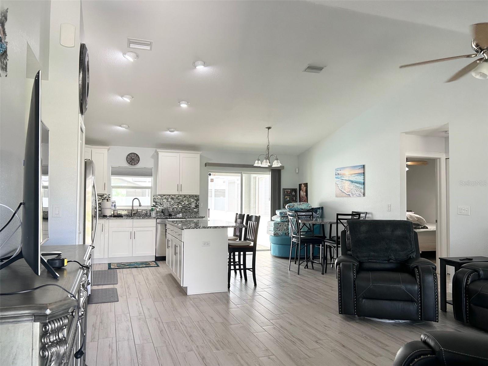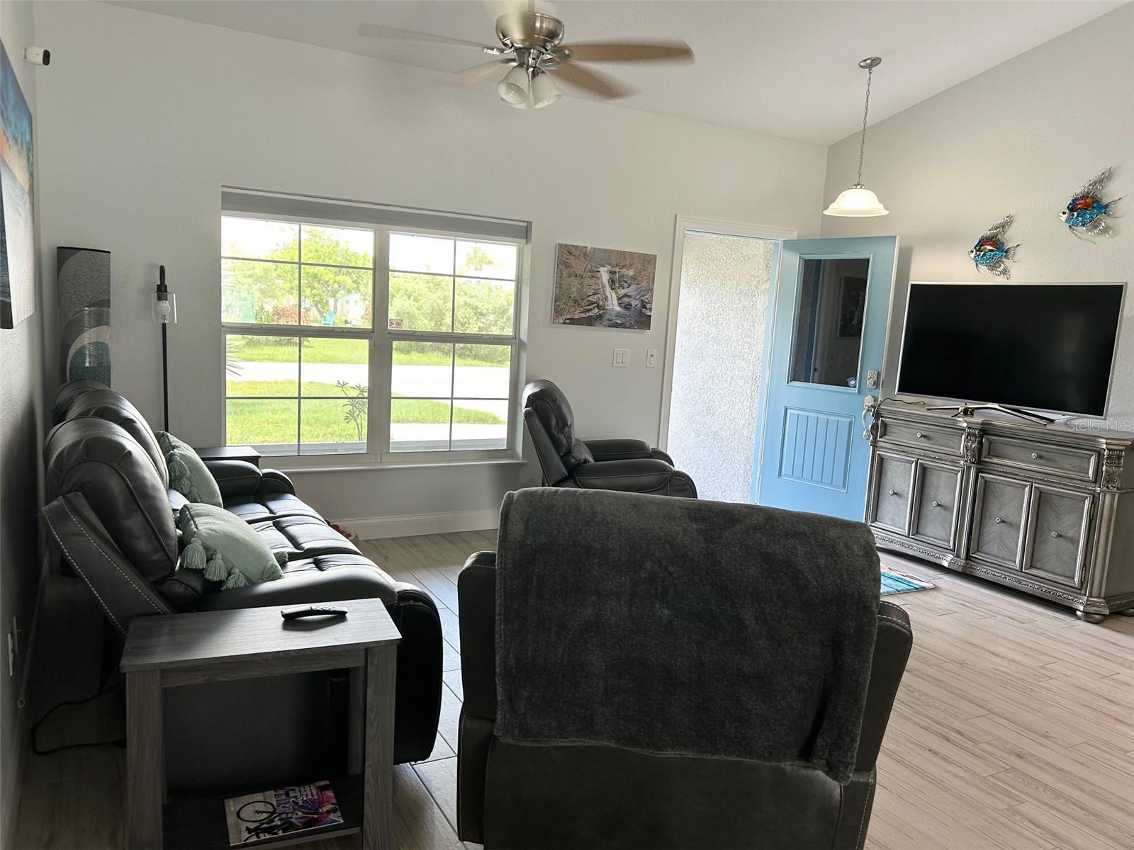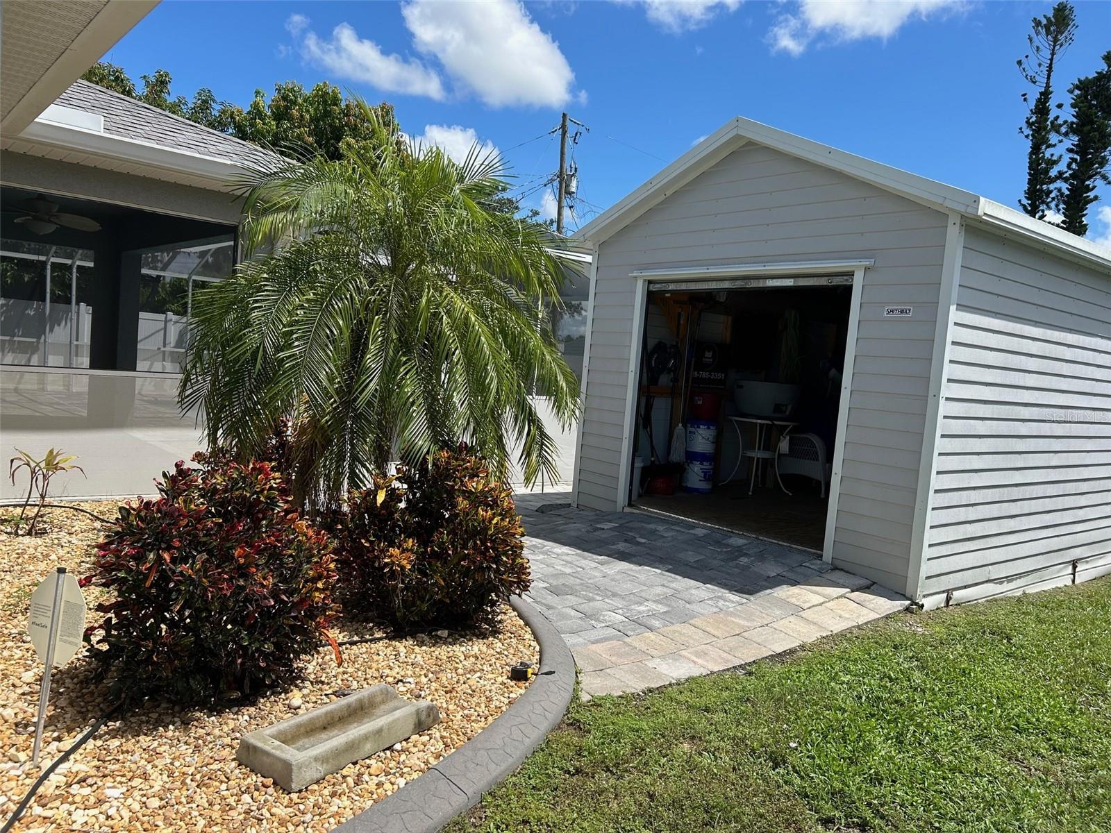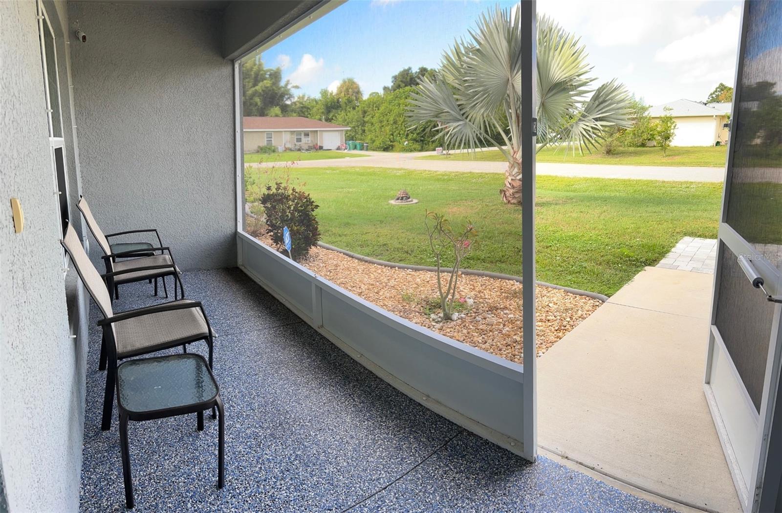 NEW Price!! WOW! Beautiful 2017 POOL HOME on a large corner lot ready for you! As you pull in your driveway, notice the large Extra parking pad, the Tropical Bismarck palm tree and landscape curbing. Come on in! Large screened, front entry porch with pebble tech flooring leads to your NEW home. Open floor plan, high ceilings, specialty lighting and fans. Plank ceramic tile thru all main areas. Living room opens to specialty kitchen with breakfast bar and dining area. Kitchen has closet pantry, wood, soft close cabinets, Granite countertops, tiled backsplash. The Dining area with sliders to the covered lanai area and Gorgeous saltwater, heated POOL! Split bedrooms, Master BR has a pool view. Lovely trey ceiling, Large walk-in closet w pocket door and Master bath. Wow, Gorgeous tiled shower with mosaic pebble floor. Comfort height vanity with granite top. Bedroom two and three on the other side with hall linen closet & full hall bath. The Large laundry room has shelving, cabinets & wash sink is located by the MBR. The 2 car garage has AC/heat mini split system, pebble-tech flooring. Side door goes out to the 20x10 parking pad. Additional 200 sq ft of paved parking. Large backyard, vinyl Fenced leads to Refreshing (25x12) SALTWATER Pool which was added in 2020. w electric heater. Pool cage, Screened-in lanai has a covered seated area. There is a Large shed & paver patio. Home has Coded front entry door. Security system in place. Nothing to do but ENJOY!!