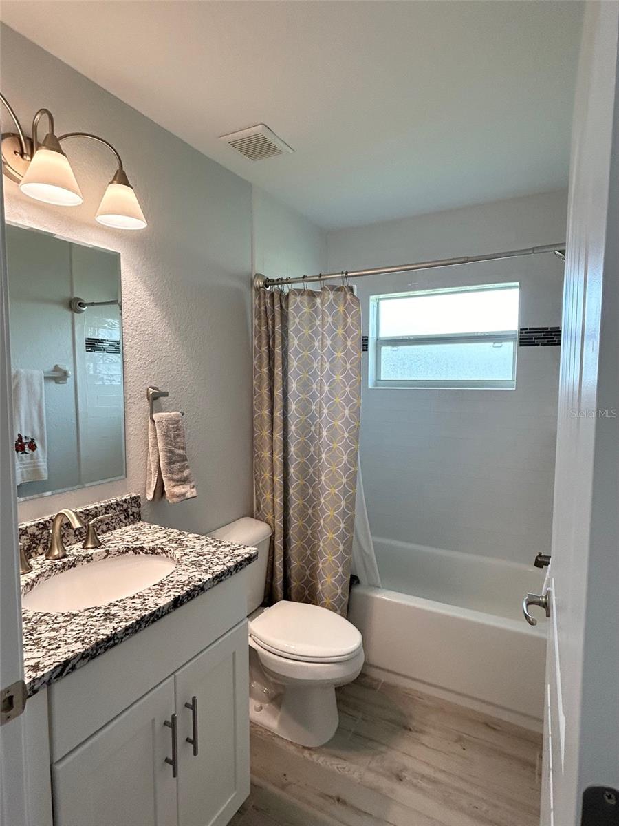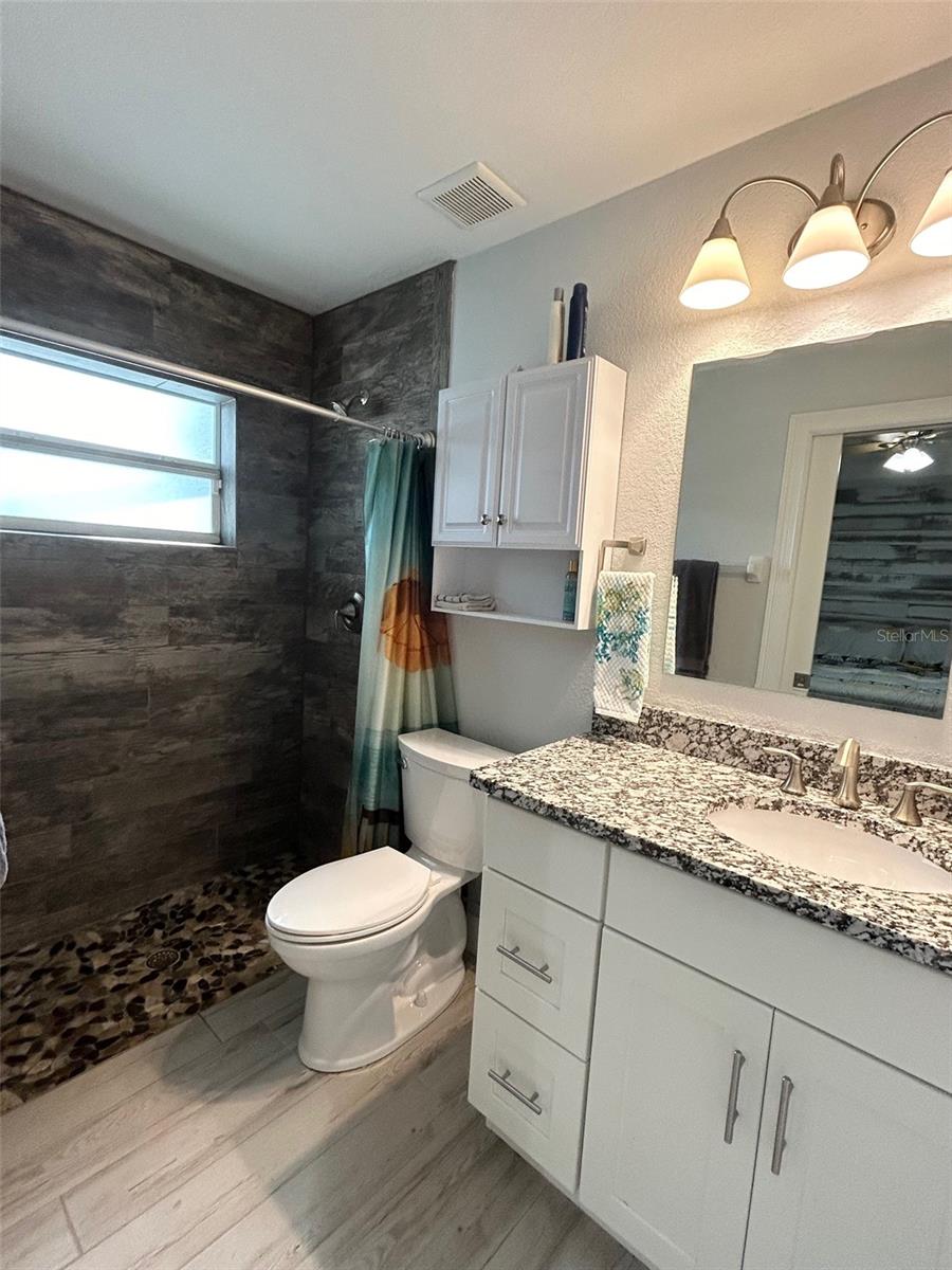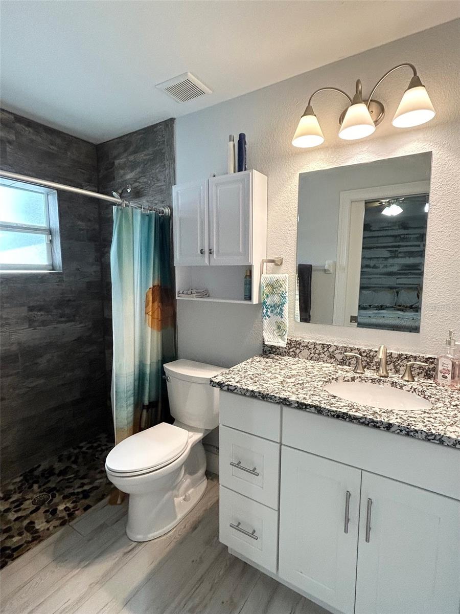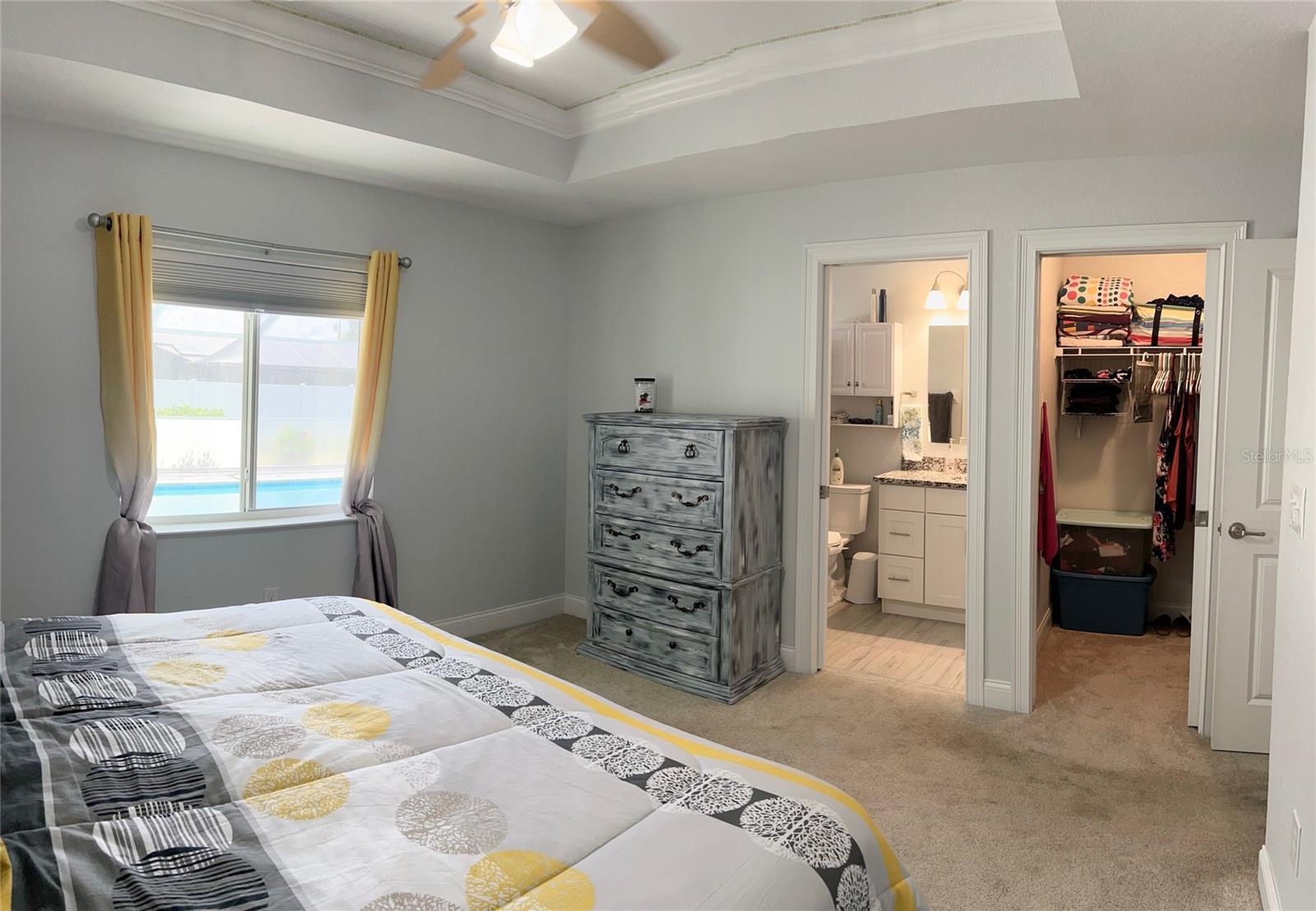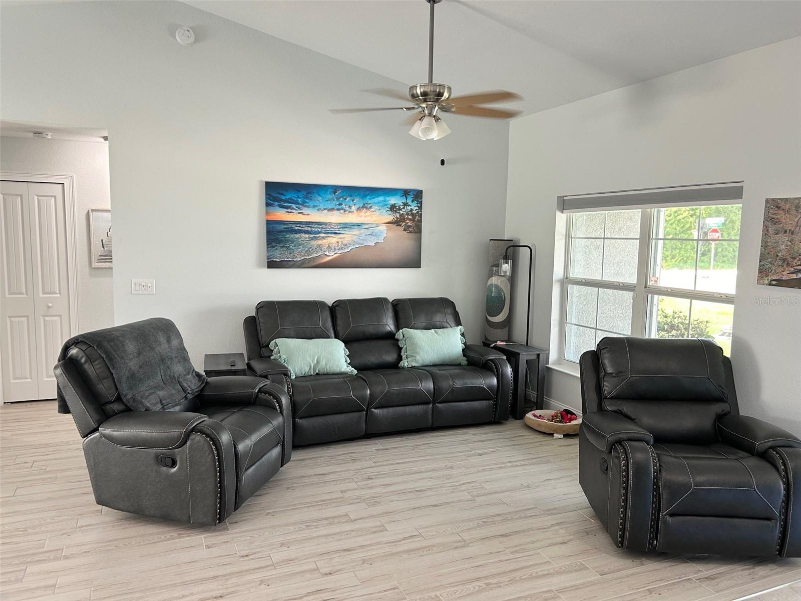 NEW Price!! WOW! Beautiful 2017 POOL HOME on a large corner lot ready for you! As you pull in your driveway, notice the large Extra parking pad, the Tropical Bismarck palm tree and landscape curbing. Come on in! Large screened, front entry porch with pebble tech flooring leads to your NEW home. Open floor plan, high ceilings, specialty lighting and fans. Plank ceramic tile thru all main areas. Living room opens to specialty kitchen with breakfast bar and dining area. Kitchen has closet pantry, wood, soft close cabinets, Granite countertops, tiled backsplash. The Dining area with sliders to the covered lanai area and Gorgeous saltwater, heated POOL! Split bedrooms, Master BR has a pool view. Lovely trey ceiling, Large walk-in closet w pocket door and Master bath. Wow, Gorgeous tiled shower with mosaic pebble floor. Comfort height vanity with granite top. Bedroom two and three on the other side with hall linen closet & full hall bath. The Large laundry room has shelving, cabinets & wash sink is located by the MBR. The 2 car garage has AC/heat mini split system, pebble-tech flooring. Side door goes out to the 20x10 parking pad. Additional 200 sq ft of paved parking. Large backyard, vinyl Fenced leads to Refreshing (25x12) SALTWATER Pool which was added in 2020. w electric heater. Pool cage, Screened-in lanai has a covered seated area. There is a Large shed & paver patio. Home has Coded front entry door. Security system in place. Nothing to do but ENJOY!!