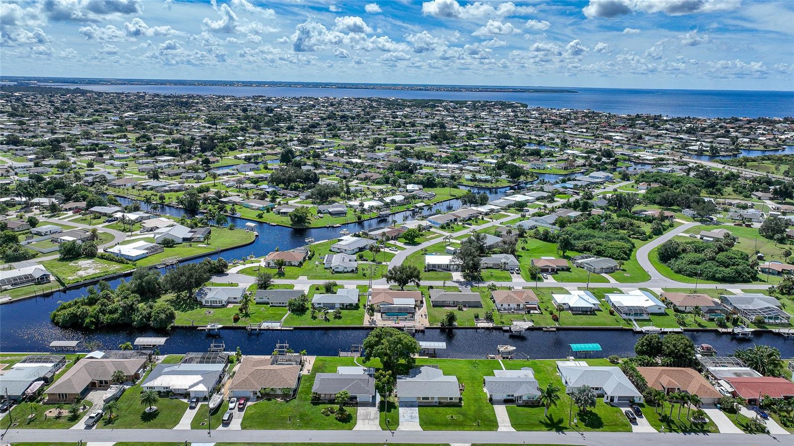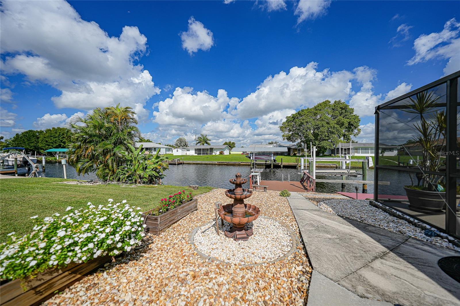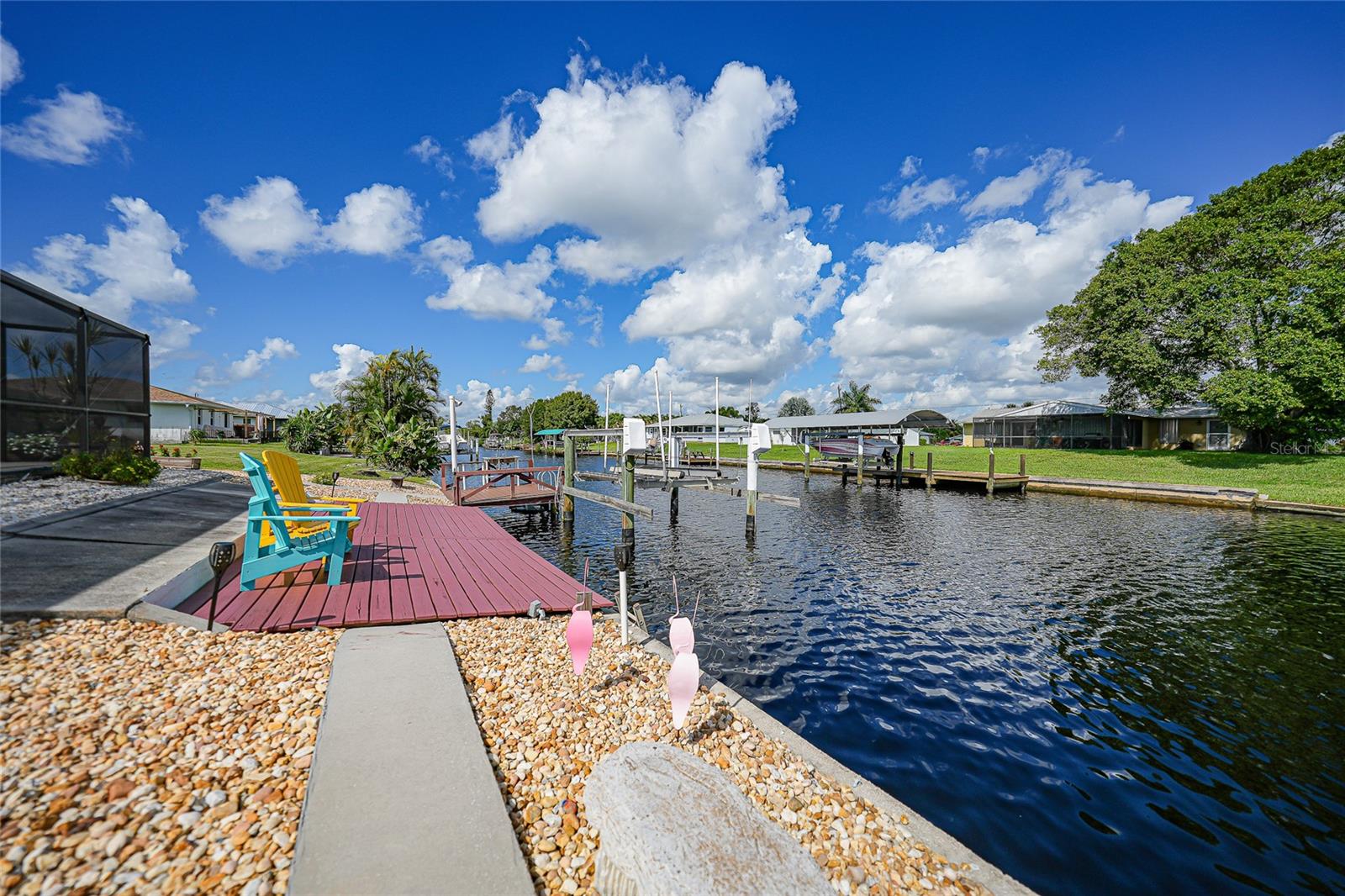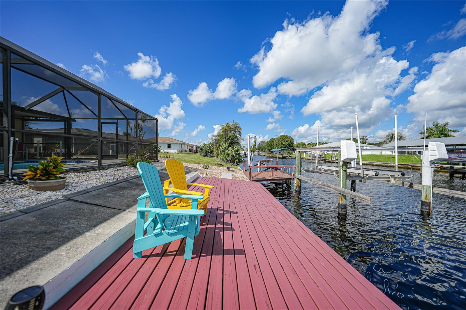 BOATERS DREAM - 5 MINUTES FROM CHARLOTTE HARBOR WITH ACCESS TO THE GULF OF MEXICO! This METICULOUSLY MAINTAINED 3/3/2 POOL home sprawls 2650+ square feet and features a LARGE suite that could easily serve as a 2ND PRIMARY BEDROOM OR HOME OFFICE. The inside of the property boasts a large galley kitchen RECENTLY UPDATED with stylish Corian countertops and custom-made roll-out soft close cabinetry, new backsplash + a pass-through window to the Living Room. NEW Vinyl and Tile flooring throughout the home + charming plantation shutters. The living room is very open featuring a decorative fireplace and built in shelving. Both secondary bedrooms are VERY spacious. HUGE LAUNDRY ROOM + EXTENDED 2 CAR GARAGE with built in storage. The OUTSIDE of the property features a LARGE POOL, 12x24 Composite dock outfitted with an 8000 POUND BOAT LIFT, Concrete walkway around the property, new rock landscaping that will need very little lawn maintenance, recently spray foamed concrete seawall (with approximately 9 years left on the warranty), NEWER FENCE, Irrigation system, Storage shed + MORE. RECENTLY PAINTED EXTERIOR - NEW ROOF (2022) - NEW SOFFIT & FASCIA (2022) - NEW GUTTERS (2022) - NEW DOWNSPOUTS (2022) - IMPACT WINDOWS (DEC. 2020). NO HOA, NO DEED RESTRICTIONS. CITY WATER + CITY SEWER. ASSUMABLE FLOOD INSURANCE POLICY AVAILABLE UPON REQUEST. TV's can stay with the property. This home is located in the heart of Port Charlotte close to lots of Shopping, restaurants, medical offices, hospitals and more. Downtown Punta Gorda and Sunseeker Resort are less than 10 minutes away. Call your agent today for a showing. Trust me, you need to see this one! Be sure to view the 3D VIRTUAL TOUR.