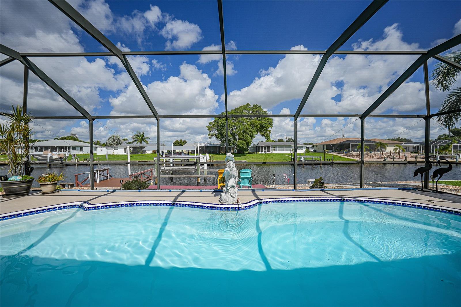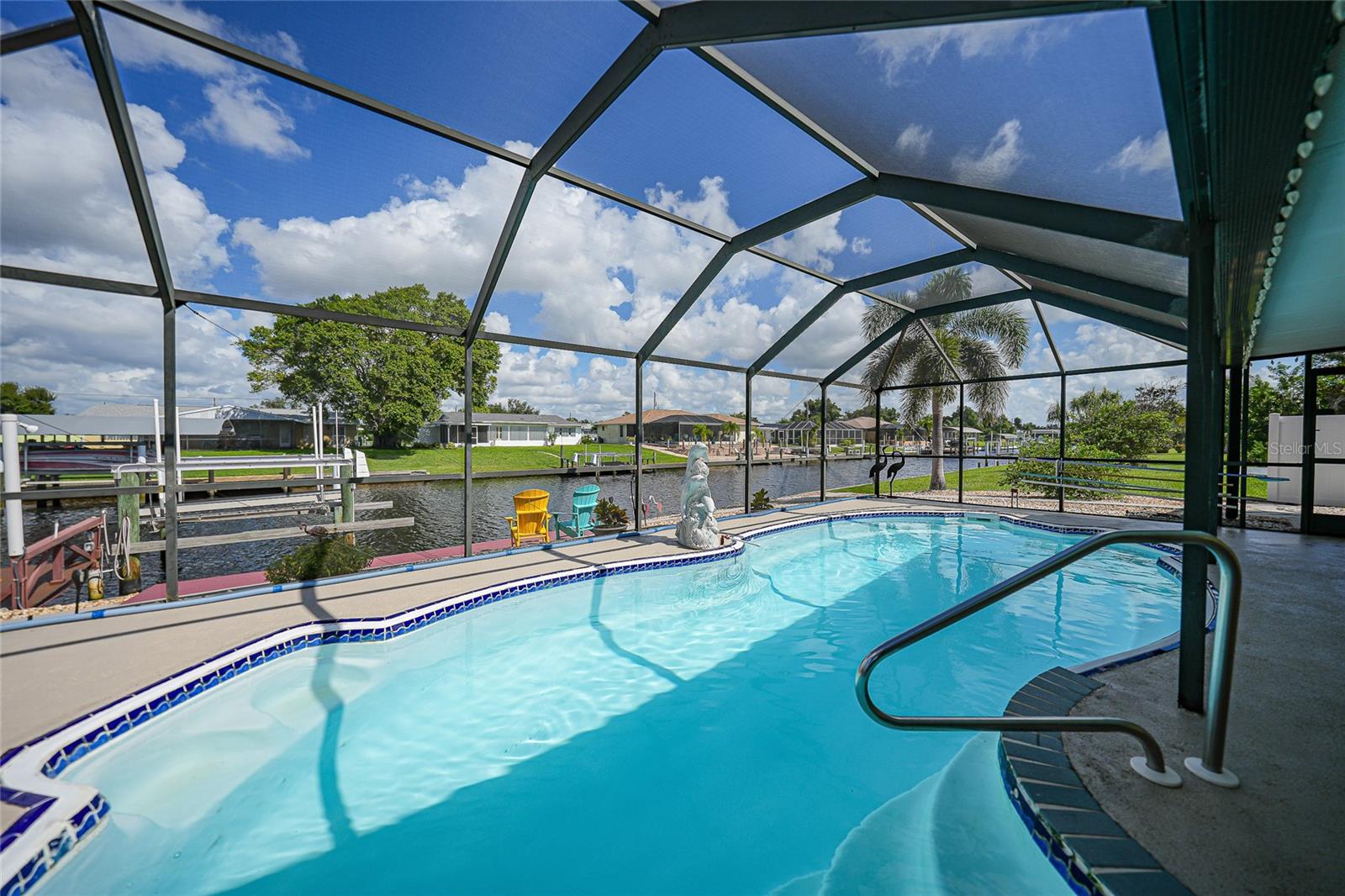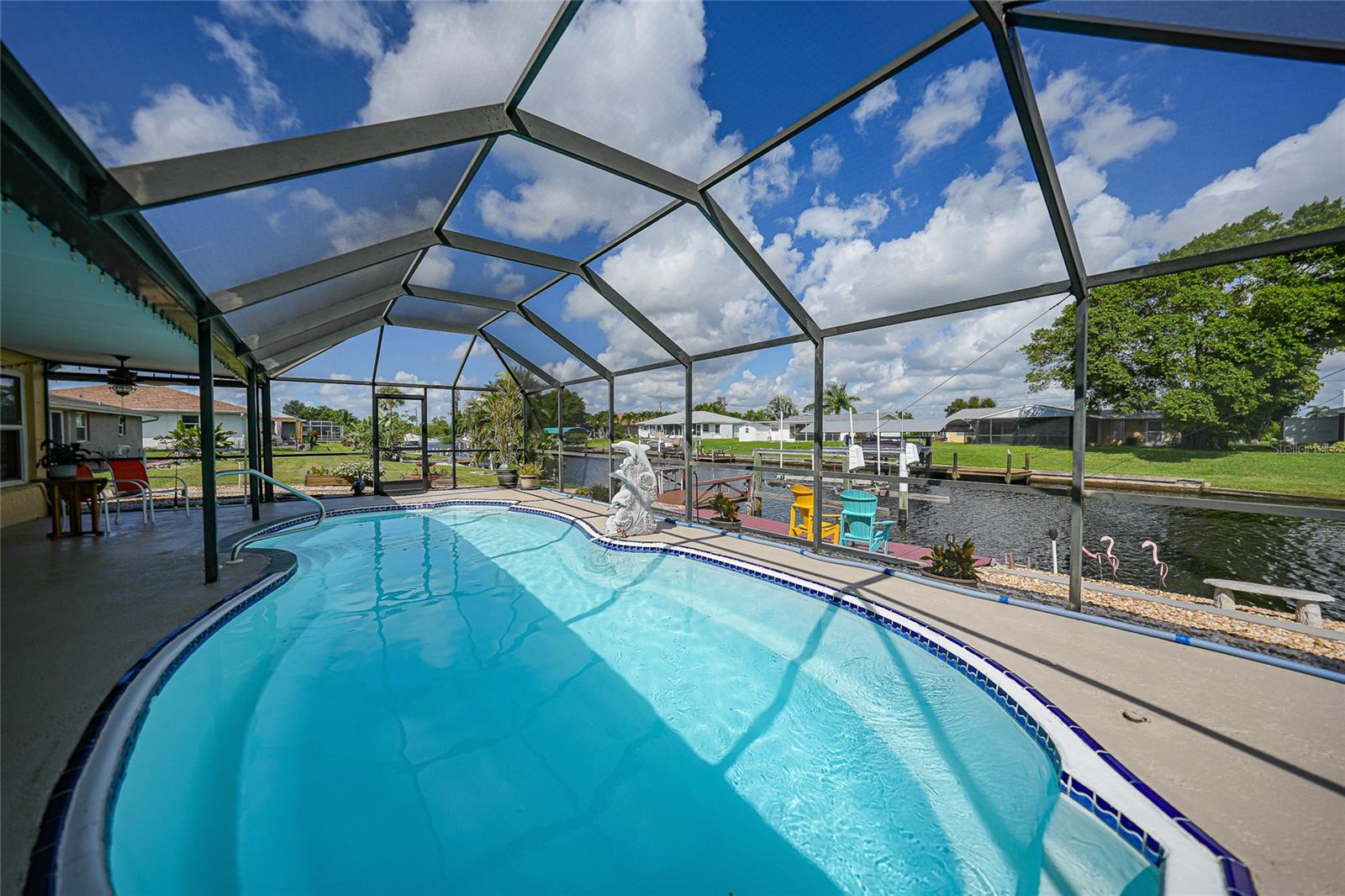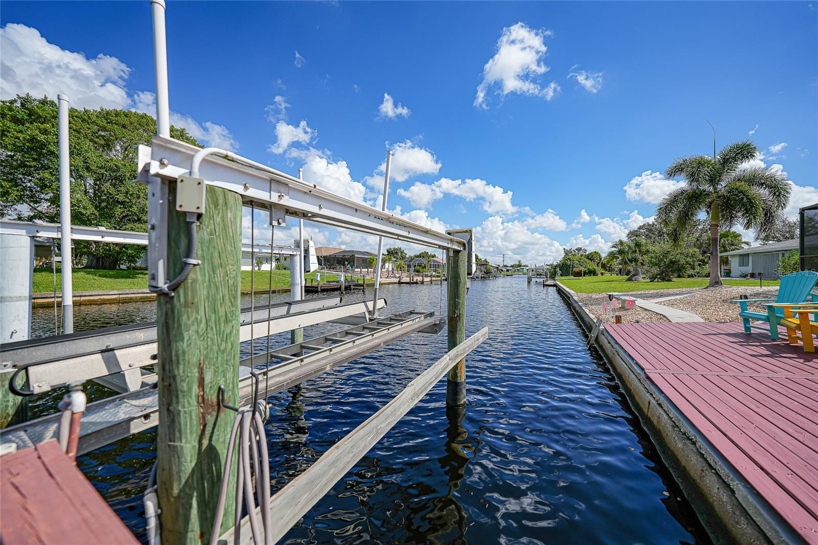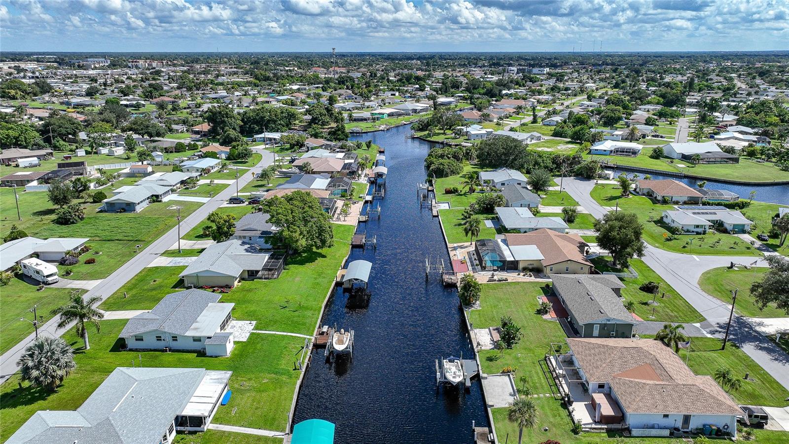 BOATERS DREAM - 5 MINUTES FROM CHARLOTTE HARBOR WITH ACCESS TO THE GULF OF MEXICO! This METICULOUSLY MAINTAINED 3/3/2 POOL home sprawls 2650+ square feet and features a LARGE suite that could easily serve as a 2ND PRIMARY BEDROOM OR HOME OFFICE. The inside of the property boasts a large galley kitchen RECENTLY UPDATED with stylish Corian countertops and custom-made roll-out soft close cabinetry, new backsplash + a pass-through window to the Living Room. NEW Vinyl and Tile flooring throughout the home + charming plantation shutters. The living room is very open featuring a decorative fireplace and built in shelving. Both secondary bedrooms are VERY spacious. HUGE LAUNDRY ROOM + EXTENDED 2 CAR GARAGE with built in storage. The OUTSIDE of the property features a LARGE POOL, 12x24 Composite dock outfitted with an 8000 POUND BOAT LIFT, Concrete walkway around the property, new rock landscaping that will need very little lawn maintenance, recently spray foamed concrete seawall (with approximately 9 years left on the warranty), NEWER FENCE, Irrigation system, Storage shed + MORE. RECENTLY PAINTED EXTERIOR - NEW ROOF (2022) - NEW SOFFIT & FASCIA (2022) - NEW GUTTERS (2022) - NEW DOWNSPOUTS (2022) - IMPACT WINDOWS (DEC. 2020). NO HOA, NO DEED RESTRICTIONS. CITY WATER + CITY SEWER. ASSUMABLE FLOOD INSURANCE POLICY AVAILABLE UPON REQUEST. TV's can stay with the property. This home is located in the heart of Port Charlotte close to lots of Shopping, restaurants, medical offices, hospitals and more. Downtown Punta Gorda and Sunseeker Resort are less than 10 minutes away. Call your agent today for a showing. Trust me, you need to see this one! Be sure to view the 3D VIRTUAL TOUR.