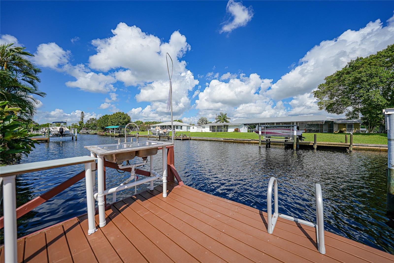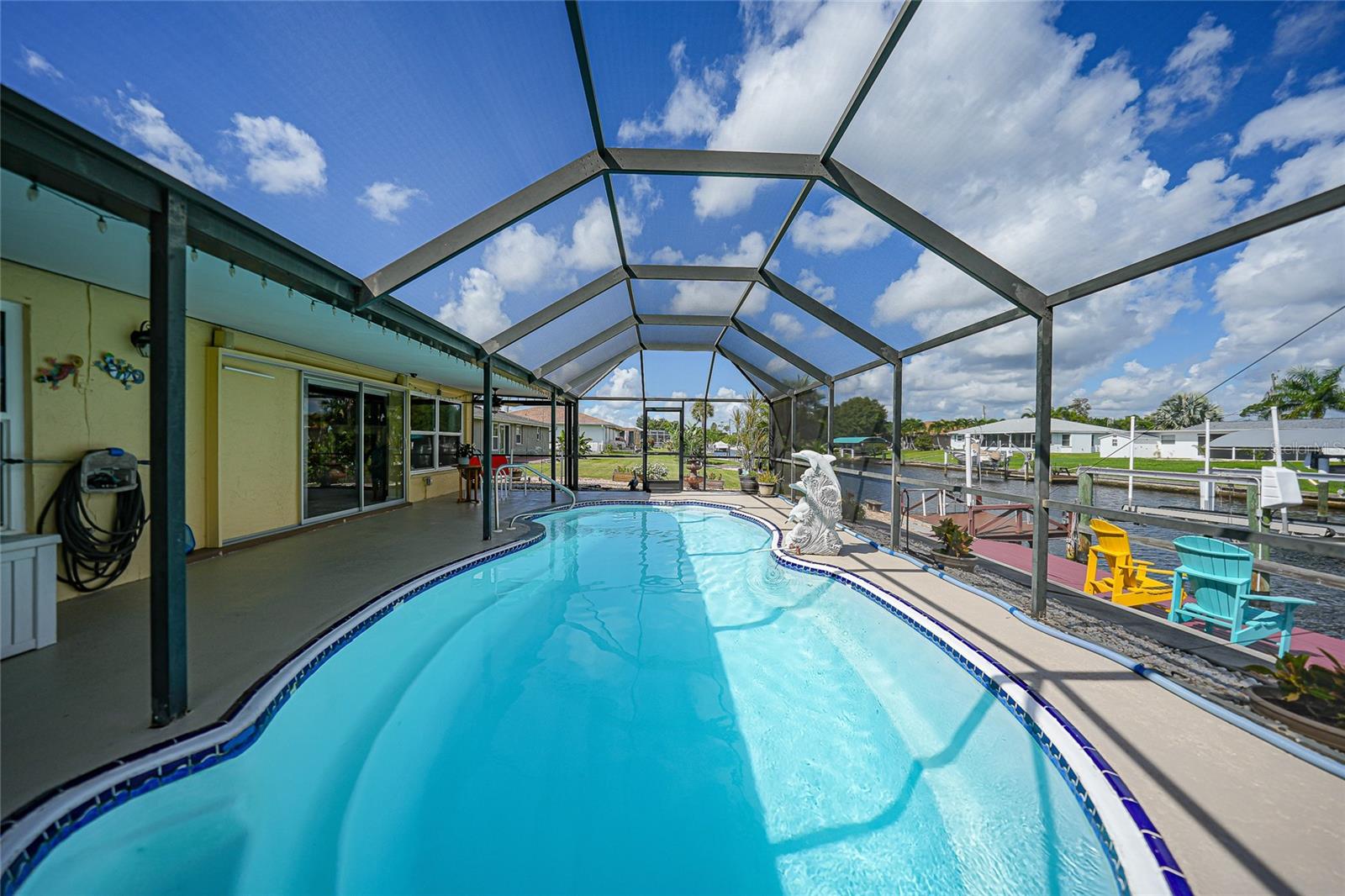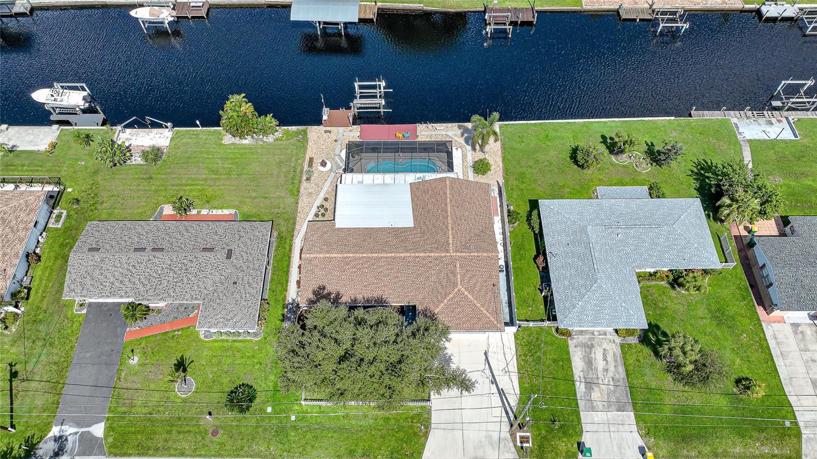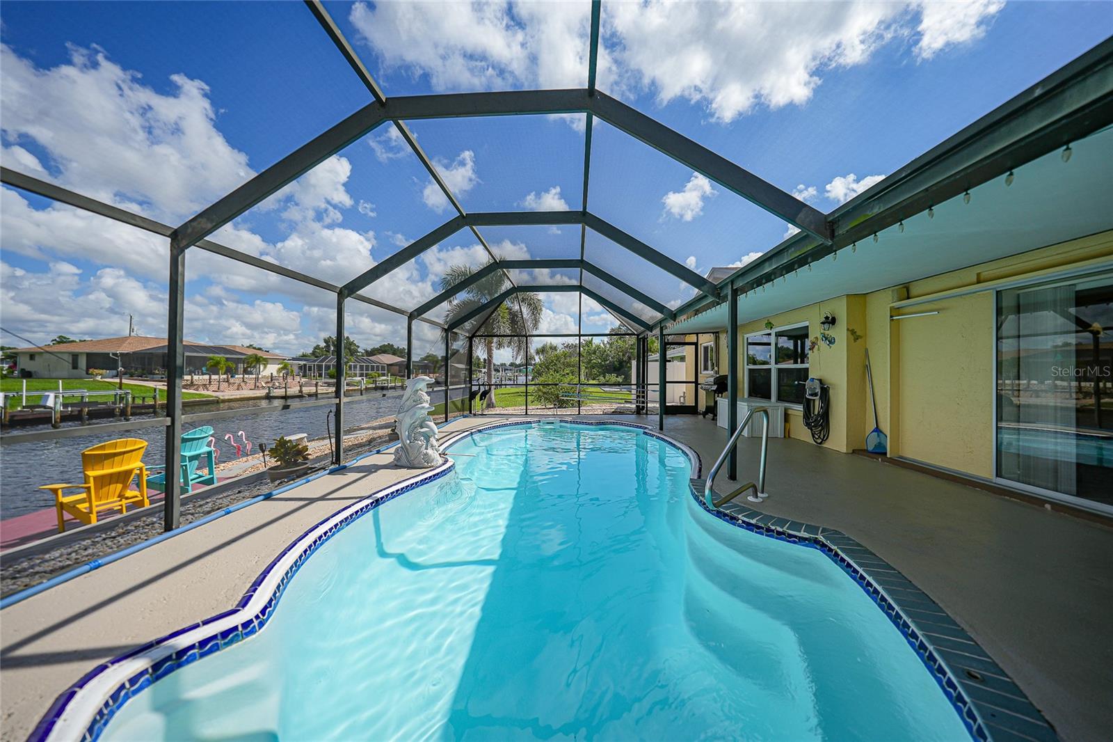 BOATERS DREAM - 5 MINUTES FROM CHARLOTTE HARBOR WITH ACCESS TO THE GULF OF MEXICO! This METICULOUSLY MAINTAINED 3/3/2 POOL home sprawls 2650+ square feet and features a LARGE suite that could easily serve as a 2ND PRIMARY BEDROOM OR HOME OFFICE. The inside of the property boasts a large galley kitchen RECENTLY UPDATED with stylish Corian countertops and custom-made roll-out soft close cabinetry, new backsplash + a pass-through window to the Living Room. NEW Vinyl and Tile flooring throughout the home + charming plantation shutters. The living room is very open featuring a decorative fireplace and built in shelving. Both secondary bedrooms are VERY spacious. HUGE LAUNDRY ROOM + EXTENDED 2 CAR GARAGE with built in storage. The OUTSIDE of the property features a LARGE POOL, 12x24 Composite dock outfitted with an 8000 POUND BOAT LIFT, Concrete walkway around the property, new rock landscaping that will need very little lawn maintenance, recently spray foamed concrete seawall (with approximately 9 years left on the warranty), NEWER FENCE, Irrigation system, Storage shed + MORE. RECENTLY PAINTED EXTERIOR - NEW ROOF (2022) - NEW SOFFIT & FASCIA (2022) - NEW GUTTERS (2022) - NEW DOWNSPOUTS (2022) - IMPACT WINDOWS (DEC. 2020). NO HOA, NO DEED RESTRICTIONS. CITY WATER + CITY SEWER. ASSUMABLE FLOOD INSURANCE POLICY AVAILABLE UPON REQUEST. TV's can stay with the property. This home is located in the heart of Port Charlotte close to lots of Shopping, restaurants, medical offices, hospitals and more. Downtown Punta Gorda and Sunseeker Resort are less than 10 minutes away. Call your agent today for a showing. Trust me, you need to see this one! Be sure to view the 3D VIRTUAL TOUR.