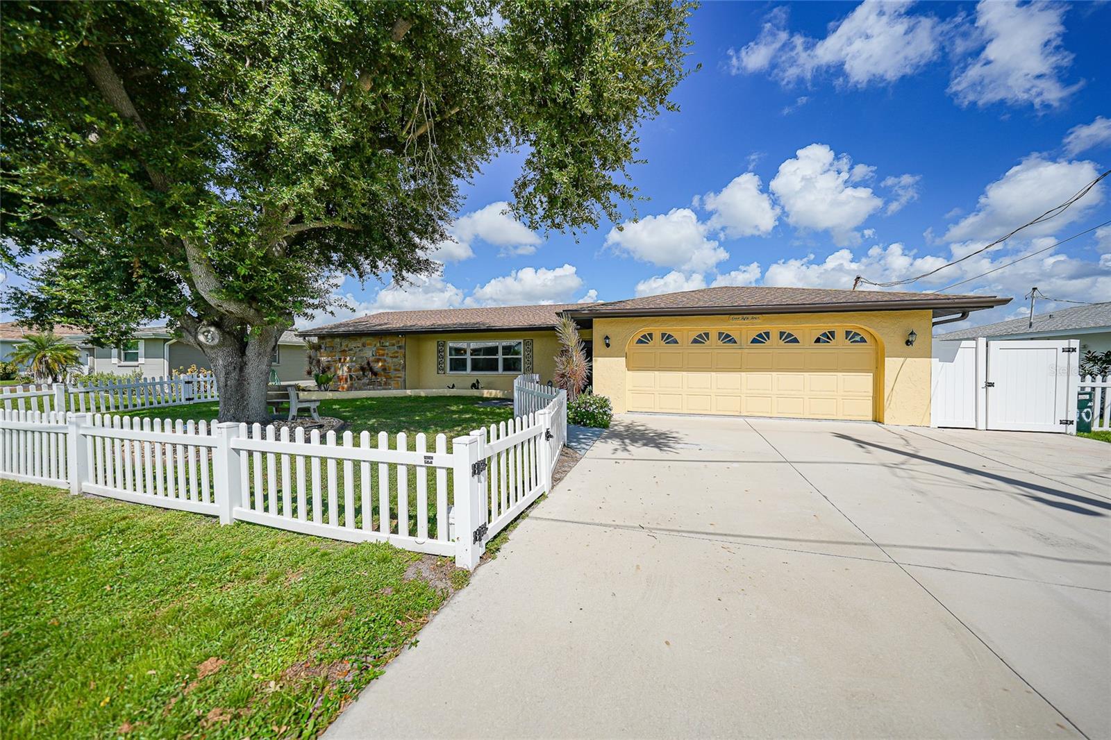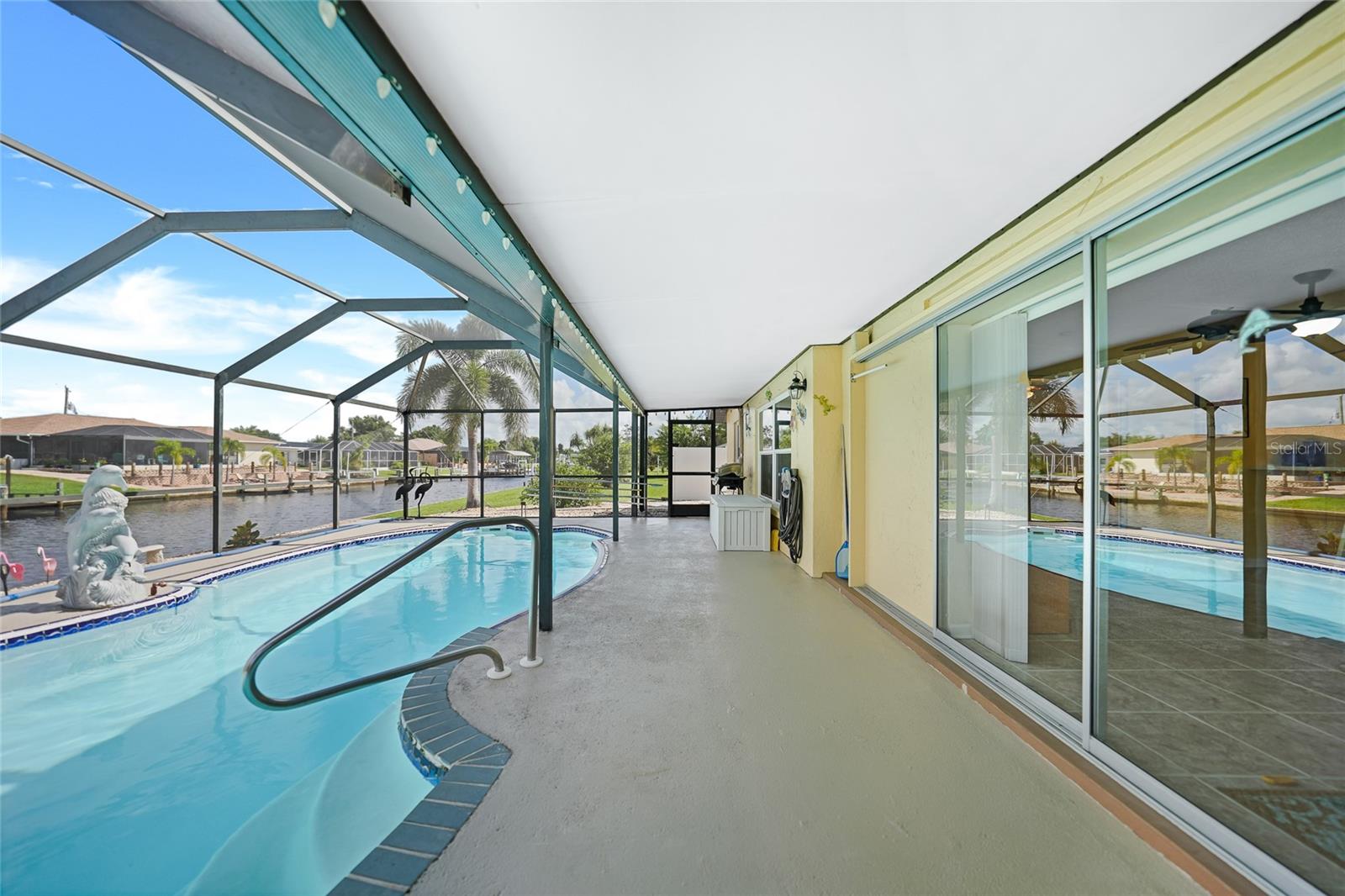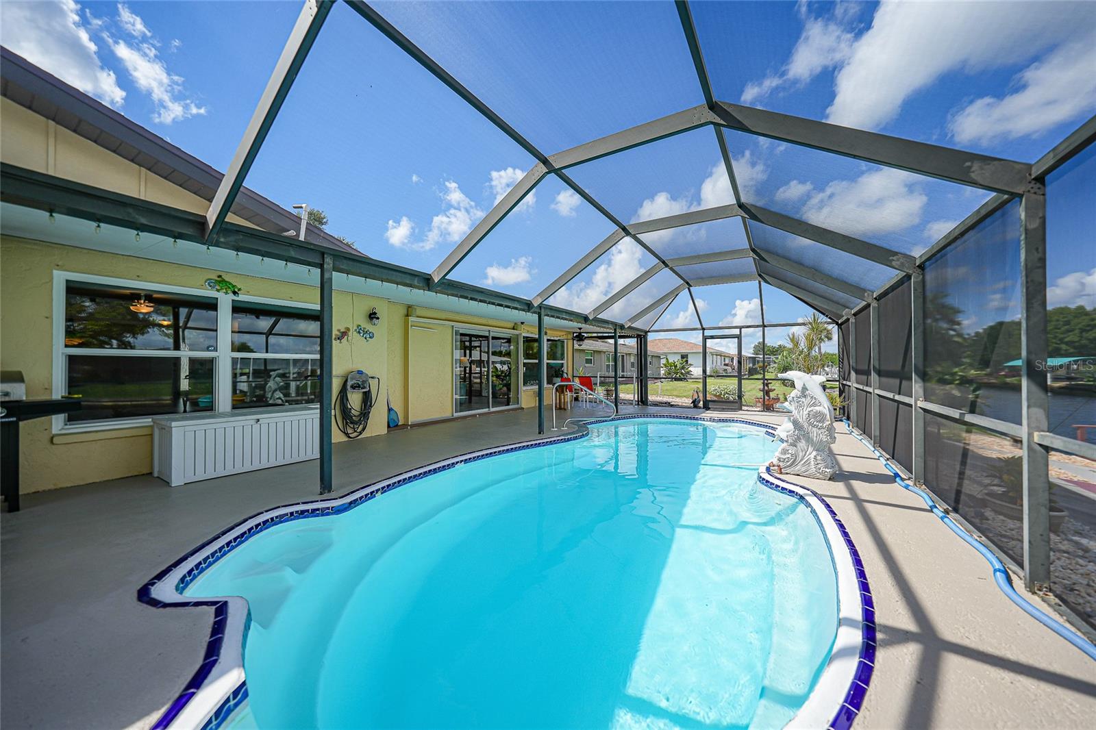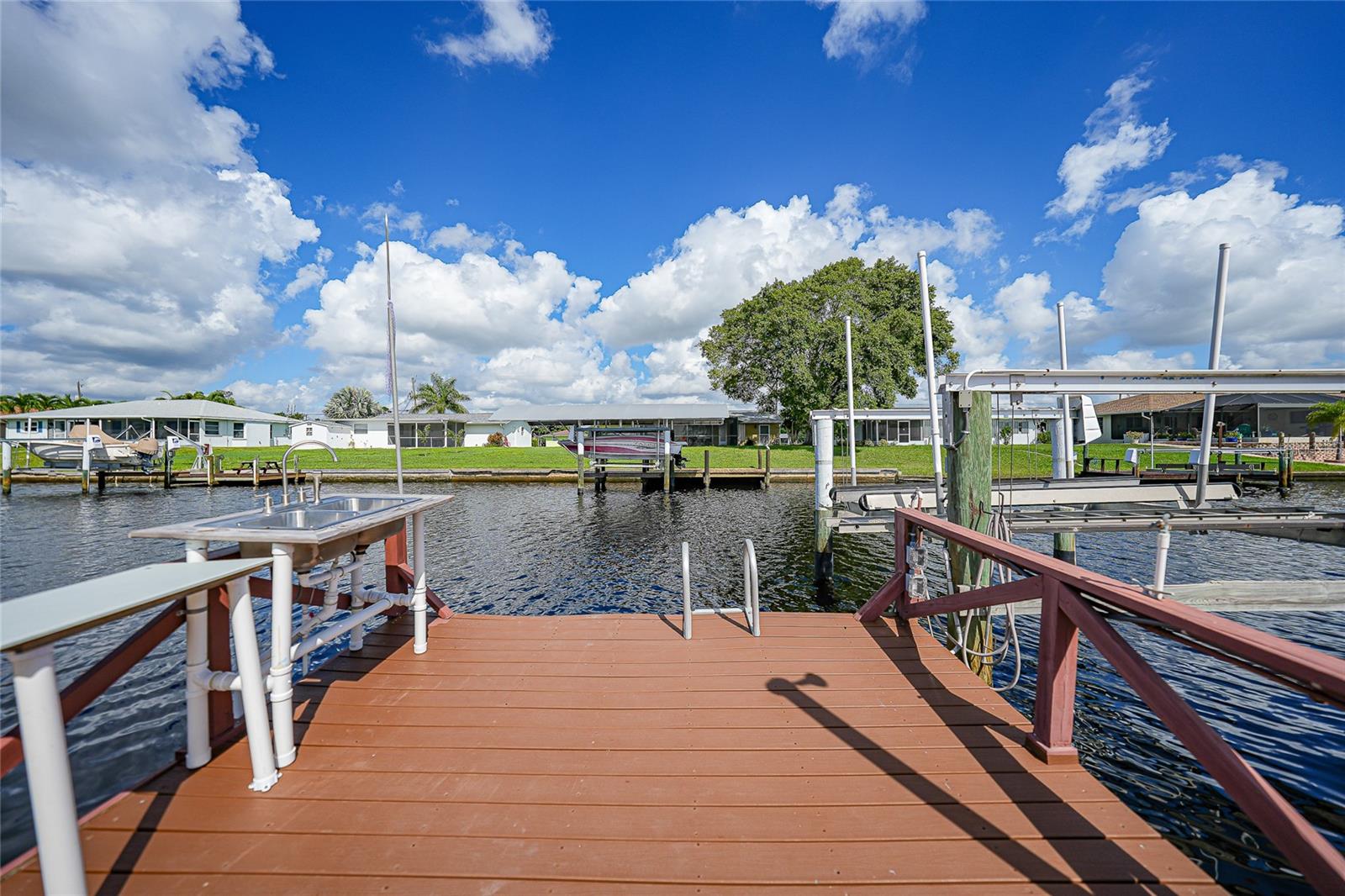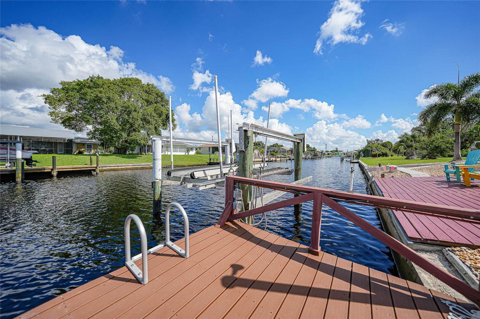 BOATERS DREAM - 5 MINUTES FROM CHARLOTTE HARBOR WITH ACCESS TO THE GULF OF MEXICO! This METICULOUSLY MAINTAINED 3/3/2 POOL home sprawls 2650+ square feet and features a LARGE suite that could easily serve as a 2ND PRIMARY BEDROOM OR HOME OFFICE. The inside of the property boasts a large galley kitchen RECENTLY UPDATED with stylish Corian countertops and custom-made roll-out soft close cabinetry, new backsplash + a pass-through window to the Living Room. NEW Vinyl and Tile flooring throughout the home + charming plantation shutters. The living room is very open featuring a decorative fireplace and built in shelving. Both secondary bedrooms are VERY spacious. HUGE LAUNDRY ROOM + EXTENDED 2 CAR GARAGE with built in storage. The OUTSIDE of the property features a LARGE POOL, 12x24 Composite dock outfitted with an 8000 POUND BOAT LIFT, Concrete walkway around the property, new rock landscaping that will need very little lawn maintenance, recently spray foamed concrete seawall (with approximately 9 years left on the warranty), NEWER FENCE, Irrigation system, Storage shed + MORE. RECENTLY PAINTED EXTERIOR - NEW ROOF (2022) - NEW SOFFIT & FASCIA (2022) - NEW GUTTERS (2022) - NEW DOWNSPOUTS (2022) - IMPACT WINDOWS (DEC. 2020). NO HOA, NO DEED RESTRICTIONS. CITY WATER + CITY SEWER. ASSUMABLE FLOOD INSURANCE POLICY AVAILABLE UPON REQUEST. TV's can stay with the property. This home is located in the heart of Port Charlotte close to lots of Shopping, restaurants, medical offices, hospitals and more. Downtown Punta Gorda and Sunseeker Resort are less than 10 minutes away. Call your agent today for a showing. Trust me, you need to see this one! Be sure to view the 3D VIRTUAL TOUR.