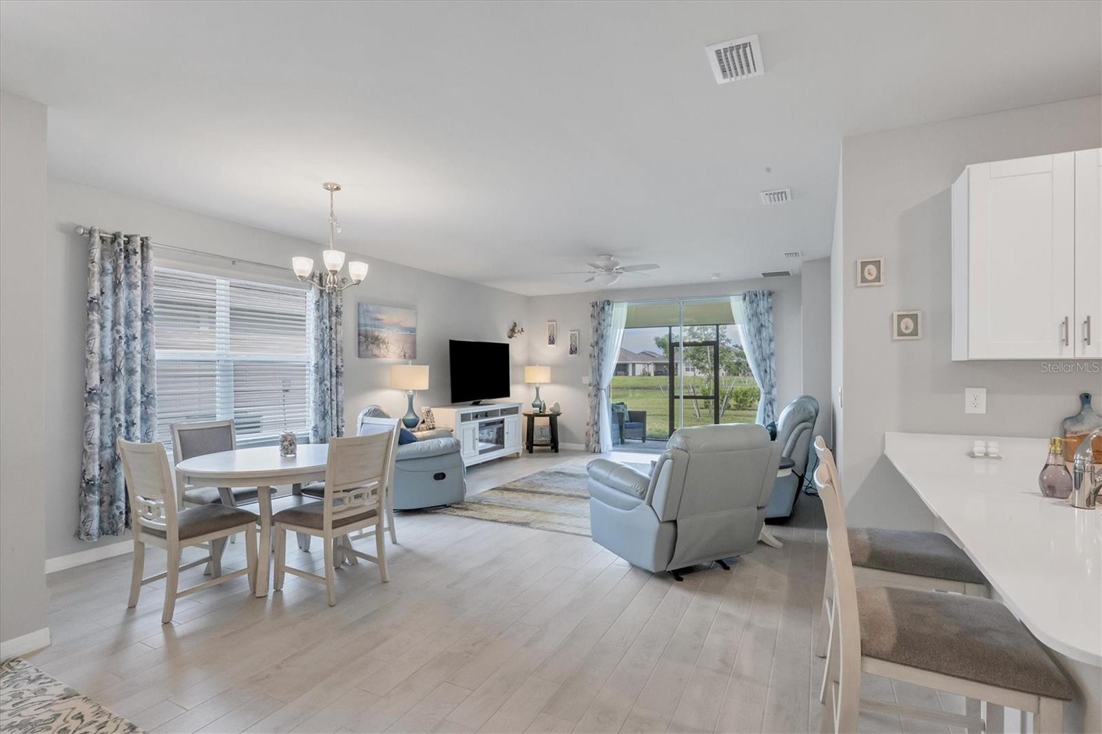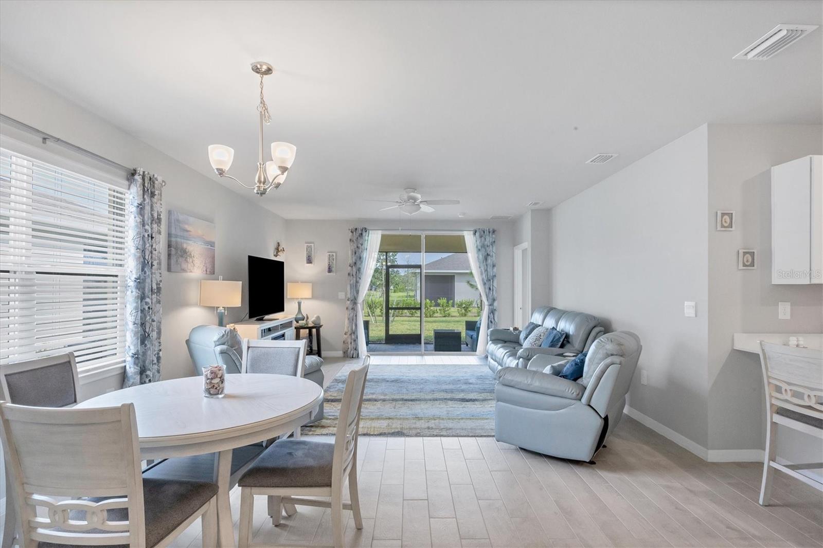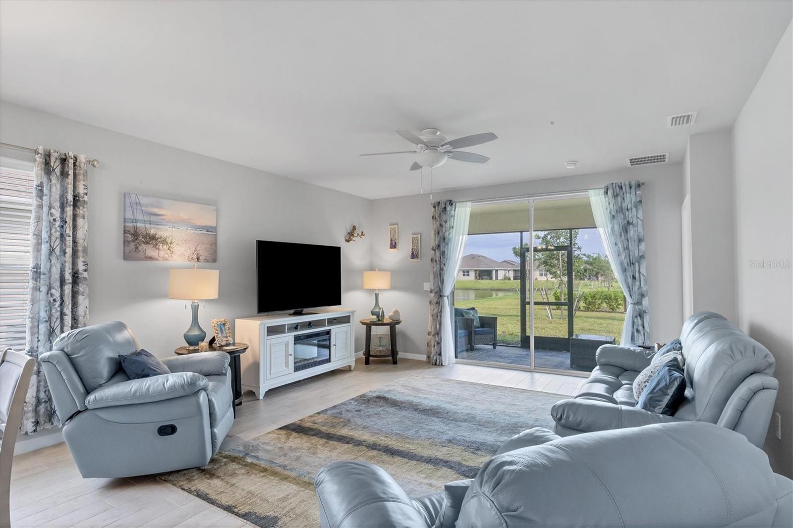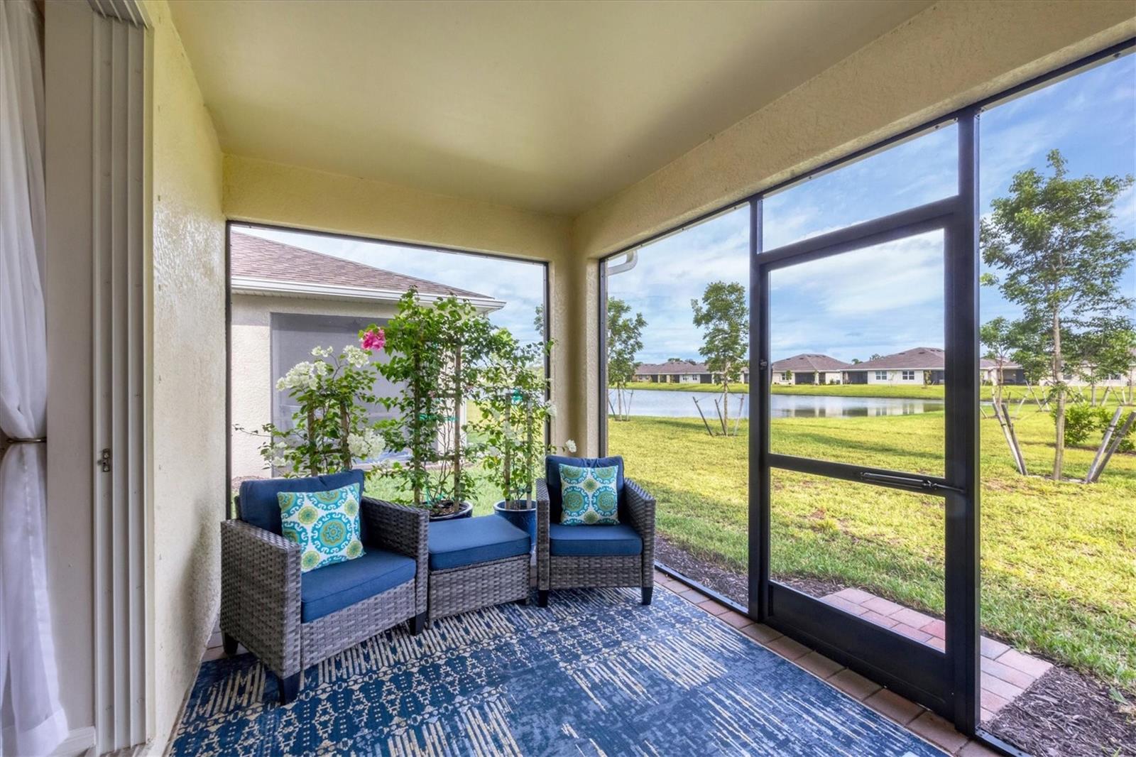 Welcome to this stunning, better-than-new, LAKEFRONT villa in the highly sought-after gated community of The Cove at West Port! This 1-year-old home is being offered FULLY FURNISHED and has been meticulously enhanced with thoughtful upgrades that set it apart from new construction. The current owners have added decorative light fixtures and ceiling fans throughout, a screened lanai, a screened front entryway, and gutters – all features typically left out by builders. Step inside and be captivated by the luxurious upgrades. Beautiful wood plank tile flooring flows throughout the main living areas of the home, complementing the coastal-inspired décor. The spacious kitchen is a chef's dream, featuring shaker style cabinets, quartz countertops, and a full stainless steel appliance package. The large kitchen island offers plenty of workspace and casual seating, perfect for entertaining or enjoying meals with family. The open floor plan includes a split-bedroom layout, ensuring privacy for all. In addition to the two bedrooms, this villa boasts a versatile office/den space that can easily be used as a third bedroom, offering flexibility for guests or remote work. The primary suite is a serene retreat, complete with a walk-in closet, dual sinks, and a large walk-in shower. Outside, enjoy the Florida lifestyle in your private screened lanai that overlooks the lake, or explore the many amenities The Cove at West Port has to offer. The community's amenity-rich campus includes a clubhouse, resort-style pool, pickleball and bocce ball courts, a pet park, a fitness center, a billiard room, and more. Located just minutes from popular destinations like the Charlotte County Sports Park, North County Regional Park, and Centennial Recreation & Aquatics Center, this home is also close to a wide array of shopping and dining options at the Charlotte County Town Center. Plus, with the stunning Gulf of Mexico beaches less than 30 minutes away, you’ll always have quick access to coastal adventures. Best of all, enjoy low HOA fees of only $260 per month, which include lawn care, making this home an excellent value. Situated outside of a flood zone, NO FLOOD INSURANCE IS REQUIRED. Don't miss this rare opportunity to own a villa that combines new construction advantages with thoughtful, stylish upgrades in a premier location!