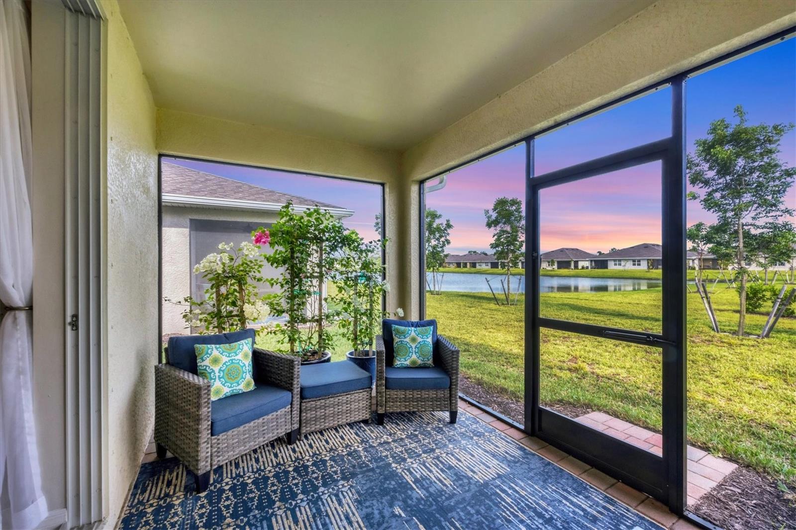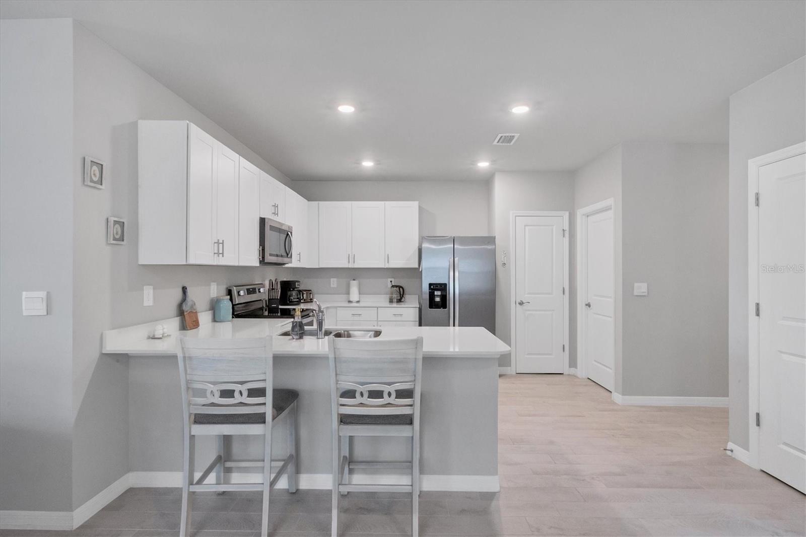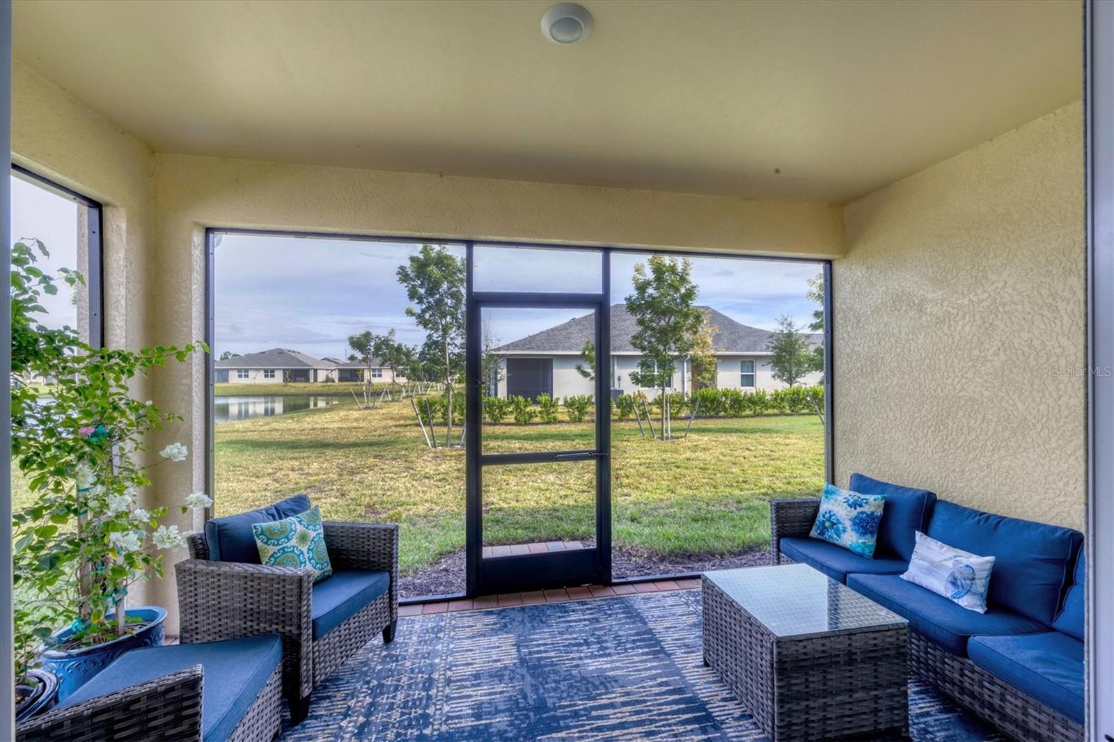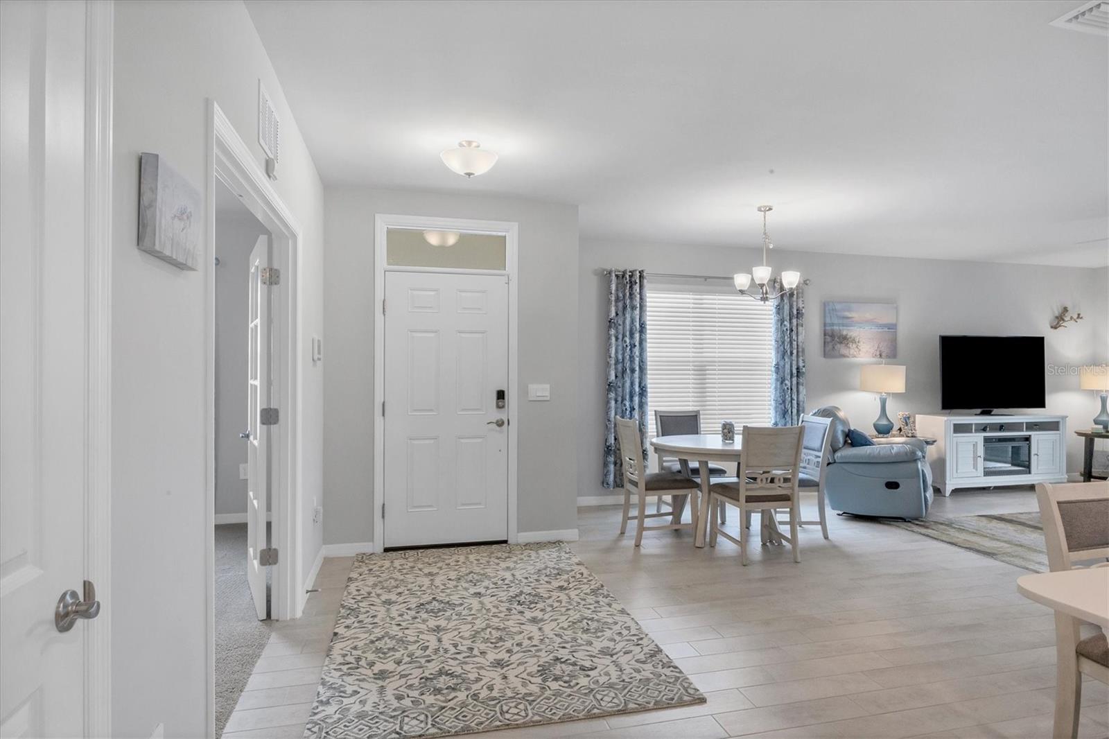 Welcome to this stunning, better-than-new, LAKEFRONT villa in the highly sought-after gated community of The Cove at West Port! This 1-year-old home is being offered FULLY FURNISHED and has been meticulously enhanced with thoughtful upgrades that set it apart from new construction. The current owners have added decorative light fixtures and ceiling fans throughout, a screened lanai, a screened front entryway, and gutters – all features typically left out by builders. Step inside and be captivated by the luxurious upgrades. Beautiful wood plank tile flooring flows throughout the main living areas of the home, complementing the coastal-inspired décor. The spacious kitchen is a chef's dream, featuring shaker style cabinets, quartz countertops, and a full stainless steel appliance package. The large kitchen island offers plenty of workspace and casual seating, perfect for entertaining or enjoying meals with family. The open floor plan includes a split-bedroom layout, ensuring privacy for all. In addition to the two bedrooms, this villa boasts a versatile office/den space that can easily be used as a third bedroom, offering flexibility for guests or remote work. The primary suite is a serene retreat, complete with a walk-in closet, dual sinks, and a large walk-in shower. Outside, enjoy the Florida lifestyle in your private screened lanai that overlooks the lake, or explore the many amenities The Cove at West Port has to offer. The community's amenity-rich campus includes a clubhouse, resort-style pool, pickleball and bocce ball courts, a pet park, a fitness center, a billiard room, and more. Located just minutes from popular destinations like the Charlotte County Sports Park, North County Regional Park, and Centennial Recreation & Aquatics Center, this home is also close to a wide array of shopping and dining options at the Charlotte County Town Center. Plus, with the stunning Gulf of Mexico beaches less than 30 minutes away, you’ll always have quick access to coastal adventures. Best of all, enjoy low HOA fees of only $260 per month, which include lawn care, making this home an excellent value. Situated outside of a flood zone, NO FLOOD INSURANCE IS REQUIRED. Don't miss this rare opportunity to own a villa that combines new construction advantages with thoughtful, stylish upgrades in a premier location!