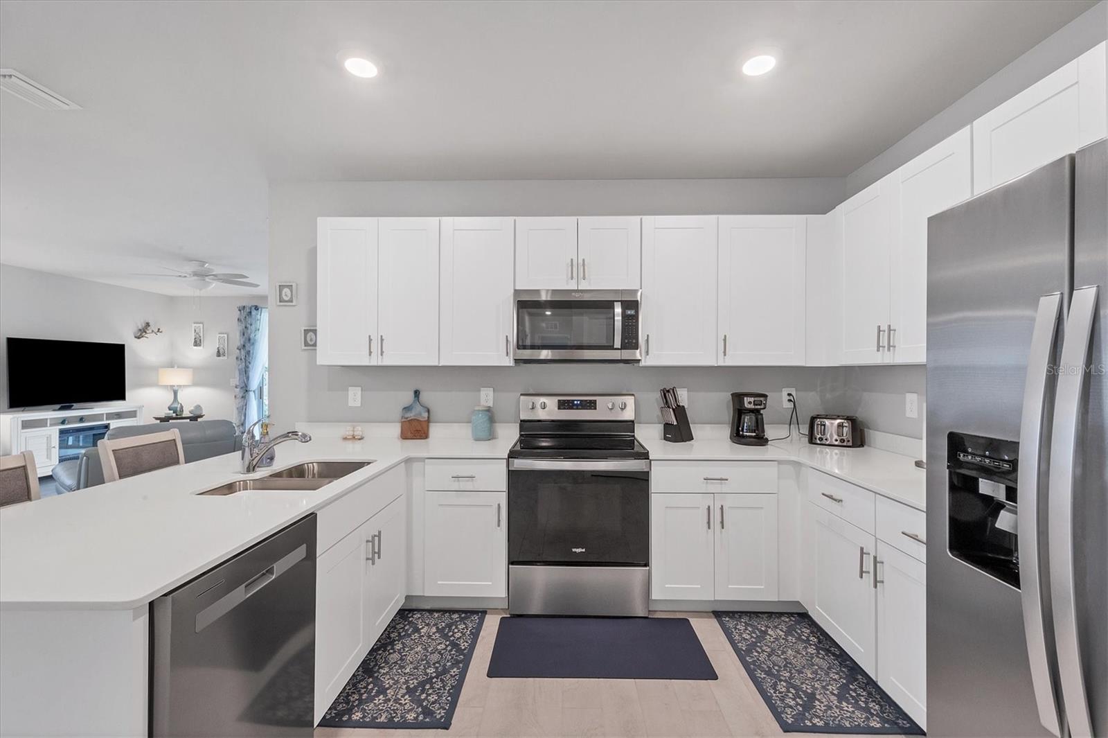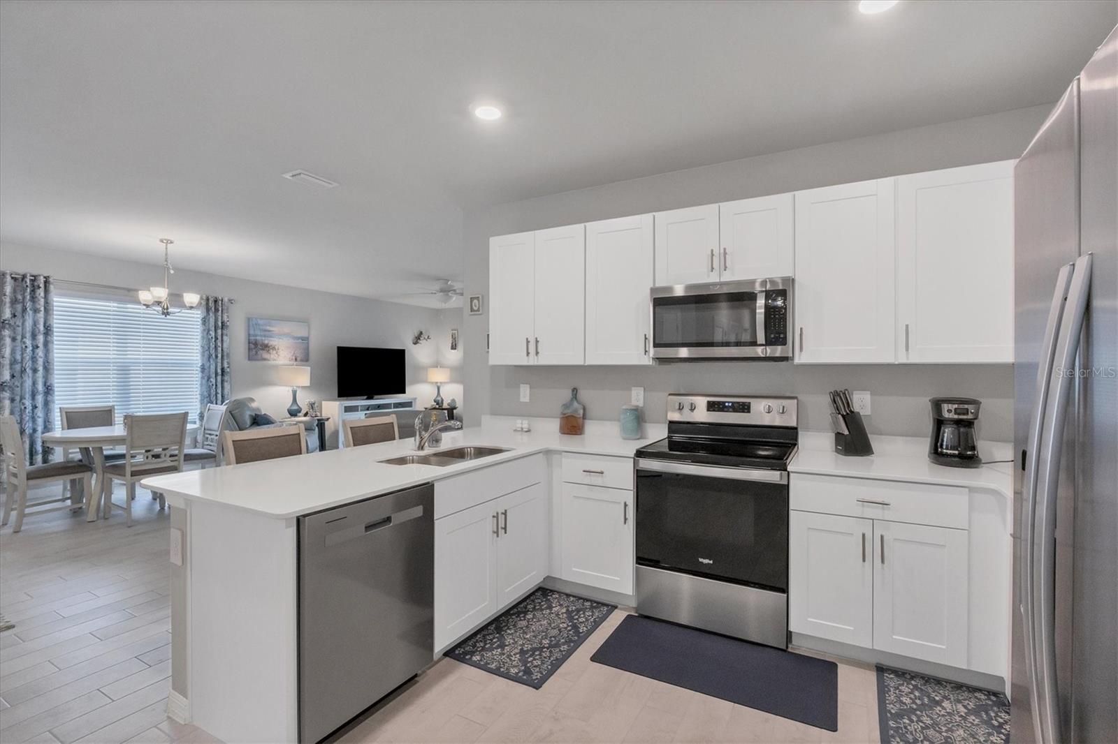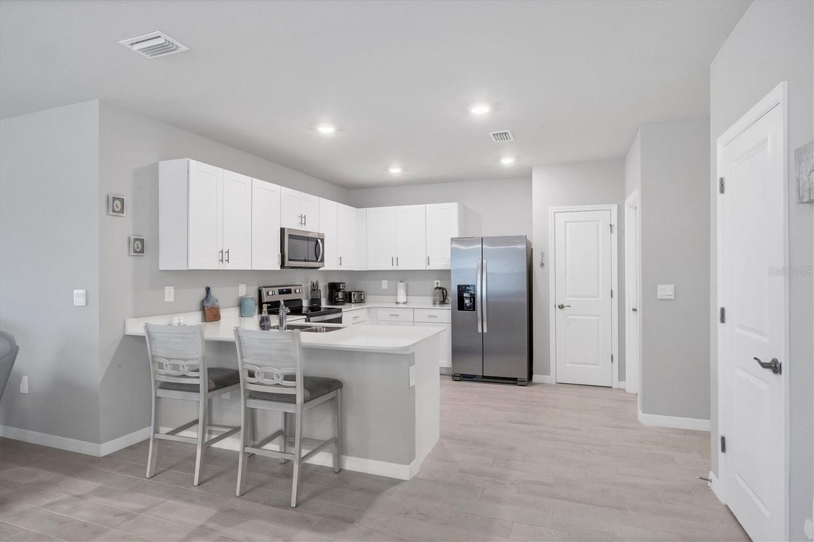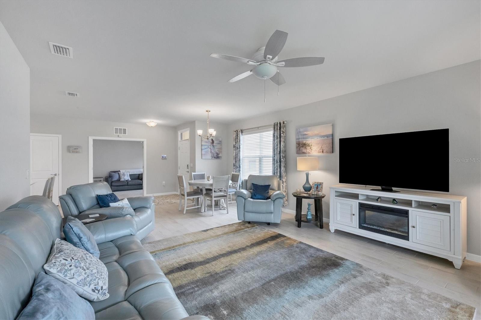 Welcome to this stunning, better-than-new, LAKEFRONT villa in the highly sought-after gated community of The Cove at West Port! This 1-year-old home is being offered FULLY FURNISHED and has been meticulously enhanced with thoughtful upgrades that set it apart from new construction. The current owners have added decorative light fixtures and ceiling fans throughout, a screened lanai, a screened front entryway, and gutters – all features typically left out by builders. Step inside and be captivated by the luxurious upgrades. Beautiful wood plank tile flooring flows throughout the main living areas of the home, complementing the coastal-inspired décor. The spacious kitchen is a chef's dream, featuring shaker style cabinets, quartz countertops, and a full stainless steel appliance package. The large kitchen island offers plenty of workspace and casual seating, perfect for entertaining or enjoying meals with family. The open floor plan includes a split-bedroom layout, ensuring privacy for all. In addition to the two bedrooms, this villa boasts a versatile office/den space that can easily be used as a third bedroom, offering flexibility for guests or remote work. The primary suite is a serene retreat, complete with a walk-in closet, dual sinks, and a large walk-in shower. Outside, enjoy the Florida lifestyle in your private screened lanai that overlooks the lake, or explore the many amenities The Cove at West Port has to offer. The community's amenity-rich campus includes a clubhouse, resort-style pool, pickleball and bocce ball courts, a pet park, a fitness center, a billiard room, and more. Located just minutes from popular destinations like the Charlotte County Sports Park, North County Regional Park, and Centennial Recreation & Aquatics Center, this home is also close to a wide array of shopping and dining options at the Charlotte County Town Center. Plus, with the stunning Gulf of Mexico beaches less than 30 minutes away, you’ll always have quick access to coastal adventures. Best of all, enjoy low HOA fees of only $260 per month, which include lawn care, making this home an excellent value. Situated outside of a flood zone, NO FLOOD INSURANCE IS REQUIRED. Don't miss this rare opportunity to own a villa that combines new construction advantages with thoughtful, stylish upgrades in a premier location!