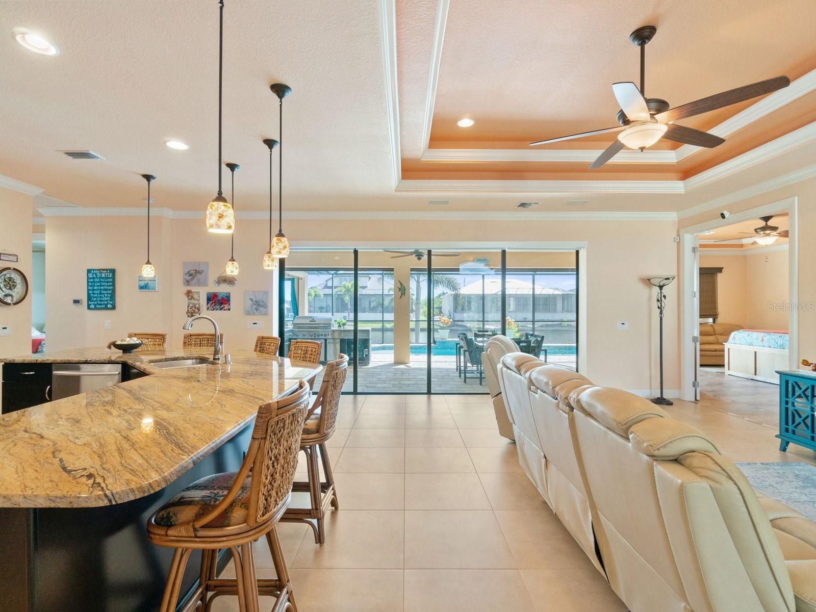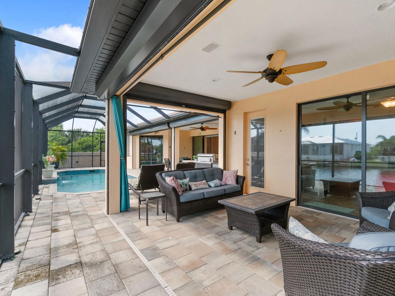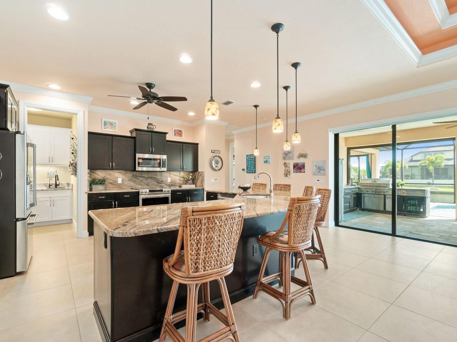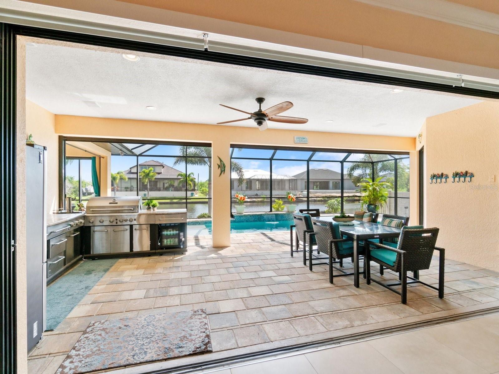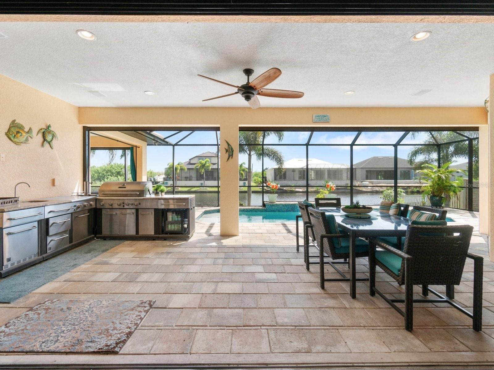 Experience luxury living in this stunning Gulf-access waterfront pool home, ideally situated with southern exposure in the highly sought-after South Gulf Cove community. This Custom-Built Harbor Home features 3 Bedrooms plus a Den, 3 Full Bathrooms, and a spacious 3-Car Garage. Designed for relaxation and entertainment, the expansive lanai offers multiple seating areas, a heated pool with a waterfall and sun shelf, an outdoor shower, and a fully equipped outdoor kitchen—all set against breathtaking water views with easy boating access to the lagoon, Charlotte Harbor, and the pristine beaches of the Gulf of Mexico. Offered partially furnished, this home allows you to start living your dream immediately. The kitchen is a chef’s delight, boasting newer Samsung stainless steel appliances and a massive, angled island with seating for six. The well-appointed pantry includes a coffee bar, ample storage, a copper prep sink, and custom cabinets with Rev-A-Shelf swingouts. The oversized primary suite is a sanctuary of comfort, featuring a tray ceiling, sliding doors to the lanai and pool, and space for a sitting area. The luxurious ensuite bathroom offers dual sinks, abundant cabinetry and storage, a walk-through porcelain tile shower with a bench, and an expansive walk-in closet with custom shelving and drawers. The attached laundry area includes upgraded washer and dryer units. For ultimate relaxation, unwind in the 6-foot light therapy spa tub, complete with Bluetooth, jets, bubbles, and a thermostat to keep the water temp perfect. Sellers have a Transferable Flood Policy at $1,529 per year. This home is packed with upgrades, including a tile roof with solar vent fans (installed in 2023), fresh interior and exterior paint, a newer water heater, and a 6-foot rock-faced privacy fence. It surpasses new construction with custom features like Low-Emissivity windows, electric roll-down shutters, a generator transfer switch, a water treatment system with reverse osmosis, an I-Wave C air purifier, central vacuum, remote control privacy blinds, custom window treatments, a Taexx pest control system, and a Rainbird irrigation system. South Gulf Cove offers a voluntary HOA with ultra-low dues of just $120 per year, providing access to an air-conditioned clubhouse, WiFi, games, tiki huts, and discounted clubhouse reservations. Several community parks feature a boat ramp, kayak launch, walking paths, fishing docks, picnic shelters, BBQ grills, a playground, and a basketball court. Don’t miss this incredible opportunity to own a one-of-a-kind waterfront home in a vibrant and welcoming community!