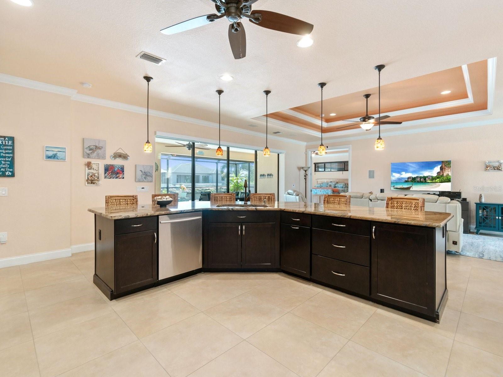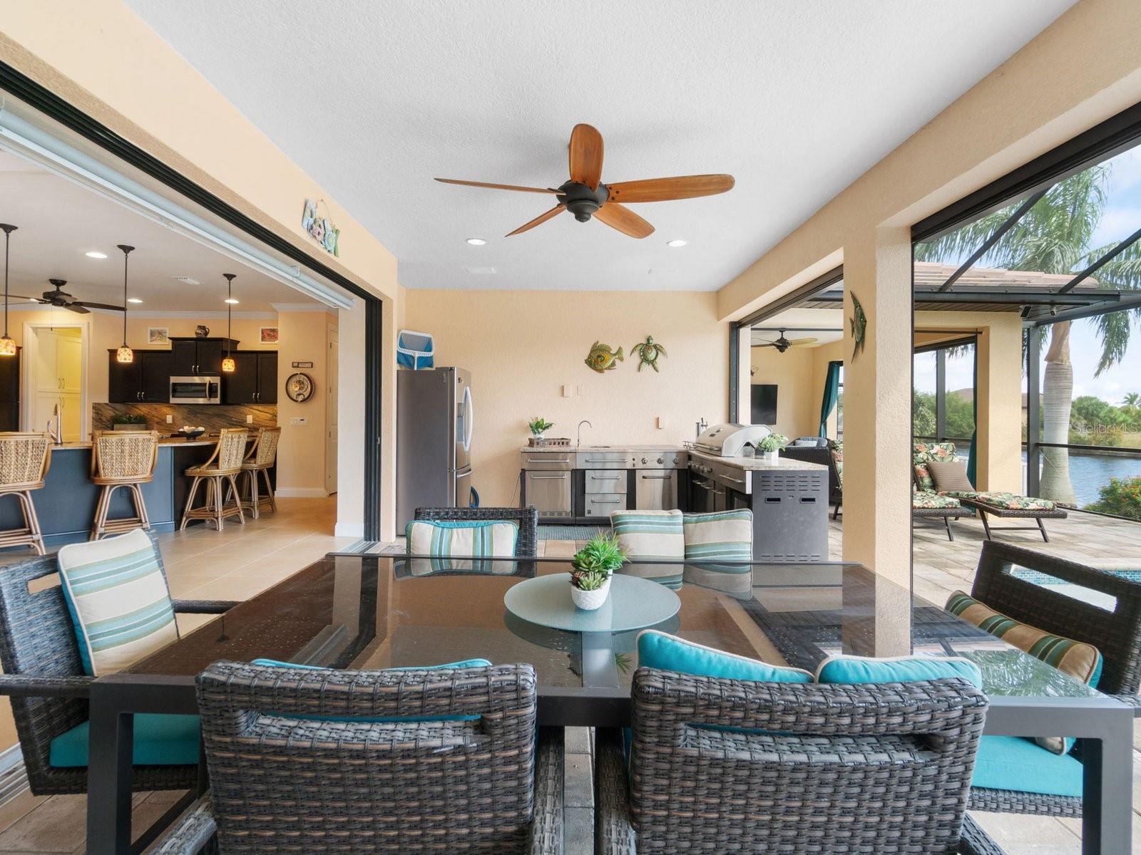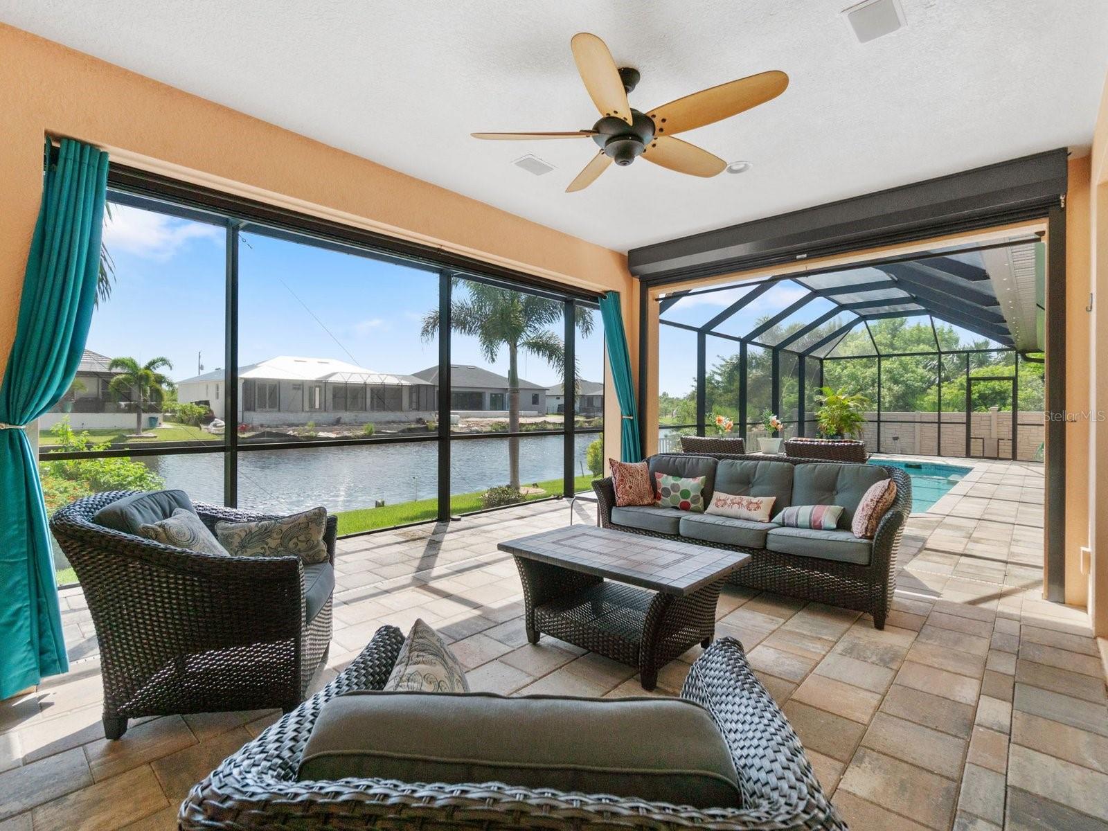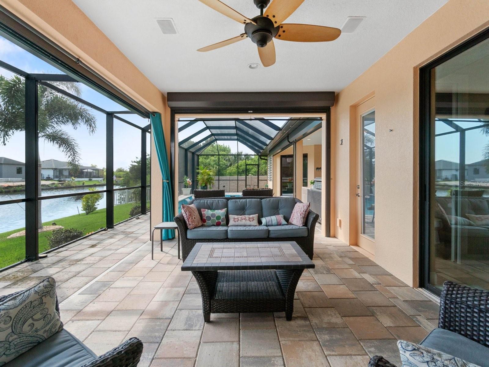 Experience luxury living in this stunning Gulf-access waterfront pool home, ideally situated with southern exposure in the highly sought-after South Gulf Cove community. This Custom-Built Harbor Home features 3 Bedrooms plus a Den, 3 Full Bathrooms, and a spacious 3-Car Garage. Designed for relaxation and entertainment, the expansive lanai offers multiple seating areas, a heated pool with a waterfall and sun shelf, an outdoor shower, and a fully equipped outdoor kitchen—all set against breathtaking water views with easy boating access to the lagoon, Charlotte Harbor, and the pristine beaches of the Gulf of Mexico. Offered partially furnished, this home allows you to start living your dream immediately. The kitchen is a chef’s delight, boasting newer Samsung stainless steel appliances and a massive, angled island with seating for six. The well-appointed pantry includes a coffee bar, ample storage, a copper prep sink, and custom cabinets with Rev-A-Shelf swingouts. The oversized primary suite is a sanctuary of comfort, featuring a tray ceiling, sliding doors to the lanai and pool, and space for a sitting area. The luxurious ensuite bathroom offers dual sinks, abundant cabinetry and storage, a walk-through porcelain tile shower with a bench, and an expansive walk-in closet with custom shelving and drawers. The attached laundry area includes upgraded washer and dryer units. For ultimate relaxation, unwind in the 6-foot light therapy spa tub, complete with Bluetooth, jets, bubbles, and a thermostat to keep the water temp perfect. Sellers have a Transferable Flood Policy at $1,529 per year. This home is packed with upgrades, including a tile roof with solar vent fans (installed in 2023), fresh interior and exterior paint, a newer water heater, and a 6-foot rock-faced privacy fence. It surpasses new construction with custom features like Low-Emissivity windows, electric roll-down shutters, a generator transfer switch, a water treatment system with reverse osmosis, an I-Wave C air purifier, central vacuum, remote control privacy blinds, custom window treatments, a Taexx pest control system, and a Rainbird irrigation system. South Gulf Cove offers a voluntary HOA with ultra-low dues of just $120 per year, providing access to an air-conditioned clubhouse, WiFi, games, tiki huts, and discounted clubhouse reservations. Several community parks feature a boat ramp, kayak launch, walking paths, fishing docks, picnic shelters, BBQ grills, a playground, and a basketball court. Don’t miss this incredible opportunity to own a one-of-a-kind waterfront home in a vibrant and welcoming community!