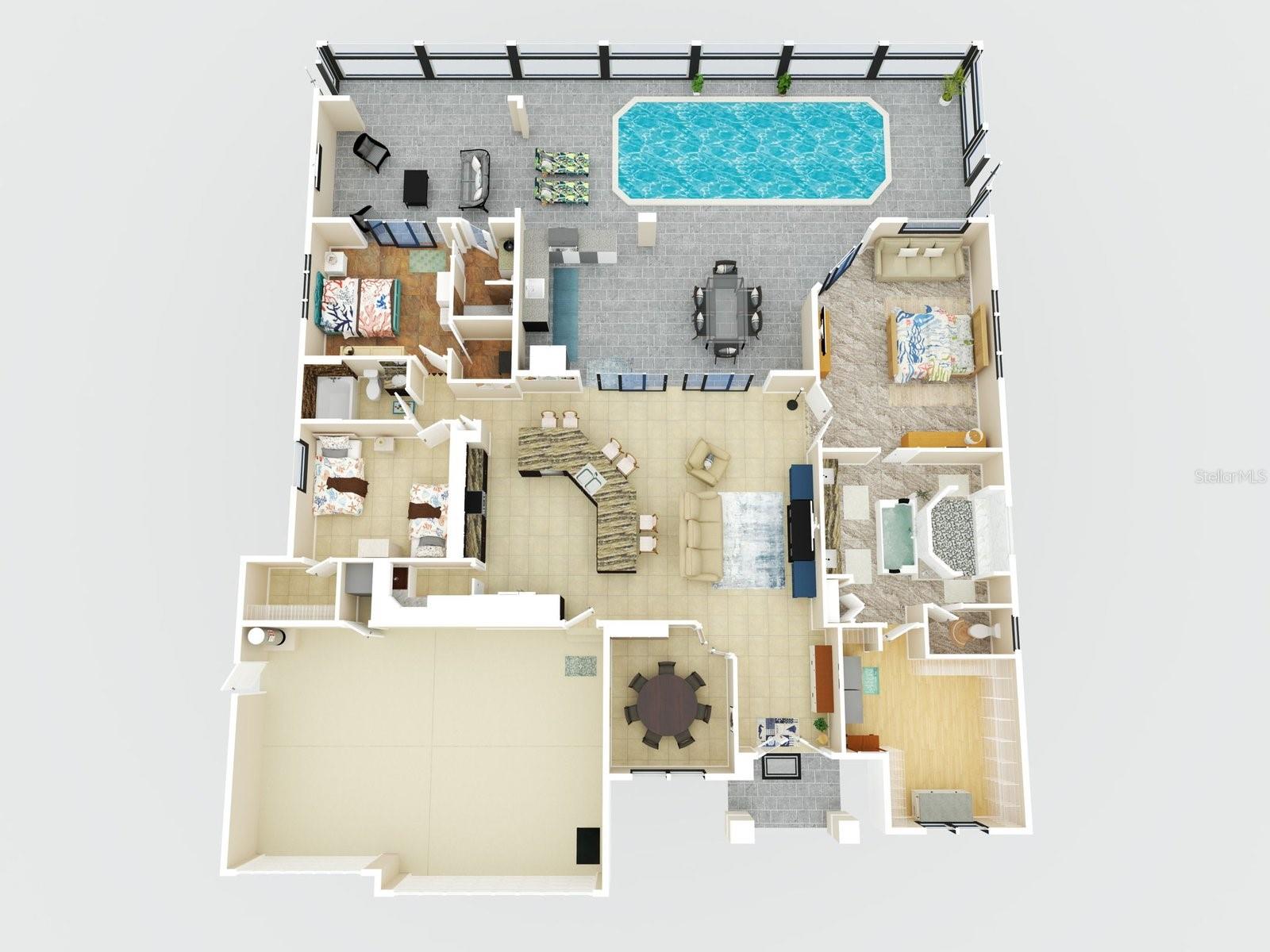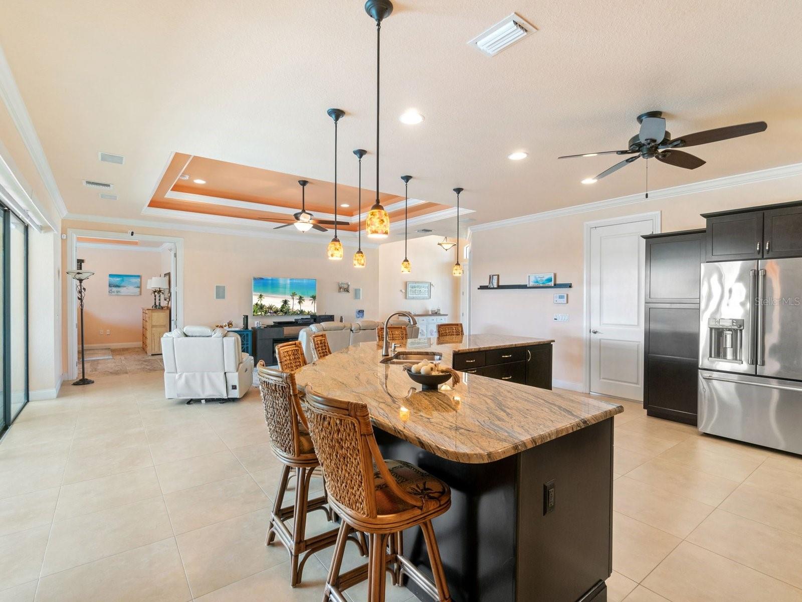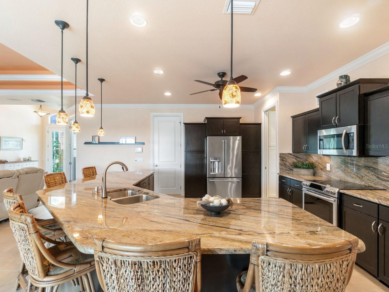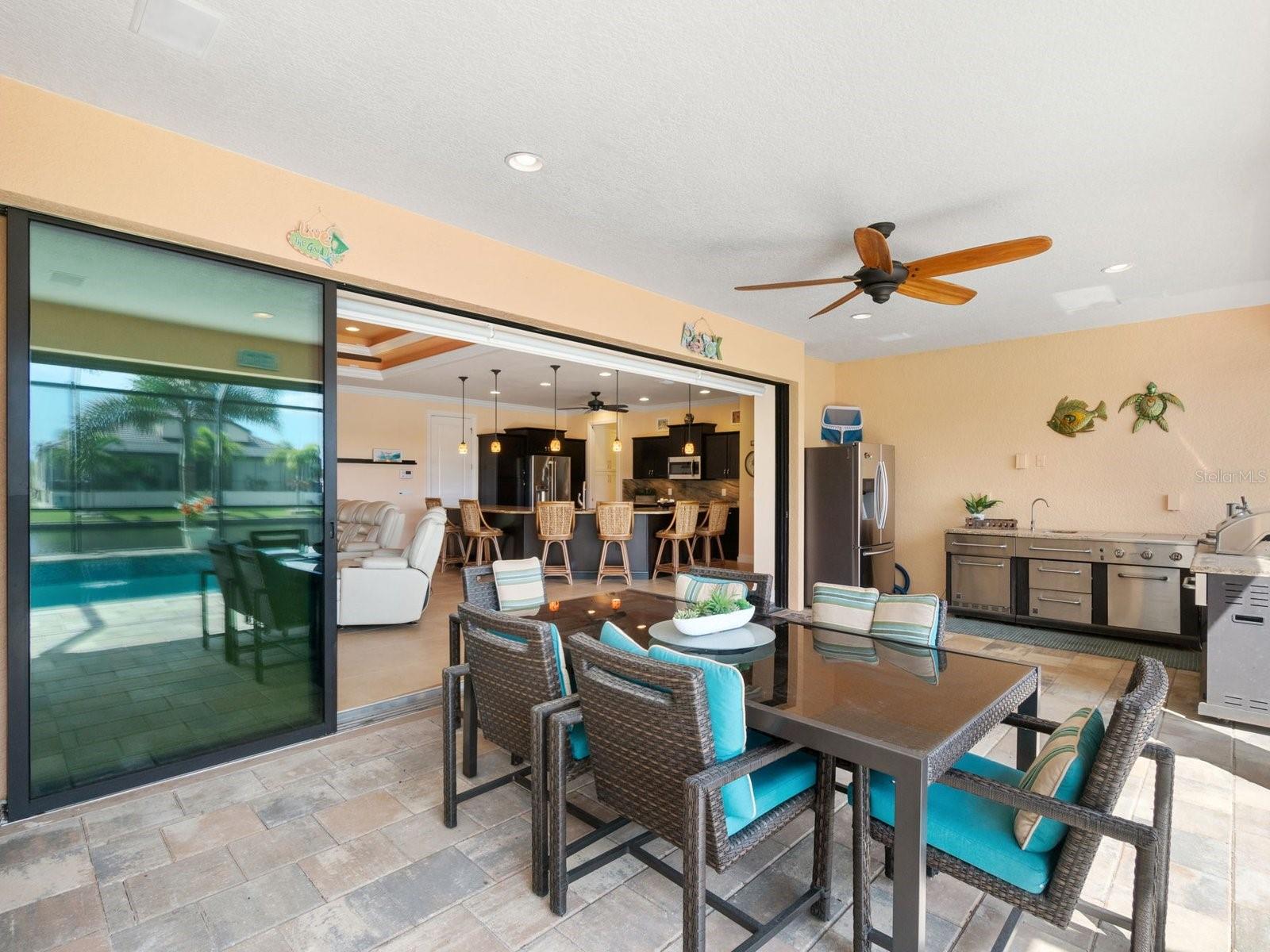 Experience luxury living in this stunning Gulf-access waterfront pool home, ideally situated with southern exposure in the highly sought-after South Gulf Cove community. This Custom-Built Harbor Home features 3 Bedrooms plus a Den, 3 Full Bathrooms, and a spacious 3-Car Garage. Designed for relaxation and entertainment, the expansive lanai offers multiple seating areas, a heated pool with a waterfall and sun shelf, an outdoor shower, and a fully equipped outdoor kitchen—all set against breathtaking water views with easy boating access to the lagoon, Charlotte Harbor, and the pristine beaches of the Gulf of Mexico. Offered partially furnished, this home allows you to start living your dream immediately. The kitchen is a chef’s delight, boasting newer Samsung stainless steel appliances and a massive, angled island with seating for six. The well-appointed pantry includes a coffee bar, ample storage, a copper prep sink, and custom cabinets with Rev-A-Shelf swingouts. The oversized primary suite is a sanctuary of comfort, featuring a tray ceiling, sliding doors to the lanai and pool, and space for a sitting area. The luxurious ensuite bathroom offers dual sinks, abundant cabinetry and storage, a walk-through porcelain tile shower with a bench, and an expansive walk-in closet with custom shelving and drawers. The attached laundry area includes upgraded washer and dryer units. For ultimate relaxation, unwind in the 6-foot light therapy spa tub, complete with Bluetooth, jets, bubbles, and a thermostat to keep the water temp perfect. Sellers have a Transferable Flood Policy at $1,529 per year. This home is packed with upgrades, including a tile roof with solar vent fans (installed in 2023), fresh interior and exterior paint, a newer water heater, and a 6-foot rock-faced privacy fence. It surpasses new construction with custom features like Low-Emissivity windows, electric roll-down shutters, a generator transfer switch, a water treatment system with reverse osmosis, an I-Wave C air purifier, central vacuum, remote control privacy blinds, custom window treatments, a Taexx pest control system, and a Rainbird irrigation system. South Gulf Cove offers a voluntary HOA with ultra-low dues of just $120 per year, providing access to an air-conditioned clubhouse, WiFi, games, tiki huts, and discounted clubhouse reservations. Several community parks feature a boat ramp, kayak launch, walking paths, fishing docks, picnic shelters, BBQ grills, a playground, and a basketball court. Don’t miss this incredible opportunity to own a one-of-a-kind waterfront home in a vibrant and welcoming community!