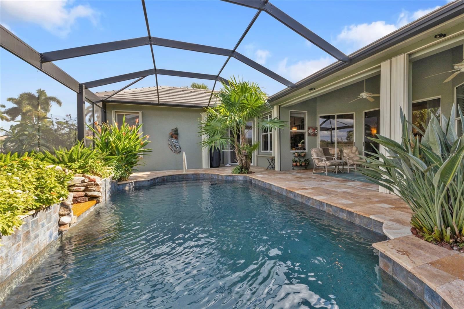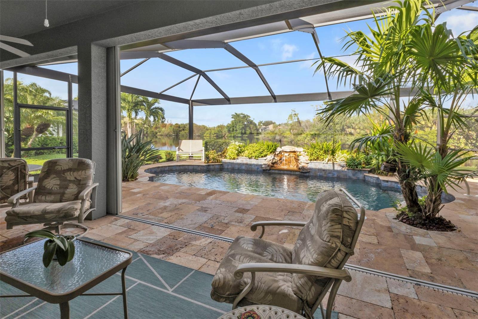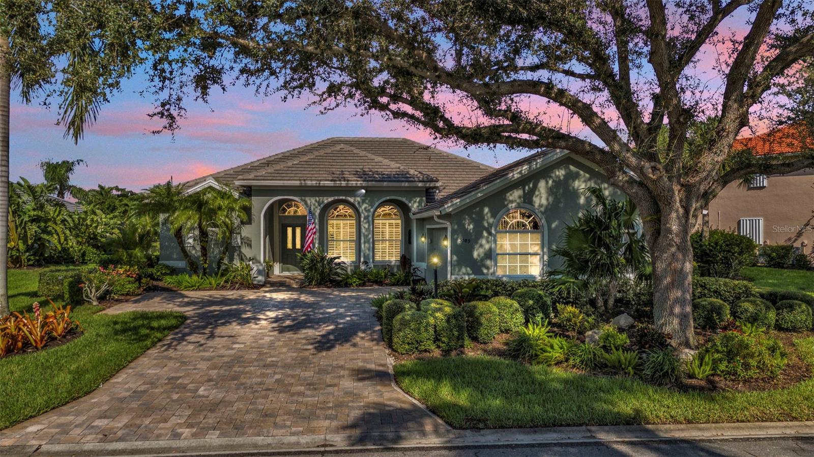 Stunning Water & Preserve Views Await in the Eagle Trace Neighborhood of Riverwood! The striking triple arches at the front entry and paver brick driveway give the home timeless curb appeal. As you enter the living room of this beautiful 4-bedroom, 3-bathroom home, you're immediately greeted by views of the peaceful lake and nature preserve. Vaulted ceilings, arched doorways, plantation shutters, and a blend of engineered hardwood, ceramic tile, and carpeting throughout lend a sophisticated yet comfortable ambiance. The primary suite welcomes you with double doors leading to a spacious retreat with sliding doors to the lanai, a walk-in closet, and an ensuite bathroom with dual sinks and a luxurious tiled Roman shower. Three guest rooms offer flexible living options: one with ensuite access to a full bath that doubles as a powder room, another near a full bath and private access to the pool area, perfectly designed with a door from the kitchen that can be closed to create a private space, and a third that can serve as a den or office. The heart of the home, an open-concept kitchen, boasts Corian countertops, appliances, a large pantry, a moveable center island, a breakfast bar, and a cozy dining nook. Adjacent to the kitchen is the family room, creating a natural flow for entertaining and daily living. The separate dining room is perfect for those more formal gatherings. Sliding glass doors from the living room and kitchen seamlessly extend the indoor living space to the lanai. Outside, a travertine pool deck surrounds the heated saltwater pool, creating a luxurious yet tranquil setting. Tropical landscaping, maintained with an irrigation system, frames the serene environment while a calming water feature flows gently into the pool. This outdoor retreat offers a peaceful sanctuary where you can relax and enjoy the picturesque views and the soothing sounds of nature. Additional features include a new roof installed in 2022, hurricane shutters, a laundry room with a utility sink, a two-car garage, and mature landscaping. As part of the vibrant Riverwood community, residents enjoy amenities such as a par 72 championship golf course, a state-of-the-art fitness center, a resort-style pool, pickleball courts, and Har-Tru tennis courts. Beyond your doorstep, relish easy access to world-class fishing, boating, dining, shopping, and the sandy beaches of the Gulf of Mexico. Conveniently situated between Sarasota and Ft. Myers on Florida's West Coast. Welcome home to comfort, style, and the beauty of Riverwood living! Contact me today to schedule your private showing—this is Florida living at its finest!