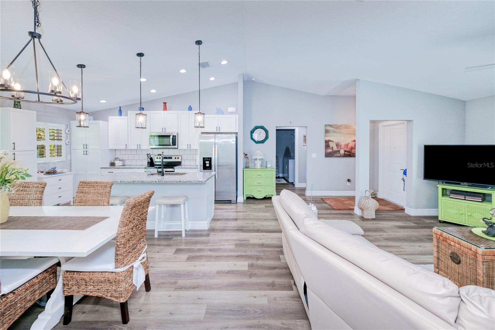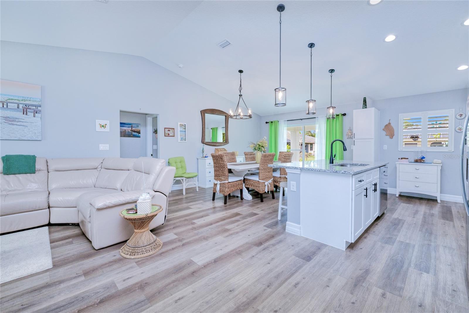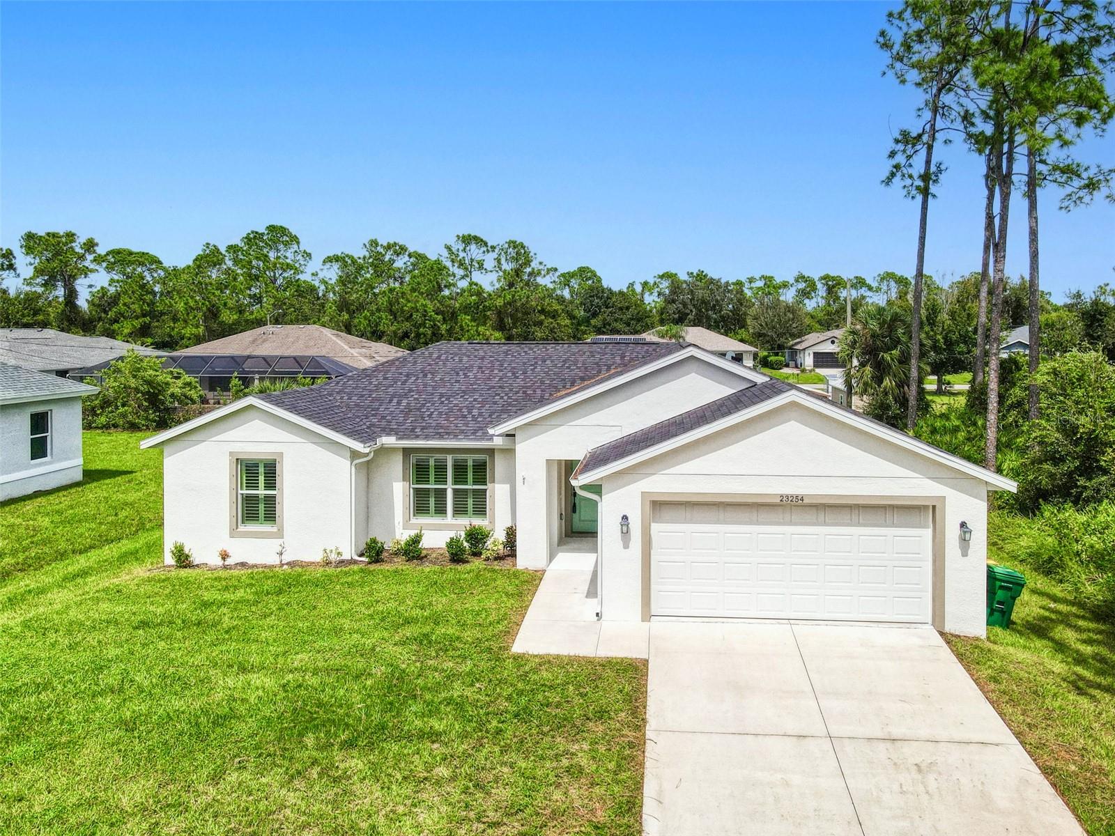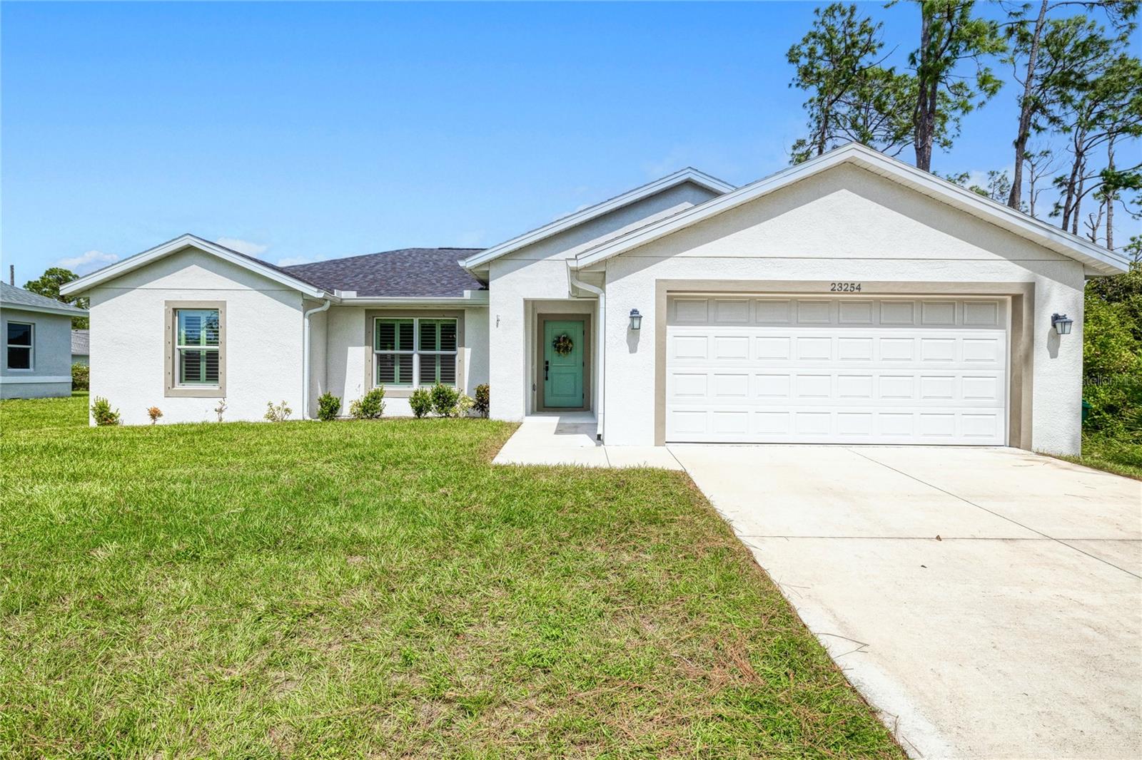 BEAUTIFUL 3 Bedroom, 2 Bathroom, 2 Car Garage home located in Port Charlotte. NO HOA & NO FLOOD REQUIRED. This 2022 built home features a bright & open floor plan, vinyl flooring throughout, recessed & pendant lighting, vaulted ceilings and MUCH MORE! Entertain friends and family in the open living and dining room while whipping up family favorites from the kitchen. The kitchen offers ALL Stainless-steel appliances, granite countertops, tile backsplash, an island with breakfast bar and a pantry cabinet. The spacious master bedroom has a tray ceiling, walk-in closet and a private en-suite bathroom with a dual sink vanity and walk-in shower. The guest bedrooms are on a split floor plan providing plenty of privacy with built in closets and a shared guest bathroom nearby. Sip your morning coffee or unwind with your favorite evening beverage on the covered patio. The open backyard is full of opportunity. 2022 ROOF - 2022 SEPTIC - STORM INSULATED GARAGE DOOR W STORM BRACES. Conveniently located close to US 41 & I75 for easy access to local favorites such as Fishermen’s Village, Ponce De Leon Park, shopping & boutiques, fine & casual dining, LIVE entertainment & AWARD WINNING BEACHES!!! Schedule your showing TODAY!