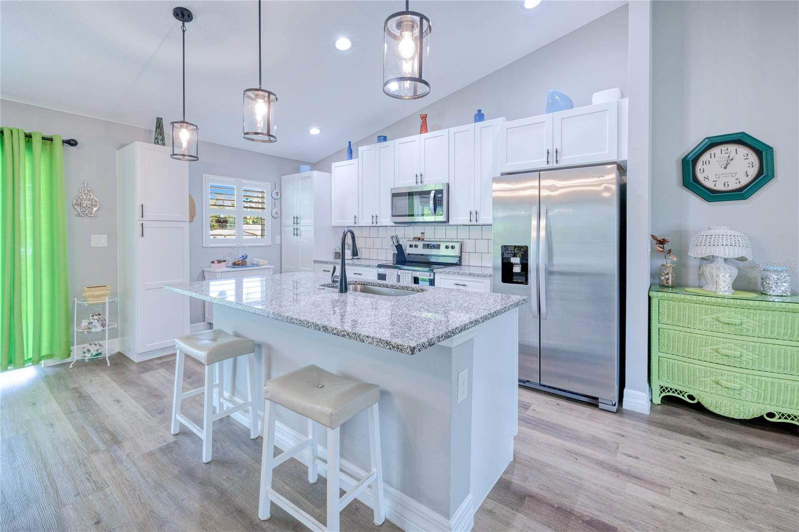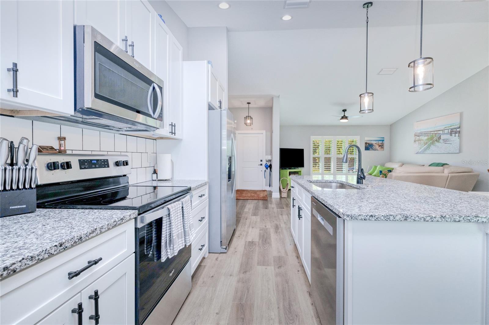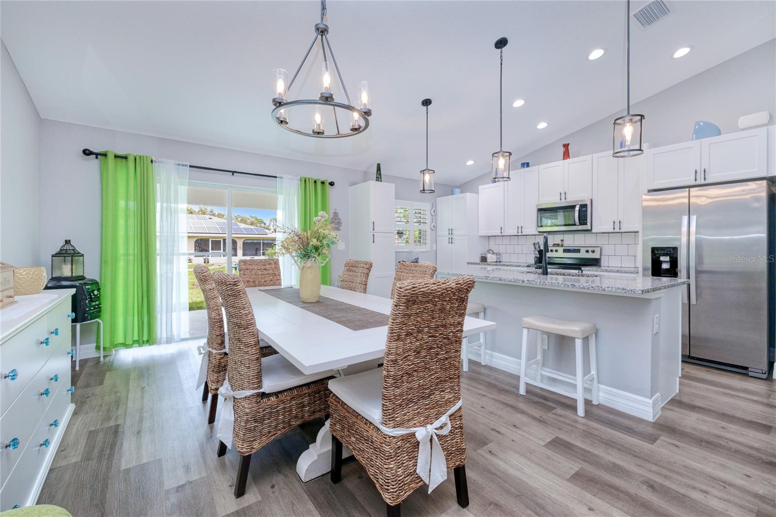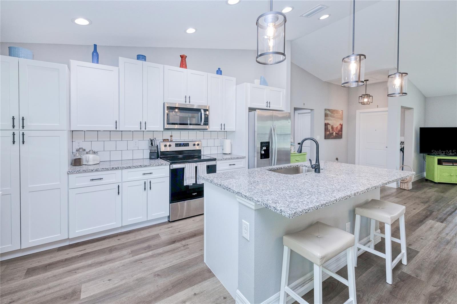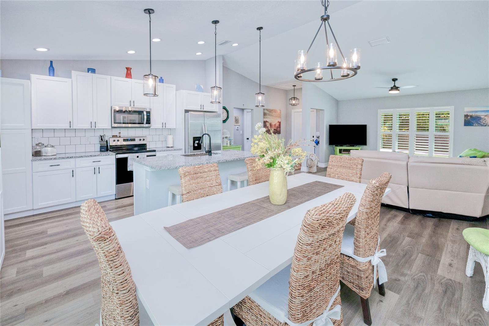 BEAUTIFUL 3 Bedroom, 2 Bathroom, 2 Car Garage home located in Port Charlotte. NO HOA & NO FLOOD REQUIRED. This 2022 built home features a bright & open floor plan, vinyl flooring throughout, recessed & pendant lighting, vaulted ceilings and MUCH MORE! Entertain friends and family in the open living and dining room while whipping up family favorites from the kitchen. The kitchen offers ALL Stainless-steel appliances, granite countertops, tile backsplash, an island with breakfast bar and a pantry cabinet. The spacious master bedroom has a tray ceiling, walk-in closet and a private en-suite bathroom with a dual sink vanity and walk-in shower. The guest bedrooms are on a split floor plan providing plenty of privacy with built in closets and a shared guest bathroom nearby. Sip your morning coffee or unwind with your favorite evening beverage on the covered patio. The open backyard is full of opportunity. 2022 ROOF - 2022 SEPTIC - STORM INSULATED GARAGE DOOR W STORM BRACES. Conveniently located close to US 41 & I75 for easy access to local favorites such as Fishermen’s Village, Ponce De Leon Park, shopping & boutiques, fine & casual dining, LIVE entertainment & AWARD WINNING BEACHES!!! Schedule your showing TODAY!