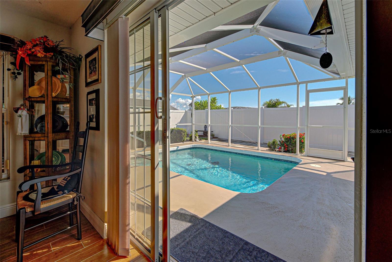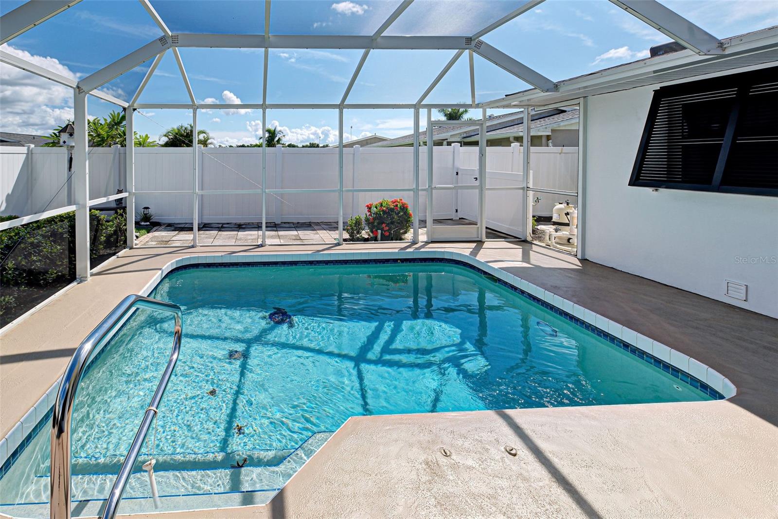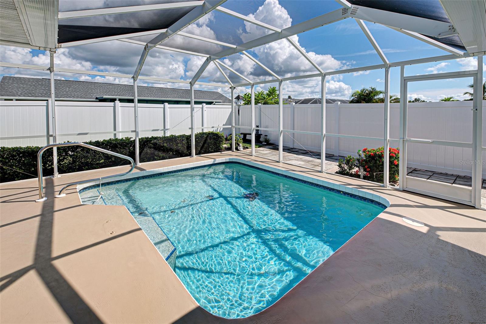 Discover your perfect oasis in this beautifully maintained 3-bedroom, 2-bath pool home located in the heart of Southwest Florida, just 15 miles from the stunning Boca Grande Beach. This charming residence boasts tile flooring throughout, showcasing a seamless blend of style and functionality, complemented by thoughtful upgrades that enhance its appeal. Step outside to your private pool area, surrounded by beautiful landscaping and a privacy fence that creates a serene, private retreat for relaxation and entertainment. The outdoor space is designed for enjoyment, making it ideal for hosting gatherings or unwinding after a long day. In addition to the inviting pool, this home features elegant Bahama shutters, providing both aesthetic charm and practical shade. A bonus den room off the primary bedroom offers versatile space that can be used as an office, playroom, or additional guest area. This home also features a whole-home generator, providing peace of mind and uninterrupted power during storms and outages—an invaluable asset in Southwest Florida. It is Situated in a vibrant community that offers two pools and various recreational activities, you'll have access to a wealth of amenities right at your doorstep. This home is not just a residence; it's a lifestyle waiting for you to embrace. Don’t miss out on this exceptional opportunity—schedule your viewing today and experience the best of Southwest Florida living!