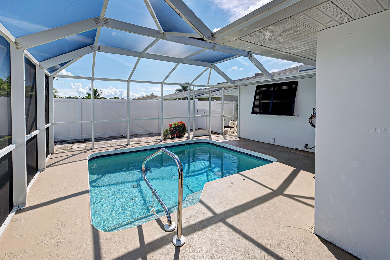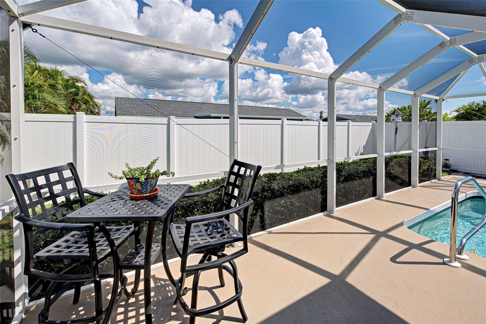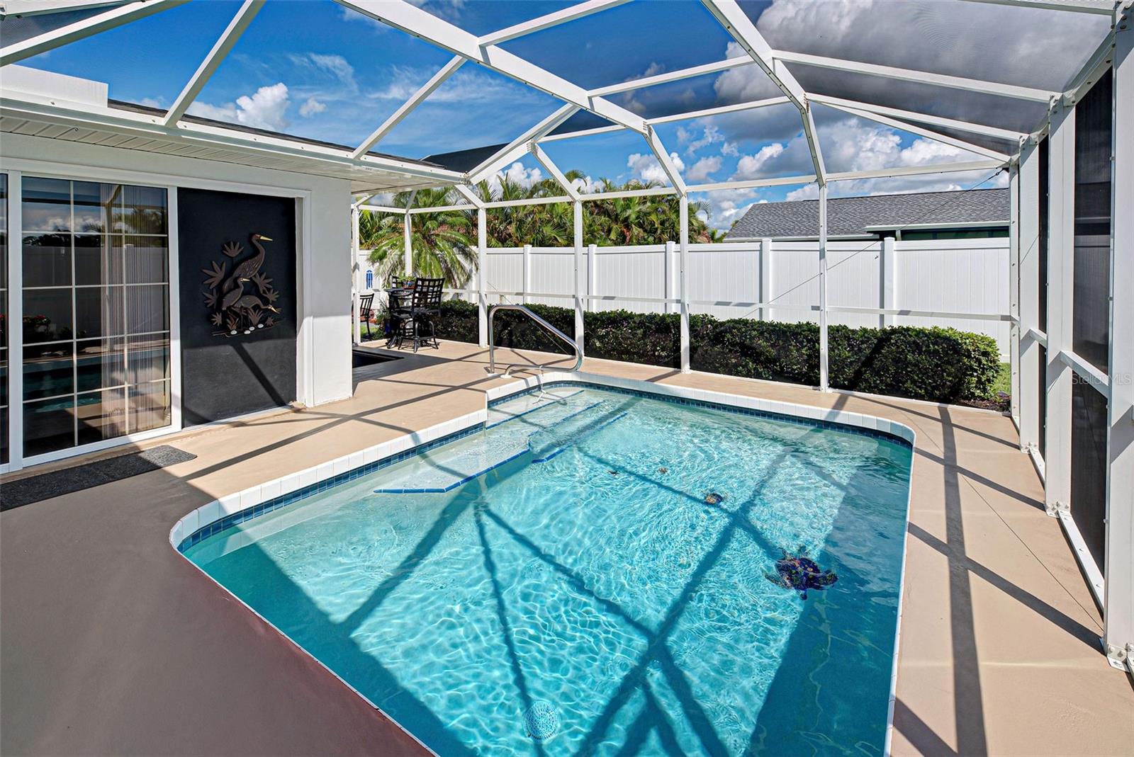 Discover your perfect oasis in this beautifully maintained 3-bedroom, 2-bath pool home located in the heart of Southwest Florida, just 15 miles from the stunning Boca Grande Beach. This charming residence boasts tile flooring throughout, showcasing a seamless blend of style and functionality, complemented by thoughtful upgrades that enhance its appeal. Step outside to your private pool area, surrounded by beautiful landscaping and a privacy fence that creates a serene, private retreat for relaxation and entertainment. The outdoor space is designed for enjoyment, making it ideal for hosting gatherings or unwinding after a long day. In addition to the inviting pool, this home features elegant Bahama shutters, providing both aesthetic charm and practical shade. A bonus den room off the primary bedroom offers versatile space that can be used as an office, playroom, or additional guest area. This home also features a whole-home generator, providing peace of mind and uninterrupted power during storms and outages—an invaluable asset in Southwest Florida. It is Situated in a vibrant community that offers two pools and various recreational activities, you'll have access to a wealth of amenities right at your doorstep. This home is not just a residence; it's a lifestyle waiting for you to embrace. Don’t miss out on this exceptional opportunity—schedule your viewing today and experience the best of Southwest Florida living!