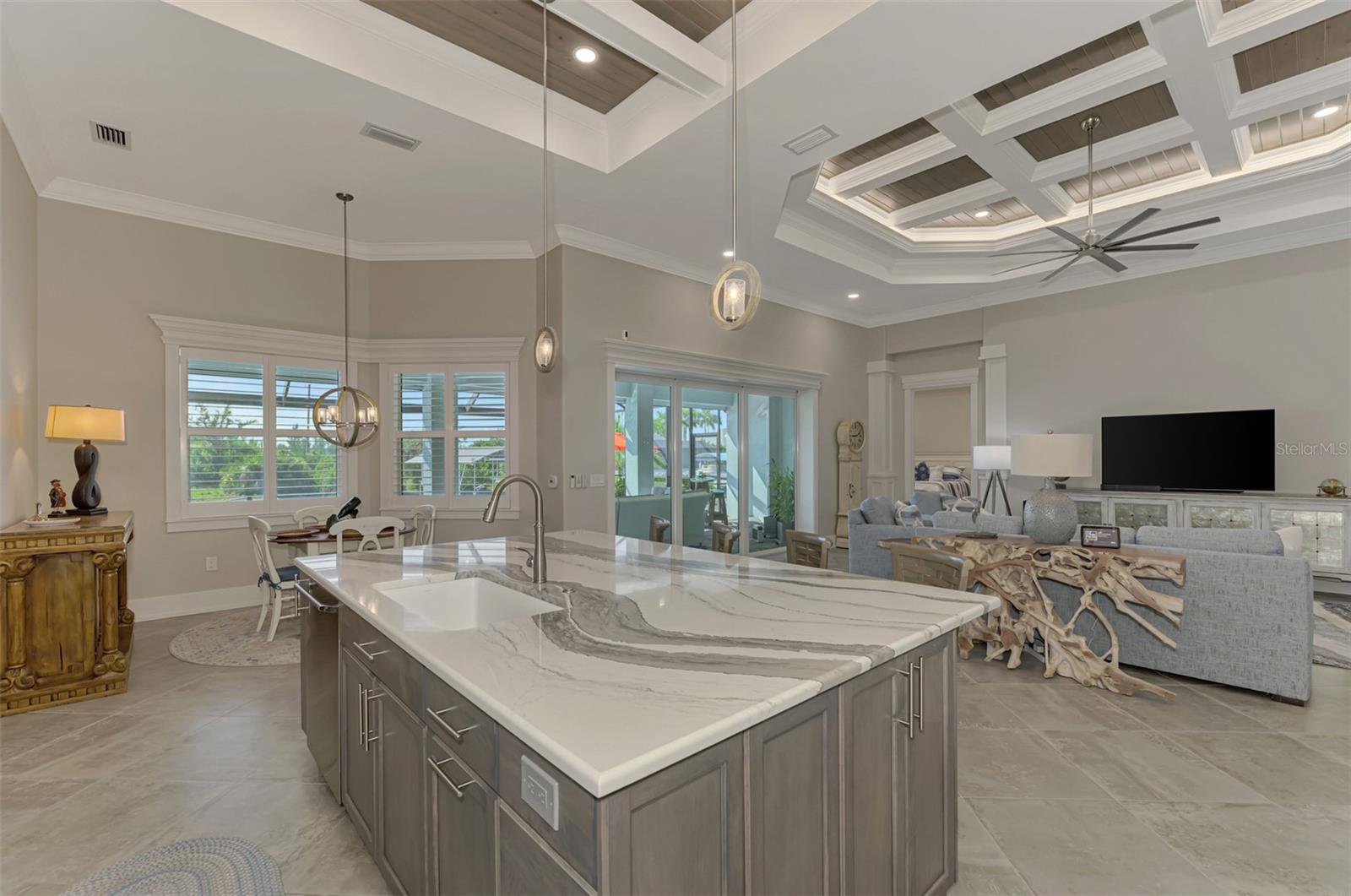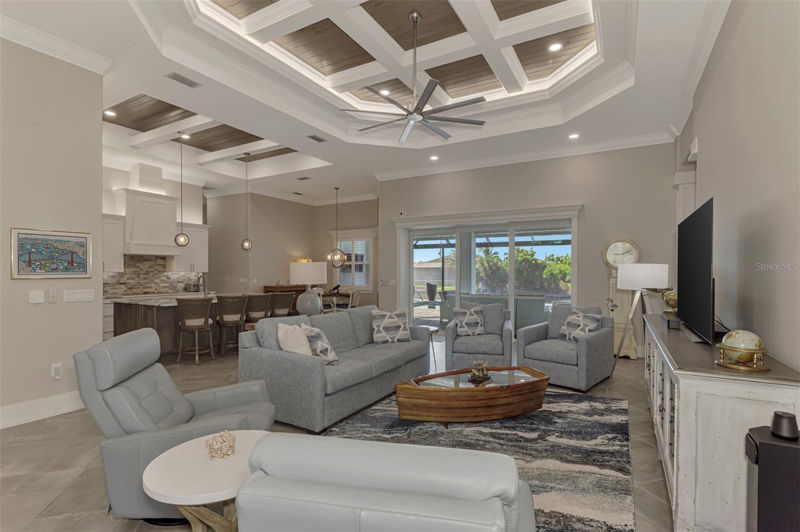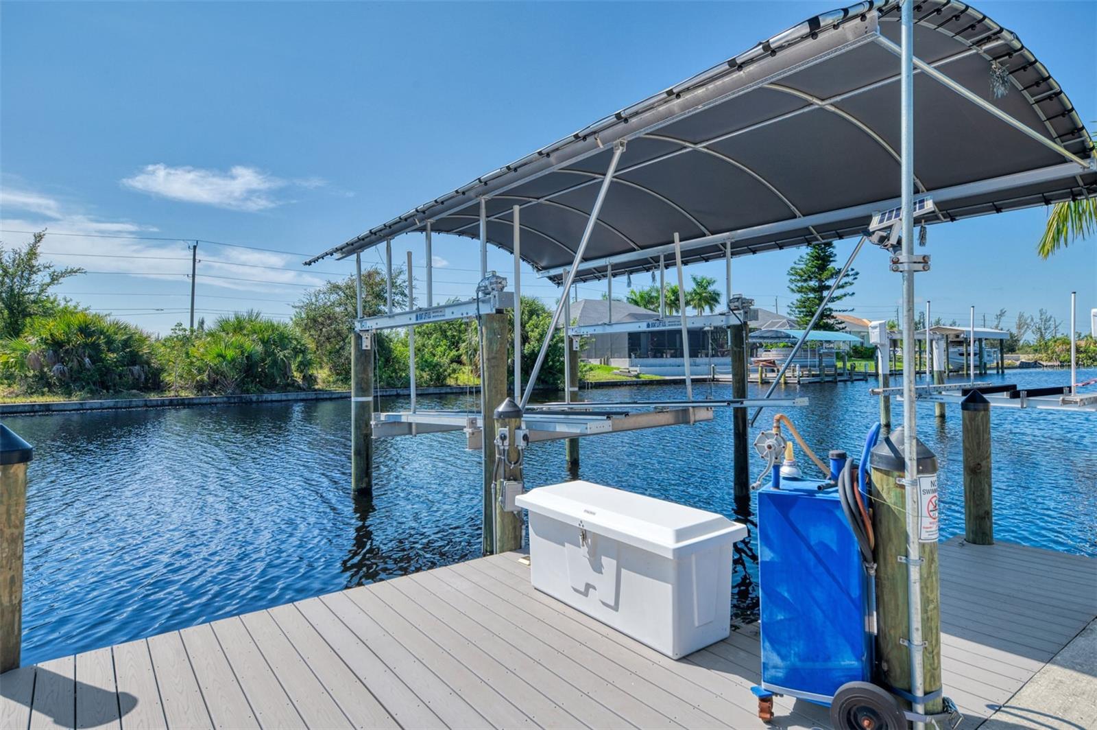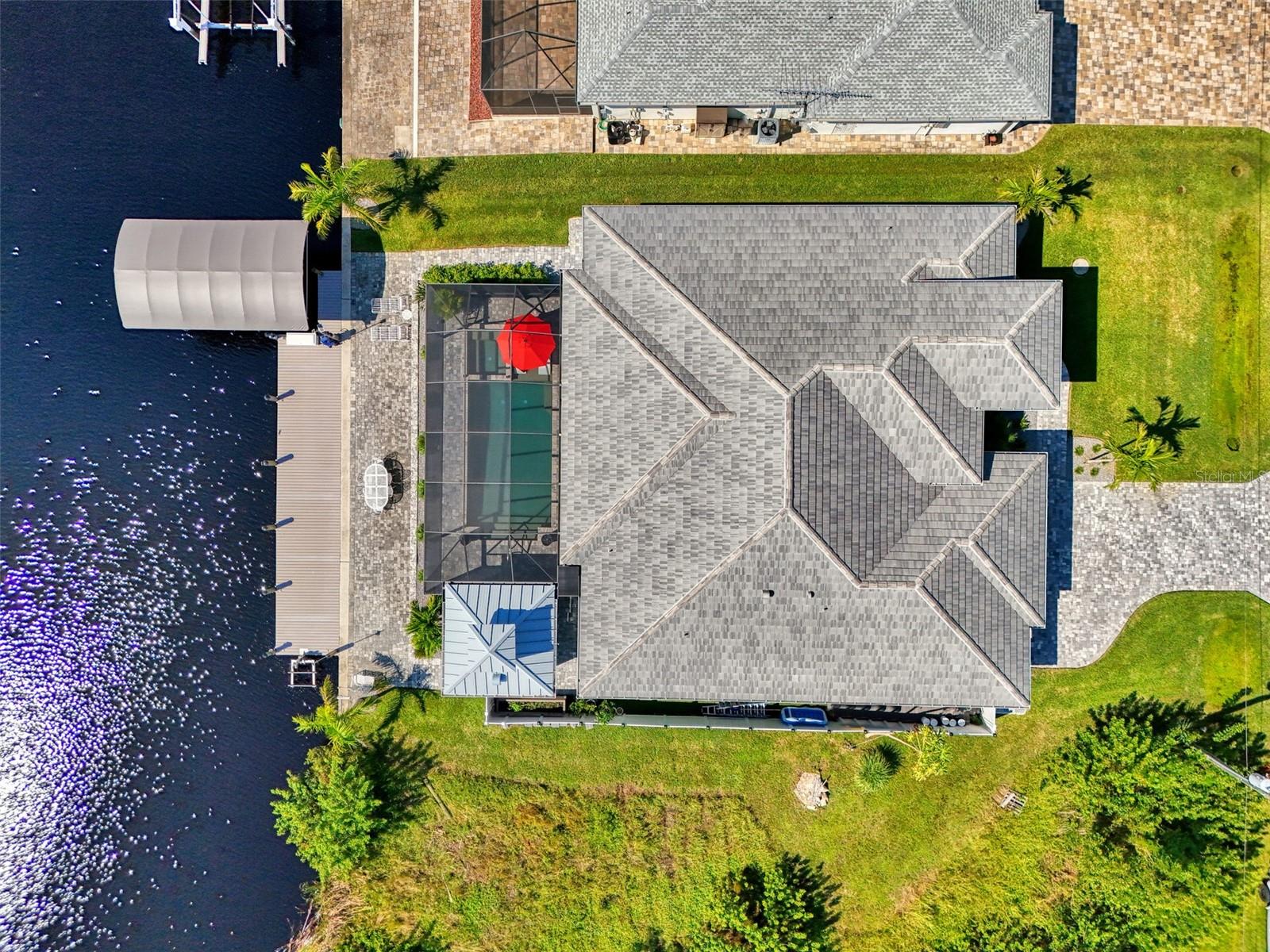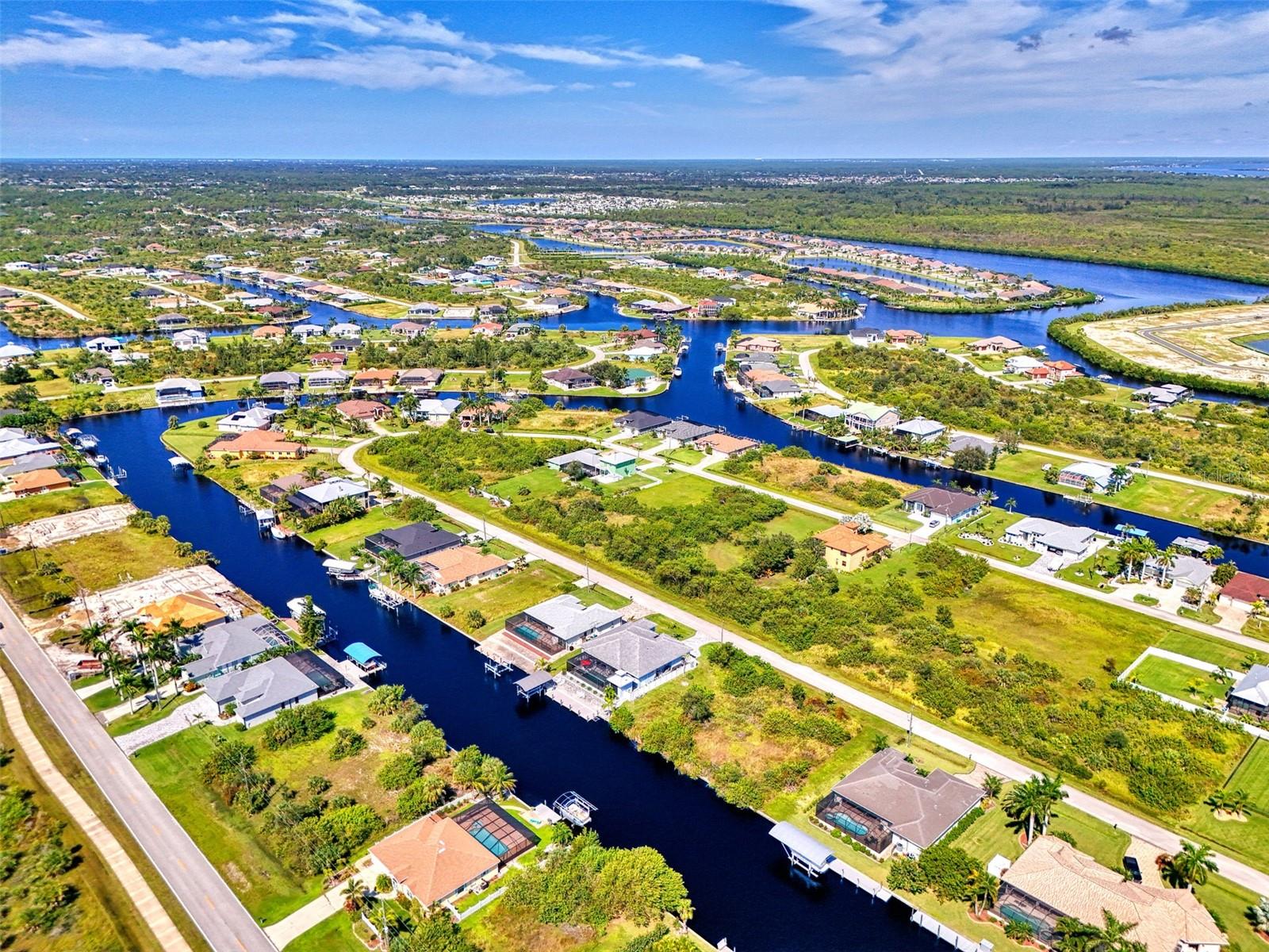 One or more photos has been digitally staged. Location! Location! Location! Don’t miss this 2020-built CUSTOM MINI ESTATE WATERFRONT POOL HOME WITH SAILBOAT ACCESS offering quick boating access to Charlotte Harbor and the Gulf of Mexico! (no bridges to go under!) This stunning 3-bedroom, 3-bathroom 3 car spacious garage pool home with Tile roof and a private Office (which can serve as a 4th bedroom) was built by the prestigious Luke Brothers Custom Homes. It's packed with luxury features, and every detail has been thoughtfully crafted for the ultimate Florida lifestyle. As you step onto the paver driveway and walkway, you’ll be captivated by the impressive entryway. Double leaded glass doors lead you into a grand foyer, where your eyes will immediately be drawn to the sparkling saltwater pool and canal views. The pool area features paver decking, a state-of-the-art saltwater heated pool and spa, and a paver walkway that takes you to the incredible 60' composite dock. This dock is fully equipped with 240 electric, a 10,000 lb covered boat lift, a jet ski lift, and an 80' concrete seawall, all set in one of the most desirable locations in South Gulf Cove. Inside the home, the craftsmanship shines with 15' coffered ceilings adorned with Poplar wood, crown molding, and beautiful light fixtures. The grand living space showcases lighted built-in shelving, custom gray Spanish tile flooring, and plantation shutters throughout. The gourmet kitchen is a showstopper, boasting a Cambria Quartz center island, high-end Electrolux stainless steel appliances, convection cooktop, built-in oven, microwave, dishwasher and custom soft-close wood cabinetry with crown molding. A glass tile backsplash and lighted display cabinets add to the kitchen's charm. The master suite is an oasis, with coffered tray ceilings, pool access, and two spacious walk-in closets with built-in shelving. The luxurious master bath offers a large walk-in shower, separate tub, dual sinks, and upgraded granite countertops. Step outside to the cabana with metal roof, where entertaining is a breeze! This outdoor kitchen includes a stainless steel built-in grill, double burner, bar refrigerator, and granite countertops. The pool area is equally stunning with a waterfall, fiber optic color wheel, and fire columns that create a true resort vibe. Additional features include impact windows, Kevlar automatic shutter for the back lanai area, Ring doorbell, a 3-car garage with epoxy floors, smart garage door opener, central vacuum, and an on-demand hot water heater and so much more! The yard is fenced on one side with AstroTurf and a brick paver walkway to the cabana. If you’re into boating, fishing, or just love the water, this home is minutes from Boca Grande with easy access to Charlotte Harbor and the Gulf. Call us today for a private showing—you’ll be glad you did!