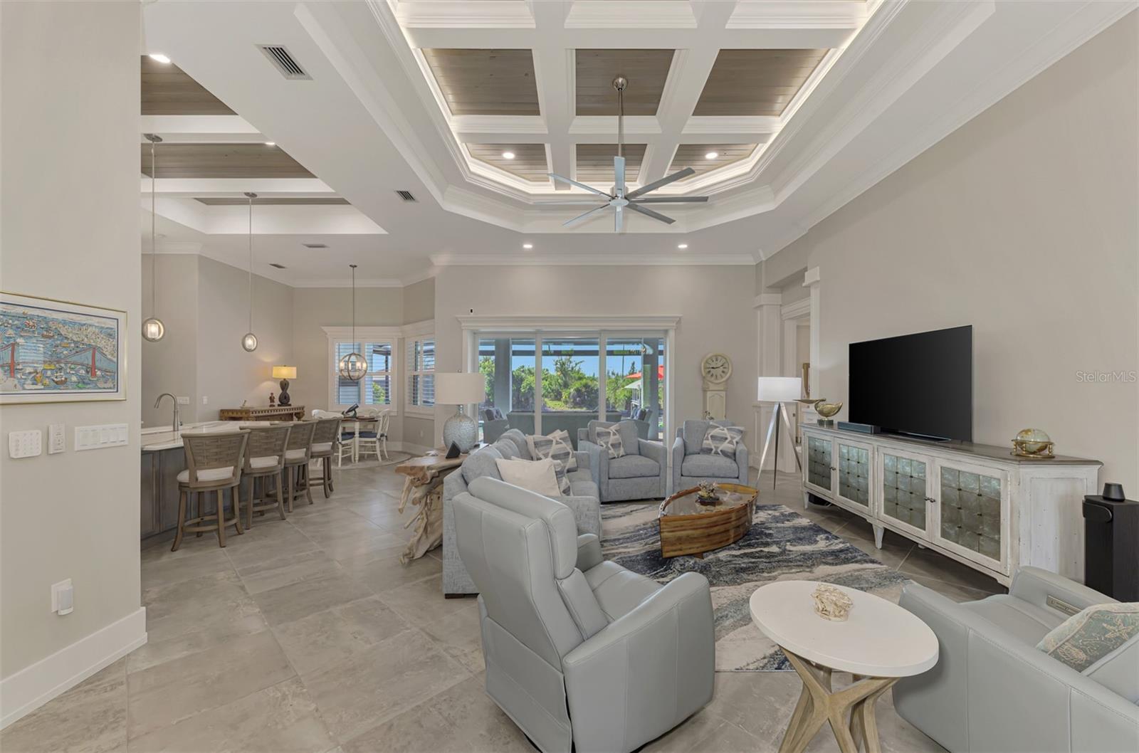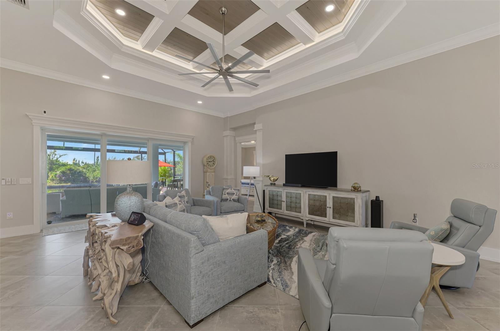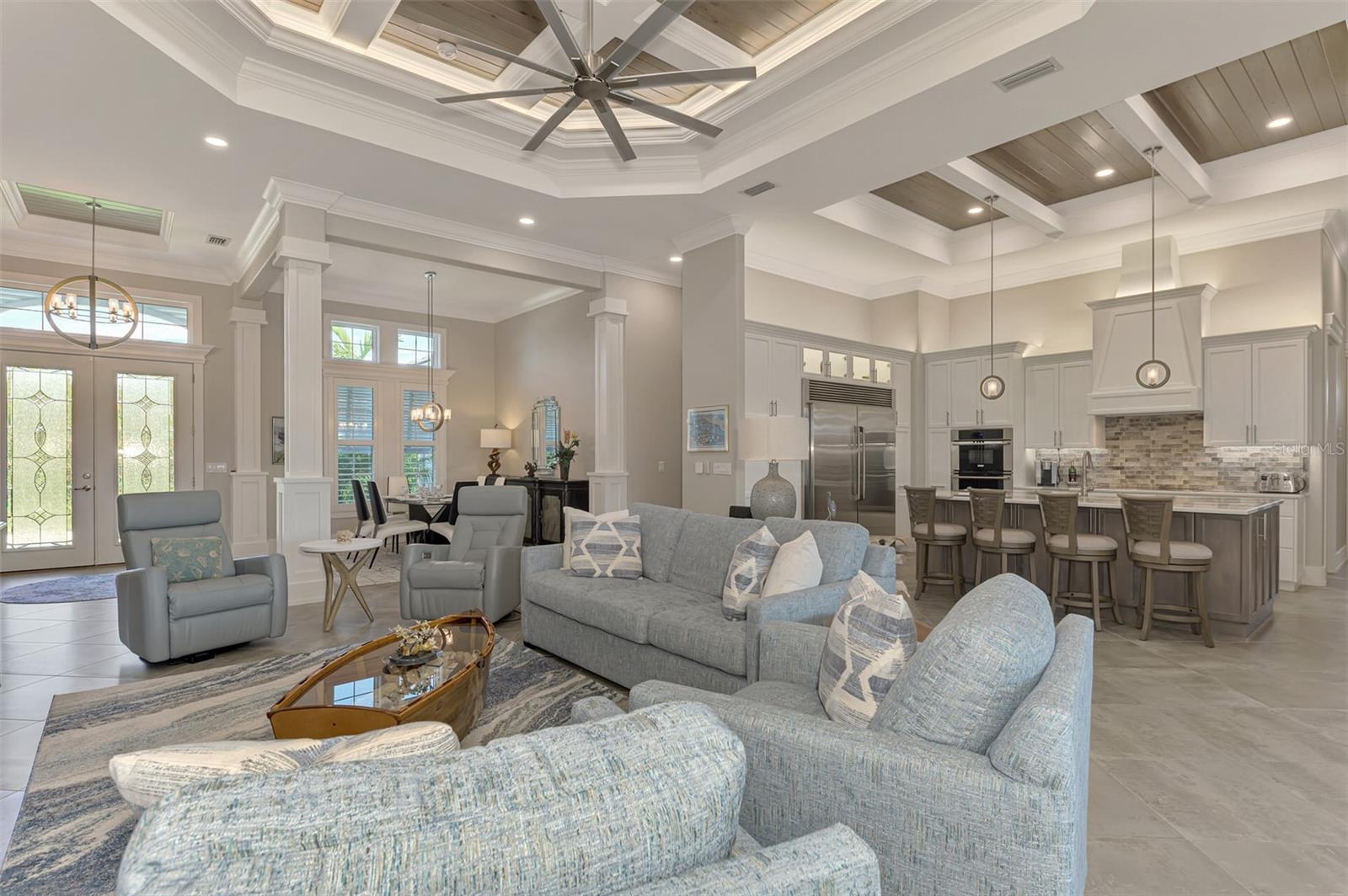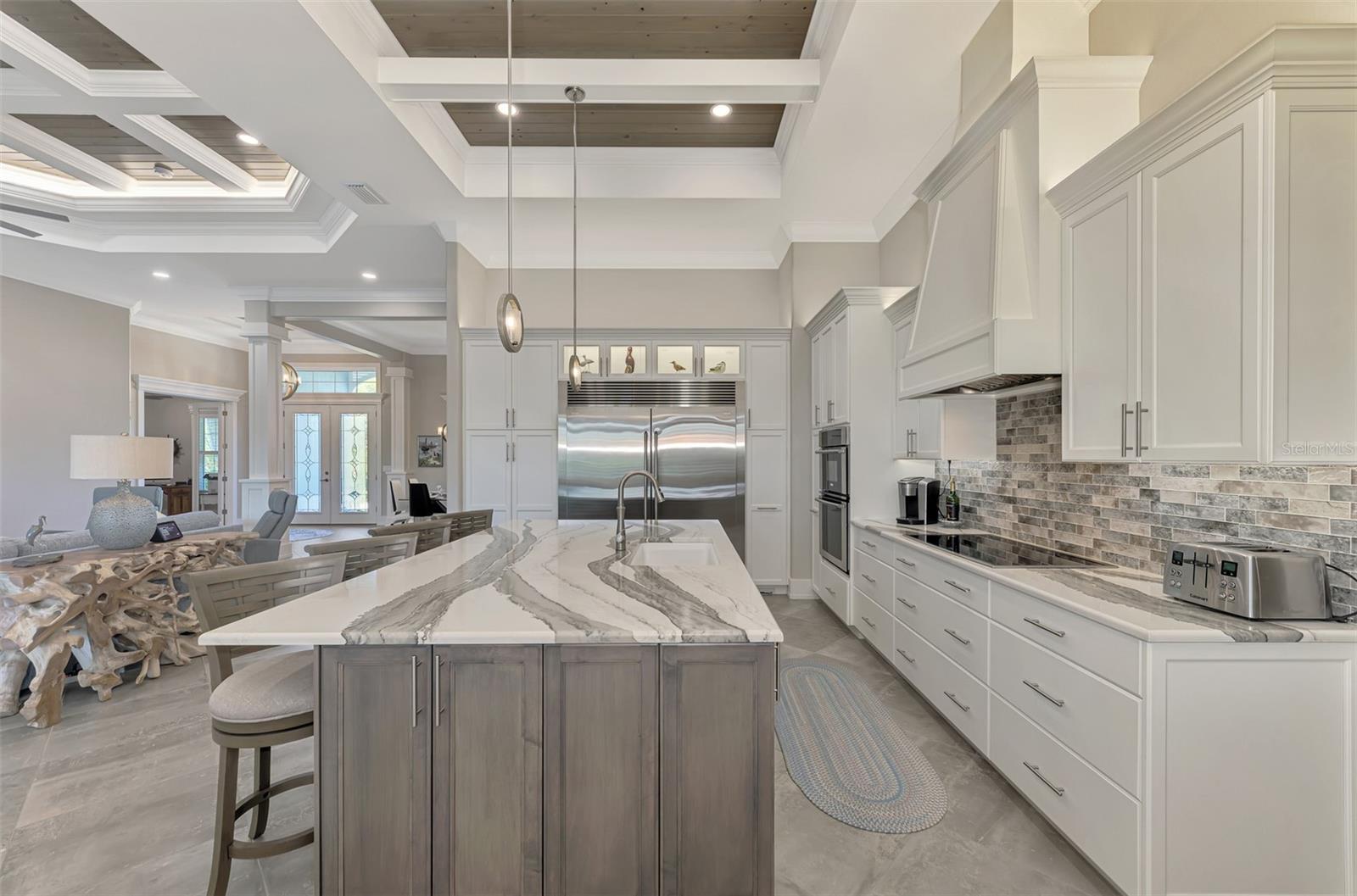 One or more photos has been digitally staged. Location! Location! Location! Don’t miss this 2020-built CUSTOM MINI ESTATE WATERFRONT POOL HOME WITH SAILBOAT ACCESS offering quick boating access to Charlotte Harbor and the Gulf of Mexico! (no bridges to go under!) This stunning 3-bedroom, 3-bathroom 3 car spacious garage pool home with Tile roof and a private Office (which can serve as a 4th bedroom) was built by the prestigious Luke Brothers Custom Homes. It's packed with luxury features, and every detail has been thoughtfully crafted for the ultimate Florida lifestyle. As you step onto the paver driveway and walkway, you’ll be captivated by the impressive entryway. Double leaded glass doors lead you into a grand foyer, where your eyes will immediately be drawn to the sparkling saltwater pool and canal views. The pool area features paver decking, a state-of-the-art saltwater heated pool and spa, and a paver walkway that takes you to the incredible 60' composite dock. This dock is fully equipped with 240 electric, a 10,000 lb covered boat lift, a jet ski lift, and an 80' concrete seawall, all set in one of the most desirable locations in South Gulf Cove. Inside the home, the craftsmanship shines with 15' coffered ceilings adorned with Poplar wood, crown molding, and beautiful light fixtures. The grand living space showcases lighted built-in shelving, custom gray Spanish tile flooring, and plantation shutters throughout. The gourmet kitchen is a showstopper, boasting a Cambria Quartz center island, high-end Electrolux stainless steel appliances, convection cooktop, built-in oven, microwave, dishwasher and custom soft-close wood cabinetry with crown molding. A glass tile backsplash and lighted display cabinets add to the kitchen's charm. The master suite is an oasis, with coffered tray ceilings, pool access, and two spacious walk-in closets with built-in shelving. The luxurious master bath offers a large walk-in shower, separate tub, dual sinks, and upgraded granite countertops. Step outside to the cabana with metal roof, where entertaining is a breeze! This outdoor kitchen includes a stainless steel built-in grill, double burner, bar refrigerator, and granite countertops. The pool area is equally stunning with a waterfall, fiber optic color wheel, and fire columns that create a true resort vibe. Additional features include impact windows, Kevlar automatic shutter for the back lanai area, Ring doorbell, a 3-car garage with epoxy floors, smart garage door opener, central vacuum, and an on-demand hot water heater and so much more! The yard is fenced on one side with AstroTurf and a brick paver walkway to the cabana. If you’re into boating, fishing, or just love the water, this home is minutes from Boca Grande with easy access to Charlotte Harbor and the Gulf. Call us today for a private showing—you’ll be glad you did!