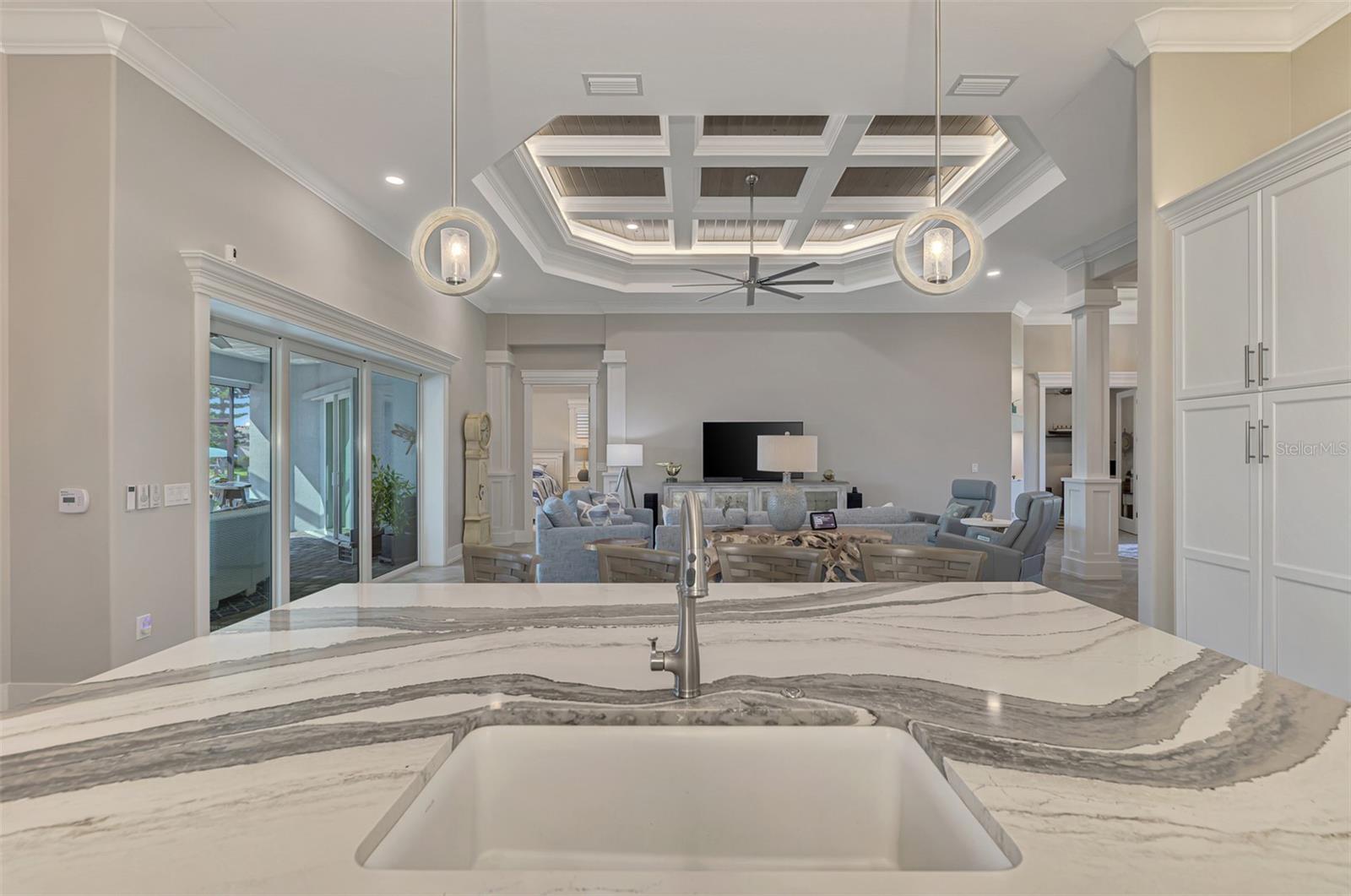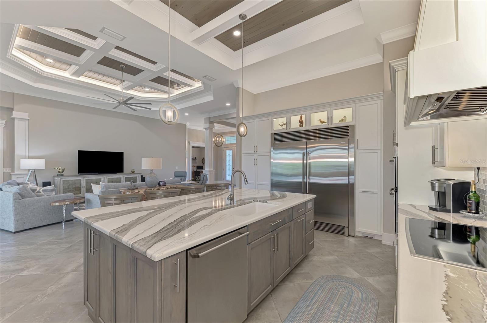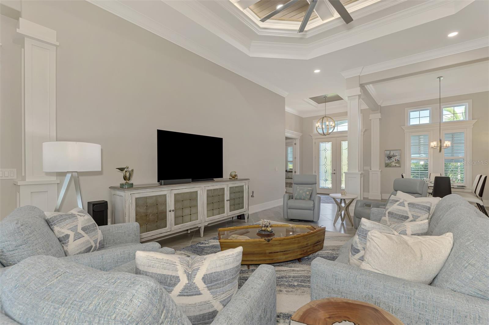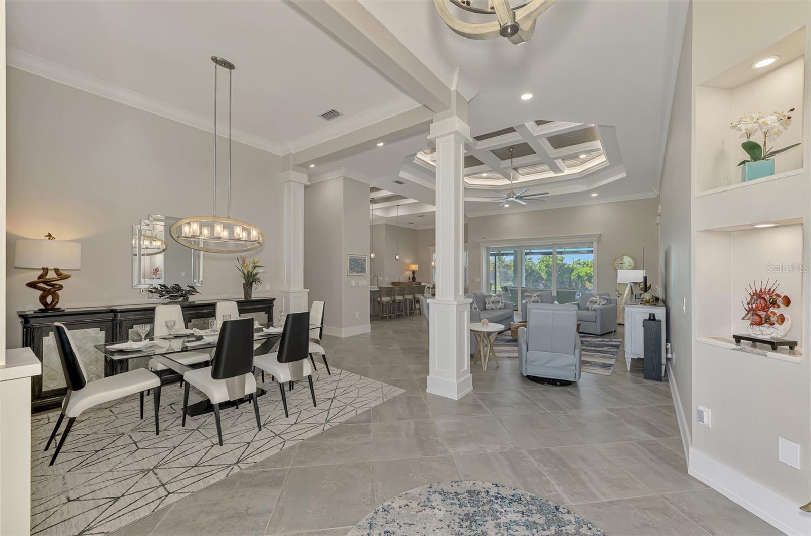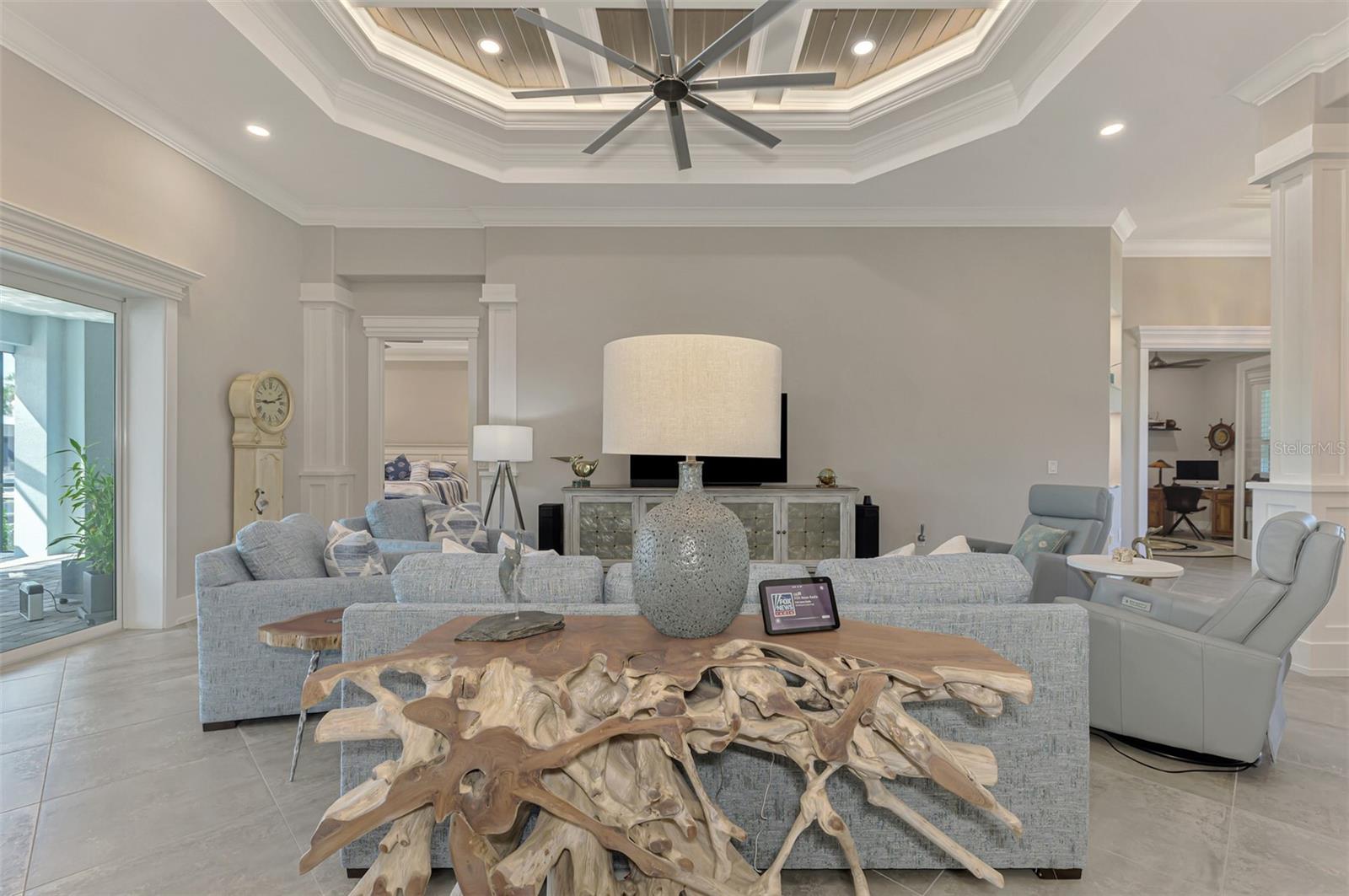 One or more photos has been digitally staged. Location! Location! Location! Don’t miss this 2020-built CUSTOM MINI ESTATE WATERFRONT POOL HOME WITH SAILBOAT ACCESS offering quick boating access to Charlotte Harbor and the Gulf of Mexico! (no bridges to go under!) This stunning 3-bedroom, 3-bathroom 3 car spacious garage pool home with Tile roof and a private Office (which can serve as a 4th bedroom) was built by the prestigious Luke Brothers Custom Homes. It's packed with luxury features, and every detail has been thoughtfully crafted for the ultimate Florida lifestyle. As you step onto the paver driveway and walkway, you’ll be captivated by the impressive entryway. Double leaded glass doors lead you into a grand foyer, where your eyes will immediately be drawn to the sparkling saltwater pool and canal views. The pool area features paver decking, a state-of-the-art saltwater heated pool and spa, and a paver walkway that takes you to the incredible 60' composite dock. This dock is fully equipped with 240 electric, a 10,000 lb covered boat lift, a jet ski lift, and an 80' concrete seawall, all set in one of the most desirable locations in South Gulf Cove. Inside the home, the craftsmanship shines with 15' coffered ceilings adorned with Poplar wood, crown molding, and beautiful light fixtures. The grand living space showcases lighted built-in shelving, custom gray Spanish tile flooring, and plantation shutters throughout. The gourmet kitchen is a showstopper, boasting a Cambria Quartz center island, high-end Electrolux stainless steel appliances, convection cooktop, built-in oven, microwave, dishwasher and custom soft-close wood cabinetry with crown molding. A glass tile backsplash and lighted display cabinets add to the kitchen's charm. The master suite is an oasis, with coffered tray ceilings, pool access, and two spacious walk-in closets with built-in shelving. The luxurious master bath offers a large walk-in shower, separate tub, dual sinks, and upgraded granite countertops. Step outside to the cabana with metal roof, where entertaining is a breeze! This outdoor kitchen includes a stainless steel built-in grill, double burner, bar refrigerator, and granite countertops. The pool area is equally stunning with a waterfall, fiber optic color wheel, and fire columns that create a true resort vibe. Additional features include impact windows, Kevlar automatic shutter for the back lanai area, Ring doorbell, a 3-car garage with epoxy floors, smart garage door opener, central vacuum, and an on-demand hot water heater and so much more! The yard is fenced on one side with AstroTurf and a brick paver walkway to the cabana. If you’re into boating, fishing, or just love the water, this home is minutes from Boca Grande with easy access to Charlotte Harbor and the Gulf. Call us today for a private showing—you’ll be glad you did!