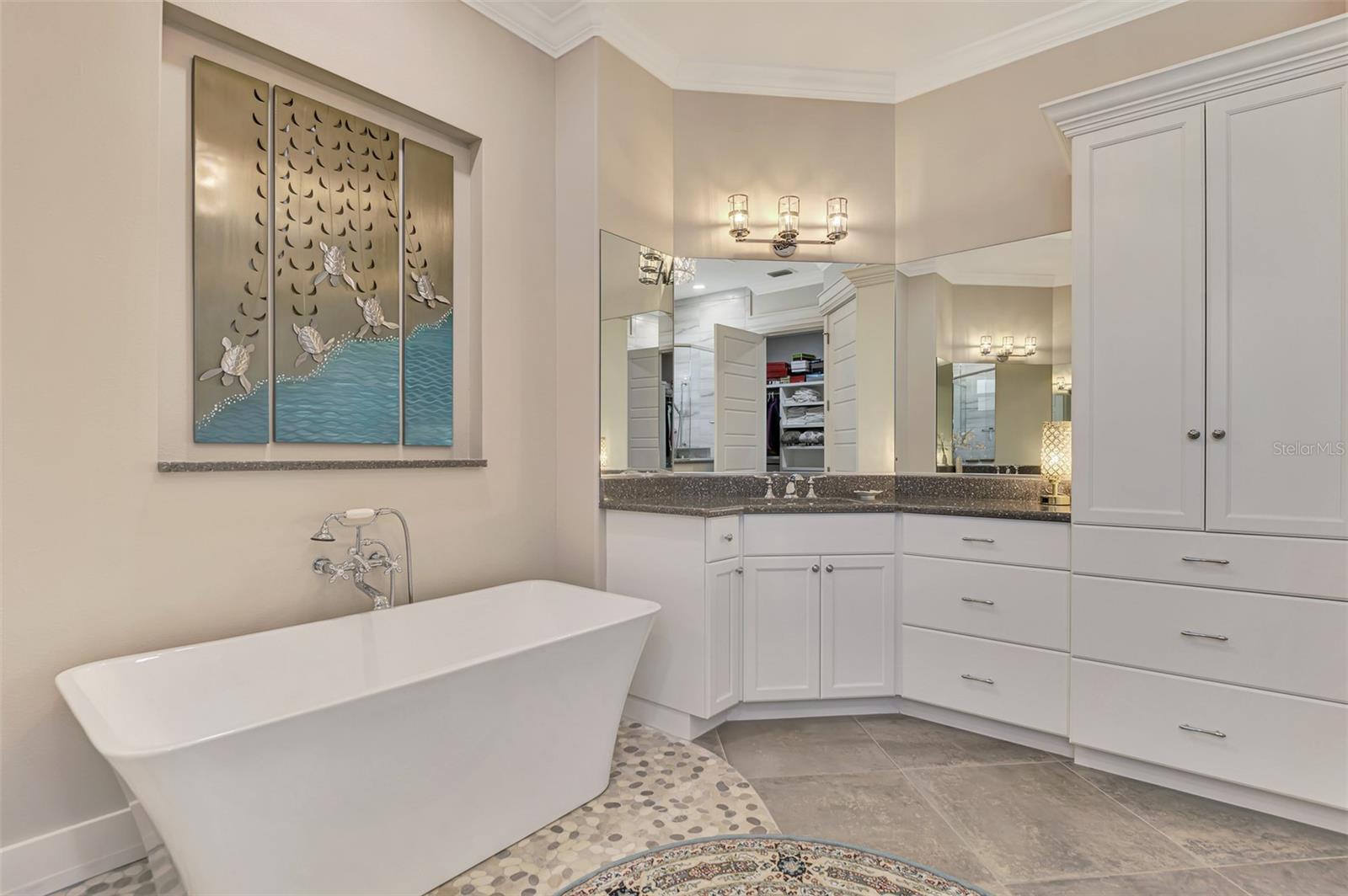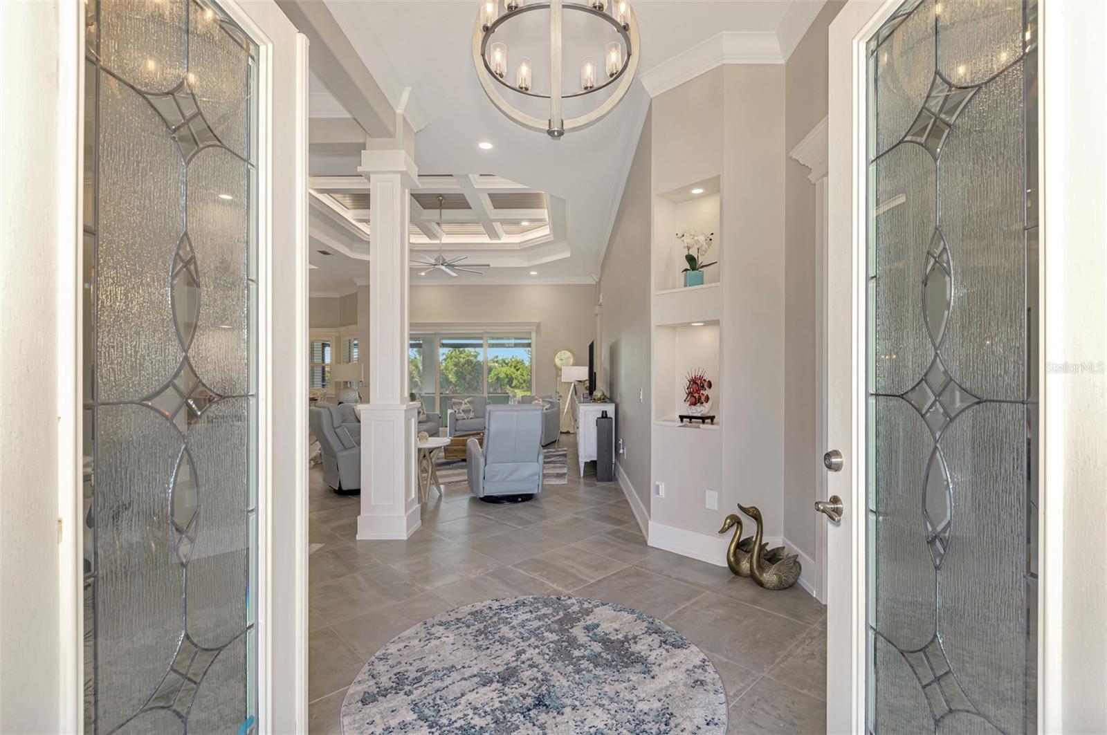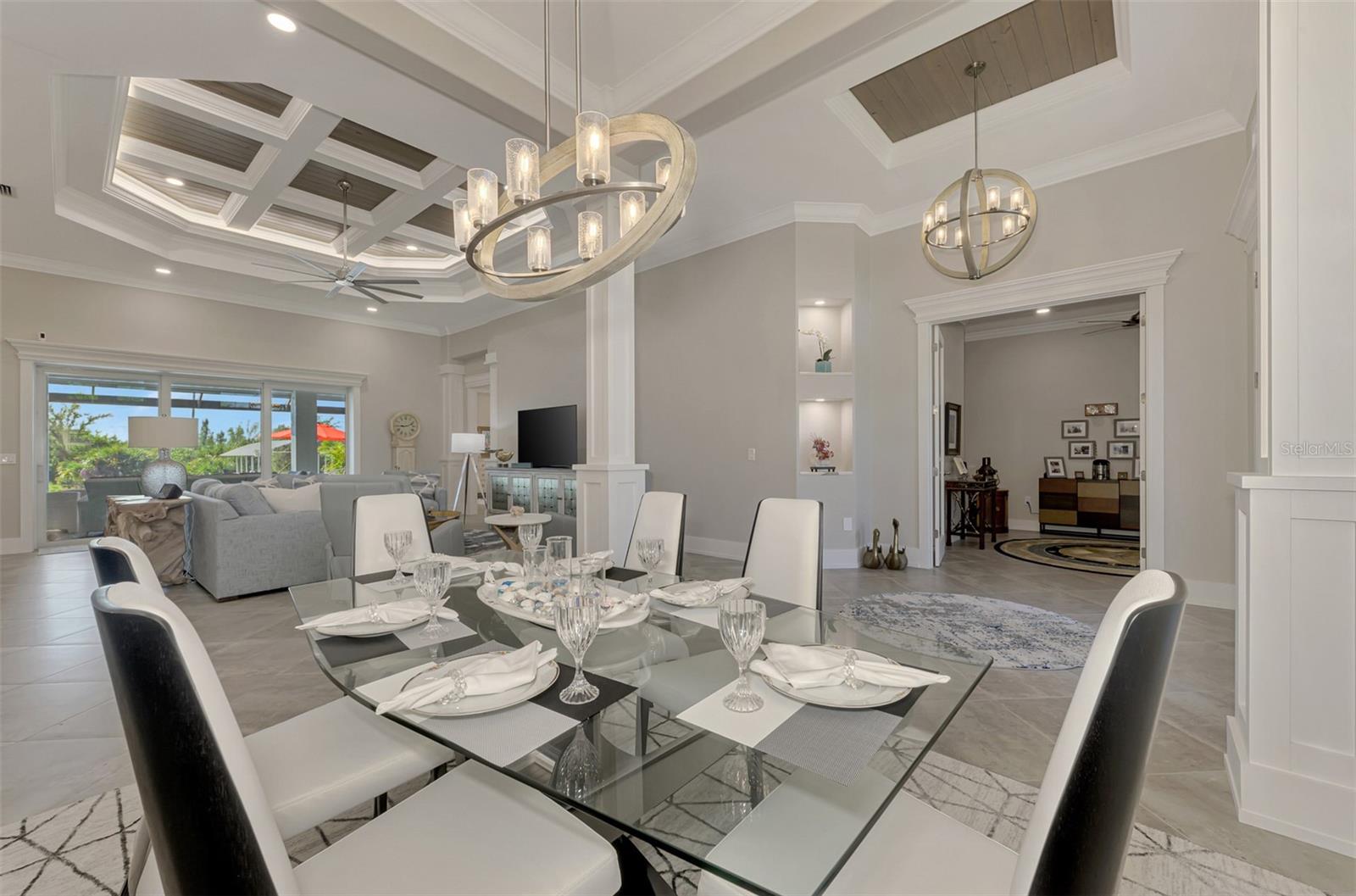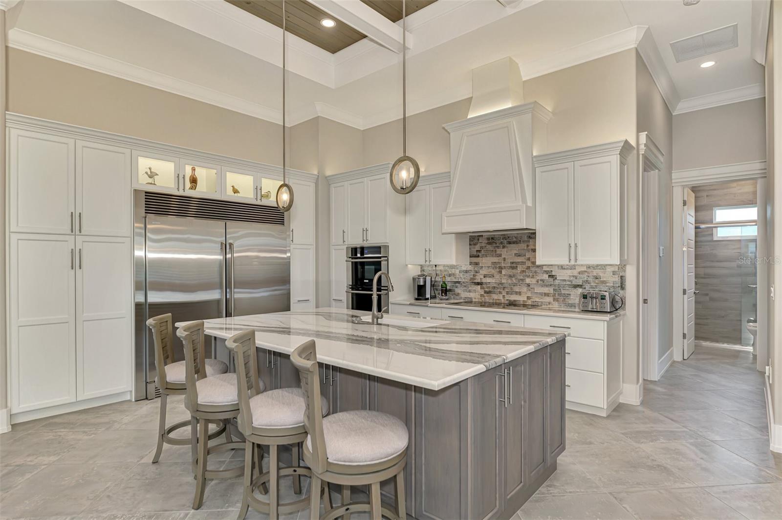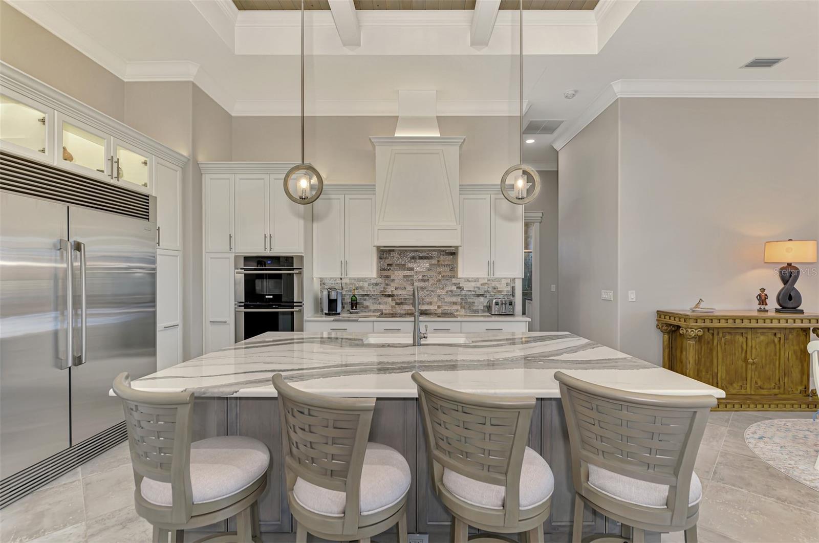 One or more photos has been digitally staged. Location! Location! Location! Don’t miss this 2020-built CUSTOM MINI ESTATE WATERFRONT POOL HOME WITH SAILBOAT ACCESS offering quick boating access to Charlotte Harbor and the Gulf of Mexico! (no bridges to go under!) This stunning 3-bedroom, 3-bathroom 3 car spacious garage pool home with Tile roof and a private Office (which can serve as a 4th bedroom) was built by the prestigious Luke Brothers Custom Homes. It's packed with luxury features, and every detail has been thoughtfully crafted for the ultimate Florida lifestyle. As you step onto the paver driveway and walkway, you’ll be captivated by the impressive entryway. Double leaded glass doors lead you into a grand foyer, where your eyes will immediately be drawn to the sparkling saltwater pool and canal views. The pool area features paver decking, a state-of-the-art saltwater heated pool and spa, and a paver walkway that takes you to the incredible 60' composite dock. This dock is fully equipped with 240 electric, a 10,000 lb covered boat lift, a jet ski lift, and an 80' concrete seawall, all set in one of the most desirable locations in South Gulf Cove. Inside the home, the craftsmanship shines with 15' coffered ceilings adorned with Poplar wood, crown molding, and beautiful light fixtures. The grand living space showcases lighted built-in shelving, custom gray Spanish tile flooring, and plantation shutters throughout. The gourmet kitchen is a showstopper, boasting a Cambria Quartz center island, high-end Electrolux stainless steel appliances, convection cooktop, built-in oven, microwave, dishwasher and custom soft-close wood cabinetry with crown molding. A glass tile backsplash and lighted display cabinets add to the kitchen's charm. The master suite is an oasis, with coffered tray ceilings, pool access, and two spacious walk-in closets with built-in shelving. The luxurious master bath offers a large walk-in shower, separate tub, dual sinks, and upgraded granite countertops. Step outside to the cabana with metal roof, where entertaining is a breeze! This outdoor kitchen includes a stainless steel built-in grill, double burner, bar refrigerator, and granite countertops. The pool area is equally stunning with a waterfall, fiber optic color wheel, and fire columns that create a true resort vibe. Additional features include impact windows, Kevlar automatic shutter for the back lanai area, Ring doorbell, a 3-car garage with epoxy floors, smart garage door opener, central vacuum, and an on-demand hot water heater and so much more! The yard is fenced on one side with AstroTurf and a brick paver walkway to the cabana. If you’re into boating, fishing, or just love the water, this home is minutes from Boca Grande with easy access to Charlotte Harbor and the Gulf. Call us today for a private showing—you’ll be glad you did!