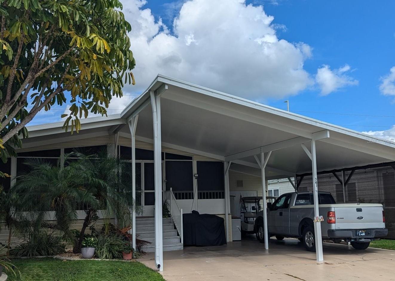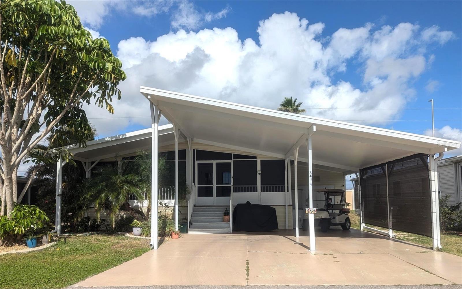 JUST REDUCED Seller Motivated to allow for Quick Possession! This True Three Bed Two Bath home in Gated Golf Course community features Large Living room that is open concept to your Dining area and Large Kitchen with Island that offers you addition eat-in kitchen bar area. Home features many high-end custom design updates such as drywall, rounded corners, high ceilings and Crown molding! The home updates include Newer Windows, Roof 2022, Microwave, Fridge, Dishwasher 2024 and Solid surface range. The French doors open to your large screened in lanai with custom privacy screens. Each Bedroom has nice sized closets including a walk-in closet in your Primary Suite. The Laundry/Storage room has ample closet space with a nice sink with counter space. Looking to have a Side-Side Two Car Carport, well this is it! It's an oversized carport with additional room for your golf cart. This is a Perimeter home, lowest HOA Fee. You will not want to miss this Fantastic 55+ Resident-Owned 18 Hole Executive Gated Golf Course Amenity-Rich Community has lighted Tennis Courts, Pickleball Courts, Fitness Room, Heated Swimming Pools, Clubhouses, Fishing Lakes, Bocce Ball, Lawn Bowling, Mini-Putt, Horseshoes, Many Special Clubs, Arts & Crafts, Cards, Bingo, Woodworking Shop, Ceramics and Computer Club. Enjoy the On-Site Restaurant/Bar for Dinners, Music & Entertainment! Maple Leaf Golf & Country Club is a Resident Owned community. Price Includes Membership Certificate. The membership certificate (stock certificate) is evidence of ownership of a fractional interest of the corporation, Maple Leaf Estates Homeowners' Corporation.