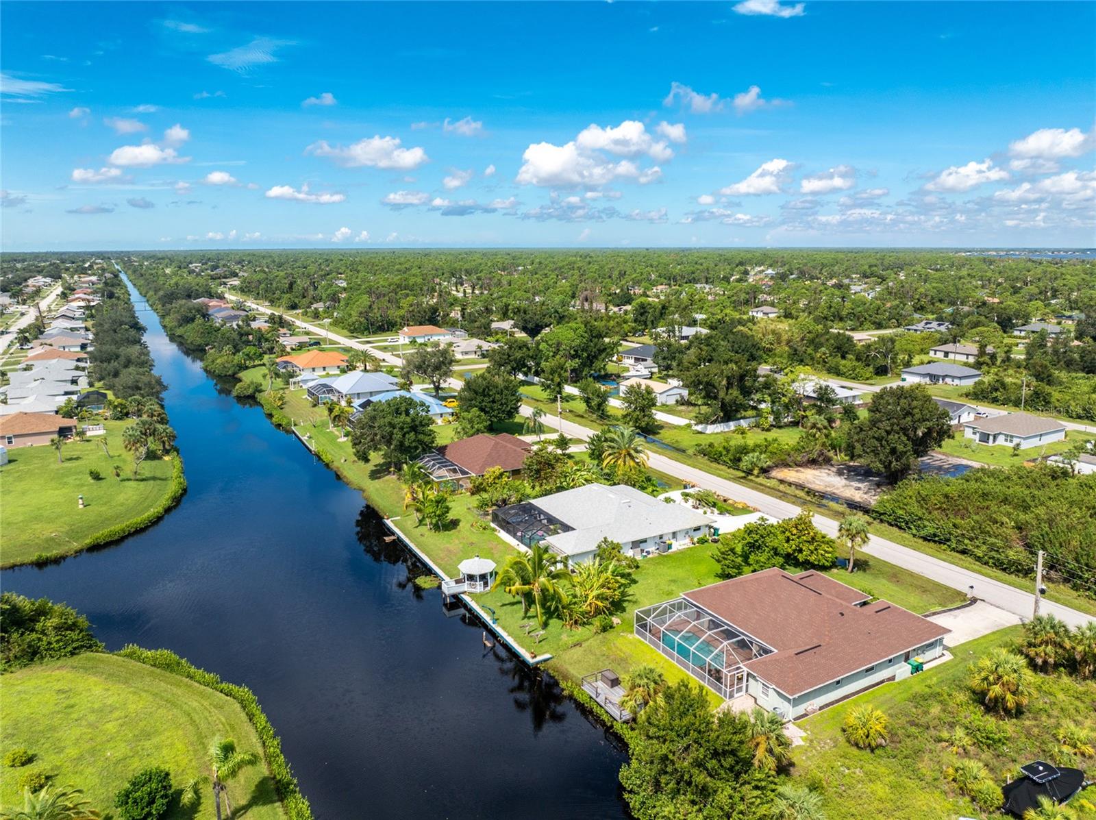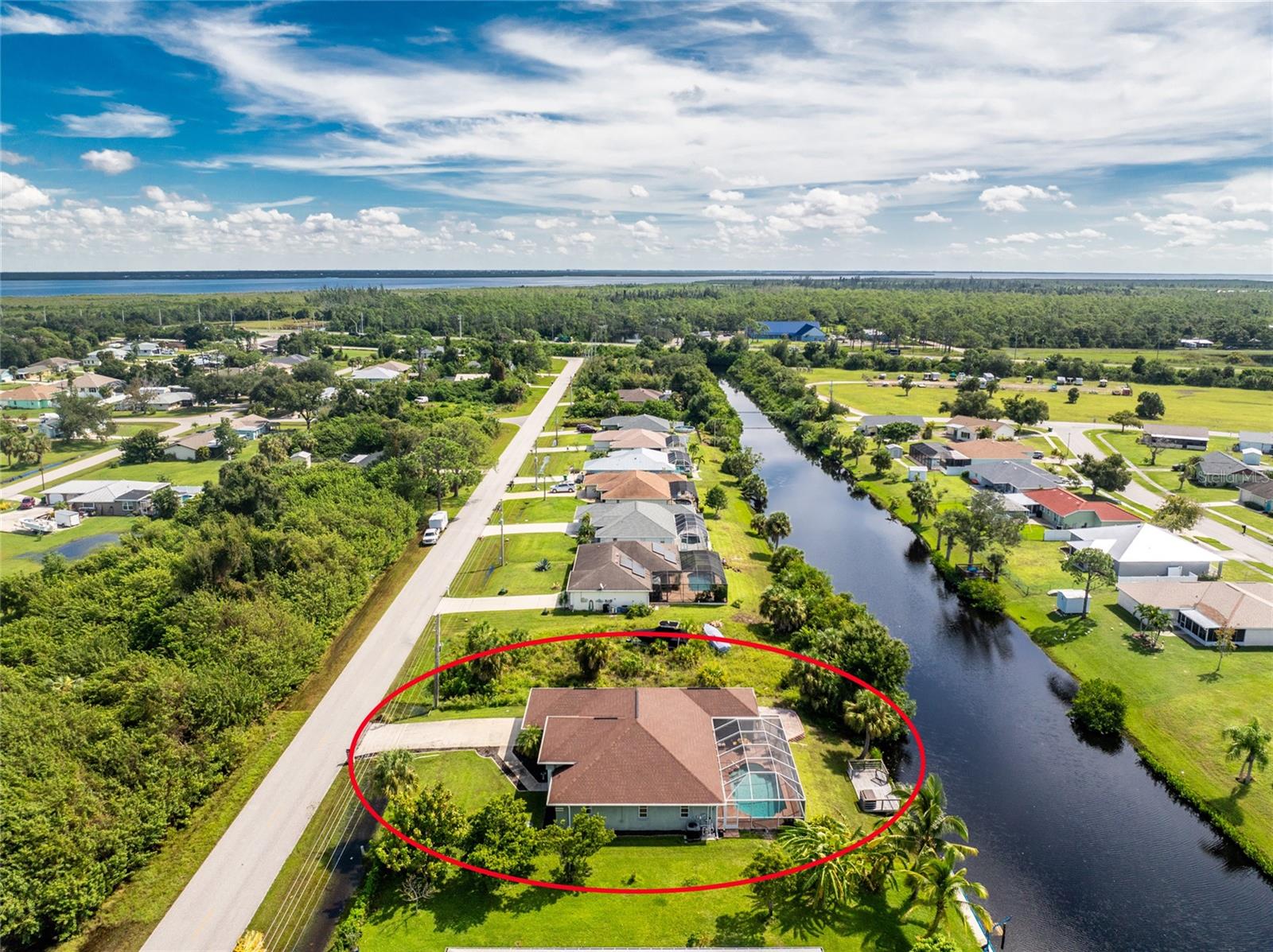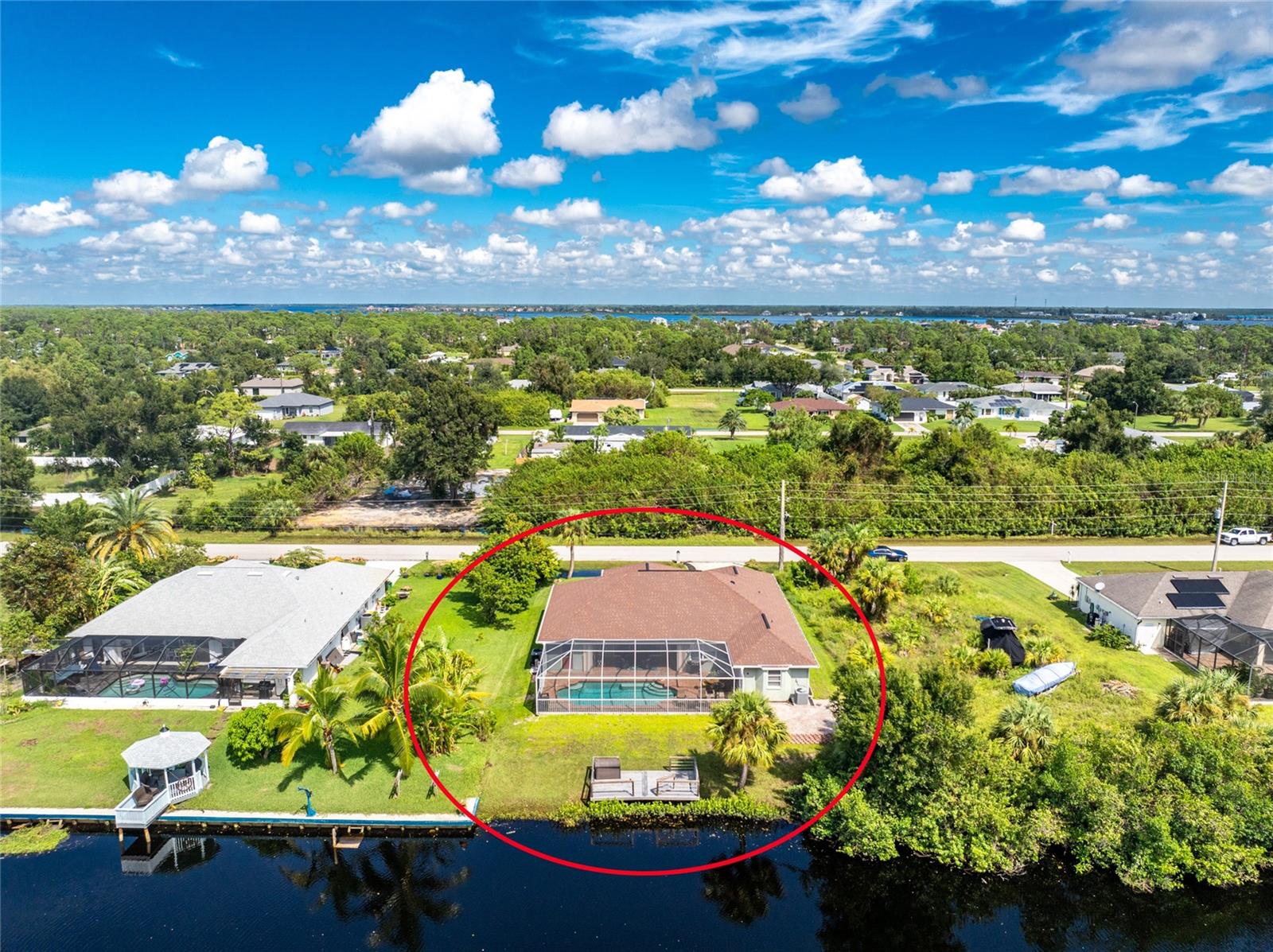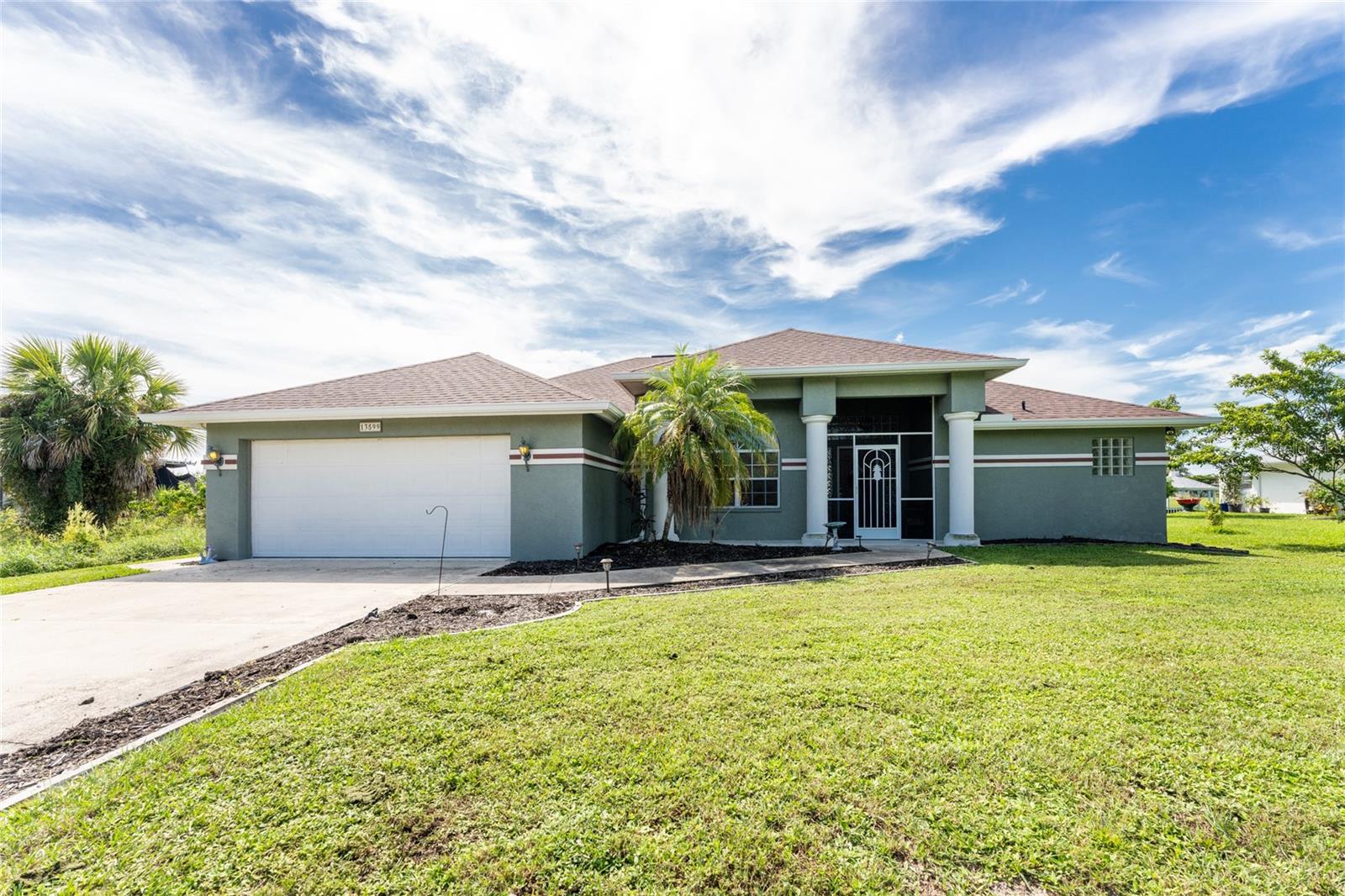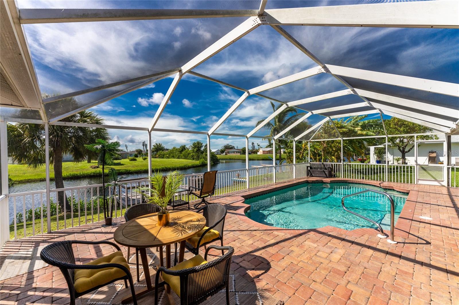 Welcome home to your waterfront dream with this three bedroom two bathroom canal front pool home in the sought-after community of Gulf Cove! As you walk into this home you will be greeted by soaring ceilings in an abundance of natural light coming through the massive pocket sliders leading to Lanai. Offering 2123 sq ft of living space under air, this home features an open floor plan with a family room, dining room, kitchen, bonus room / office as well as a split floor plan with a pocket door for privacy. The centrally located kitchen offers ample cabinet space with soft close drawers, newer stainless-steel appliances, and granite countertops. The large primary bedroom has sliding door access to the Lanai, boasts his and hers walk-in closets and an ensuite bathroom with dual sinks, walk-in shower and plenty of counterspace, including a vanity. Enjoy the screened in Lanai with accordion style hurricane doors, swimming pool with jetted seats and views of the gorgeous canal with many different species of wildlife There is a separate laundry room with sink, additional cupboard space and washer and dryer. In addition, there is a two-car garage for covered parking or extra storage space. Additional features of this home NEW roof (2021), NEW electrical panel (2021), NEW hot water tank (2021), NEW refrigerator (2022) and a paved brick patio. The Gulf Cove community has a waterfront park and a boat ramp that are available for a fee ($75 annually in 2024). This community is a short drive to local beaches golf courses, shopping, dining, public parks, and public boat ramp that provides access to the Peace and Myakka Rivers, and the Charlotte Harbor. The furniture, furnishings and decor are negotiable. This home is an ideal retreat, offering both charm and functionality. Don't miss your chance to own this move-in ready haven that seamlessly blends modern living with a touch of tranquility. Schedule your private showing today! Seller is including a one-year home warranty for buyers' peace of mind. This home had no hurricane damage. Seller is a licensed real estate agent in the state of Florida.