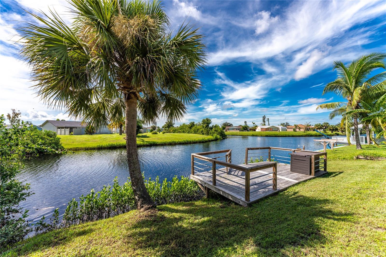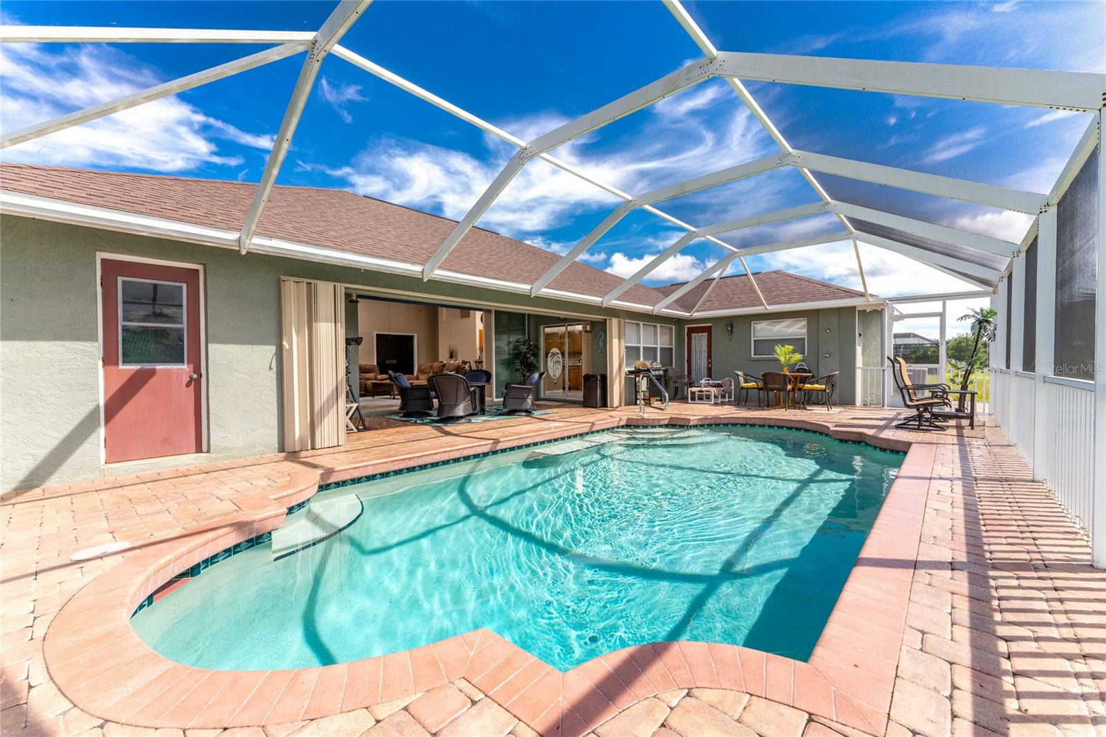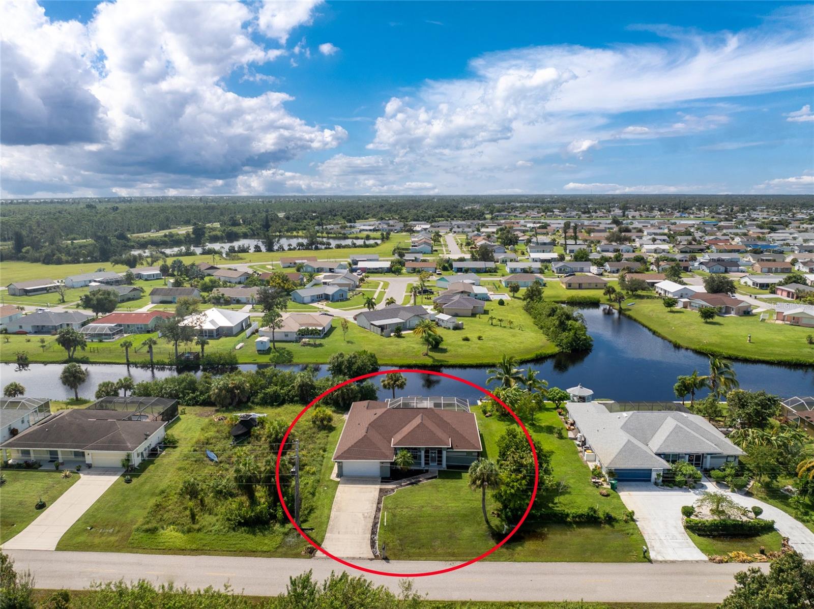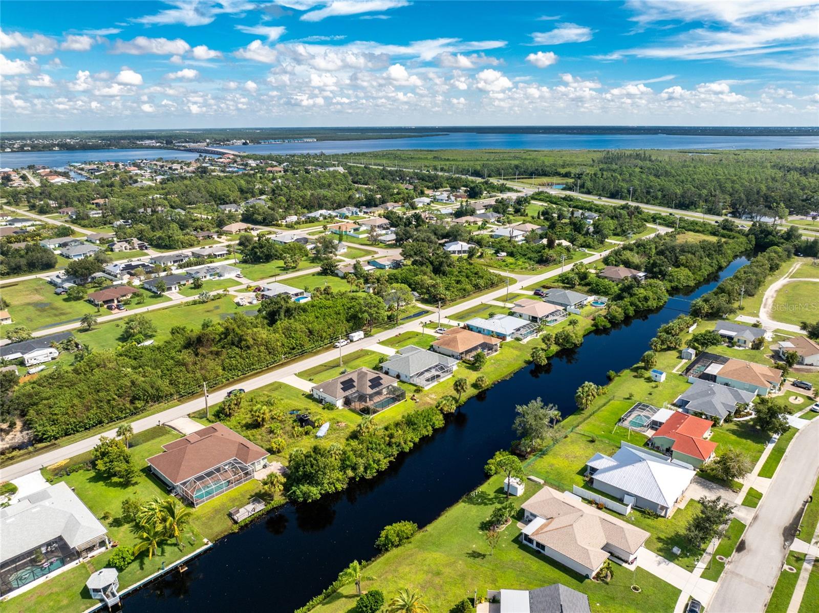 Welcome home to your waterfront dream with this three bedroom two bathroom canal front pool home in the sought-after community of Gulf Cove! As you walk into this home you will be greeted by soaring ceilings in an abundance of natural light coming through the massive pocket sliders leading to Lanai. Offering 2123 sq ft of living space under air, this home features an open floor plan with a family room, dining room, kitchen, bonus room / office as well as a split floor plan with a pocket door for privacy. The centrally located kitchen offers ample cabinet space with soft close drawers, newer stainless-steel appliances, and granite countertops. The large primary bedroom has sliding door access to the Lanai, boasts his and hers walk-in closets and an ensuite bathroom with dual sinks, walk-in shower and plenty of counterspace, including a vanity. Enjoy the screened in Lanai with accordion style hurricane doors, swimming pool with jetted seats and views of the gorgeous canal with many different species of wildlife There is a separate laundry room with sink, additional cupboard space and washer and dryer. In addition, there is a two-car garage for covered parking or extra storage space. Additional features of this home NEW roof (2021), NEW electrical panel (2021), NEW hot water tank (2021), NEW refrigerator (2022) and a paved brick patio. The Gulf Cove community has a waterfront park and a boat ramp that are available for a fee ($75 annually in 2024). This community is a short drive to local beaches golf courses, shopping, dining, public parks, and public boat ramp that provides access to the Peace and Myakka Rivers, and the Charlotte Harbor. The furniture, furnishings and decor are negotiable. This home is an ideal retreat, offering both charm and functionality. Don't miss your chance to own this move-in ready haven that seamlessly blends modern living with a touch of tranquility. Schedule your private showing today! Seller is including a one-year home warranty for buyers' peace of mind. This home had no hurricane damage. Seller is a licensed real estate agent in the state of Florida.