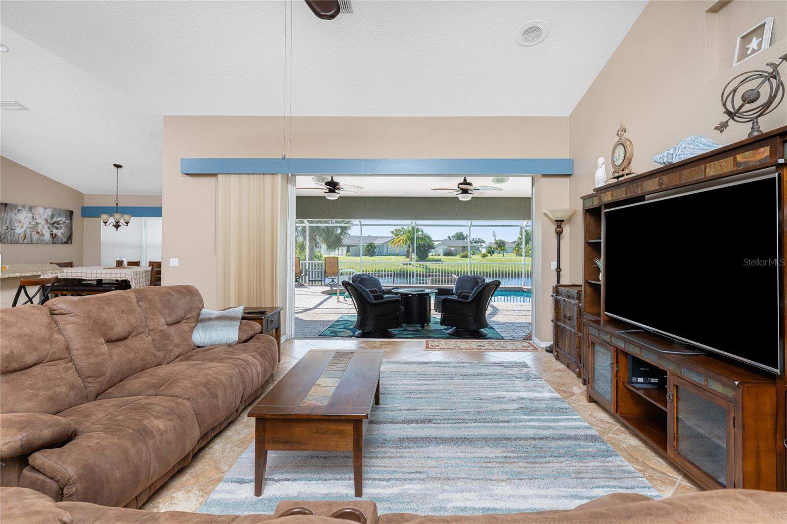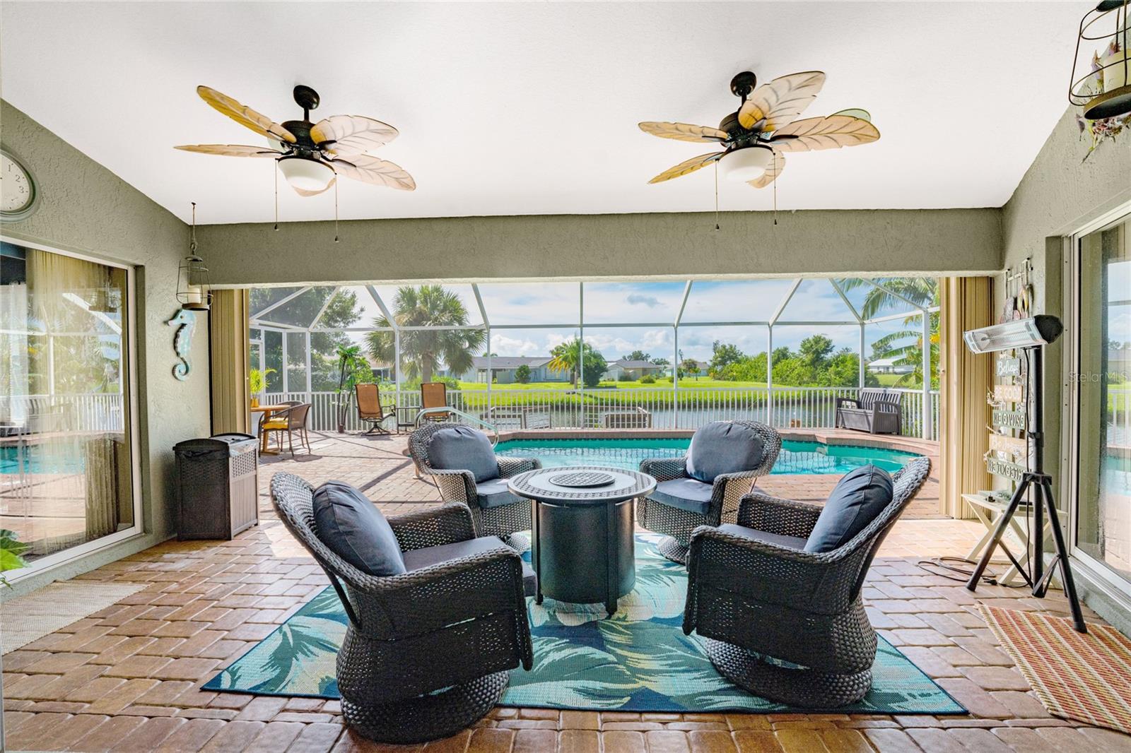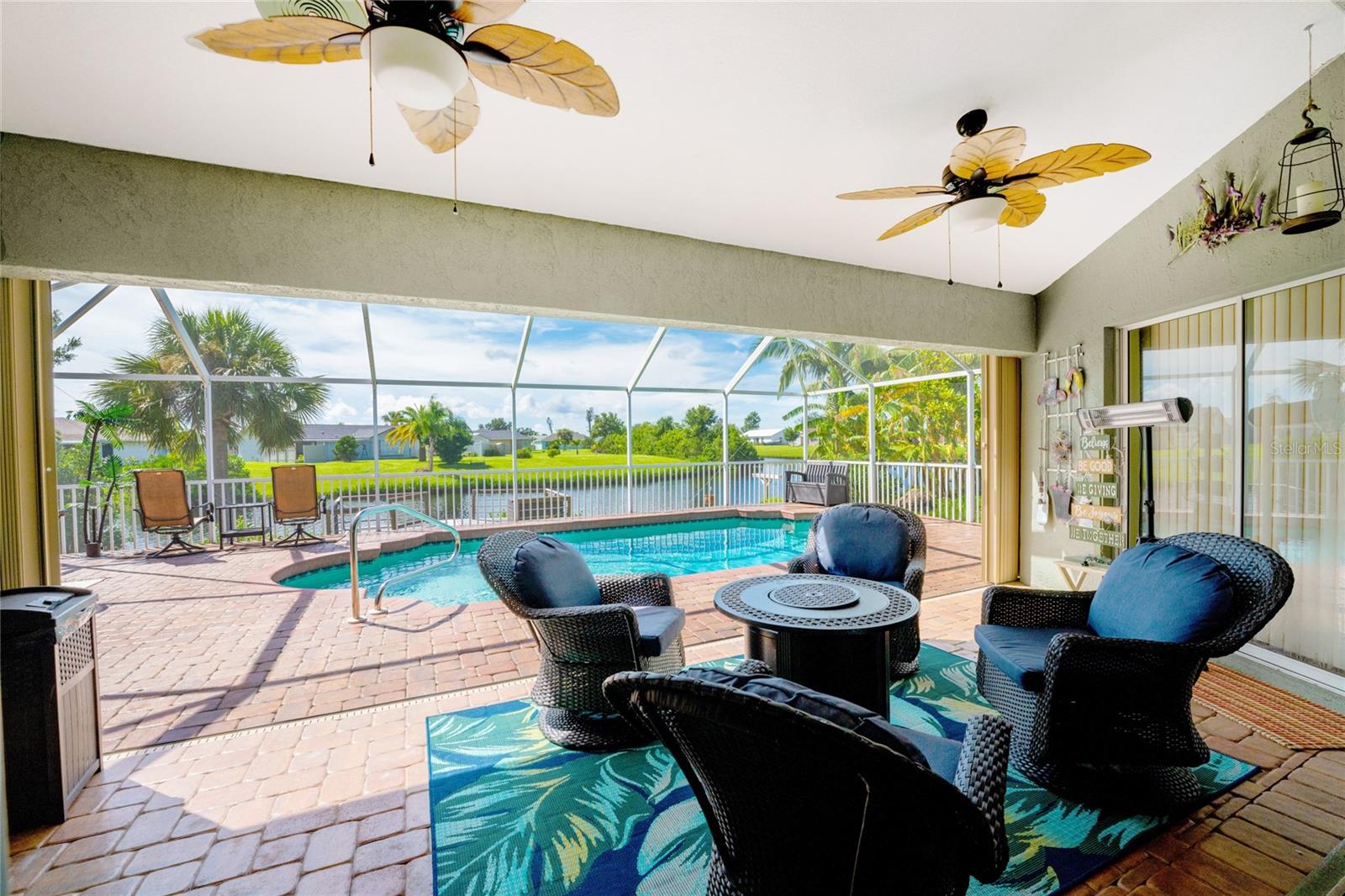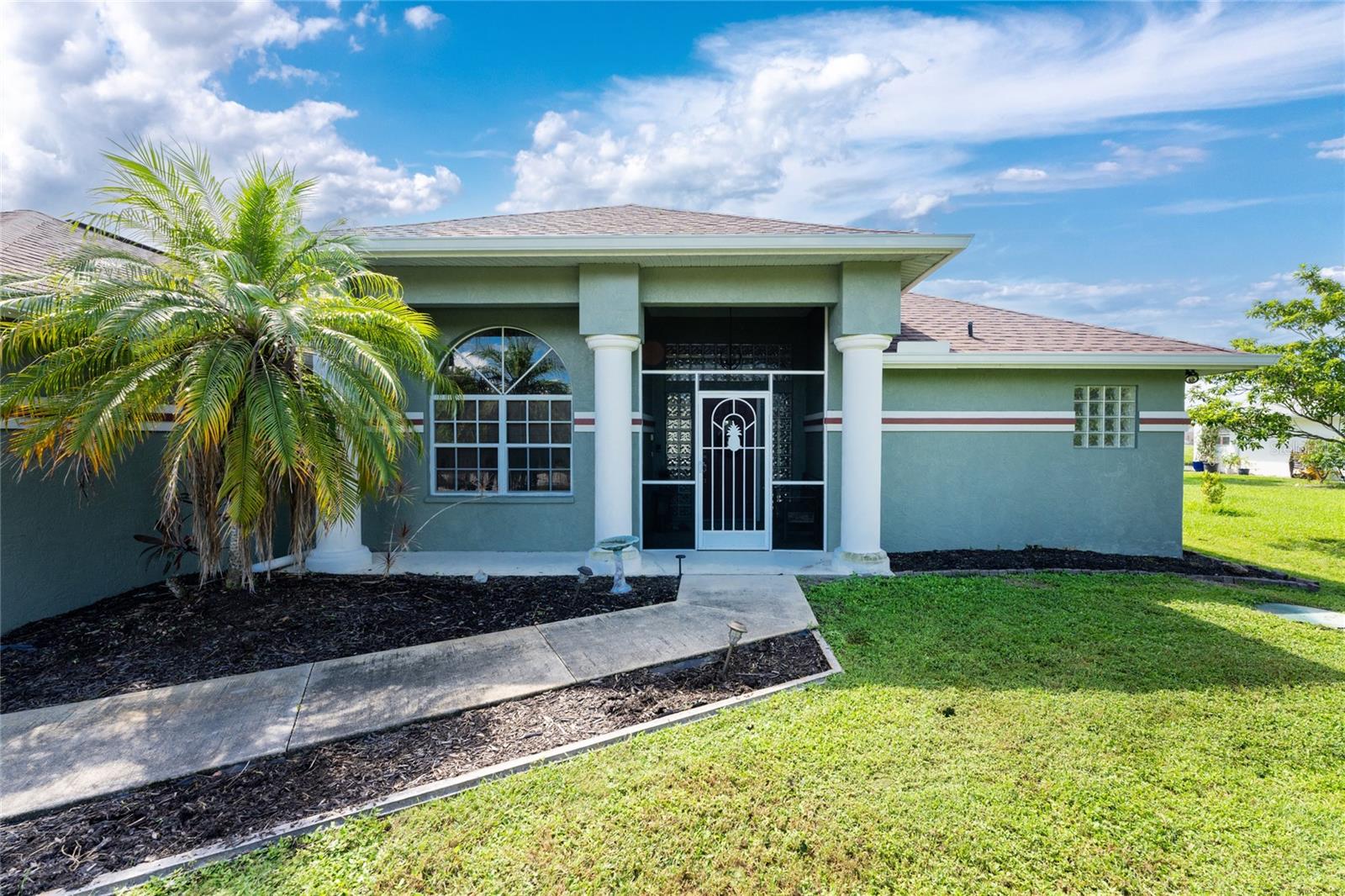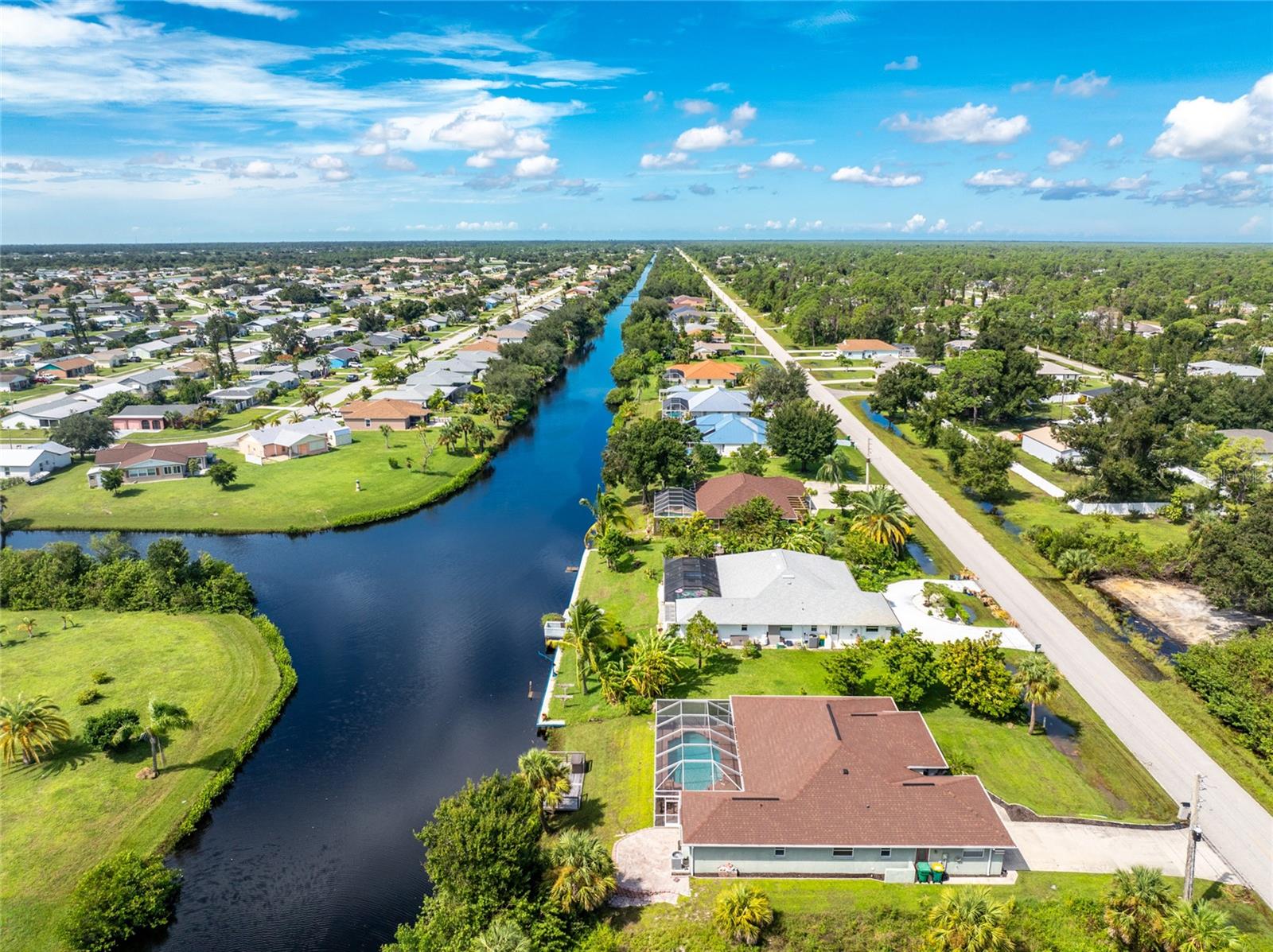 Welcome home to your waterfront dream with this three bedroom two bathroom canal front pool home in the sought-after community of Gulf Cove! As you walk into this home you will be greeted by soaring ceilings in an abundance of natural light coming through the massive pocket sliders leading to Lanai. Offering 2123 sq ft of living space under air, this home features an open floor plan with a family room, dining room, kitchen, bonus room / office as well as a split floor plan with a pocket door for privacy. The centrally located kitchen offers ample cabinet space with soft close drawers, newer stainless-steel appliances, and granite countertops. The large primary bedroom has sliding door access to the Lanai, boasts his and hers walk-in closets and an ensuite bathroom with dual sinks, walk-in shower and plenty of counterspace, including a vanity. Enjoy the screened in Lanai with accordion style hurricane doors, swimming pool with jetted seats and views of the gorgeous canal with many different species of wildlife There is a separate laundry room with sink, additional cupboard space and washer and dryer. In addition, there is a two-car garage for covered parking or extra storage space. Additional features of this home NEW roof (2021), NEW electrical panel (2021), NEW hot water tank (2021), NEW refrigerator (2022) and a paved brick patio. The Gulf Cove community has a waterfront park and a boat ramp that are available for a fee ($75 annually in 2024). This community is a short drive to local beaches golf courses, shopping, dining, public parks, and public boat ramp that provides access to the Peace and Myakka Rivers, and the Charlotte Harbor. The furniture, furnishings and decor are negotiable. This home is an ideal retreat, offering both charm and functionality. Don't miss your chance to own this move-in ready haven that seamlessly blends modern living with a touch of tranquility. Schedule your private showing today! Seller is including a one-year home warranty for buyers' peace of mind. This home had no hurricane damage. Seller is a licensed real estate agent in the state of Florida.