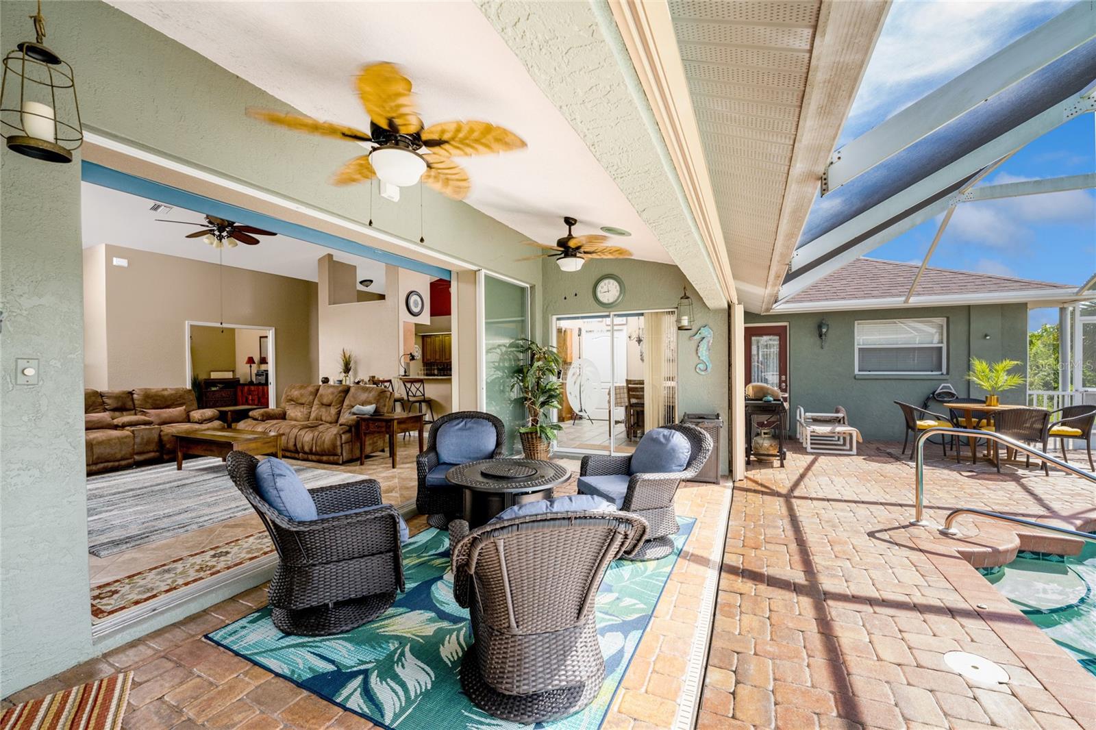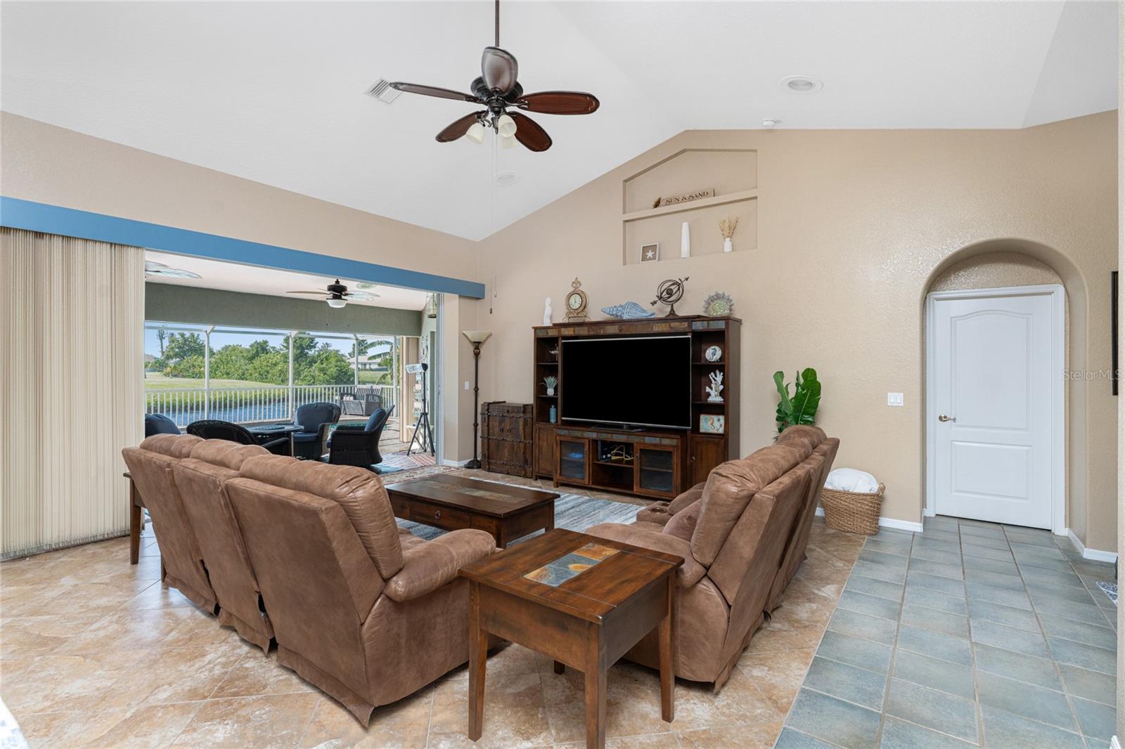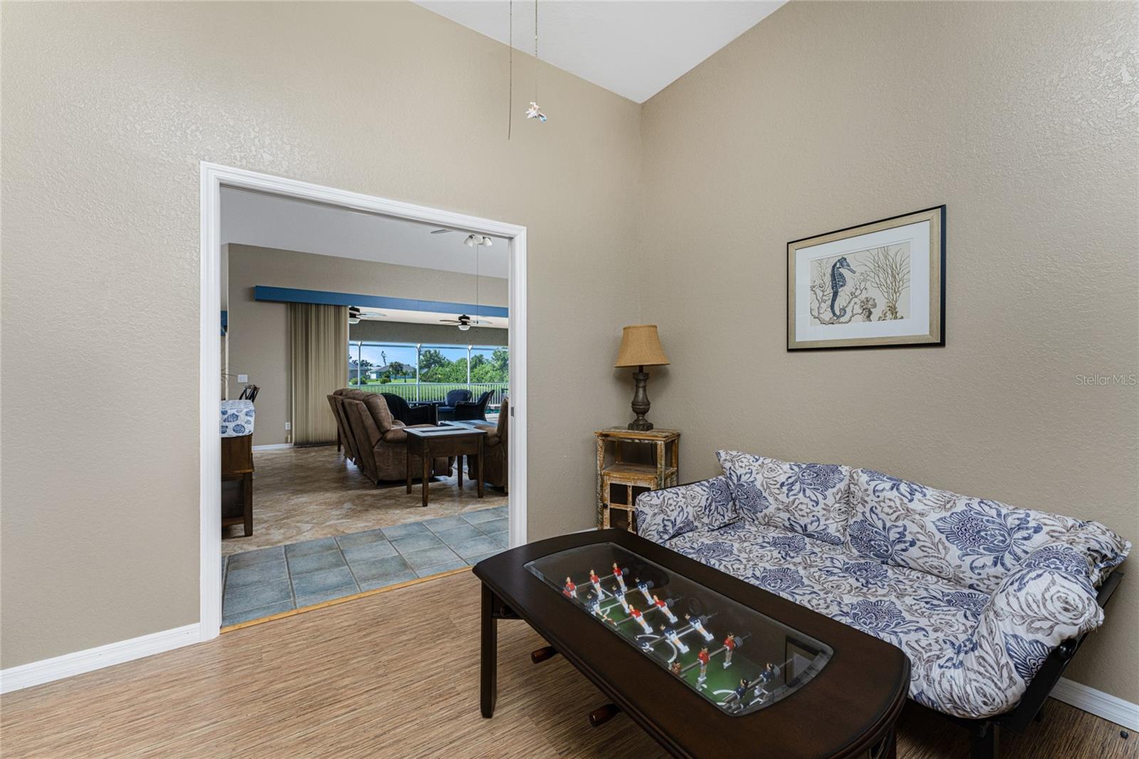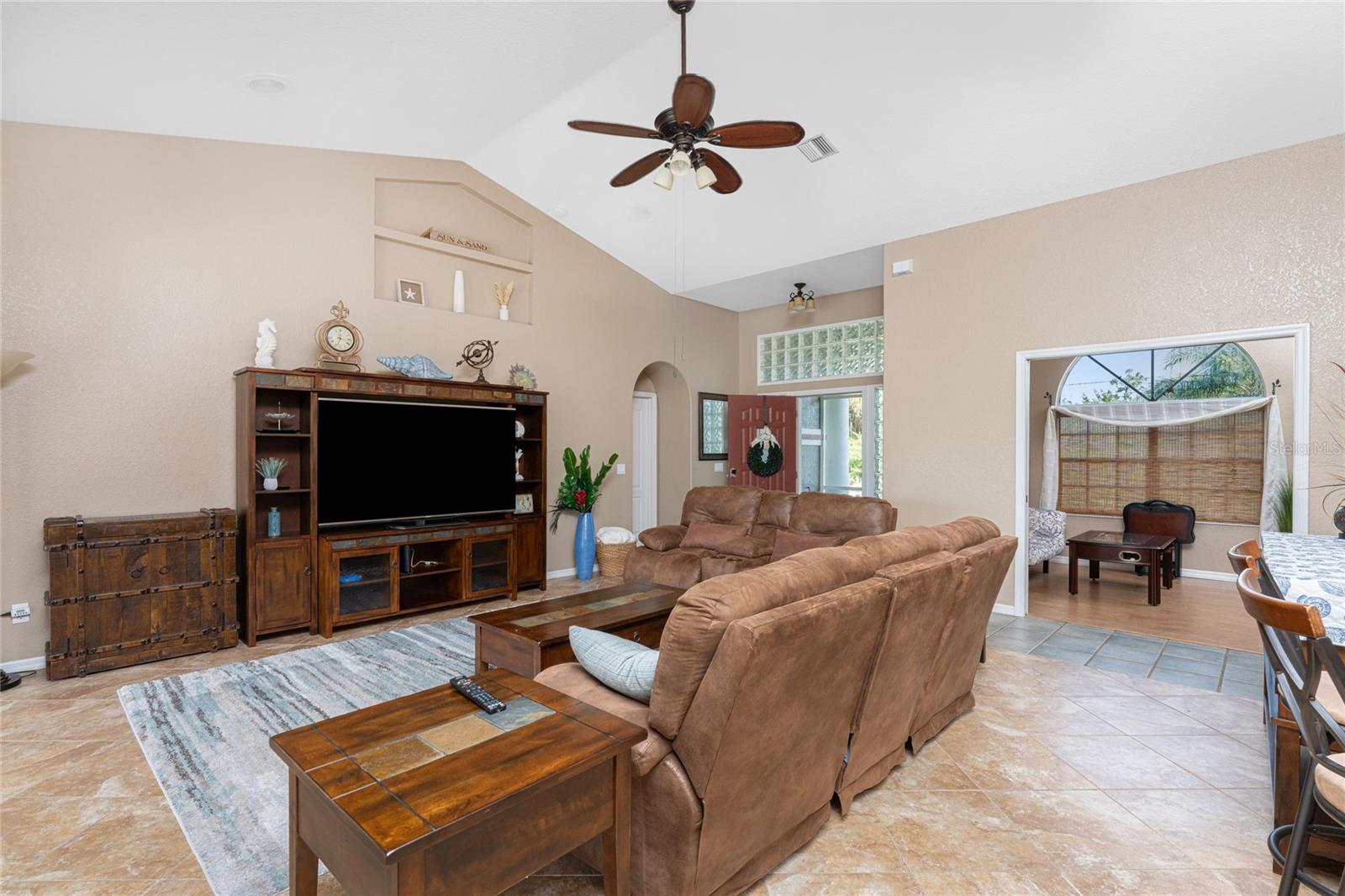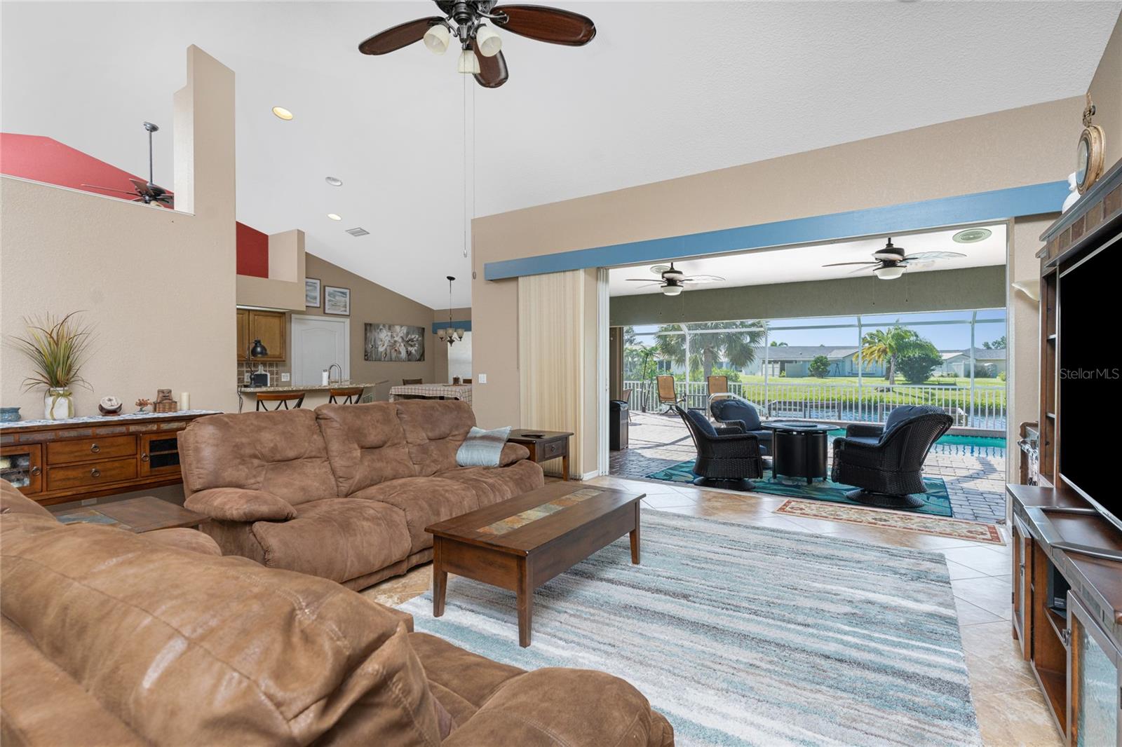 Welcome home to your waterfront dream with this three bedroom two bathroom canal front pool home in the sought-after community of Gulf Cove! As you walk into this home you will be greeted by soaring ceilings in an abundance of natural light coming through the massive pocket sliders leading to Lanai. Offering 2123 sq ft of living space under air, this home features an open floor plan with a family room, dining room, kitchen, bonus room / office as well as a split floor plan with a pocket door for privacy. The centrally located kitchen offers ample cabinet space with soft close drawers, newer stainless-steel appliances, and granite countertops. The large primary bedroom has sliding door access to the Lanai, boasts his and hers walk-in closets and an ensuite bathroom with dual sinks, walk-in shower and plenty of counterspace, including a vanity. Enjoy the screened in Lanai with accordion style hurricane doors, swimming pool with jetted seats and views of the gorgeous canal with many different species of wildlife There is a separate laundry room with sink, additional cupboard space and washer and dryer. In addition, there is a two-car garage for covered parking or extra storage space. Additional features of this home NEW roof (2021), NEW electrical panel (2021), NEW hot water tank (2021), NEW refrigerator (2022) and a paved brick patio. The Gulf Cove community has a waterfront park and a boat ramp that are available for a fee ($75 annually in 2024). This community is a short drive to local beaches golf courses, shopping, dining, public parks, and public boat ramp that provides access to the Peace and Myakka Rivers, and the Charlotte Harbor. The furniture, furnishings and decor are negotiable. This home is an ideal retreat, offering both charm and functionality. Don't miss your chance to own this move-in ready haven that seamlessly blends modern living with a touch of tranquility. Schedule your private showing today! Seller is including a one-year home warranty for buyers' peace of mind. This home had no hurricane damage. Seller is a licensed real estate agent in the state of Florida.