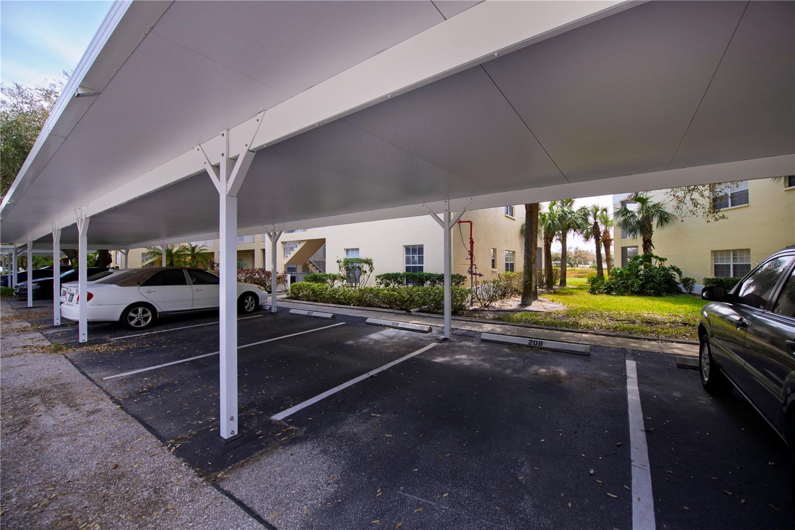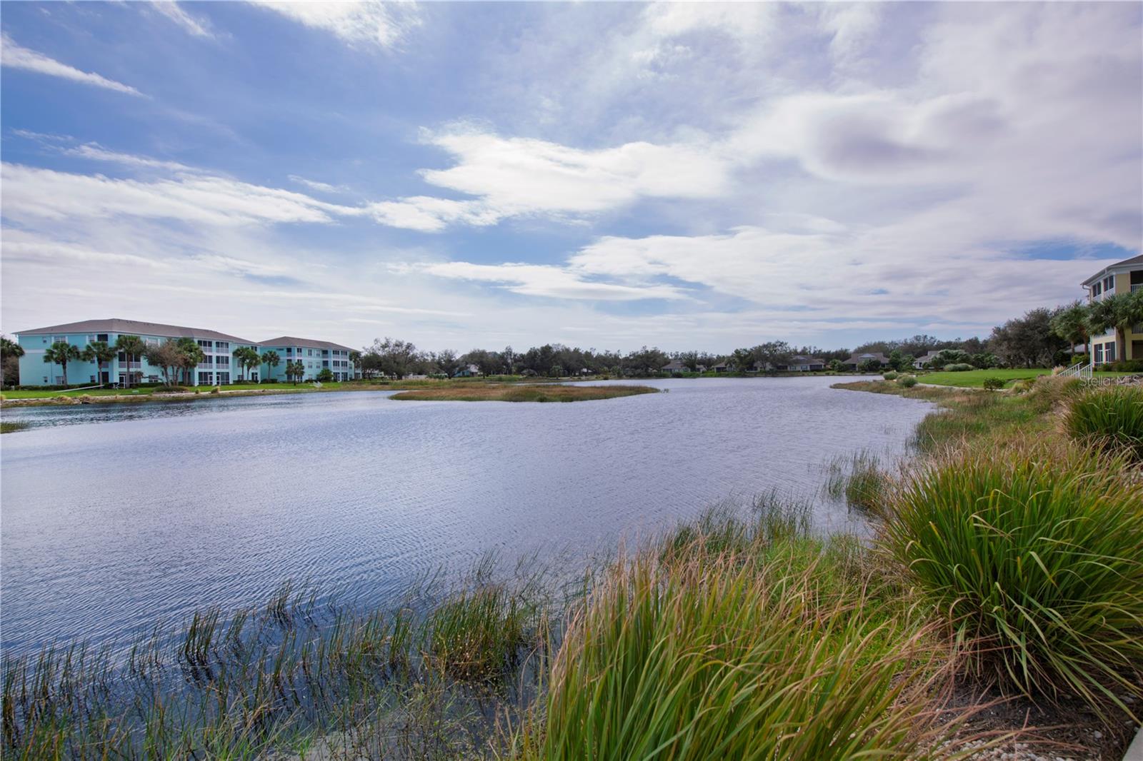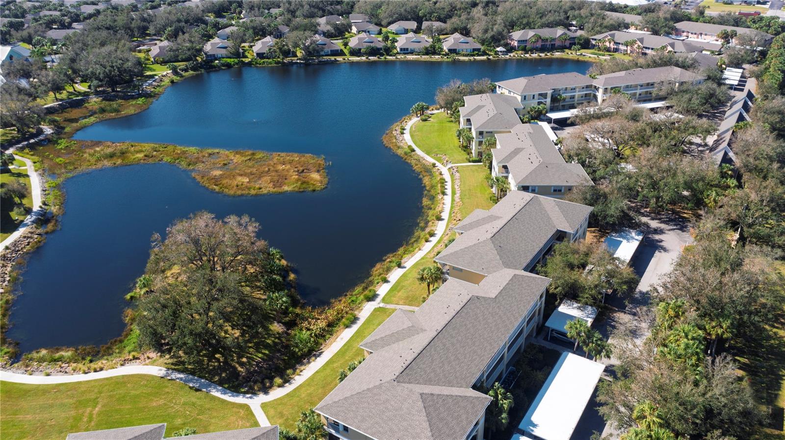 PRICE REDUCTION! Gorgeous view of the lake from this rarely available 3Br, 2Ba 2nd floor condo.- located in the popular gated community of Heritage Oak Park! Move right in as the condo is being sold Turnkey Furnished! Used only for season by the current owners & has been meticulously maintained. Truly move in condition. As you enter the condo. there is a storm door for light, tiled foyer, & coat/storage closet. Condo. has an open floorplan w/good sized great room & dining area opening to the kitchen. Since it is an end unit there are addl. windows on the side which also add addl. light to an already light & bright unit. Kitchen offers tile floors, raised panel cabinets w/crown molding & hard surface countertops with drop-in sink, built in pantry w/pull-out drawers, and addl. pull-out drawers in lower cabinet, & a cabinet with bay of drawers, It is fully equipped w/ Samsung stainless appliances. There are sliding doors from the great room out to the screened tiled lanai which offers a great place to enjoy your morning coffee or a glass of wine in the evening. Master bedroom is off of the great room. & has a large walk-in closet & pocket door to the ensuite master bath w/dual sinks, tile floors & walk in shower. Interior laundry room w/newer stack washer & dryer. Split floor plan w/second bedroom adjacent to the second bath & 3rd bedroom is to the front & often used as a den/office. Other features are newer A/C-Heat & thermostat, de-humidistat, ceiling fans thru-out, window treatments thru-out, & more! Laminate floors in great room/dining area & in 3rd bedroom & carpet in master & 2nd bedroom. New carports & new roof in 2023. There is an elevator in the building & gas grills are available for your use. Heritage Oak Park is an active gated community with an activities director on staff planning many activities for your enjoyment. Built around all the old oak trees it feels like you are in the country yet just around the corner from shopping & restaurants. Amenities include a large clubhouse, heated pool, tennis courts, pickleball courts, bocce ball, shuffleboard, horseshoes, fitness room, billiards rom, lending library & walking path around the lake!!