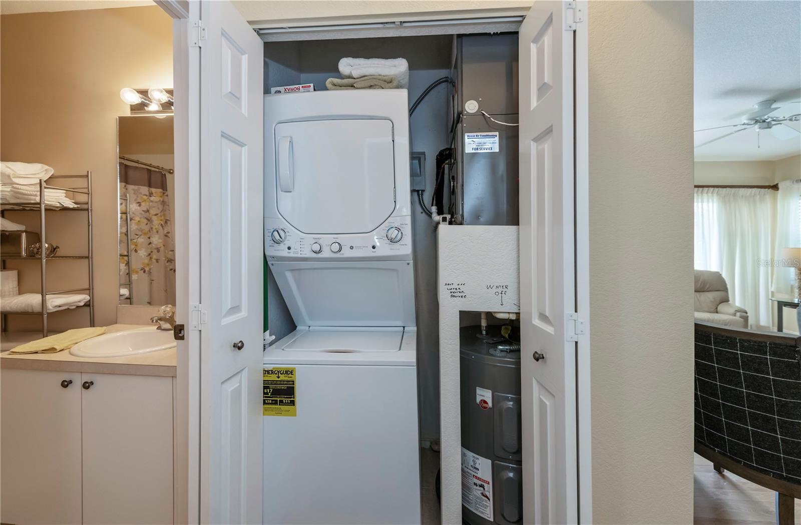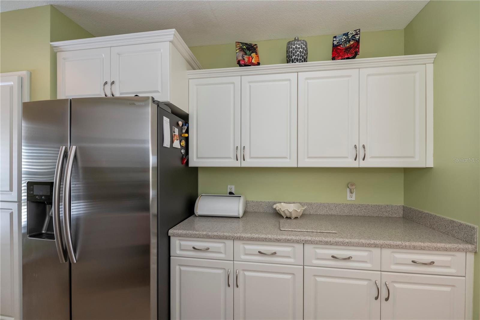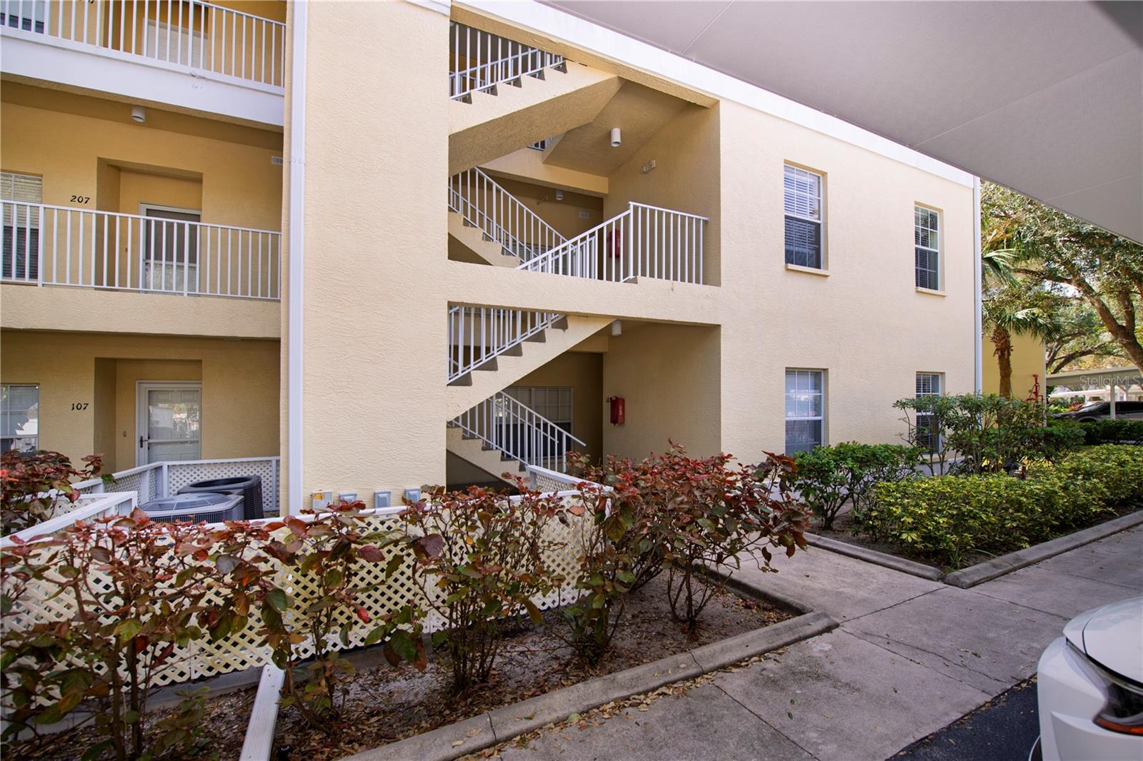 PRICE REDUCTION! Gorgeous view of the lake from this rarely available 3Br, 2Ba 2nd floor condo.- located in the popular gated community of Heritage Oak Park! Move right in as the condo is being sold Turnkey Furnished! Used only for season by the current owners & has been meticulously maintained. Truly move in condition. As you enter the condo. there is a storm door for light, tiled foyer, & coat/storage closet. Condo. has an open floorplan w/good sized great room & dining area opening to the kitchen. Since it is an end unit there are addl. windows on the side which also add addl. light to an already light & bright unit. Kitchen offers tile floors, raised panel cabinets w/crown molding & hard surface countertops with drop-in sink, built in pantry w/pull-out drawers, and addl. pull-out drawers in lower cabinet, & a cabinet with bay of drawers, It is fully equipped w/ Samsung stainless appliances. There are sliding doors from the great room out to the screened tiled lanai which offers a great place to enjoy your morning coffee or a glass of wine in the evening. Master bedroom is off of the great room. & has a large walk-in closet & pocket door to the ensuite master bath w/dual sinks, tile floors & walk in shower. Interior laundry room w/newer stack washer & dryer. Split floor plan w/second bedroom adjacent to the second bath & 3rd bedroom is to the front & often used as a den/office. Other features are newer A/C-Heat & thermostat, de-humidistat, ceiling fans thru-out, window treatments thru-out, & more! Laminate floors in great room/dining area & in 3rd bedroom & carpet in master & 2nd bedroom. New carports & new roof in 2023. There is an elevator in the building & gas grills are available for your use. Heritage Oak Park is an active gated community with an activities director on staff planning many activities for your enjoyment. Built around all the old oak trees it feels like you are in the country yet just around the corner from shopping & restaurants. Amenities include a large clubhouse, heated pool, tennis courts, pickleball courts, bocce ball, shuffleboard, horseshoes, fitness room, billiards rom, lending library & walking path around the lake!!