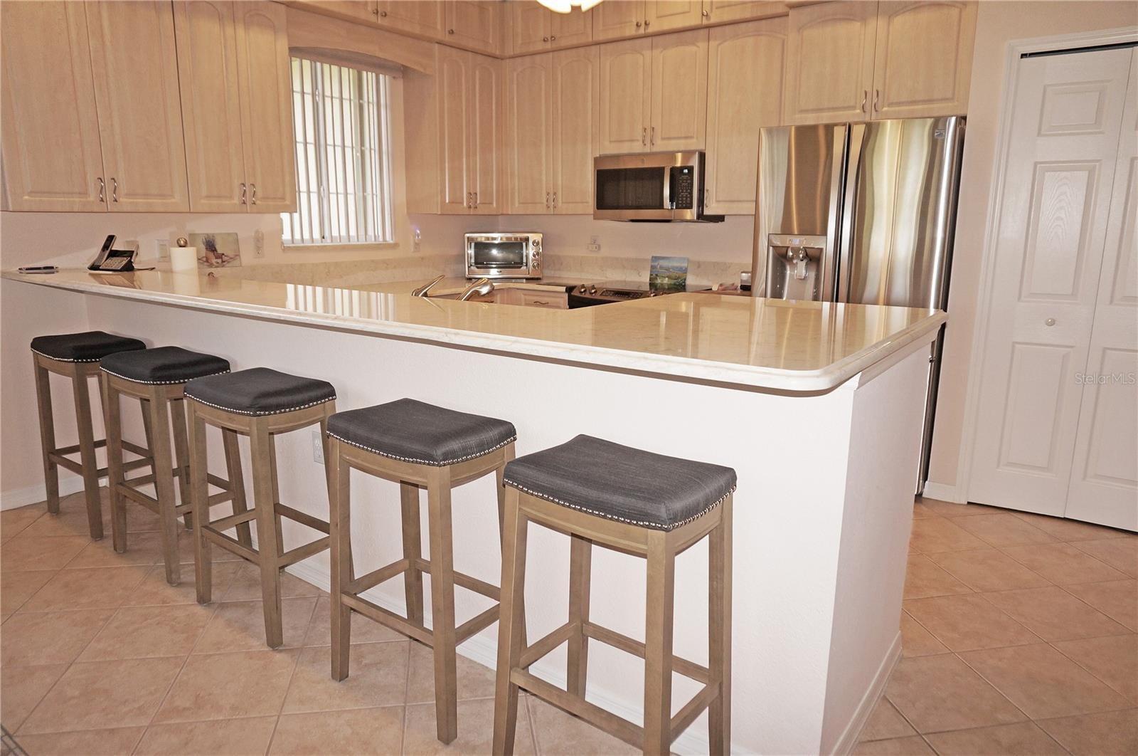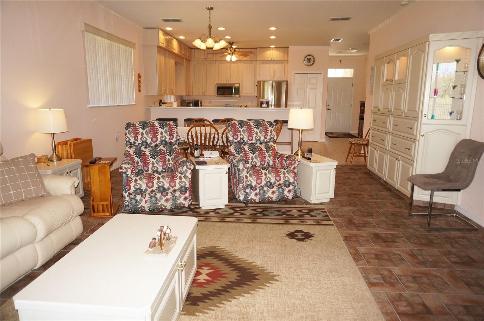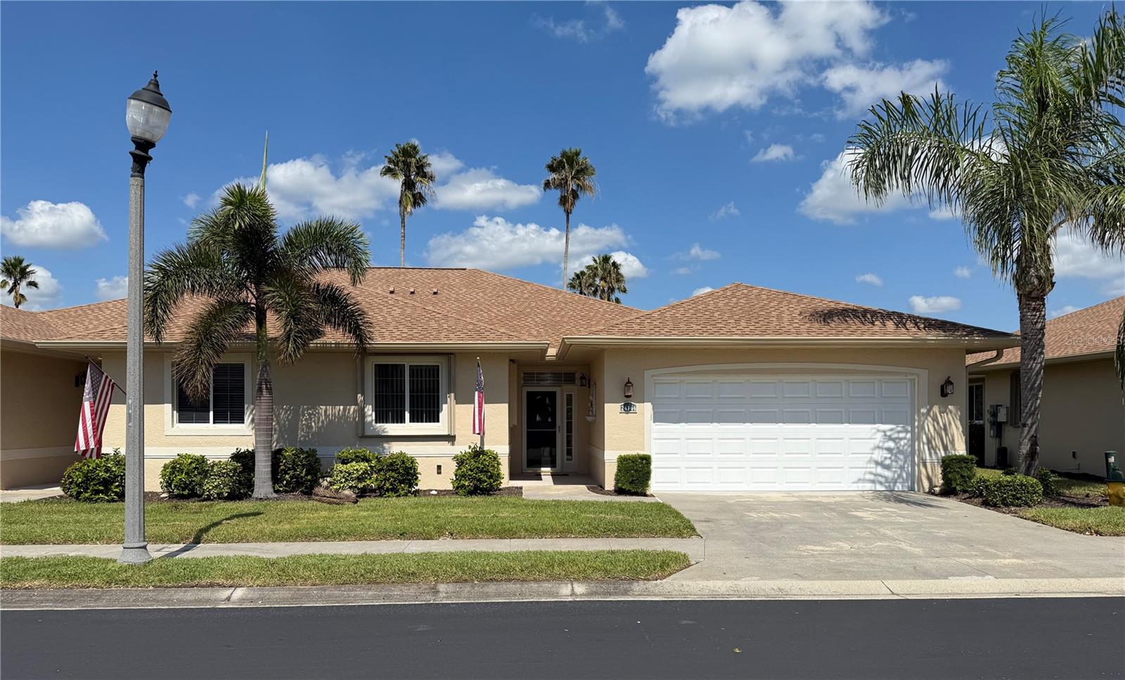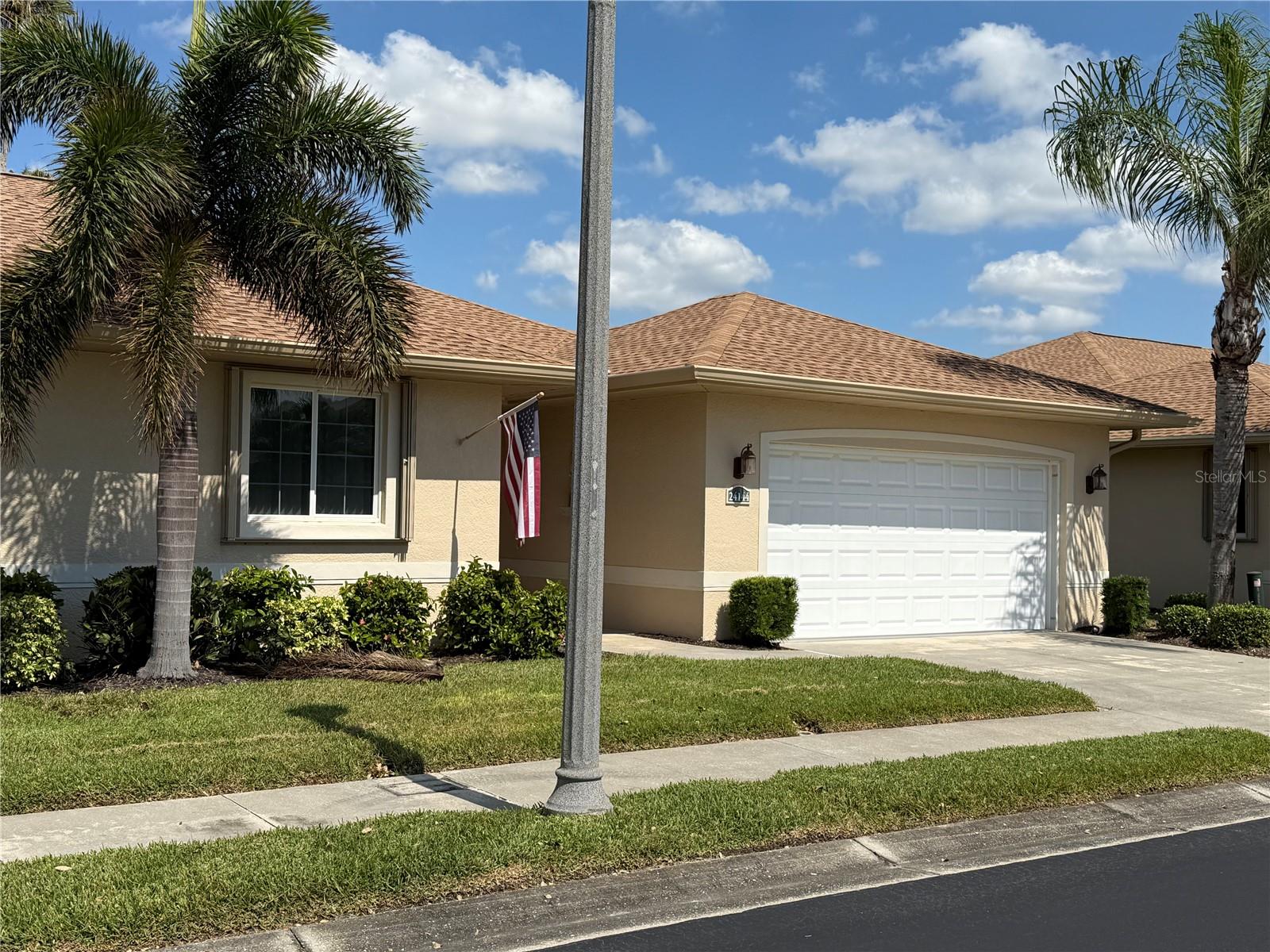 Impressive 2 Bedroom, 2 Bathroom Villa with attached 2 Car Garage located in the desirable 55+ gated community of PARK PLACE ESTATES in Port Charlotte. NOT in a designated flood zone. This home is being sold *FURNISHED*. This light and bright home built in 2006 offers an open and split bedroom floor plan with Foyer with diagonal lay tile, Great Room with Dining Area, well appointed Kitchen, Inside Laundry, rear Lanai. The spacious Great Room has tile flooring and sliding glass doors to the Lanai. The Kitchen features quartz counters, wood cabinets with great cabinet space, pantry closet, breakfast bar that seats 5, diagonal lay tile floor and stainless appliances - French door refrigerator, oven range, built in microwave, dishwasher. The Kitchen is open to the Great Room and Dining Area. The Inside Laundry has front loading washer, front loading dryer, shelves and laundry tub. The garage can also accommodate a washer and dryer which gives you the option to use the Inside Laundry as a storage room or computer room. The spacious Master Bedroom suite offers wood look tile flooring and a very large walk in closet as well as a private bathroom with walk in shower with seat. There is a generous sized guest bedroom with wood look tile floor and double closet. Both bedrooms have televisions on high brackets with the cable outlet and electric outlet conveniently located behind the TVs. The guest bathroom has a tub/shower combination. Your living space extends via sliding glass doors in the Great Room to the 17 x 8 screened lanai with vertical sliding vinyl windows, accordion shutters and fabulous private view of pond and trees. Other features include **NEW ROOF 2022**......NEW HWH 2017...Transom window over front door, accordion hurricane shutters on ALL openings, M&S Sound system, NEW A/C 2017, hurricane patio door, sidewalks. Landscaping and roofs are covered by the Association. Accessible features for those with disabilities such as wider doorways and electrical outlets in lower kitchen cabinets. Everything you see stays including the crystal in the china cabinet. ** NO DAMAGE FROM HURRICANE HELENE OR HURRICANE MILTON** PARK PLACE ESTATES is a gated community with beautiful clubhouse, swimming pool, inground spa, bocce ball and more. Photos #30-41 are the clubhouse, pool, entrance. Park Place Estates is minutes from shopping, dining, I-75 and short drive to medical care, Golf and waterfront parks.