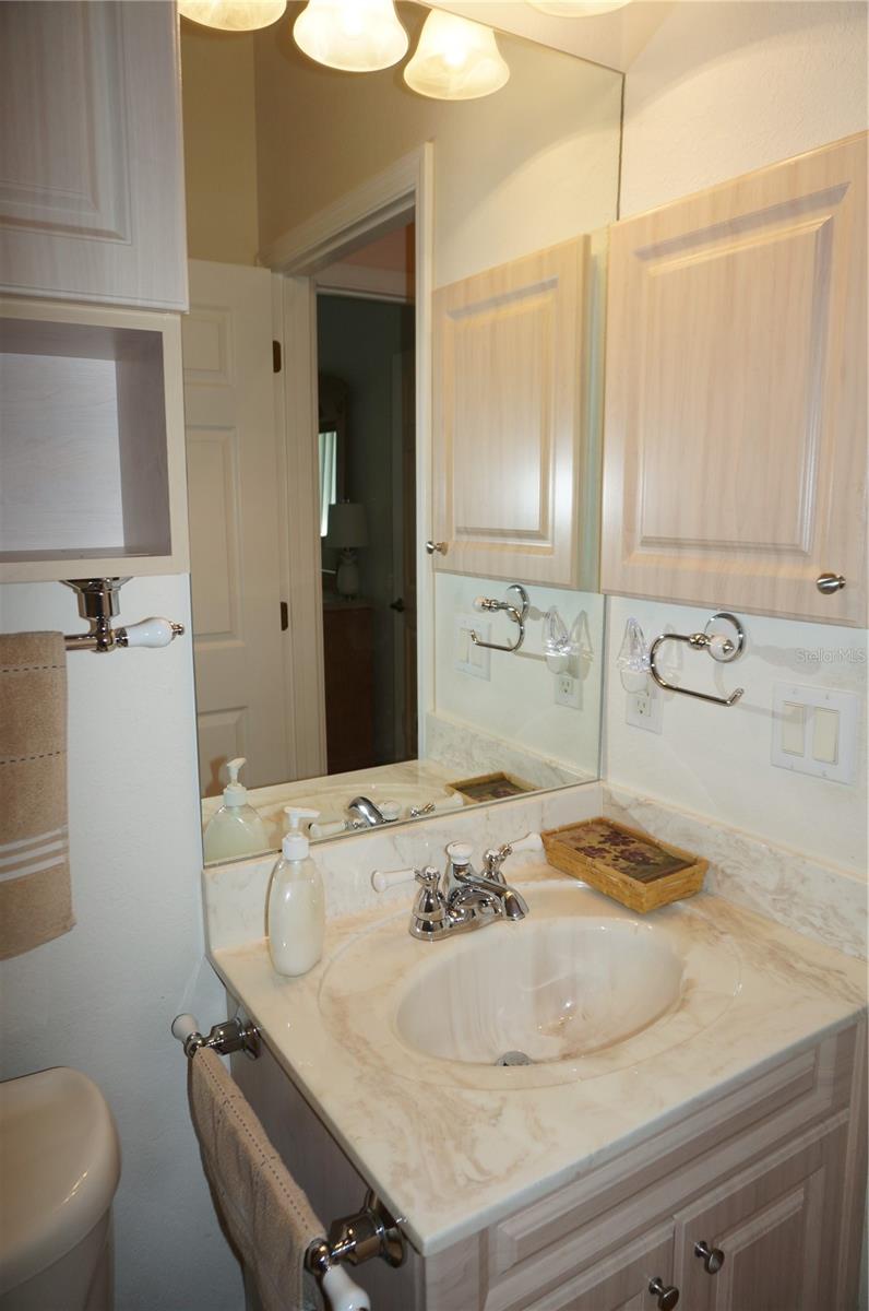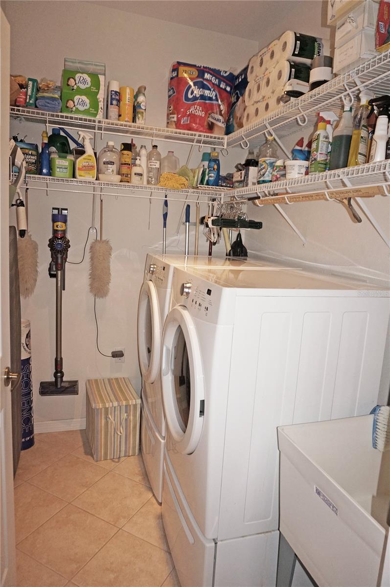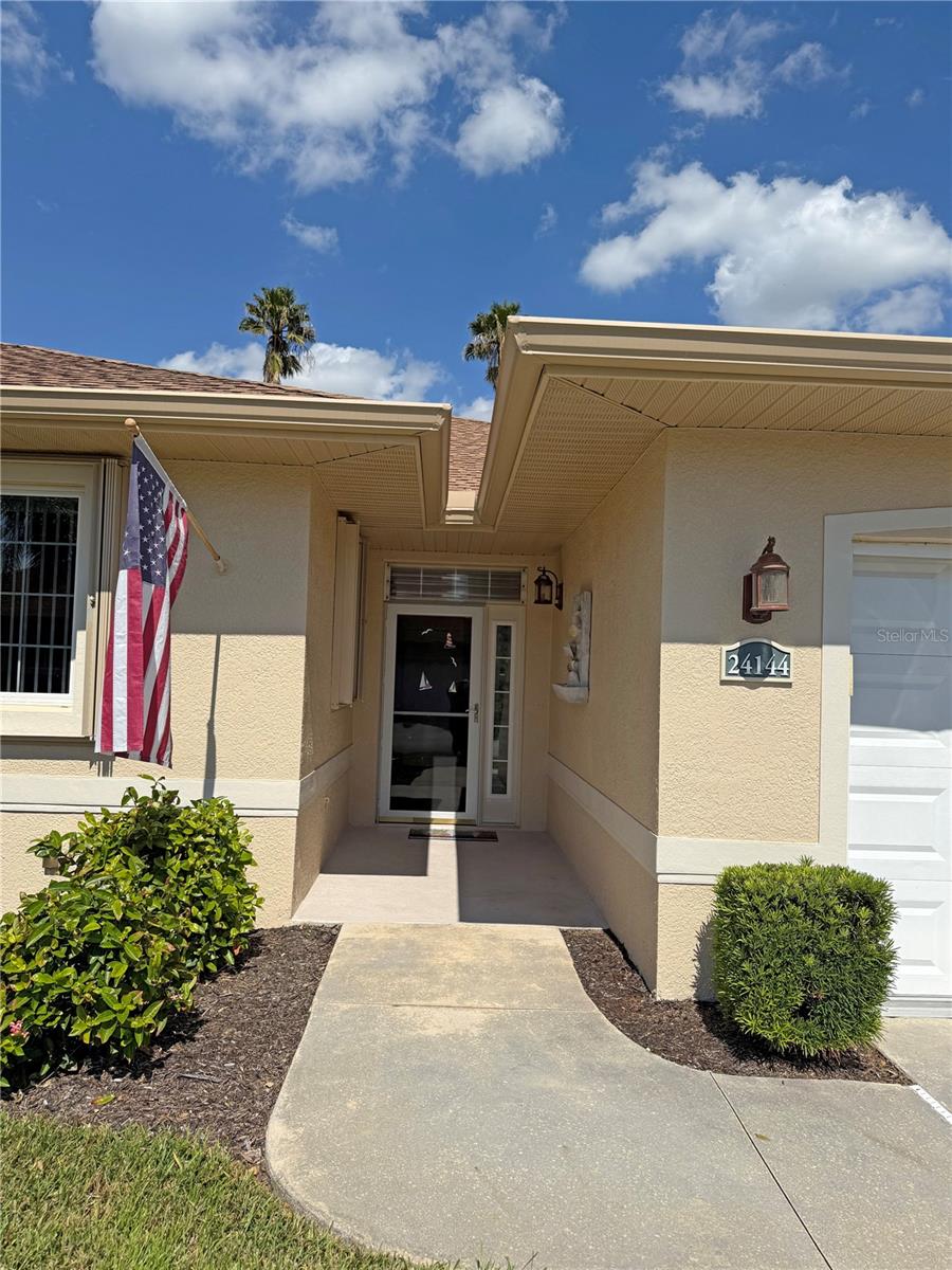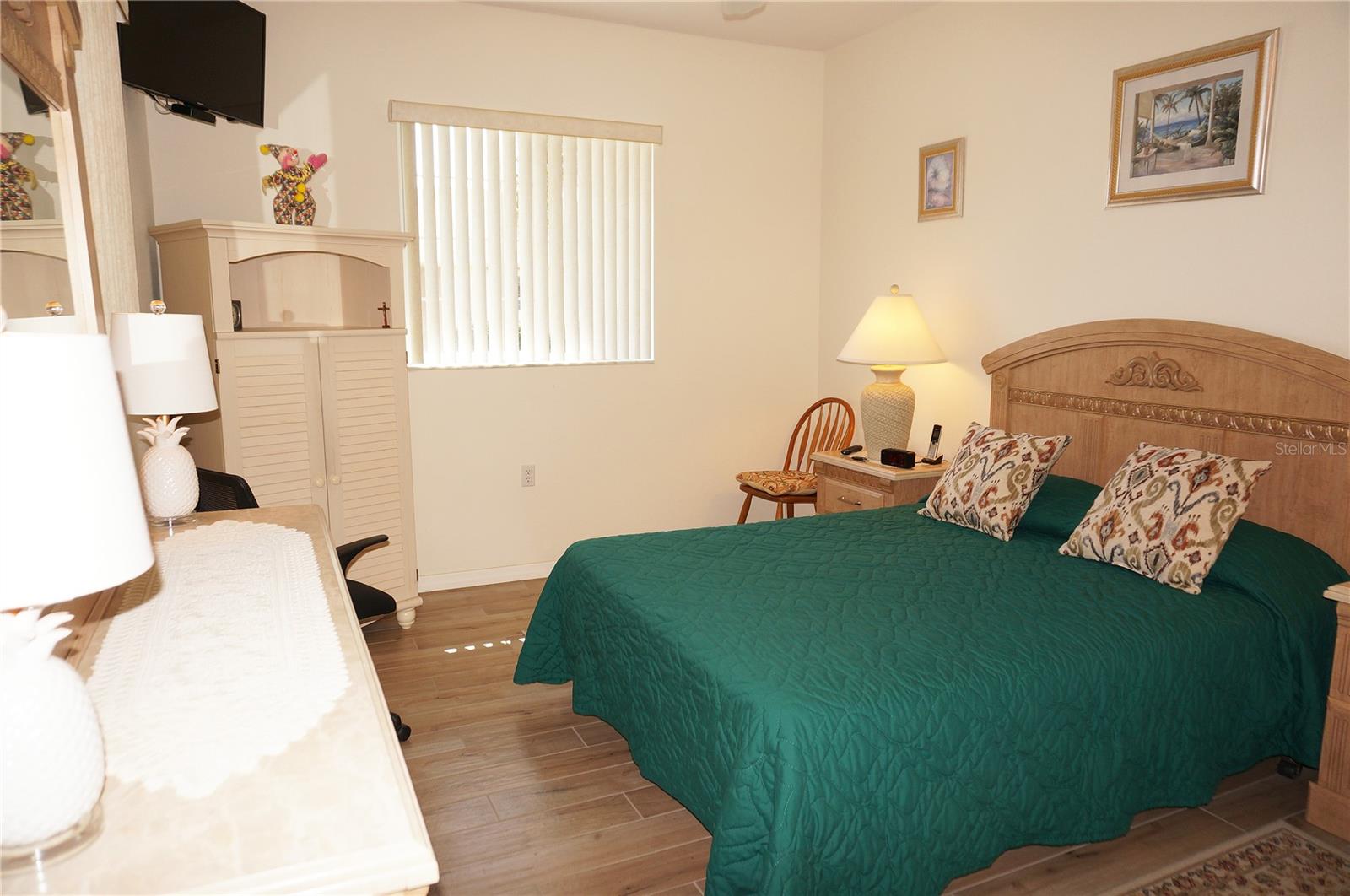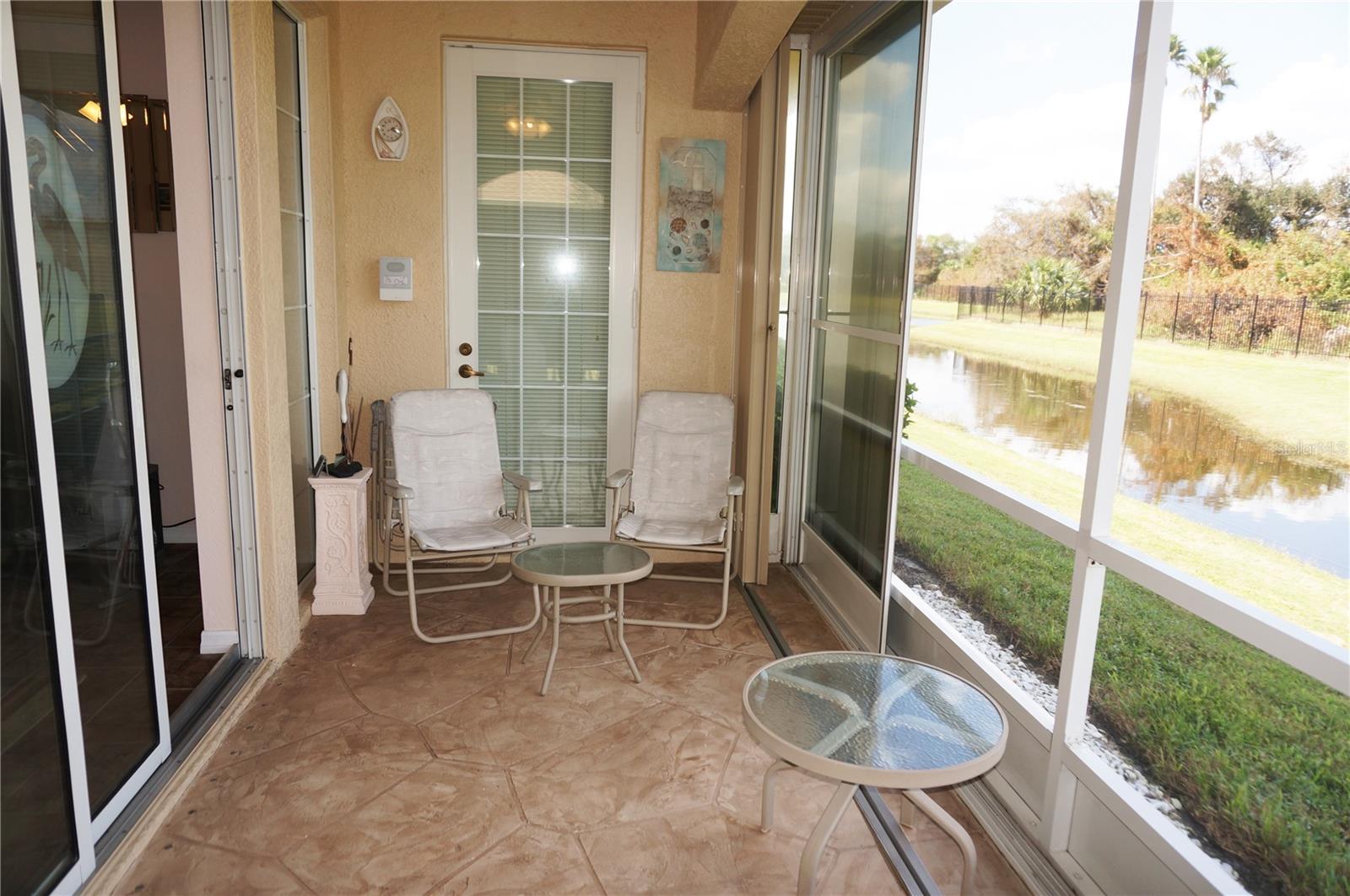 Impressive 2 Bedroom, 2 Bathroom Villa with attached 2 Car Garage located in the desirable 55+ gated community of PARK PLACE ESTATES in Port Charlotte. NOT in a designated flood zone. This home is being sold *FURNISHED*. This light and bright home built in 2006 offers an open and split bedroom floor plan with Foyer with diagonal lay tile, Great Room with Dining Area, well appointed Kitchen, Inside Laundry, rear Lanai. The spacious Great Room has tile flooring and sliding glass doors to the Lanai. The Kitchen features quartz counters, wood cabinets with great cabinet space, pantry closet, breakfast bar that seats 5, diagonal lay tile floor and stainless appliances - French door refrigerator, oven range, built in microwave, dishwasher. The Kitchen is open to the Great Room and Dining Area. The Inside Laundry has front loading washer, front loading dryer, shelves and laundry tub. The garage can also accommodate a washer and dryer which gives you the option to use the Inside Laundry as a storage room or computer room. The spacious Master Bedroom suite offers wood look tile flooring and a very large walk in closet as well as a private bathroom with walk in shower with seat. There is a generous sized guest bedroom with wood look tile floor and double closet. Both bedrooms have televisions on high brackets with the cable outlet and electric outlet conveniently located behind the TVs. The guest bathroom has a tub/shower combination. Your living space extends via sliding glass doors in the Great Room to the 17 x 8 screened lanai with vertical sliding vinyl windows, accordion shutters and fabulous private view of pond and trees. Other features include **NEW ROOF 2022**......NEW HWH 2017...Transom window over front door, accordion hurricane shutters on ALL openings, M&S Sound system, NEW A/C 2017, hurricane patio door, sidewalks. Landscaping and roofs are covered by the Association. Accessible features for those with disabilities such as wider doorways and electrical outlets in lower kitchen cabinets. Everything you see stays including the crystal in the china cabinet. ** NO DAMAGE FROM HURRICANE HELENE OR HURRICANE MILTON** PARK PLACE ESTATES is a gated community with beautiful clubhouse, swimming pool, inground spa, bocce ball and more. Photos #30-41 are the clubhouse, pool, entrance. Park Place Estates is minutes from shopping, dining, I-75 and short drive to medical care, Golf and waterfront parks.