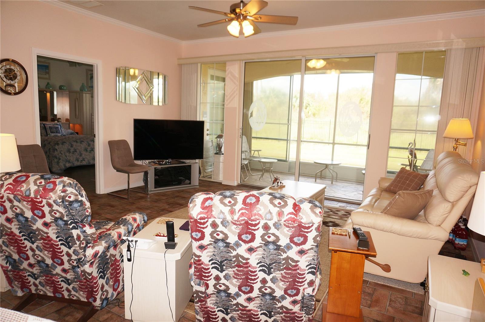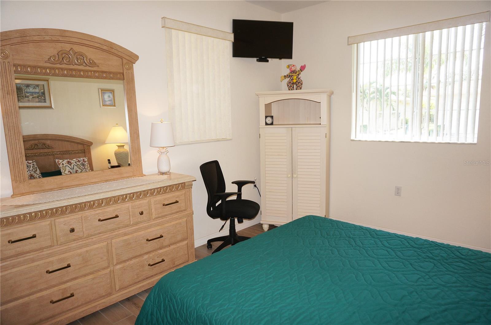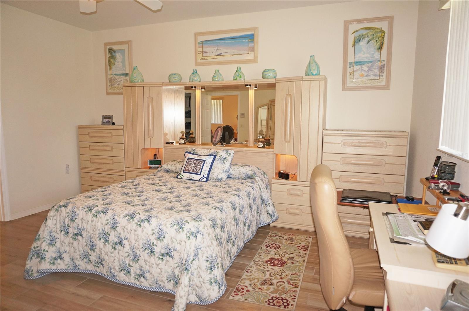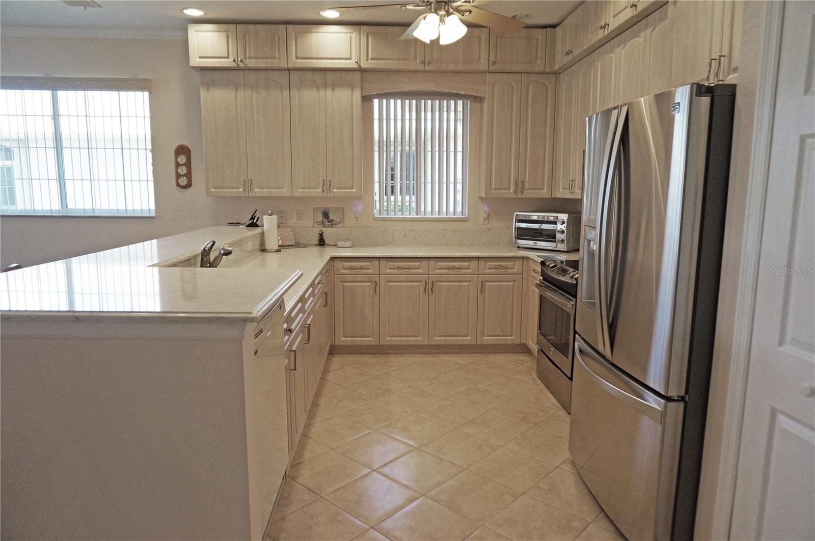 Impressive 2 Bedroom, 2 Bathroom Villa with attached 2 Car Garage located in the desirable 55+ gated community of PARK PLACE ESTATES in Port Charlotte. NOT in a designated flood zone. This home is being sold *FURNISHED*. This light and bright home built in 2006 offers an open and split bedroom floor plan with Foyer with diagonal lay tile, Great Room with Dining Area, well appointed Kitchen, Inside Laundry, rear Lanai. The spacious Great Room has tile flooring and sliding glass doors to the Lanai. The Kitchen features quartz counters, wood cabinets with great cabinet space, pantry closet, breakfast bar that seats 5, diagonal lay tile floor and stainless appliances - French door refrigerator, oven range, built in microwave, dishwasher. The Kitchen is open to the Great Room and Dining Area. The Inside Laundry has front loading washer, front loading dryer, shelves and laundry tub. The garage can also accommodate a washer and dryer which gives you the option to use the Inside Laundry as a storage room or computer room. The spacious Master Bedroom suite offers wood look tile flooring and a very large walk in closet as well as a private bathroom with walk in shower with seat. There is a generous sized guest bedroom with wood look tile floor and double closet. Both bedrooms have televisions on high brackets with the cable outlet and electric outlet conveniently located behind the TVs. The guest bathroom has a tub/shower combination. Your living space extends via sliding glass doors in the Great Room to the 17 x 8 screened lanai with vertical sliding vinyl windows, accordion shutters and fabulous private view of pond and trees. Other features include **NEW ROOF 2022**......NEW HWH 2017...Transom window over front door, accordion hurricane shutters on ALL openings, M&S Sound system, NEW A/C 2017, hurricane patio door, sidewalks. Landscaping and roofs are covered by the Association. Accessible features for those with disabilities such as wider doorways and electrical outlets in lower kitchen cabinets. Everything you see stays including the crystal in the china cabinet. ** NO DAMAGE FROM HURRICANE HELENE OR HURRICANE MILTON** PARK PLACE ESTATES is a gated community with beautiful clubhouse, swimming pool, inground spa, bocce ball and more. Photos #30-41 are the clubhouse, pool, entrance. Park Place Estates is minutes from shopping, dining, I-75 and short drive to medical care, Golf and waterfront parks.