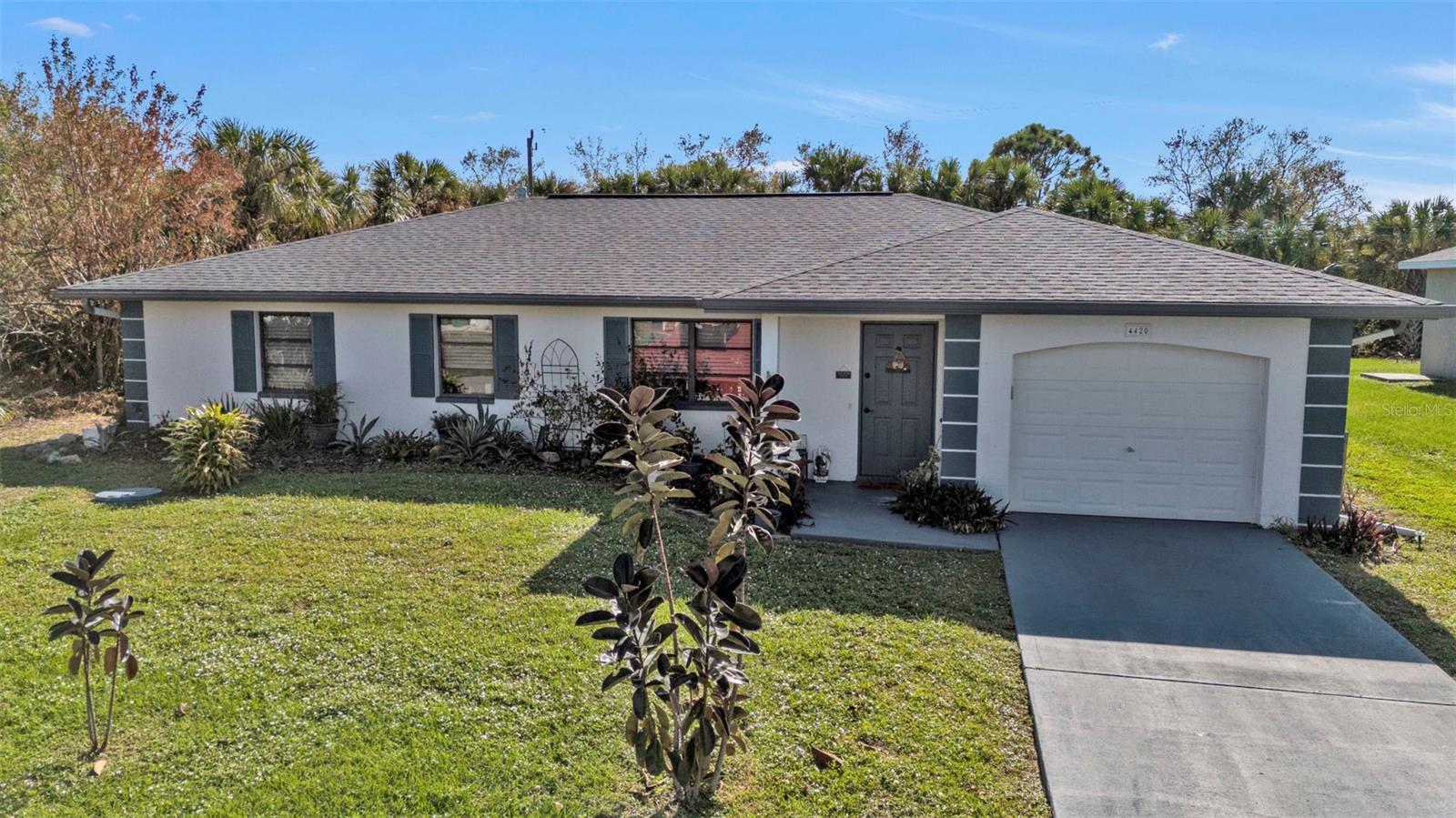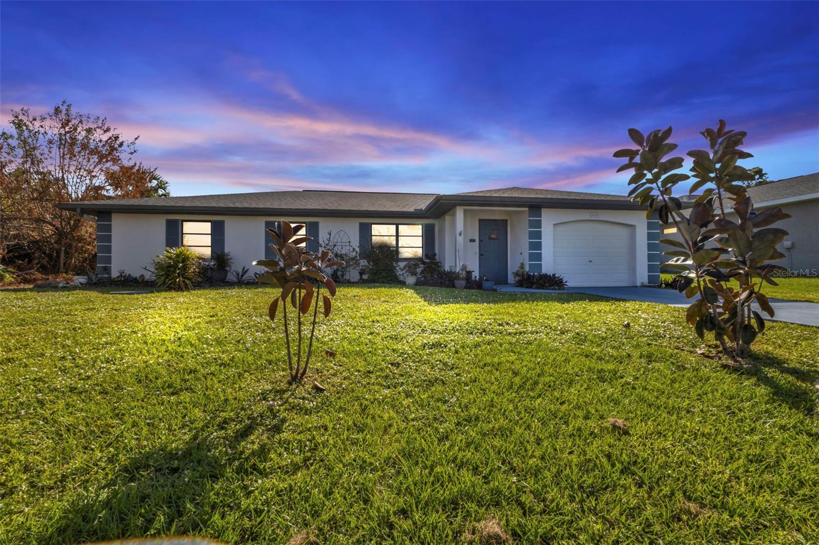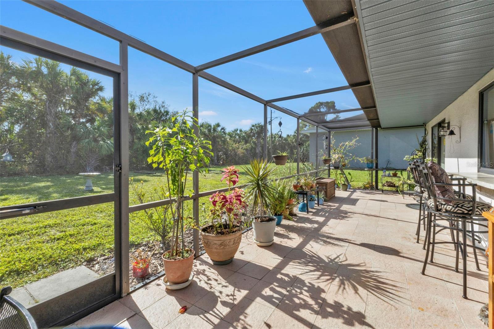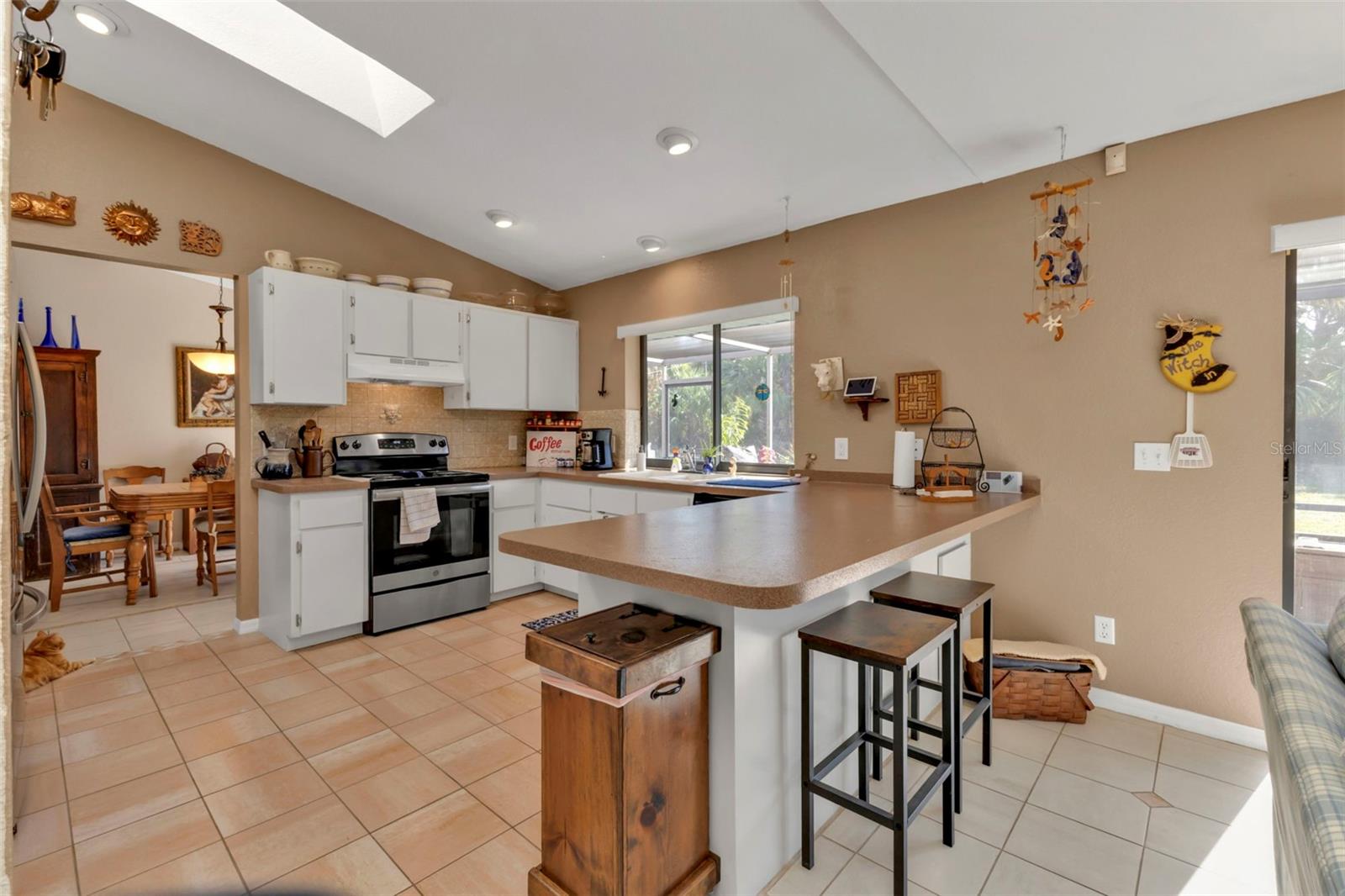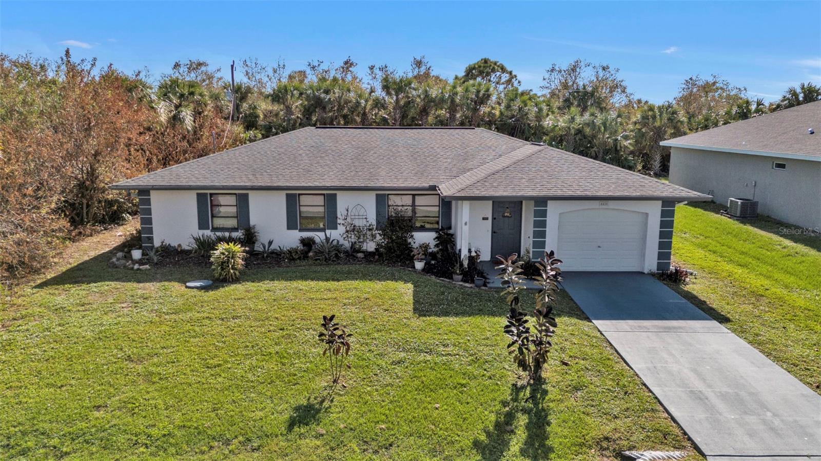 Motivated Seller. Beautiful 3-bedroom 2 bath home with a one car garage. NO damage from the recent hurricanes. Walk in the front door to a great open space that’s perfect for entertaining friends and family. Kitchen boats plenty of cabinet space with neutral countertops with a custom backsplash, a pass-thru window to the lanai and a recently installed newer dishwasher. The skylight in the kitchen allows for bright and natural sunlight. With the open kitchen you can entertain easily in your dining room and family room that also has sliding glass doors to the tiled lanai. The large primary bedroom can easily accommodate a king size bedroom set and the bathroom is equipped with a walk in tile shower. The guest bedrooms have ample space for your friends and family when they visit with a guest bathroom that has a tub/shower combo. The tiled floor flows from the front door to the family, kitchen, dining and great room. Large indoor laundry room with plenty of storage. This home features a large lanai which is great for your morning coffee and to watch the beautiful Florida sunrises and allows for plenty of privacy. A spacious yard great for gardening. Plus, there is room for a pool! The roof was replaced in 2022.Refrigerator and Oven are both stainless and replaced in 2023. This home can be purchased furnished. Personal items do not convey. Located in Port Charlotte this home is tucked away on a quiet neighborhood yet close to fabulous beaches, many restaurants, golf courses, parks, fishing, shopping, school and medical facilities.