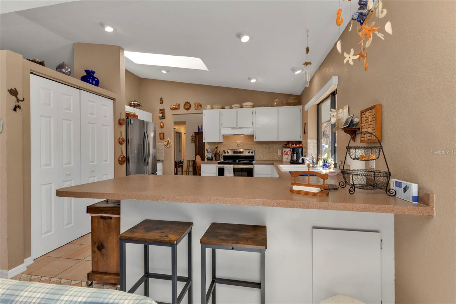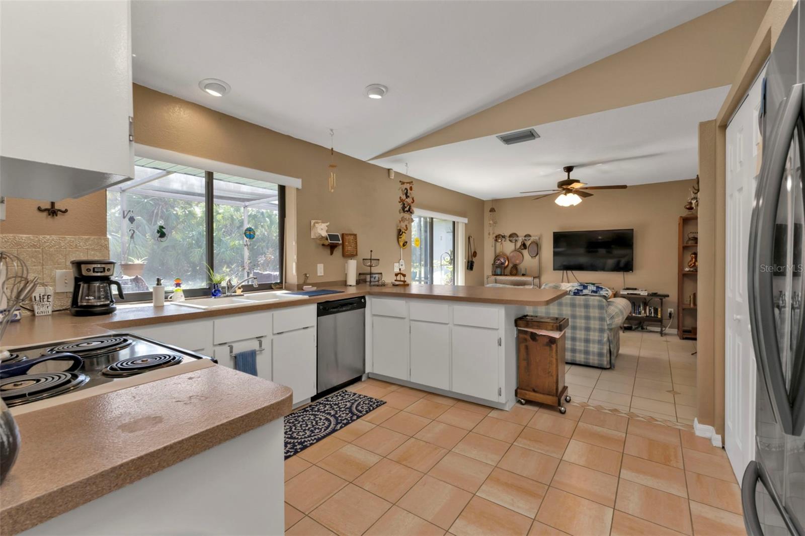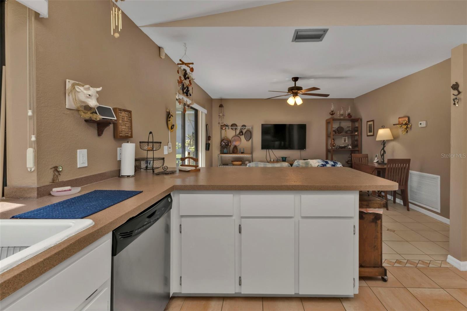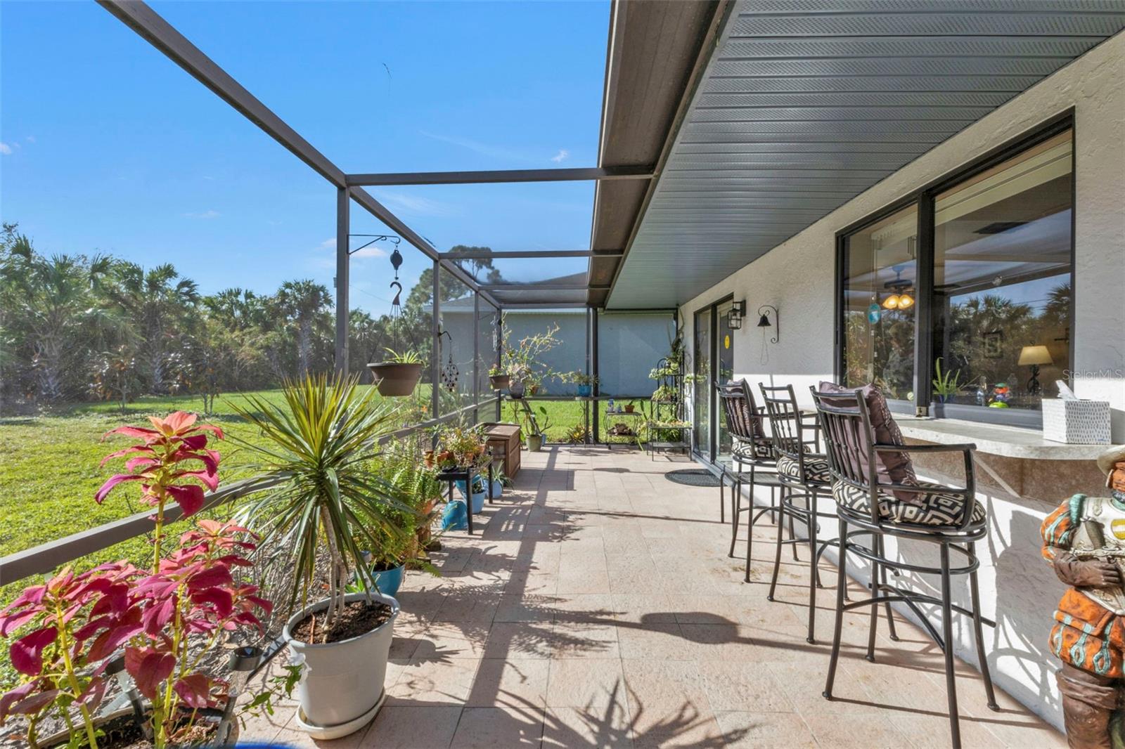 Motivated Seller. Beautiful 3-bedroom 2 bath home with a one car garage. NO damage from the recent hurricanes. Walk in the front door to a great open space that’s perfect for entertaining friends and family. Kitchen boats plenty of cabinet space with neutral countertops with a custom backsplash, a pass-thru window to the lanai and a recently installed newer dishwasher. The skylight in the kitchen allows for bright and natural sunlight. With the open kitchen you can entertain easily in your dining room and family room that also has sliding glass doors to the tiled lanai. The large primary bedroom can easily accommodate a king size bedroom set and the bathroom is equipped with a walk in tile shower. The guest bedrooms have ample space for your friends and family when they visit with a guest bathroom that has a tub/shower combo. The tiled floor flows from the front door to the family, kitchen, dining and great room. Large indoor laundry room with plenty of storage. This home features a large lanai which is great for your morning coffee and to watch the beautiful Florida sunrises and allows for plenty of privacy. A spacious yard great for gardening. Plus, there is room for a pool! The roof was replaced in 2022.Refrigerator and Oven are both stainless and replaced in 2023. This home can be purchased furnished. Personal items do not convey. Located in Port Charlotte this home is tucked away on a quiet neighborhood yet close to fabulous beaches, many restaurants, golf courses, parks, fishing, shopping, school and medical facilities.