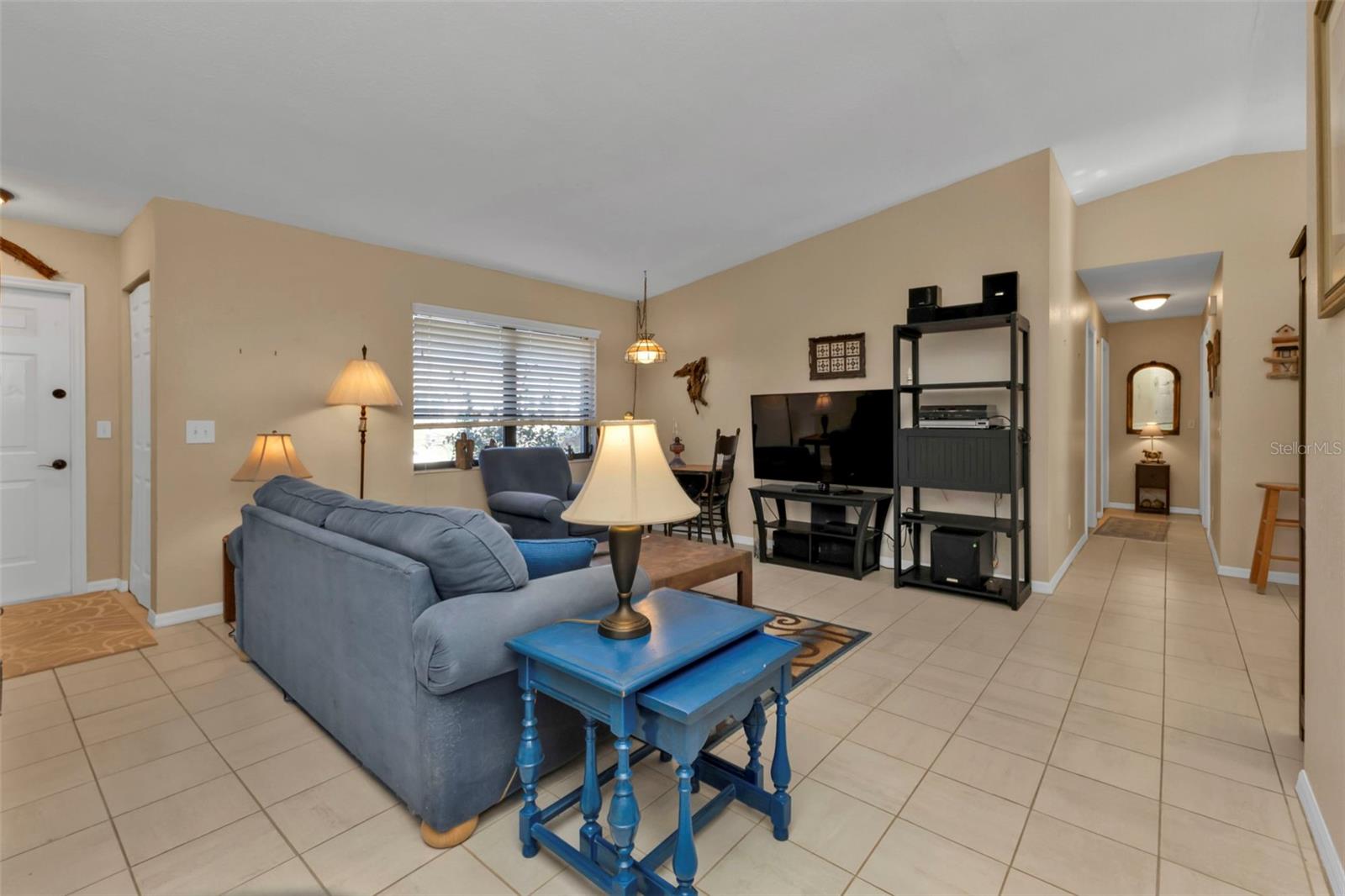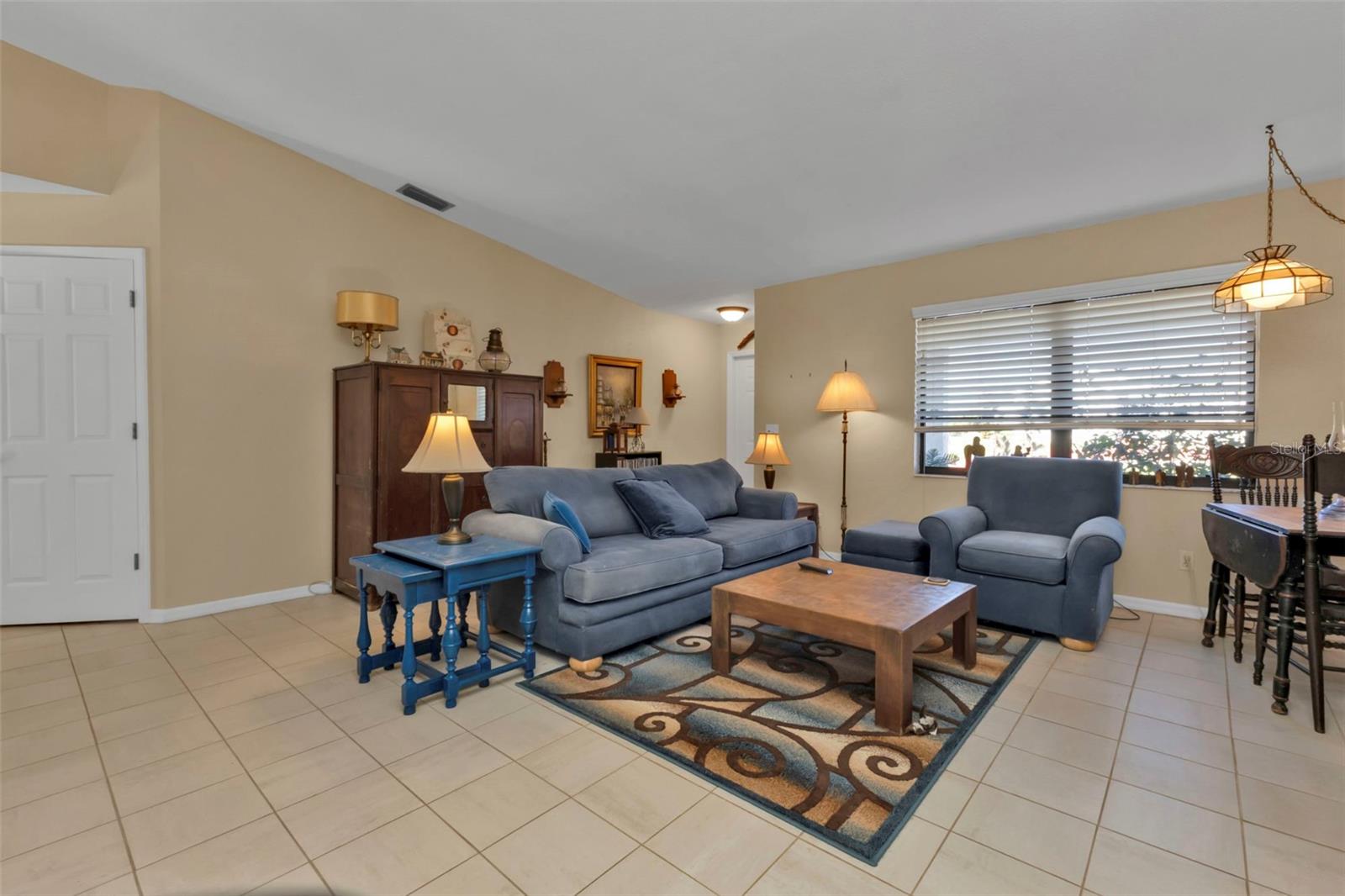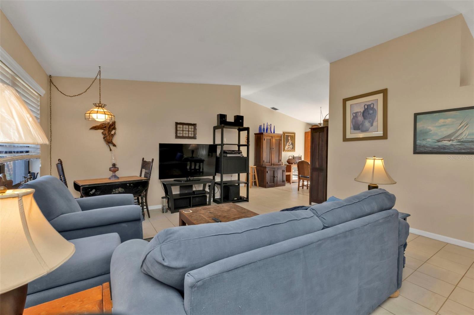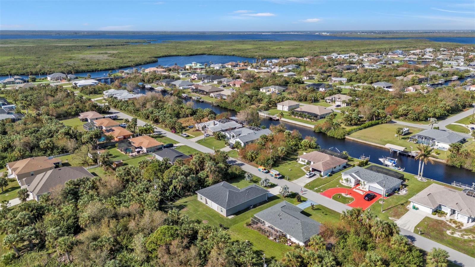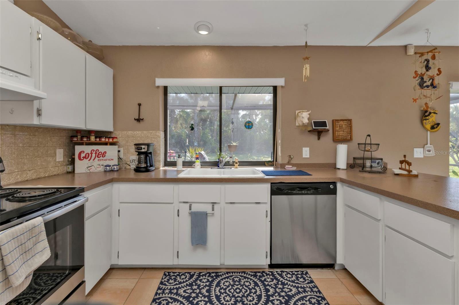 Motivated Seller. Beautiful 3-bedroom 2 bath home with a one car garage. NO damage from the recent hurricanes. Walk in the front door to a great open space that’s perfect for entertaining friends and family. Kitchen boats plenty of cabinet space with neutral countertops with a custom backsplash, a pass-thru window to the lanai and a recently installed newer dishwasher. The skylight in the kitchen allows for bright and natural sunlight. With the open kitchen you can entertain easily in your dining room and family room that also has sliding glass doors to the tiled lanai. The large primary bedroom can easily accommodate a king size bedroom set and the bathroom is equipped with a walk in tile shower. The guest bedrooms have ample space for your friends and family when they visit with a guest bathroom that has a tub/shower combo. The tiled floor flows from the front door to the family, kitchen, dining and great room. Large indoor laundry room with plenty of storage. This home features a large lanai which is great for your morning coffee and to watch the beautiful Florida sunrises and allows for plenty of privacy. A spacious yard great for gardening. Plus, there is room for a pool! The roof was replaced in 2022.Refrigerator and Oven are both stainless and replaced in 2023. This home can be purchased furnished. Personal items do not convey. Located in Port Charlotte this home is tucked away on a quiet neighborhood yet close to fabulous beaches, many restaurants, golf courses, parks, fishing, shopping, school and medical facilities.