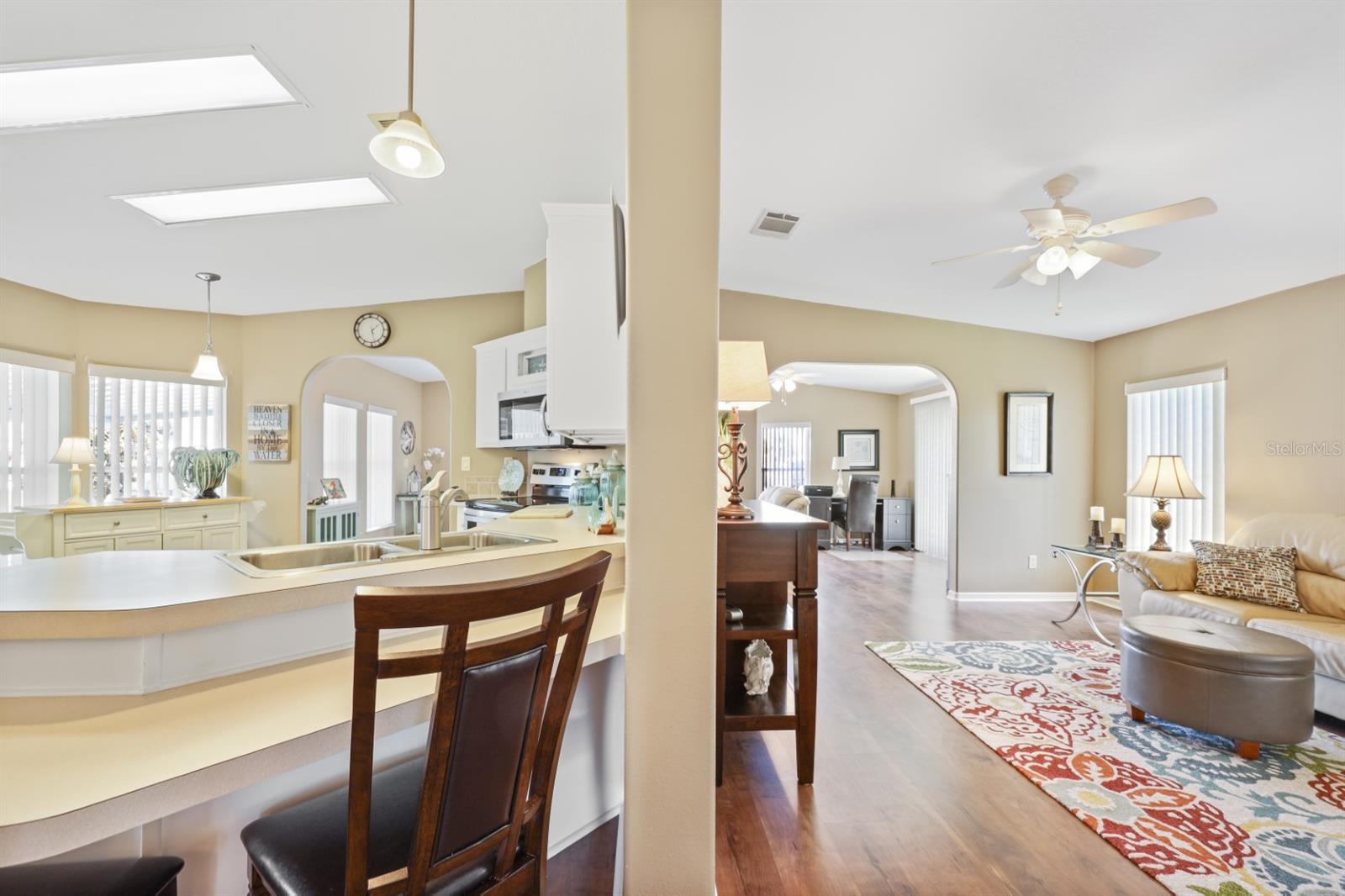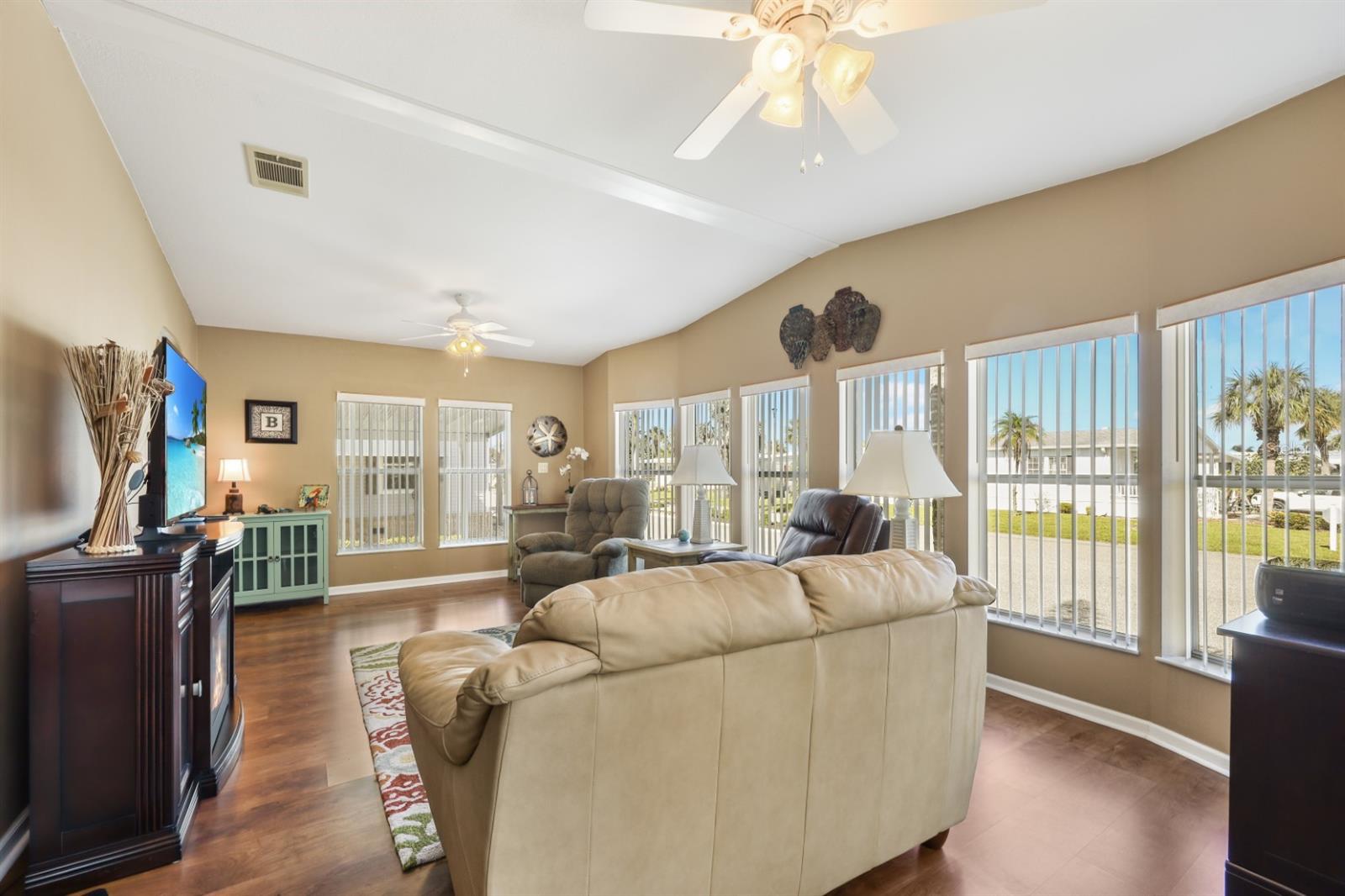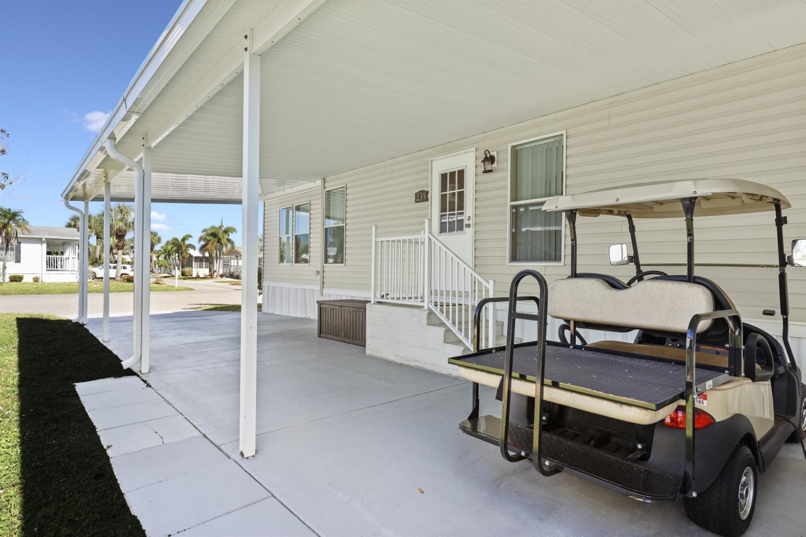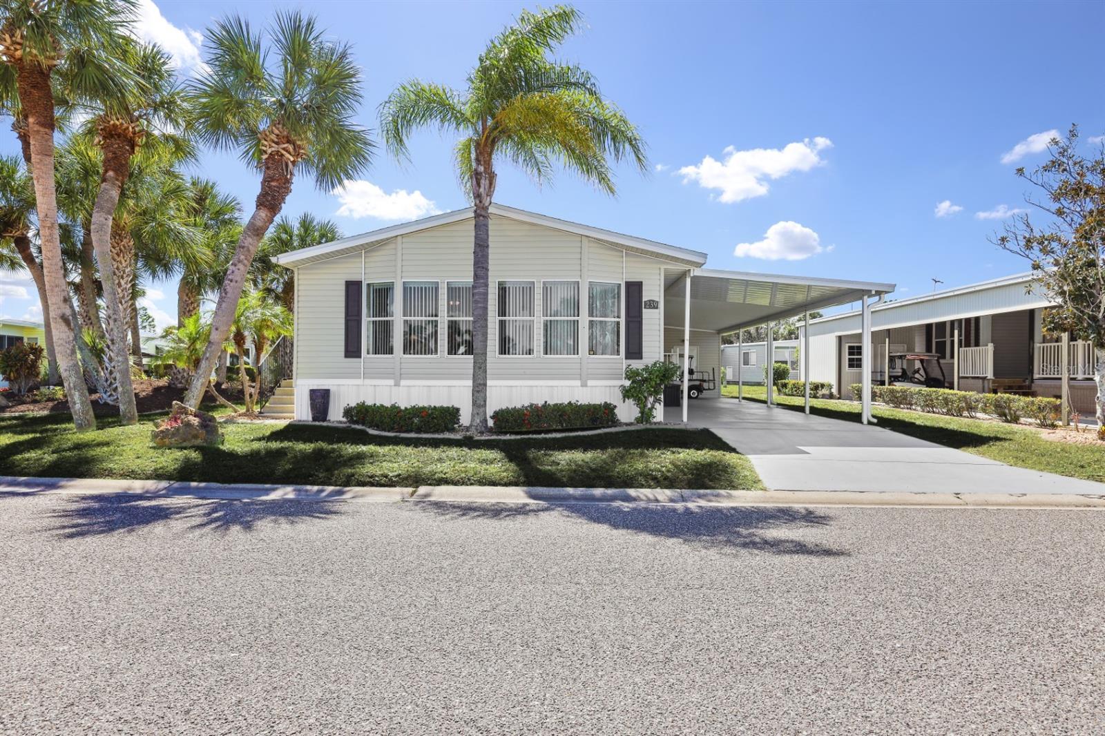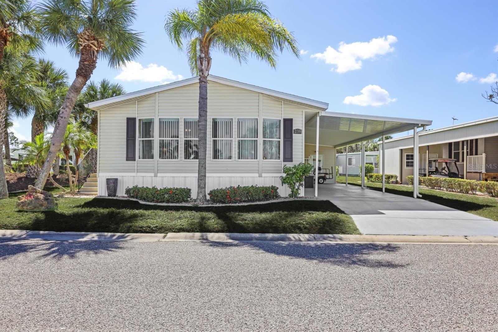 Spacious 2005 Jacobsen built 2 bedroom, 2 bathroom home with large bonus room located on oversize interior lot adjacent to a beautifully landscaped garden parkette. Large master bedroom suite features full wall of closet space and en-suite bath with dual vanity and walk-in shower. Guest bath features tub/shower combination. Kitchen is light and bright with ample cabinetry and breakfast bar. Formal dining room off kitchen. Formal living room and a spacious bonus room give you plenty of space to entertain guests. Interior laundry closet for added convenience. Recent upgrades include re-shingled roof Dec 2022, new carpet in bedrooms, upgraded appliance package. The long driveway can easily accommodate two to three cars and golf cart(s). 9'x10' Storage shed in carport for added storage. Home being sold furnished and includes a Golf Cart. Located in award winning Maple Leaf Golf & Country Club, a popular 55+ gated golf course community with an active resort lifestyle. Features a Par 62, 18 hole golf course, 5 tennis courts, bocce ball, lawn bowling, 2 shuffleboard courts, 4 heated swimming pools, 2 hot tubs, fitness facility, woodworking facility, 75+ clubs/activities, 4 pickleball courts and more. It's true what they say, it's all about the lifestyle.