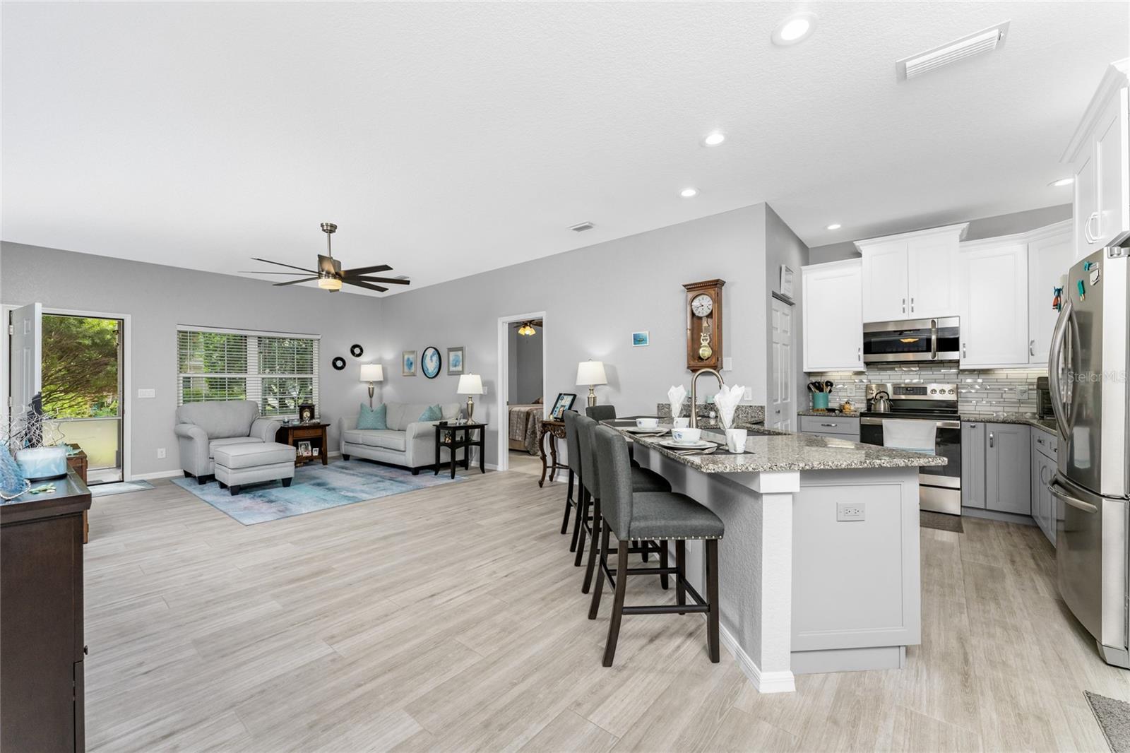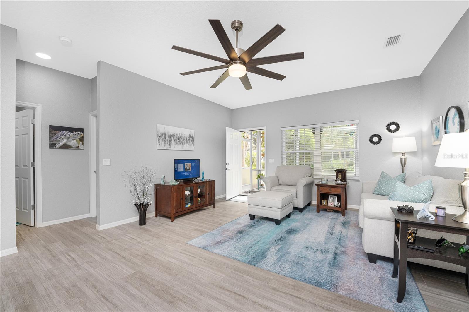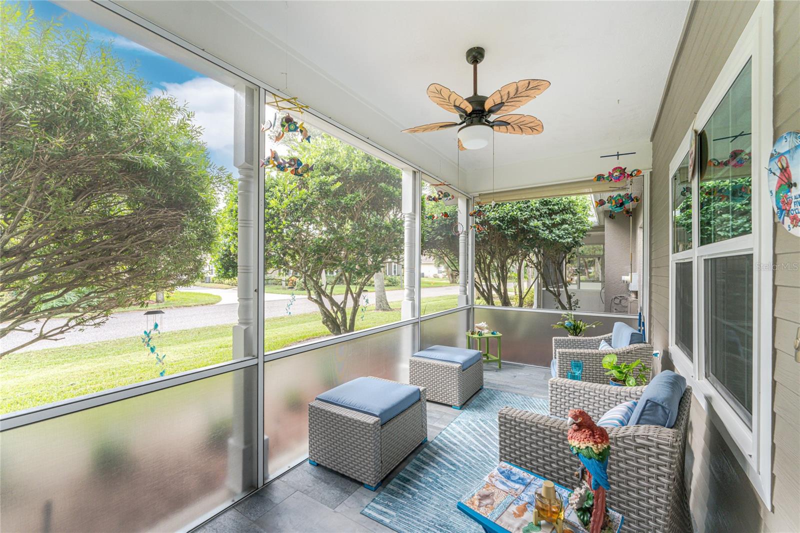BEAUTIFUL FURNISHED 2 Bedroom, 2 Bathroom, 2 Car Oversized Garage home with a Den located in the highly desirable Heritage Oak Park community in Port Charlotte. NO FLOOD REQUIRED! CLICK ON THE VIRTUAL TOUR LINK 1 FOR THE VIDEO AND VIRTUAL LINK 2 FOR THE 3D TOUR. Featuring a bright & open floor plan, porcelain tile in the main living areas, recessed lighting, and MUCH MORE! Spend quality time with friends and family in an open living and dining room. The kitchen offers ALL Stainless-steel appliances, granite countertops, a tiled backsplash, a closet pantry, a breakfast bar, under cabinet lighting, built-in double lazy Susan cabinet, built-in spice rack, and plenty of soft close cabinets for storage. The spacious master bedroom has a walk-in closet and an en-suite bathroom with a dual sink vanity, and tiled Roman shower. The guest room is on a split floor plan, offering plenty of privacy, with a built-in closet and a guest bathroom with a single sink vanity and a tiled Roman shower nearby. Whether you need an office, media room, or additional guest room, the den will surely fit your needs. Sip our morning coffee or unwind with your favorite evening beverage on the screened lanai while enjoying the serene park-like surroundings. 2023 RANGE - HURRICANE IMPACT WINDOWS & GARAGE DOOR - SCREENED GARAGE - SHIELD CRETE GARAGE FLOOR - FURNITURE INCLUDED IS A BONUS TO THE BUYER. Heritage Oak Park is an active & pet-friendly gated community. Amenities include a Clubhouse, heated community pool, tennis, pickleball, bocce ball & shuffleboard courts, horse shoes, a lending library, billiards, a walking path around the lake, and an activities director on staff to keep your social calendar full!