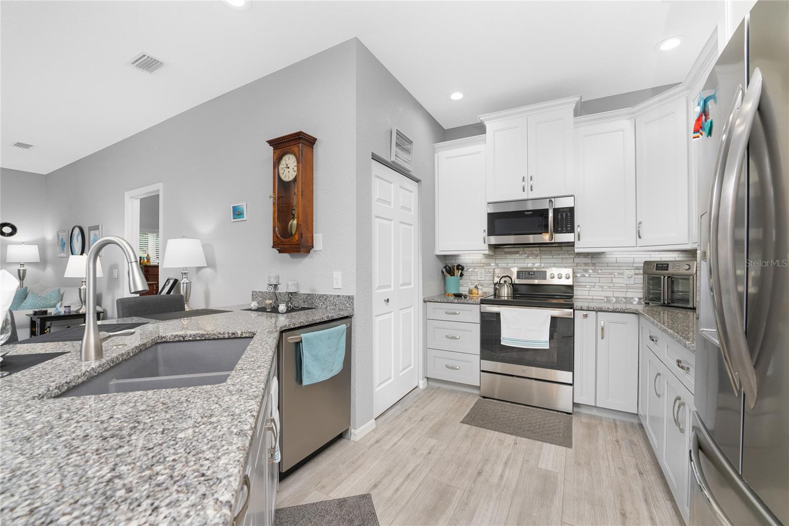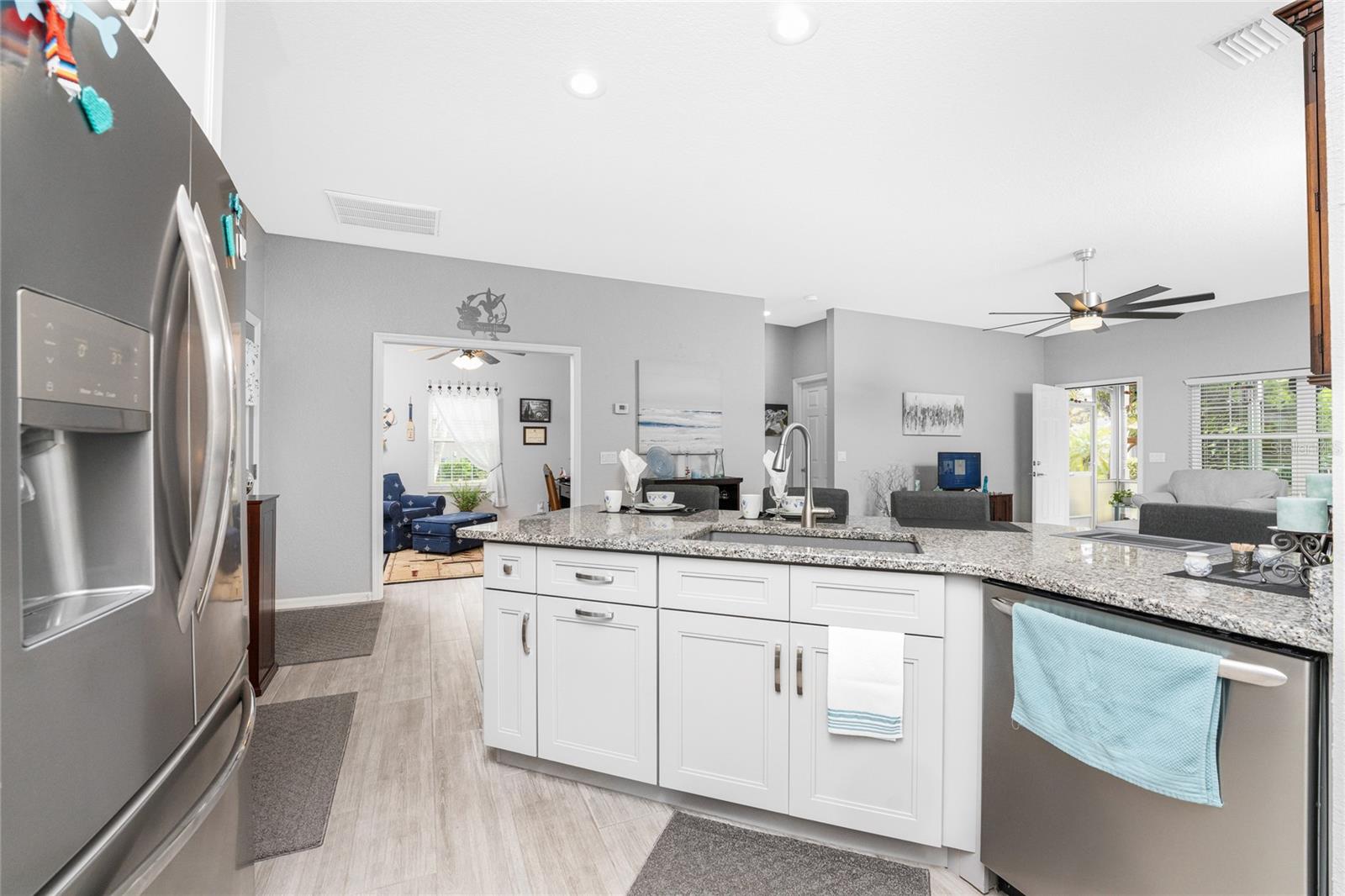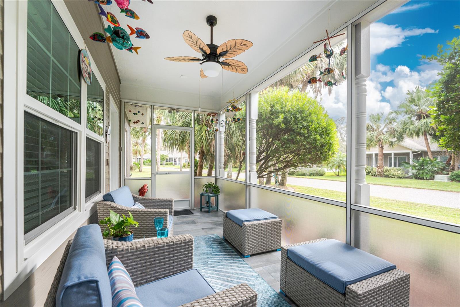 BEAUTIFUL FURNISHED 2 Bedroom, 2 Bathroom, 2 Car Oversized Garage home with a Den located in the highly desirable Heritage Oak Park community in Port Charlotte. NO FLOOD REQUIRED! CLICK ON THE VIRTUAL TOUR LINK 1 FOR THE VIDEO AND VIRTUAL LINK 2 FOR THE 3D TOUR. Featuring a bright & open floor plan, porcelain tile in the main living areas, recessed lighting, and MUCH MORE! Spend quality time with friends and family in an open living and dining room. The kitchen offers ALL Stainless-steel appliances, granite countertops, a tiled backsplash, a closet pantry, a breakfast bar, under cabinet lighting, built-in double lazy Susan cabinet, built-in spice rack, and plenty of soft close cabinets for storage. The spacious master bedroom has a walk-in closet and an en-suite bathroom with a dual sink vanity, and tiled Roman shower. The guest room is on a split floor plan, offering plenty of privacy, with a built-in closet and a guest bathroom with a single sink vanity and a tiled Roman shower nearby. Whether you need an office, media room, or additional guest room, the den will surely fit your needs. Sip our morning coffee or unwind with your favorite evening beverage on the screened lanai while enjoying the serene park-like surroundings. 2023 RANGE - HURRICANE IMPACT WINDOWS & GARAGE DOOR - SCREENED GARAGE - SHIELD CRETE GARAGE FLOOR - FURNITURE INCLUDED IS A BONUS TO THE BUYER. Heritage Oak Park is an active & pet-friendly gated community. Amenities include a Clubhouse, heated community pool, tennis, pickleball, bocce ball & shuffleboard courts, horse shoes, a lending library, billiards, a walking path around the lake, and an activities director on staff to keep your social calendar full!