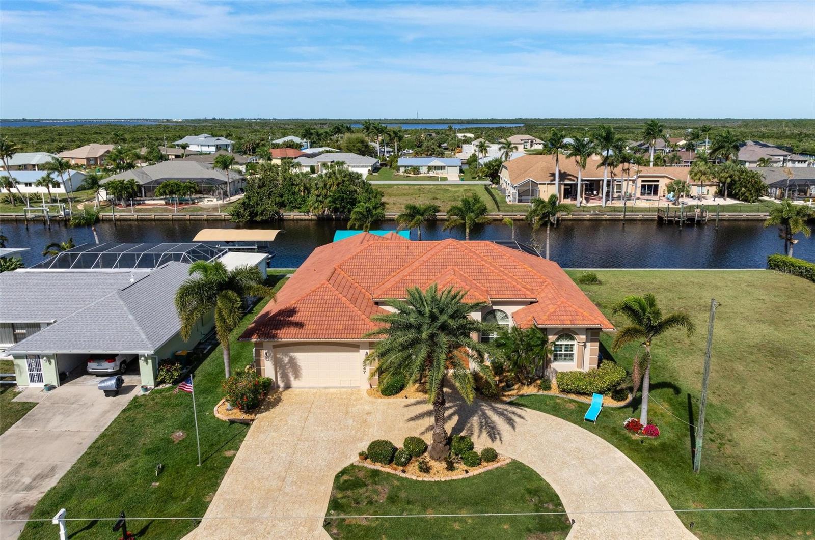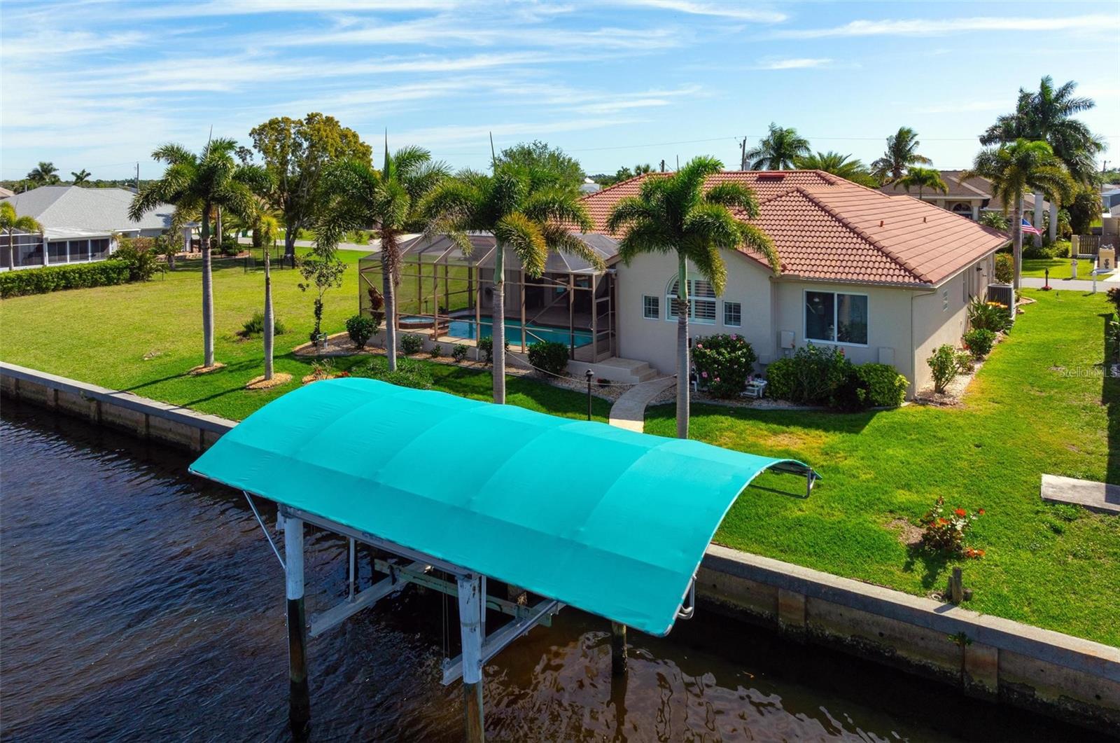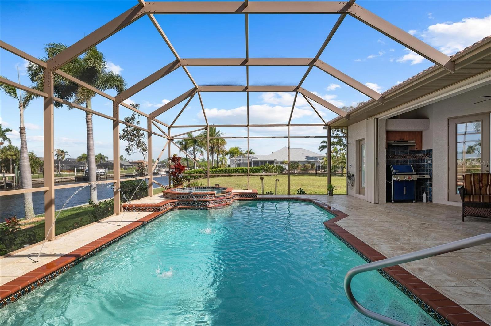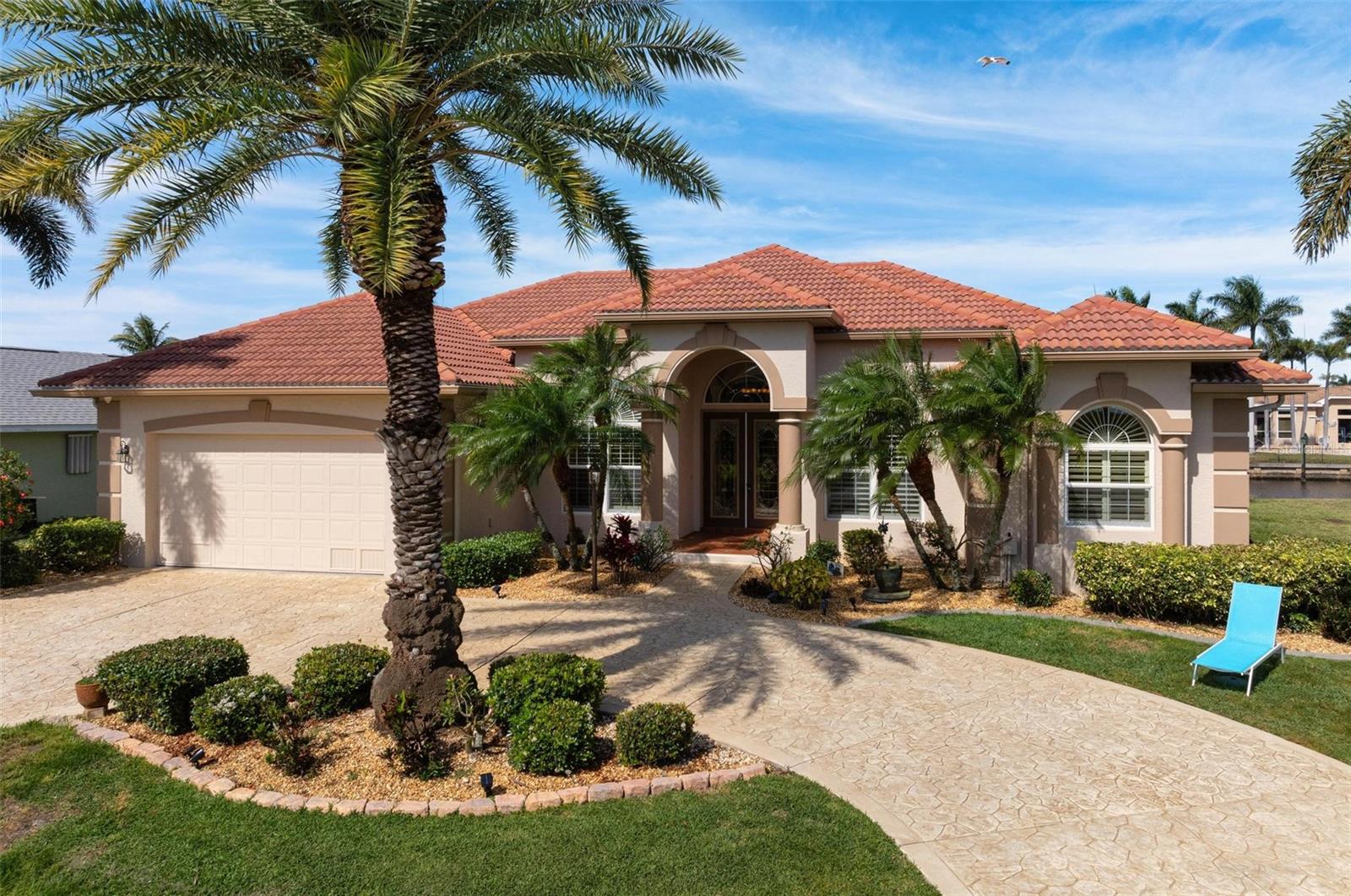 Experience the epitome of Florida living in this exquisite custom-built home crafted by Master Builders, nestled along an 80-foot seawall on a saltwater canal with a convenient 14,000 lb. boat lift, providing direct access to the scenic Manchester Waterway. Take your yacht, sailboat, kayak or jet ski to the open waters and beyond. There are no bridges standing in your way! The home is a fortress with impact windows, doors, and accordion hurricane shutters for the lanai. This home had No Damage from Hurricanes Ian, Helene or Milton. This home is equipped with a whole house generator, ensuring that there will always be power!!! Boasting a seamless blend of elegance and coastal charm, this residence caters effortlessly to the discerning homeowner seeking refined luxury. Meticulously maintained, the home welcomes you with a plethora of upscale amenities, including top-of-the-line stainless steel Wolf appliances and Subzero refrigerator, complemented by a sleek stainless steel wine chiller, ideal for indulging in the finest vintages. Entertain with ease in the spacious main living area, featuring a built-in retractable TV and entertainment center in the family room, while the gourmet kitchen showcases solid wood cabinetry and unique rare type of granite countertops, inviting culinary creativity to flourish. Begin your mornings in the cozy eat-in kitchen area, perfect for intimate conversations over freshly brewed coffee, or host lavish dinner parties in the formal dining room, creating cherished memories with loved ones. Transition effortlessly to the second living room, currently utilized as a pool/billiard room, offering versatility as a refined reception space for more formal gatherings. Retreat to the opulent primary suite, bathed in natural light, boasting dual walk-in closets and a luxurious ensuite bathroom, providing a serene sanctuary for relaxation. The thoughtfully designed split-plan layout ensures privacy, with two generously sized guest rooms offering comfortable accommodations and access to a shared bath. Step outside to the expansive lanai, where the true essence of Florida living unfolds. Bask in the warmth of the sun by the sparkling pool and spa, or fire up the grill in the outdoor kitchen, creating an idyllic setting for year-round entertaining and enjoyment. There is a half bath on the pool patio for convenience. Future residents will appreciate the proposed channel alignment, offering expedited access to open waters, further enhancing the allure of this remarkable waterfront retreat. Indulge in the quintessential Florida lifestyle, where luxury meets coastal charm, in this impeccably crafted custom home.