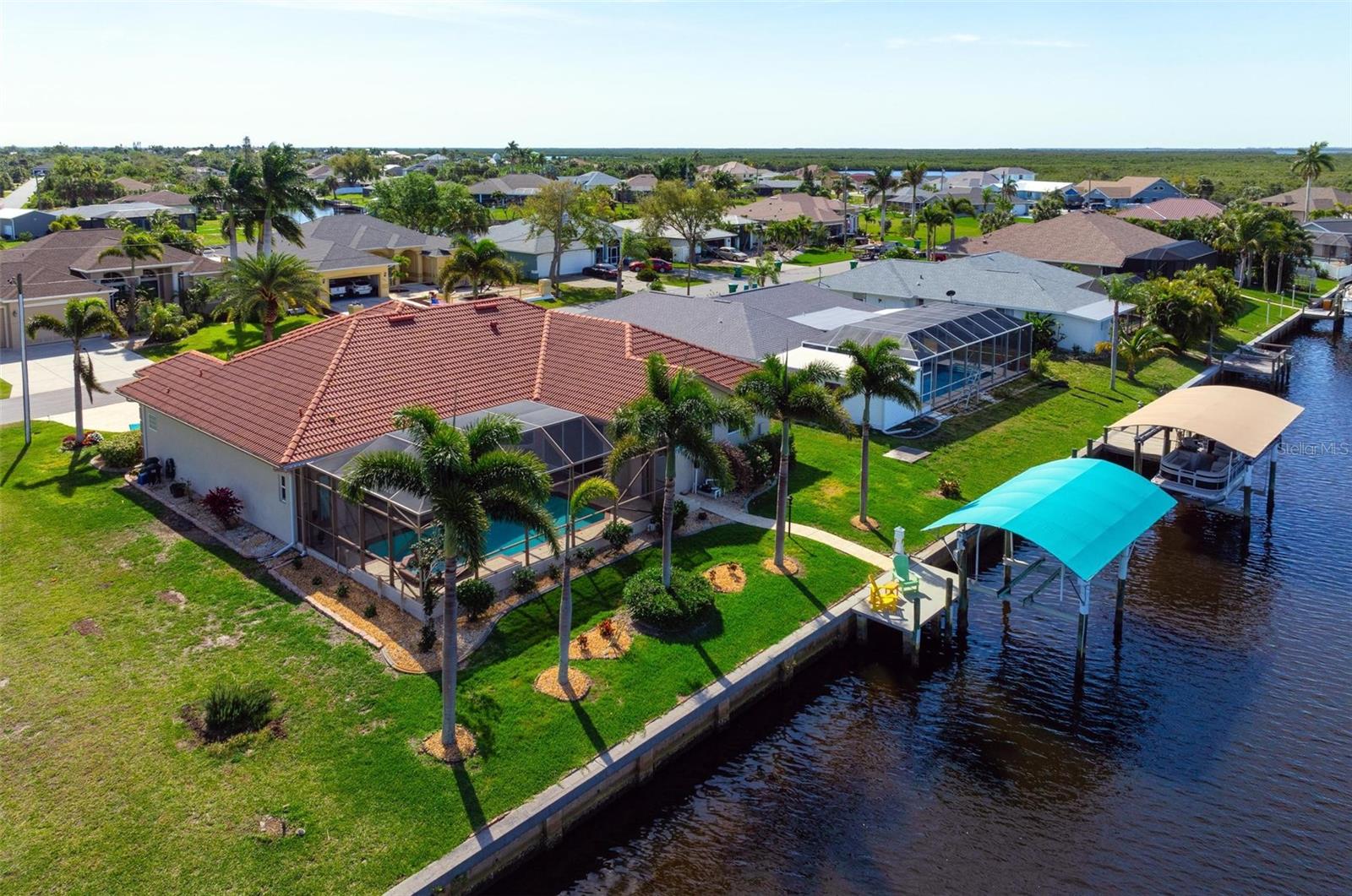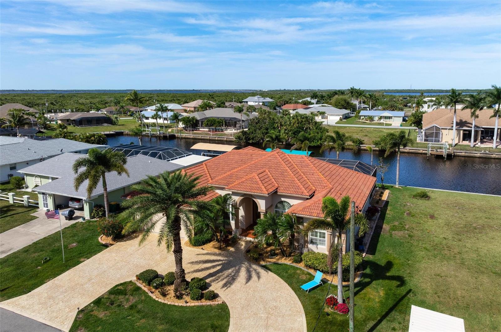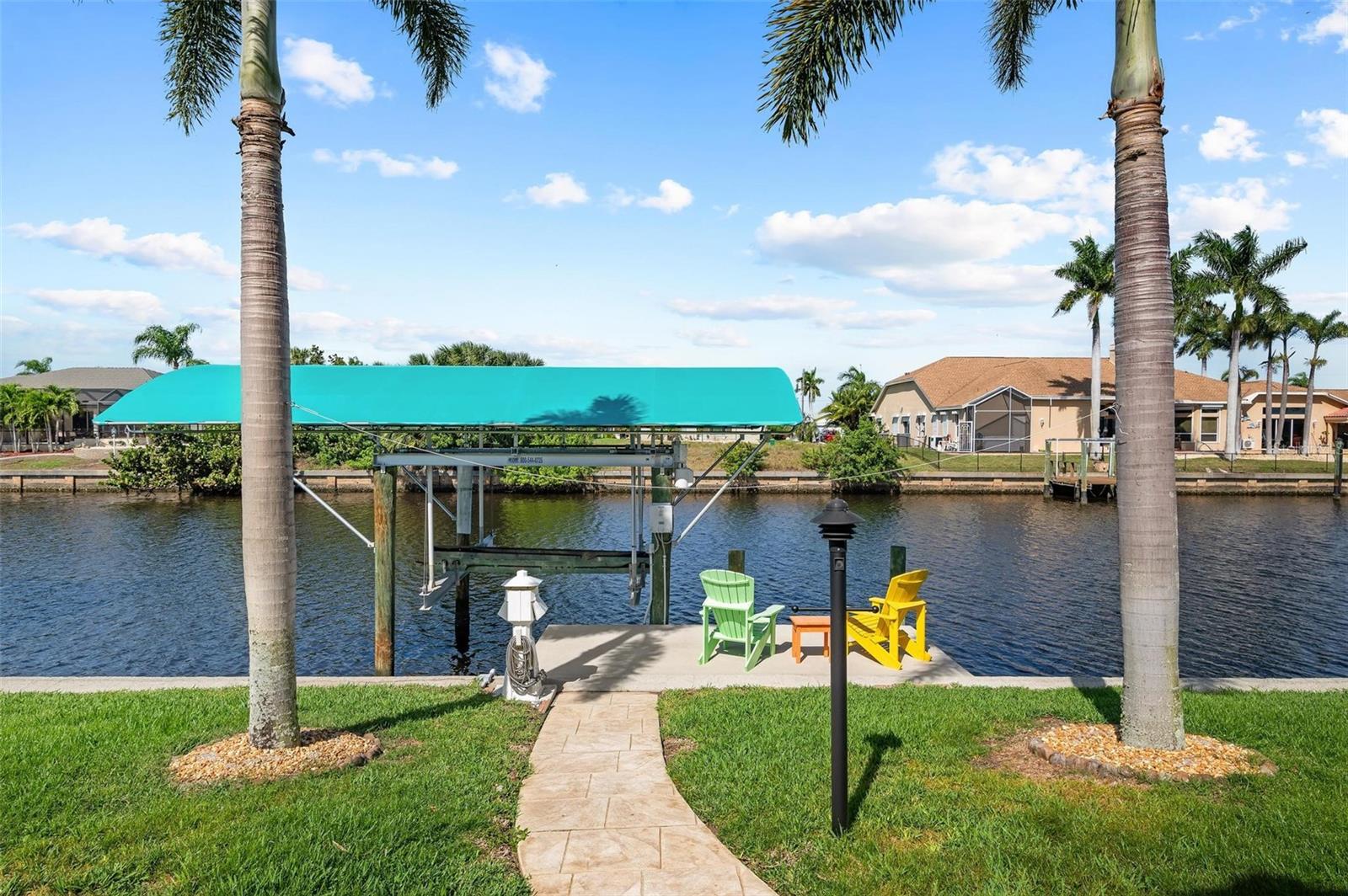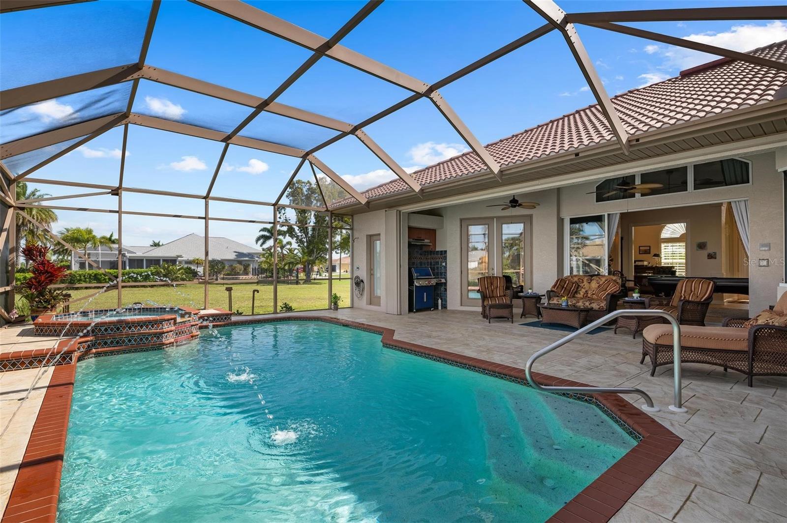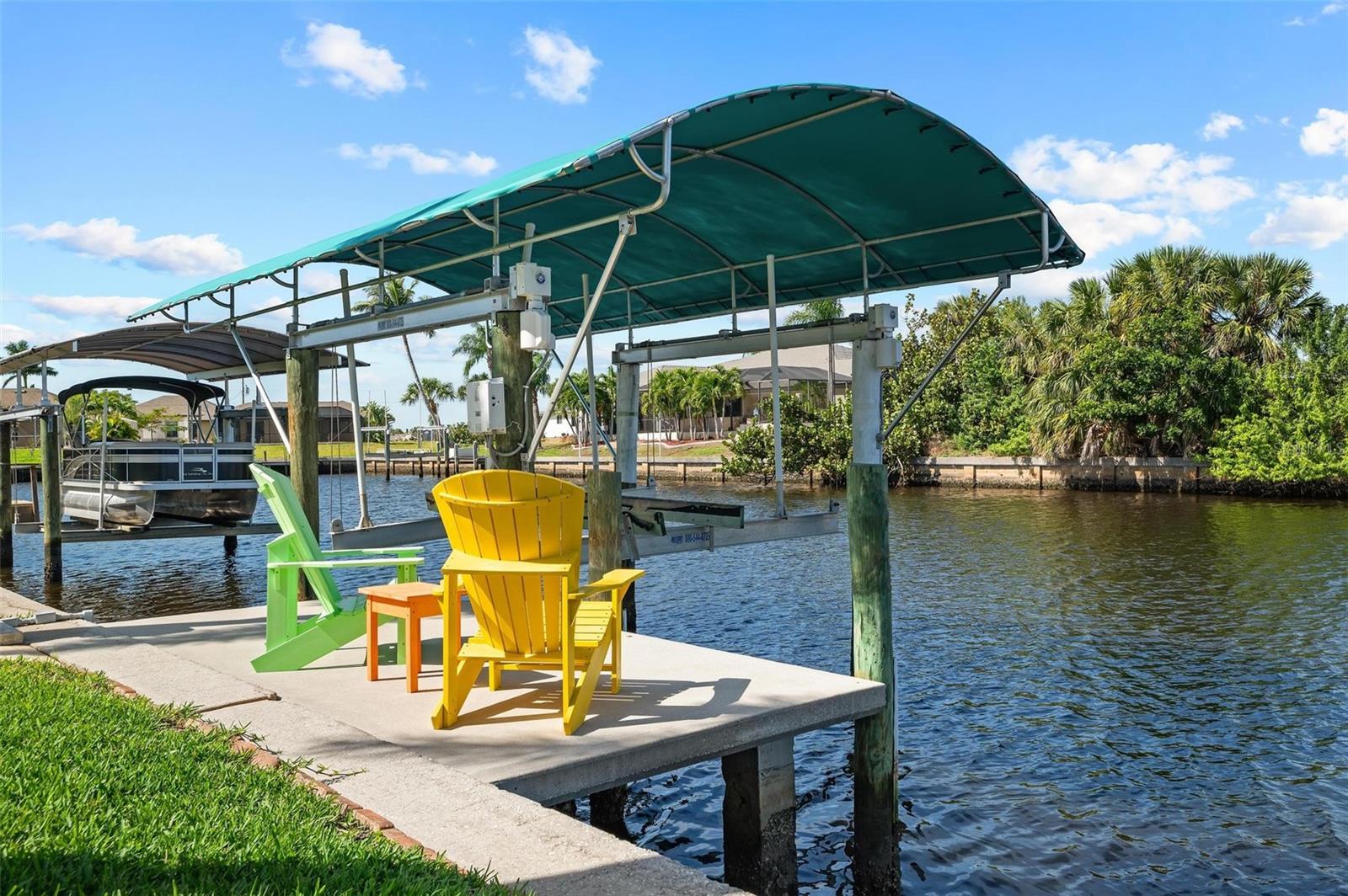 Experience the epitome of Florida living in this exquisite custom-built home crafted by Master Builders, nestled along an 80-foot seawall on a saltwater canal with a convenient 14,000 lb. boat lift, providing direct access to the scenic Manchester Waterway. Take your yacht, sailboat, kayak or jet ski to the open waters and beyond. There are no bridges standing in your way! The home is a fortress with impact windows, doors, and accordion hurricane shutters for the lanai. This home had No Damage from Hurricanes Ian, Helene or Milton. This home is equipped with a whole house generator, ensuring that there will always be power!!! Boasting a seamless blend of elegance and coastal charm, this residence caters effortlessly to the discerning homeowner seeking refined luxury. Meticulously maintained, the home welcomes you with a plethora of upscale amenities, including top-of-the-line stainless steel Wolf appliances and Subzero refrigerator, complemented by a sleek stainless steel wine chiller, ideal for indulging in the finest vintages. Entertain with ease in the spacious main living area, featuring a built-in retractable TV and entertainment center in the family room, while the gourmet kitchen showcases solid wood cabinetry and unique rare type of granite countertops, inviting culinary creativity to flourish. Begin your mornings in the cozy eat-in kitchen area, perfect for intimate conversations over freshly brewed coffee, or host lavish dinner parties in the formal dining room, creating cherished memories with loved ones. Transition effortlessly to the second living room, currently utilized as a pool/billiard room, offering versatility as a refined reception space for more formal gatherings. Retreat to the opulent primary suite, bathed in natural light, boasting dual walk-in closets and a luxurious ensuite bathroom, providing a serene sanctuary for relaxation. The thoughtfully designed split-plan layout ensures privacy, with two generously sized guest rooms offering comfortable accommodations and access to a shared bath. Step outside to the expansive lanai, where the true essence of Florida living unfolds. Bask in the warmth of the sun by the sparkling pool and spa, or fire up the grill in the outdoor kitchen, creating an idyllic setting for year-round entertaining and enjoyment. There is a half bath on the pool patio for convenience. Future residents will appreciate the proposed channel alignment, offering expedited access to open waters, further enhancing the allure of this remarkable waterfront retreat. Indulge in the quintessential Florida lifestyle, where luxury meets coastal charm, in this impeccably crafted custom home.