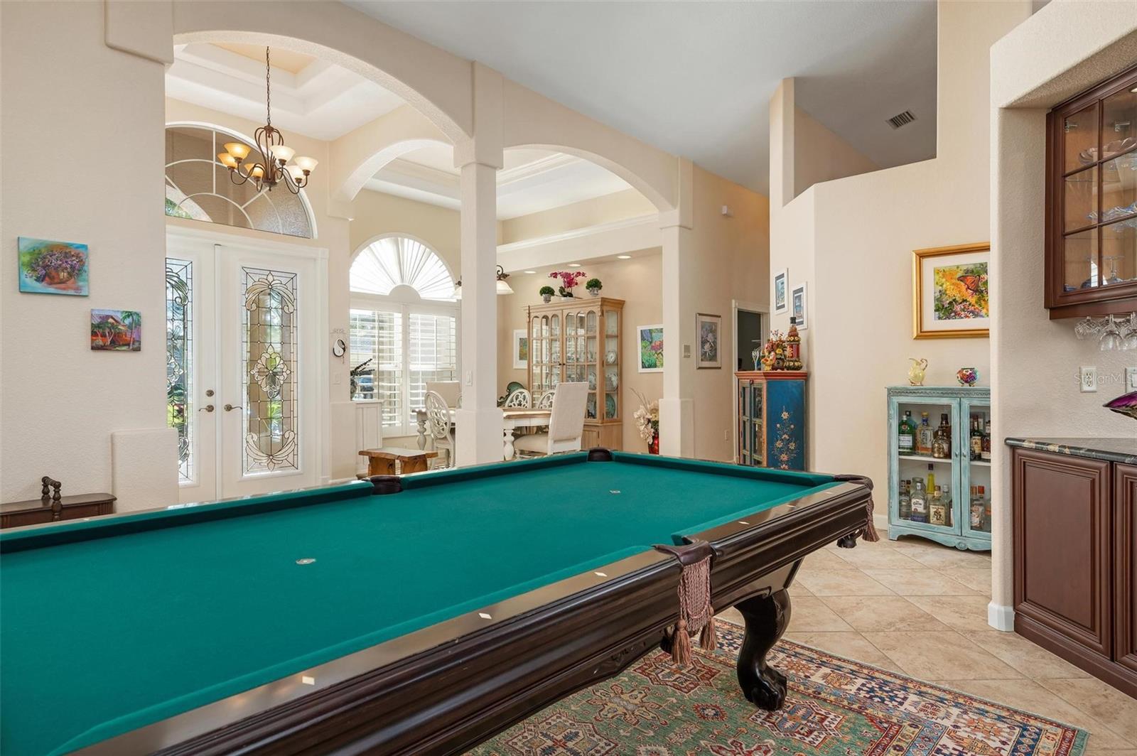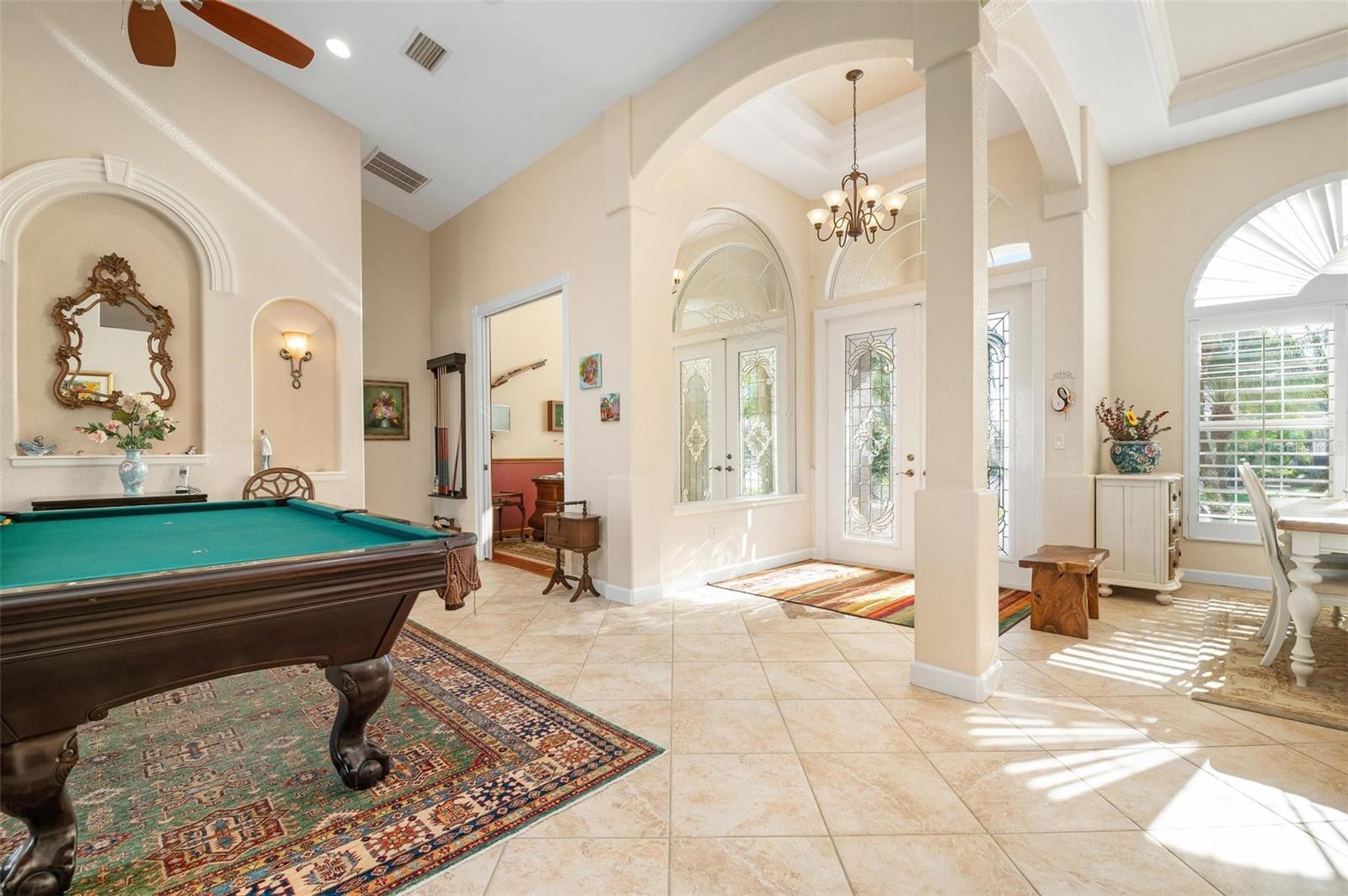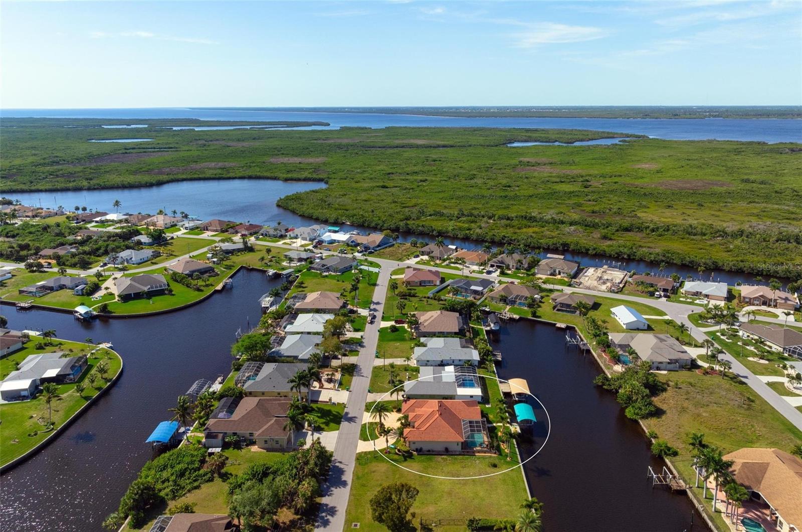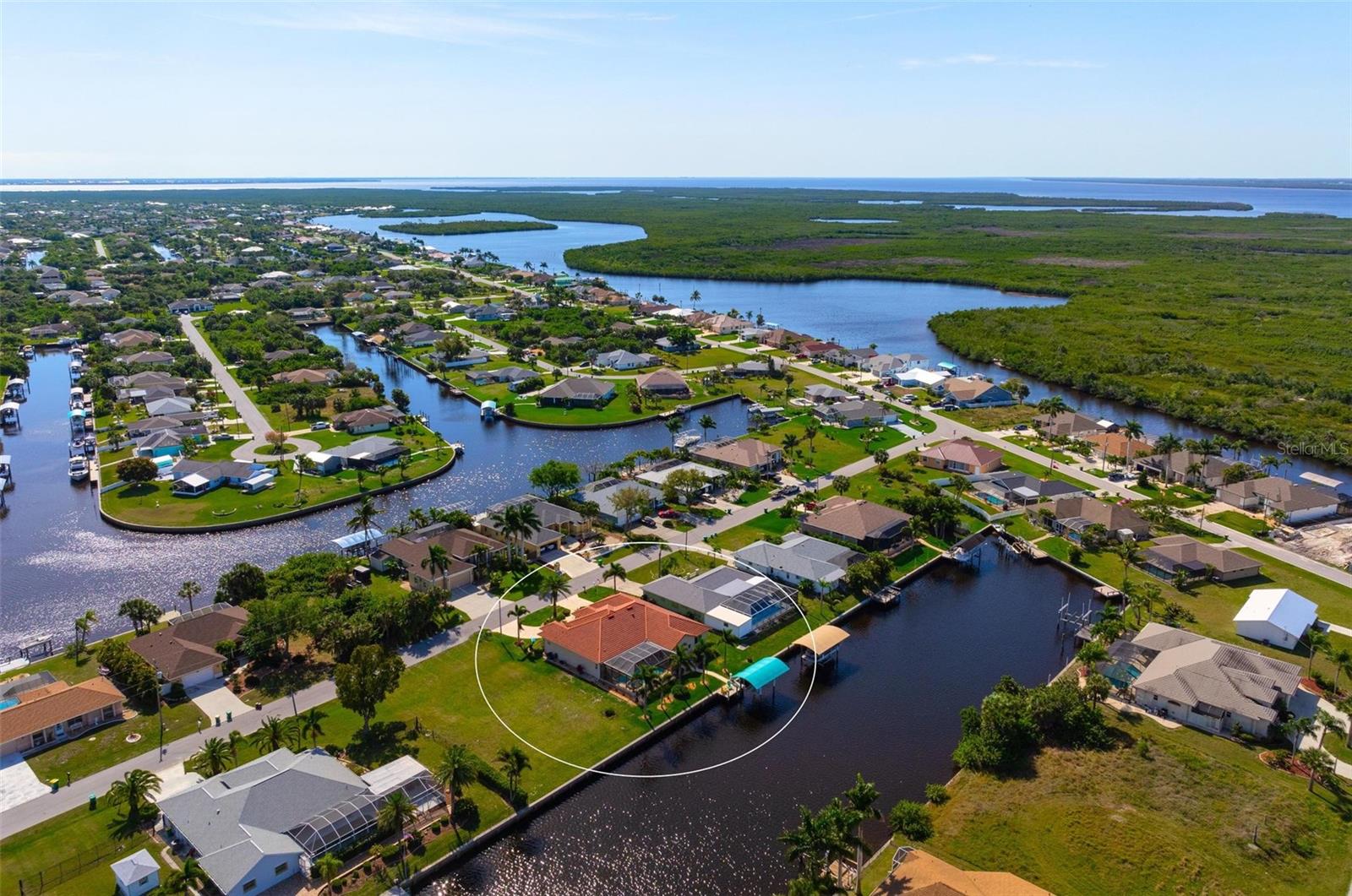 Experience the epitome of Florida living in this exquisite custom-built home crafted by Master Builders, nestled along an 80-foot seawall on a saltwater canal with a convenient 14,000 lb. boat lift, providing direct access to the scenic Manchester Waterway. Take your yacht, sailboat, kayak or jet ski to the open waters and beyond. There are no bridges standing in your way! The home is a fortress with impact windows, doors, and accordion hurricane shutters for the lanai. This home had No Damage from Hurricanes Ian, Helene or Milton. This home is equipped with a whole house generator, ensuring that there will always be power!!! Boasting a seamless blend of elegance and coastal charm, this residence caters effortlessly to the discerning homeowner seeking refined luxury. Meticulously maintained, the home welcomes you with a plethora of upscale amenities, including top-of-the-line stainless steel Wolf appliances and Subzero refrigerator, complemented by a sleek stainless steel wine chiller, ideal for indulging in the finest vintages. Entertain with ease in the spacious main living area, featuring a built-in retractable TV and entertainment center in the family room, while the gourmet kitchen showcases solid wood cabinetry and unique rare type of granite countertops, inviting culinary creativity to flourish. Begin your mornings in the cozy eat-in kitchen area, perfect for intimate conversations over freshly brewed coffee, or host lavish dinner parties in the formal dining room, creating cherished memories with loved ones. Transition effortlessly to the second living room, currently utilized as a pool/billiard room, offering versatility as a refined reception space for more formal gatherings. Retreat to the opulent primary suite, bathed in natural light, boasting dual walk-in closets and a luxurious ensuite bathroom, providing a serene sanctuary for relaxation. The thoughtfully designed split-plan layout ensures privacy, with two generously sized guest rooms offering comfortable accommodations and access to a shared bath. Step outside to the expansive lanai, where the true essence of Florida living unfolds. Bask in the warmth of the sun by the sparkling pool and spa, or fire up the grill in the outdoor kitchen, creating an idyllic setting for year-round entertaining and enjoyment. There is a half bath on the pool patio for convenience. Future residents will appreciate the proposed channel alignment, offering expedited access to open waters, further enhancing the allure of this remarkable waterfront retreat. Indulge in the quintessential Florida lifestyle, where luxury meets coastal charm, in this impeccably crafted custom home.