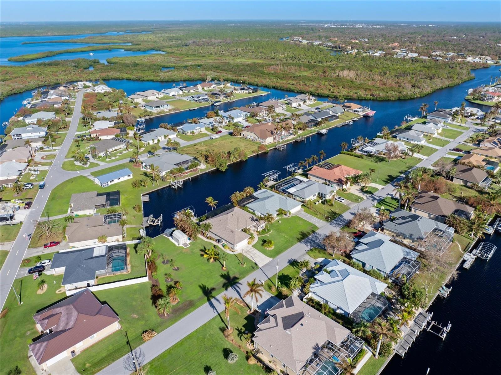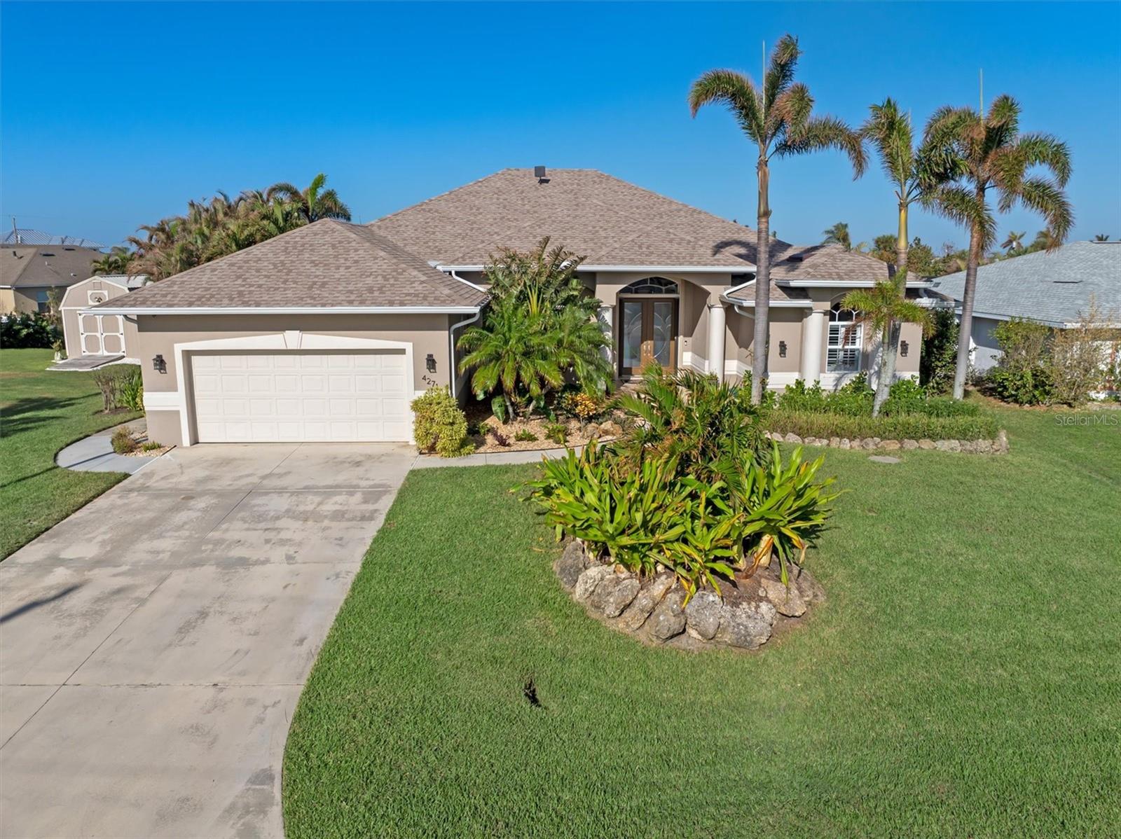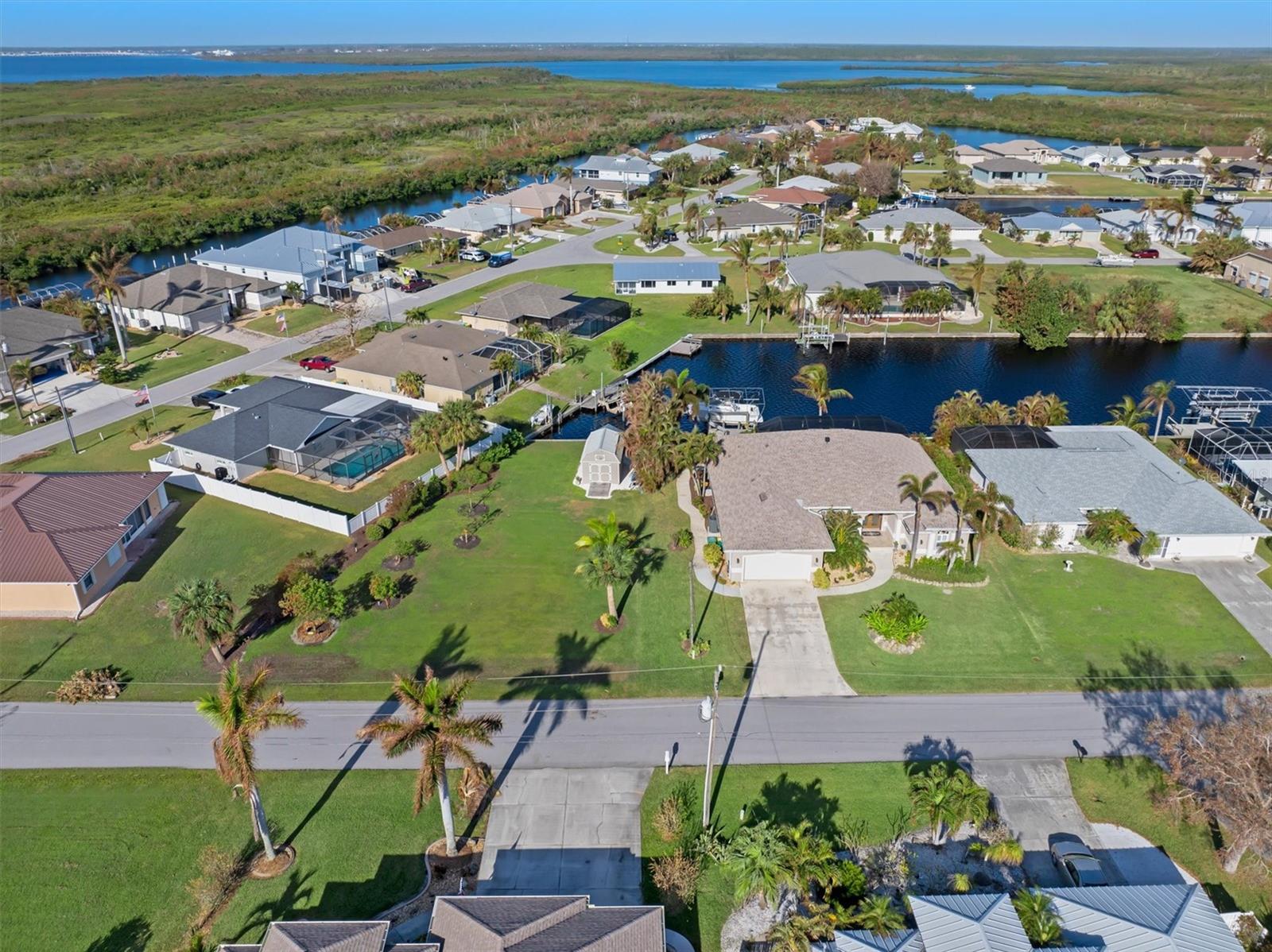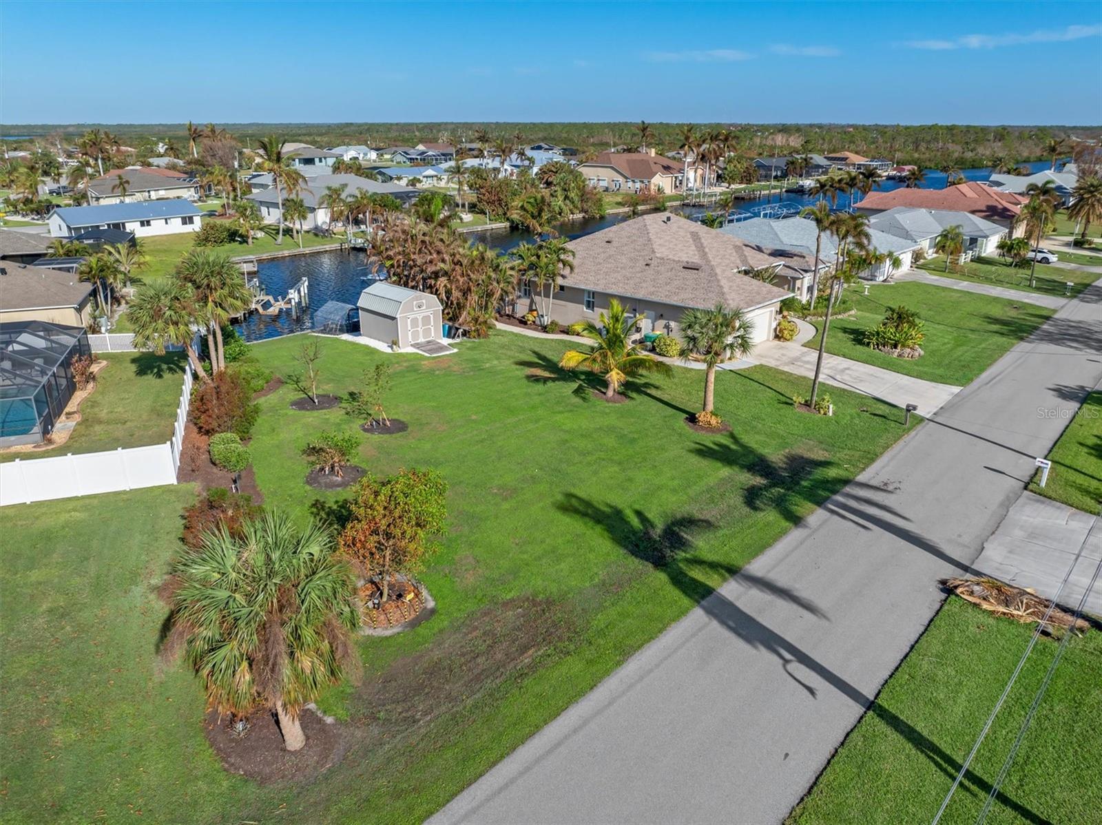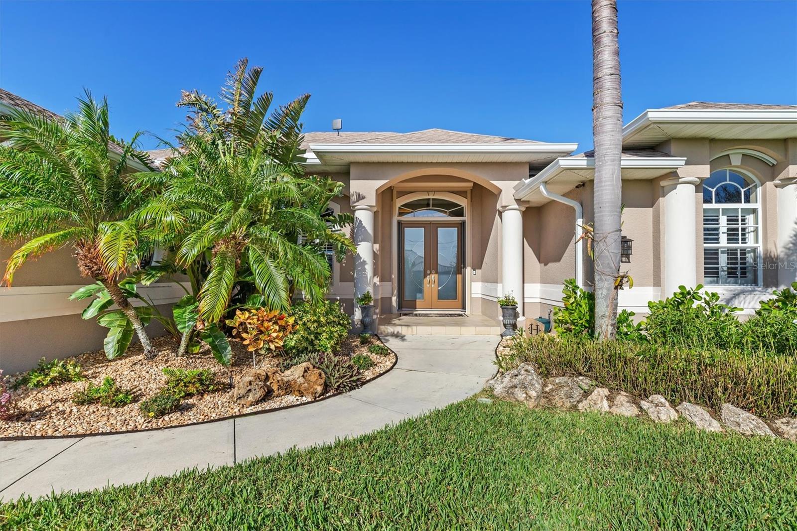 Check out the 3-D virtual walk through above! Stunning SAILBOAT ACCESS home with additional buildable lot to keep or sell! Original owners spared no expense to maintain this meticulous home with custom details throughout. As you enter this spacious, open floor plan home from the beautiful double doors (with retractable double screen), you view the Eastlake Waterway and a custom designed pool area with new Clearview screen. Specially designed Travertine flooring along with Hickory Wood flooring make this home a unique find. Custom remote controlled linen shades adorn the massive sliding glass doors and plantation shutters that are in other windows. High-end interior design includes several “art niches,” crown molding, tray ceilings, banana leaf inset in tray ceiling in Primary Bedroom, glass block shower, walk-in custom designed closets, and a Murphy bed for easy transition from a bedroom to an office/den! The split floor plan includes both a HUGE Primary Suite and two HUGE bedrooms to make this home perfect for entertaining guests. The kitchen has too many unique features to mention them all…wine cooler, Induction GE Café stove with pull out hood, solid Cherry Wood cabinets, pull out trash bins, top of the line refrigerator, and gorgeous granite countertop. The kitchen nook features a large Aquarium Window that is the focal point of the home. While sitting in the nook, you can view your beautiful custom pool with a unique garden of in-ground and potted plants. Go out the side lanai door and follow the paver walkway to your own lighted private boat dock. And, if you are interested, the 30 foot Twin Yanmar Diesel 630 horsepower boat is negotiable. Add in a totally new laundry room with stainless steel sink, granite countertop, new 30” stainless steel refrigerator, new washer/dryer “all-in-one” appliance and built-in cabinets, and you have the perfectly designed space! Both the lush landscaping surrounding the home and the lawn have been well maintained. The oversized garage has a lighted workspace and many types of shelving. The custom-built 12 x 16 shed is a great place for storage and has electricity. The location of the home is close to all shopping, doctors, and restaurants yet is situated in a secluded area with dead-end streets. The Eastlake Waterway will take your sailboat to Charlotte Harbor. And there is no HOA in this community. This property will “sell itself” with its unique mixture of traditional and Florida style. Make an appointment to see it today!