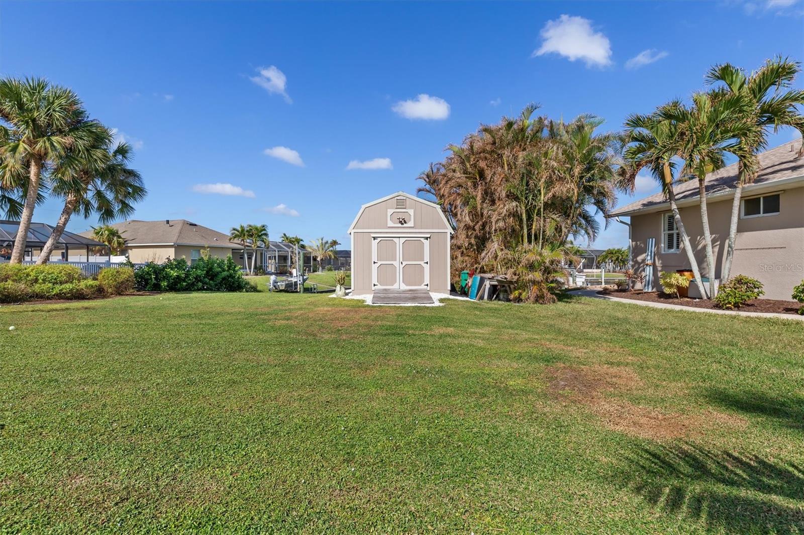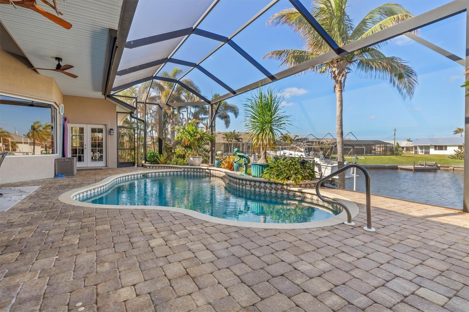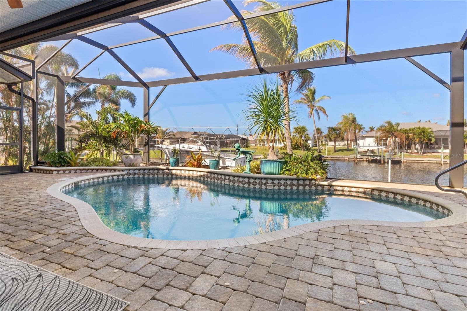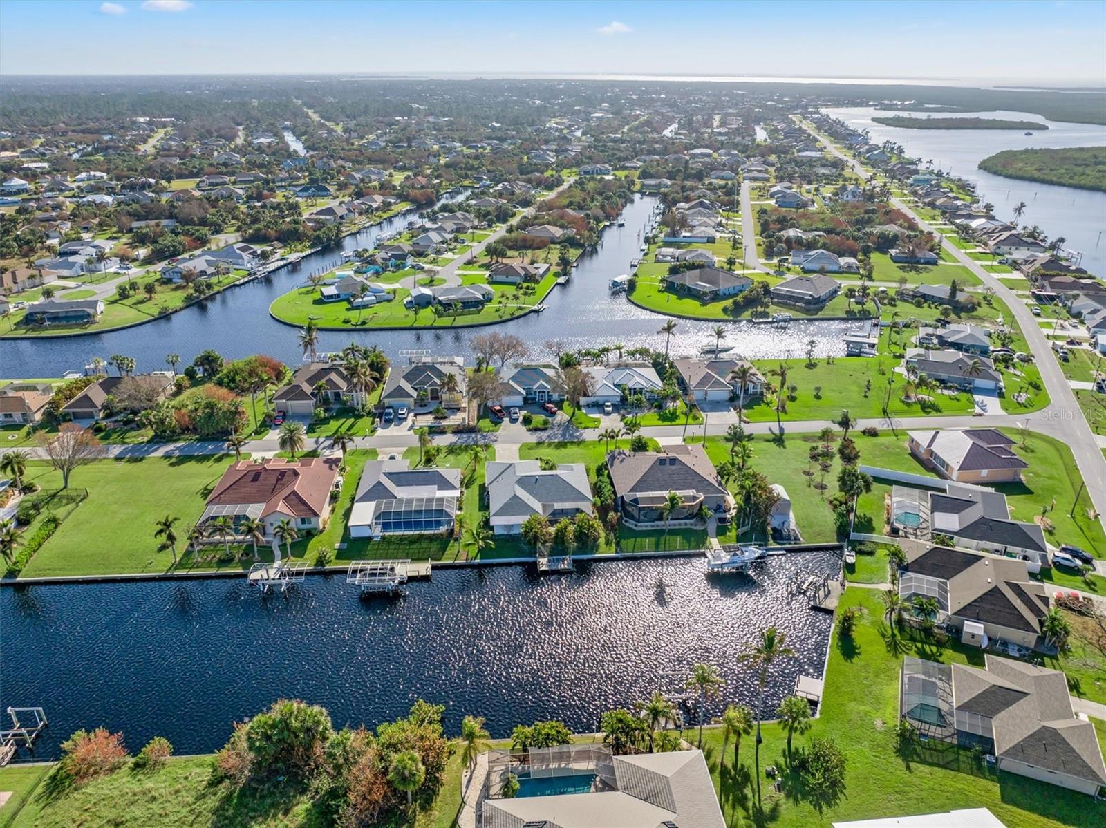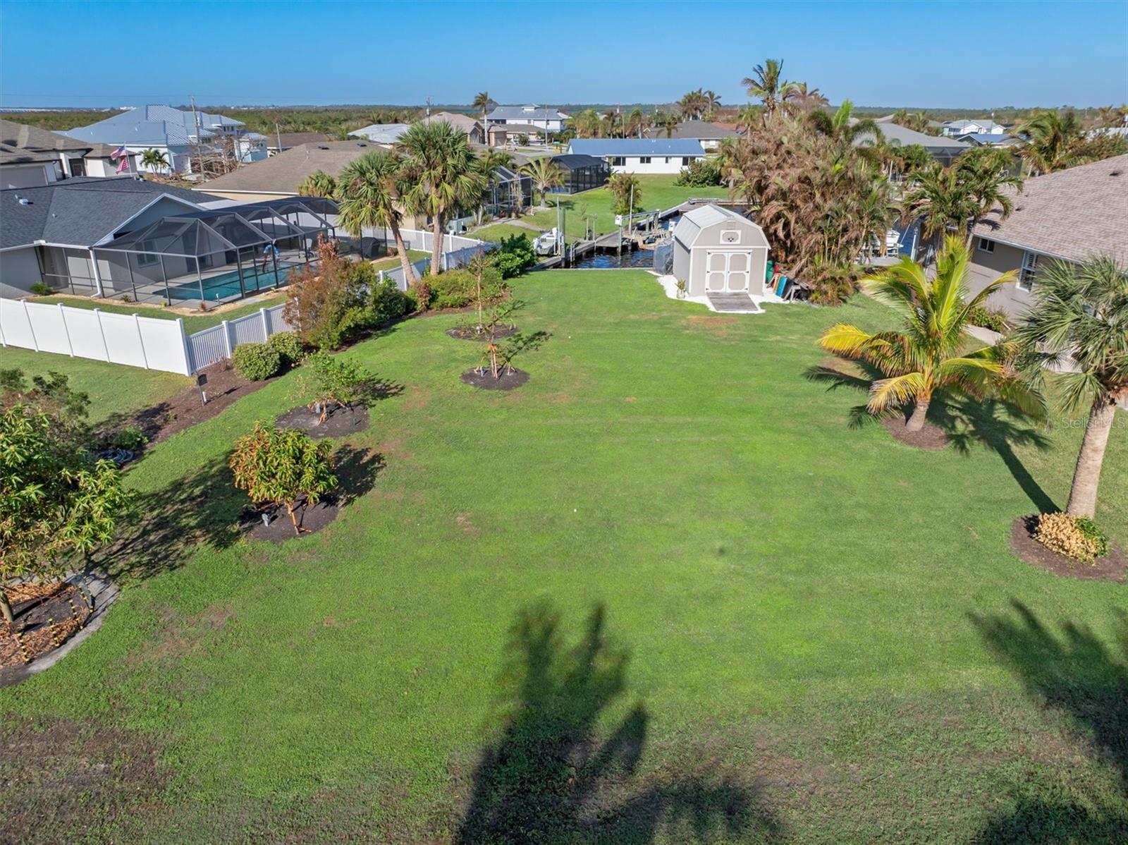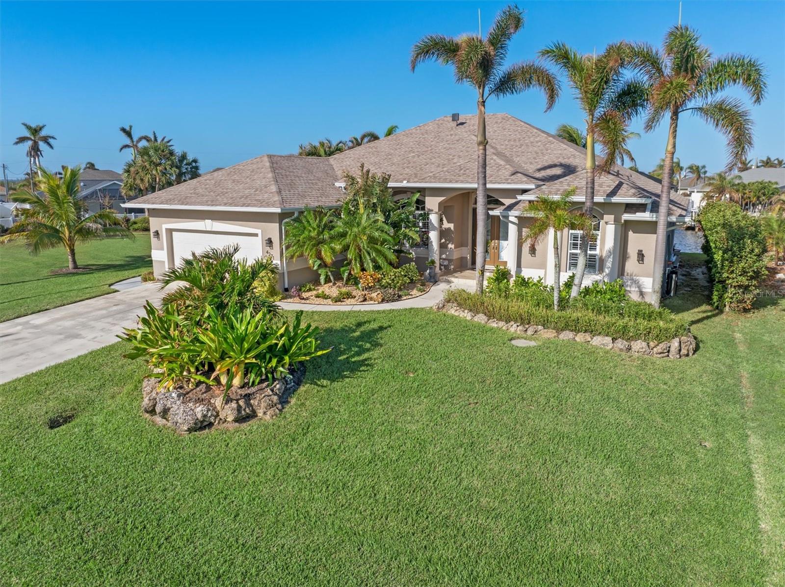 Check out the 3-D virtual walk through above! Stunning SAILBOAT ACCESS home with additional buildable lot to keep or sell! Original owners spared no expense to maintain this meticulous home with custom details throughout. As you enter this spacious, open floor plan home from the beautiful double doors (with retractable double screen), you view the Eastlake Waterway and a custom designed pool area with new Clearview screen. Specially designed Travertine flooring along with Hickory Wood flooring make this home a unique find. Custom remote controlled linen shades adorn the massive sliding glass doors and plantation shutters that are in other windows. High-end interior design includes several “art niches,” crown molding, tray ceilings, banana leaf inset in tray ceiling in Primary Bedroom, glass block shower, walk-in custom designed closets, and a Murphy bed for easy transition from a bedroom to an office/den! The split floor plan includes both a HUGE Primary Suite and two HUGE bedrooms to make this home perfect for entertaining guests. The kitchen has too many unique features to mention them all…wine cooler, Induction GE Café stove with pull out hood, solid Cherry Wood cabinets, pull out trash bins, top of the line refrigerator, and gorgeous granite countertop. The kitchen nook features a large Aquarium Window that is the focal point of the home. While sitting in the nook, you can view your beautiful custom pool with a unique garden of in-ground and potted plants. Go out the side lanai door and follow the paver walkway to your own lighted private boat dock. And, if you are interested, the 30 foot Twin Yanmar Diesel 630 horsepower boat is negotiable. Add in a totally new laundry room with stainless steel sink, granite countertop, new 30” stainless steel refrigerator, new washer/dryer “all-in-one” appliance and built-in cabinets, and you have the perfectly designed space! Both the lush landscaping surrounding the home and the lawn have been well maintained. The oversized garage has a lighted workspace and many types of shelving. The custom-built 12 x 16 shed is a great place for storage and has electricity. The location of the home is close to all shopping, doctors, and restaurants yet is situated in a secluded area with dead-end streets. The Eastlake Waterway will take your sailboat to Charlotte Harbor. And there is no HOA in this community. This property will “sell itself” with its unique mixture of traditional and Florida style. Make an appointment to see it today!