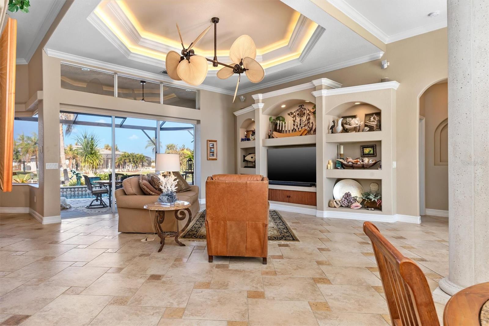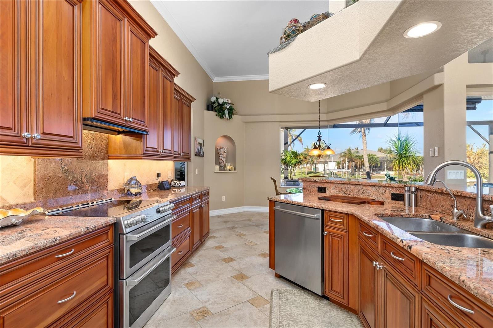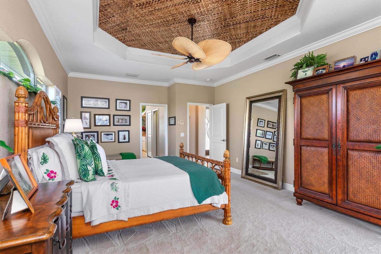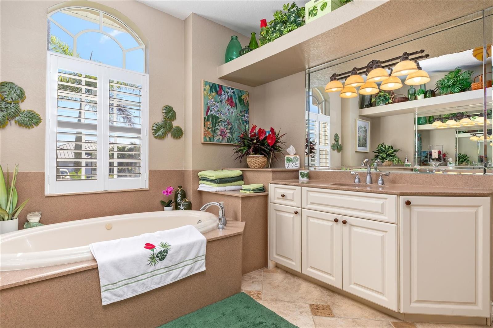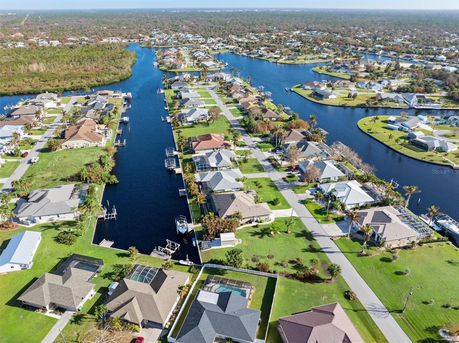 Check out the 3-D virtual walk through above! Stunning SAILBOAT ACCESS home with additional buildable lot to keep or sell! Original owners spared no expense to maintain this meticulous home with custom details throughout. As you enter this spacious, open floor plan home from the beautiful double doors (with retractable double screen), you view the Eastlake Waterway and a custom designed pool area with new Clearview screen. Specially designed Travertine flooring along with Hickory Wood flooring make this home a unique find. Custom remote controlled linen shades adorn the massive sliding glass doors and plantation shutters that are in other windows. High-end interior design includes several “art niches,” crown molding, tray ceilings, banana leaf inset in tray ceiling in Primary Bedroom, glass block shower, walk-in custom designed closets, and a Murphy bed for easy transition from a bedroom to an office/den! The split floor plan includes both a HUGE Primary Suite and two HUGE bedrooms to make this home perfect for entertaining guests. The kitchen has too many unique features to mention them all…wine cooler, Induction GE Café stove with pull out hood, solid Cherry Wood cabinets, pull out trash bins, top of the line refrigerator, and gorgeous granite countertop. The kitchen nook features a large Aquarium Window that is the focal point of the home. While sitting in the nook, you can view your beautiful custom pool with a unique garden of in-ground and potted plants. Go out the side lanai door and follow the paver walkway to your own lighted private boat dock. And, if you are interested, the 30 foot Twin Yanmar Diesel 630 horsepower boat is negotiable. Add in a totally new laundry room with stainless steel sink, granite countertop, new 30” stainless steel refrigerator, new washer/dryer “all-in-one” appliance and built-in cabinets, and you have the perfectly designed space! Both the lush landscaping surrounding the home and the lawn have been well maintained. The oversized garage has a lighted workspace and many types of shelving. The custom-built 12 x 16 shed is a great place for storage and has electricity. The location of the home is close to all shopping, doctors, and restaurants yet is situated in a secluded area with dead-end streets. The Eastlake Waterway will take your sailboat to Charlotte Harbor. And there is no HOA in this community. This property will “sell itself” with its unique mixture of traditional and Florida style. Make an appointment to see it today!